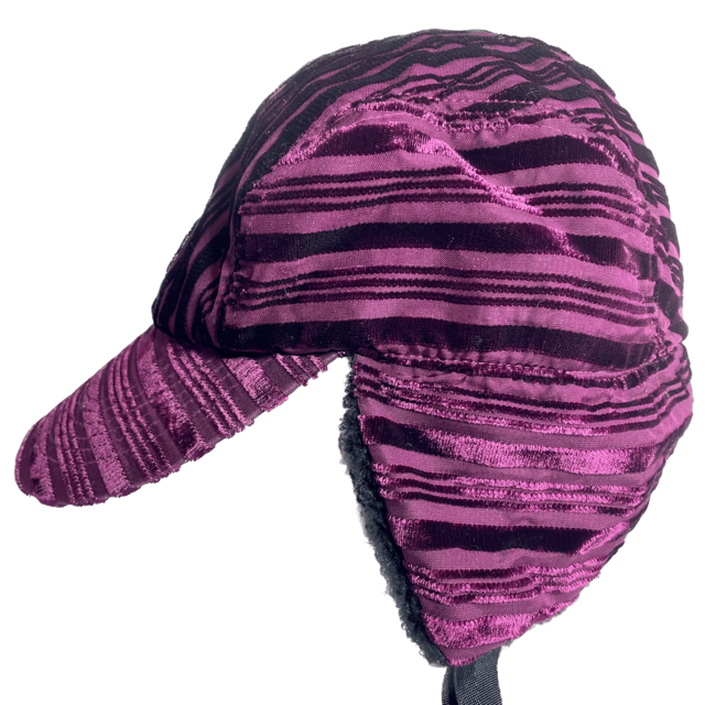 THE FAM AND CO. "STEP" VELVET STRIPE FUR CAP