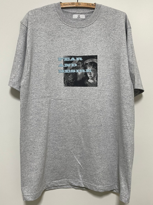 Fear and Desireの半袖Tシャツになります。 見つめ合う天使の視線を隠すようにロゴが配置されたプリントが印象的な一枚になります。 肉厚のコットンボディが夏に相応わしい一枚です。 サイズXL 肩幅53cm 身幅60cm 着丈75cm 袖丈23cm カラー:mix grey アイロン掛けの際はプリント部に必ず当て布を当てて下さい。 Fear&Desire 退廃的なイラストや刺繍などを用いてストリートファッションに落とし込み、どこか皮肉の効いたデザインを物作りに反映させています。