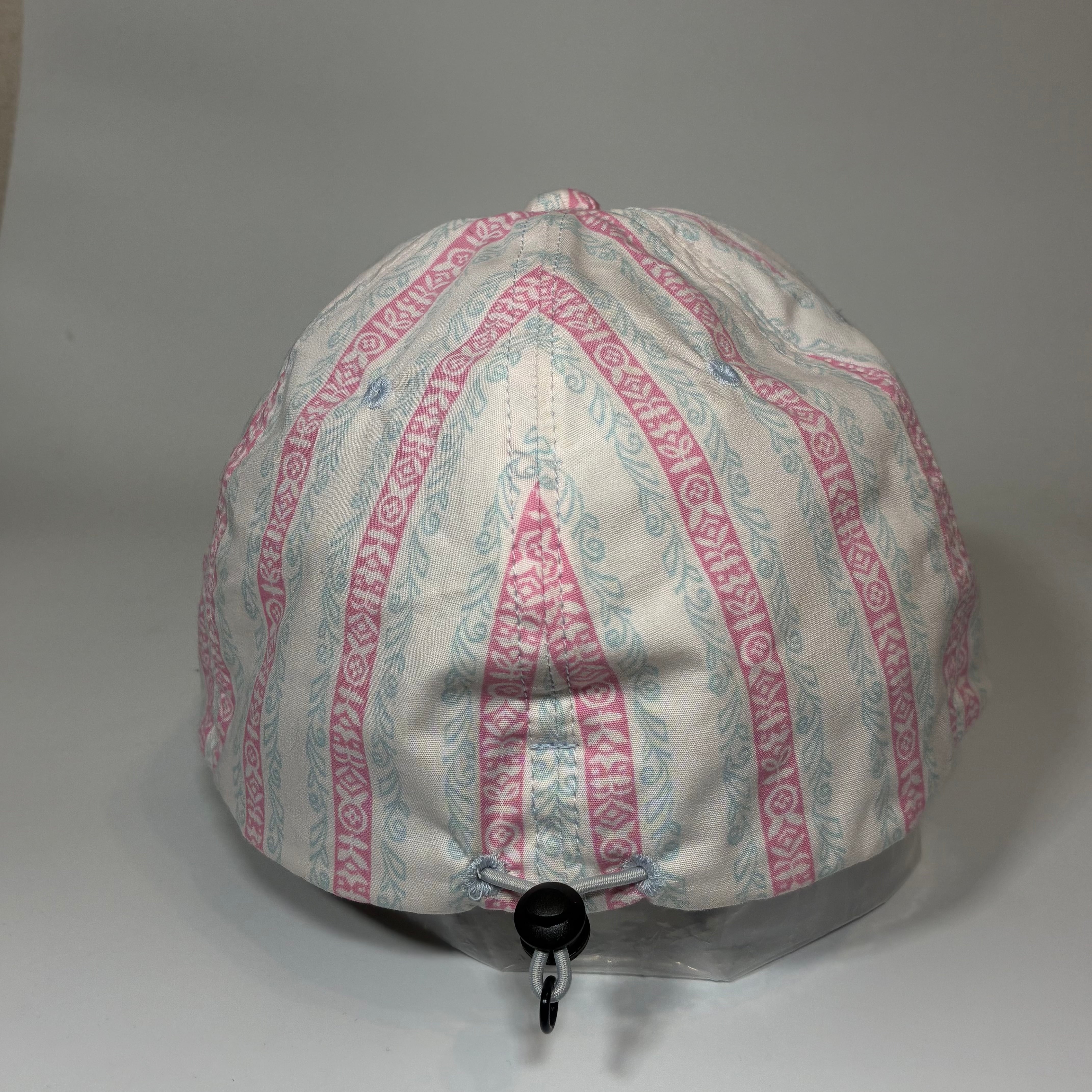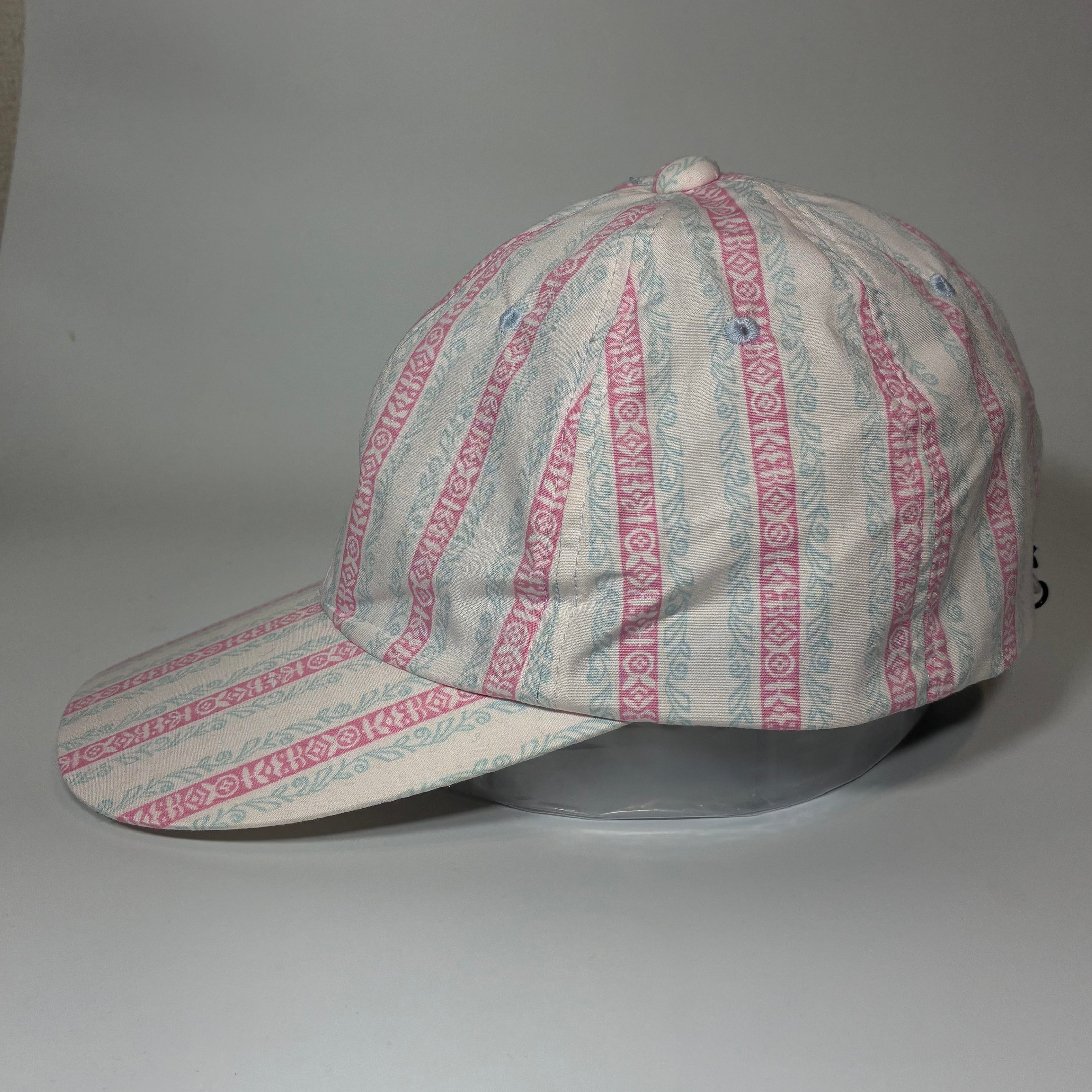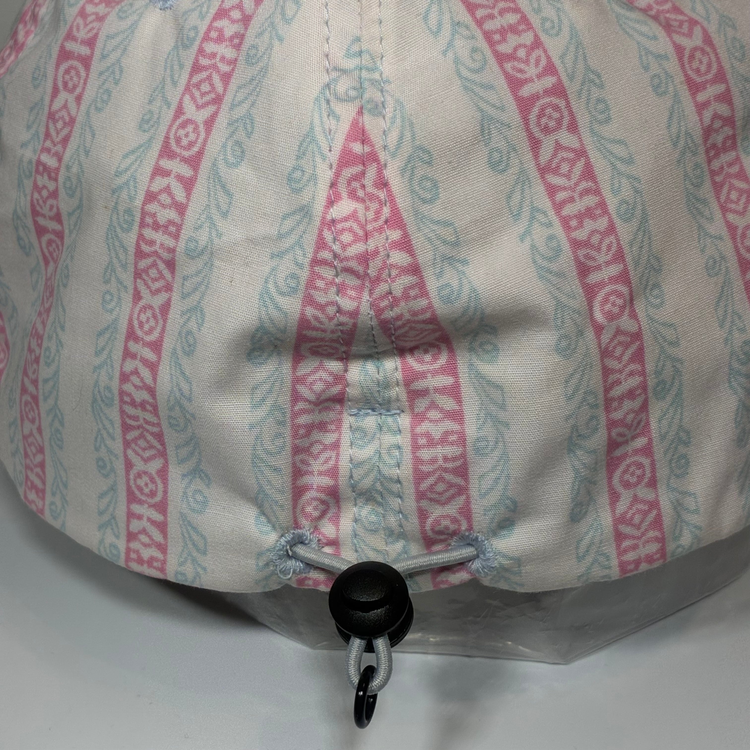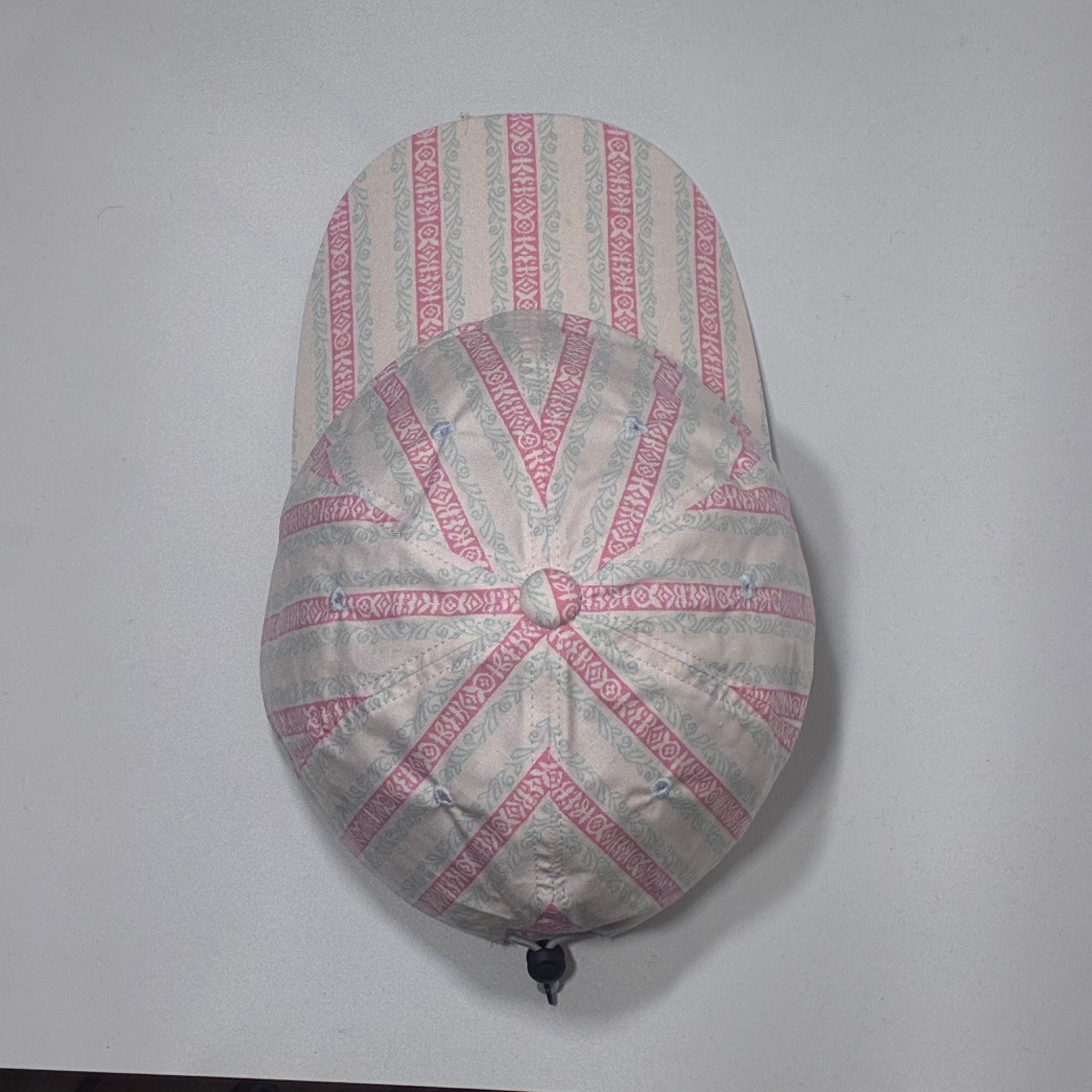 チロリアンテープ柄のコットンプリント生地を用いた帽子になります。
