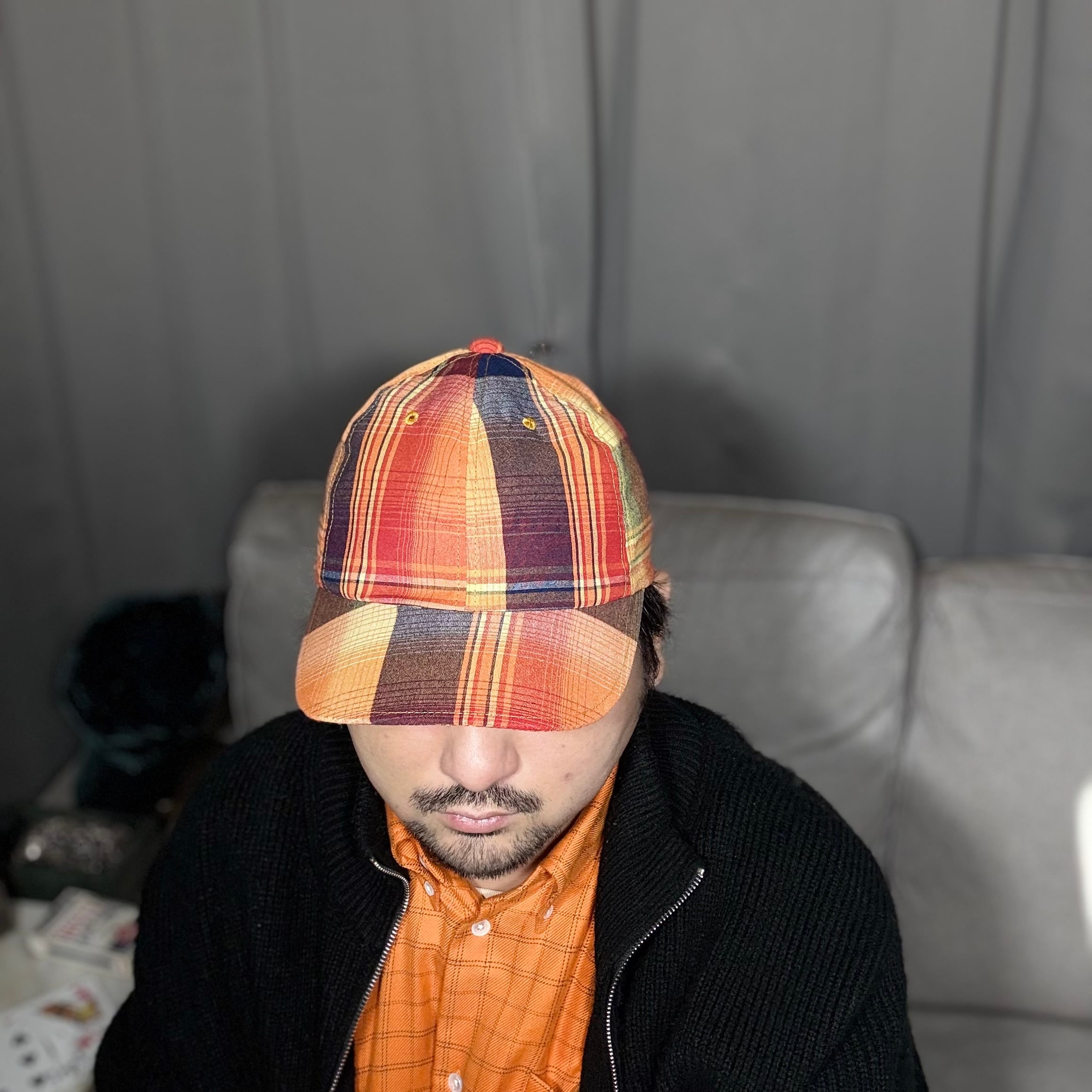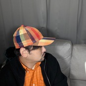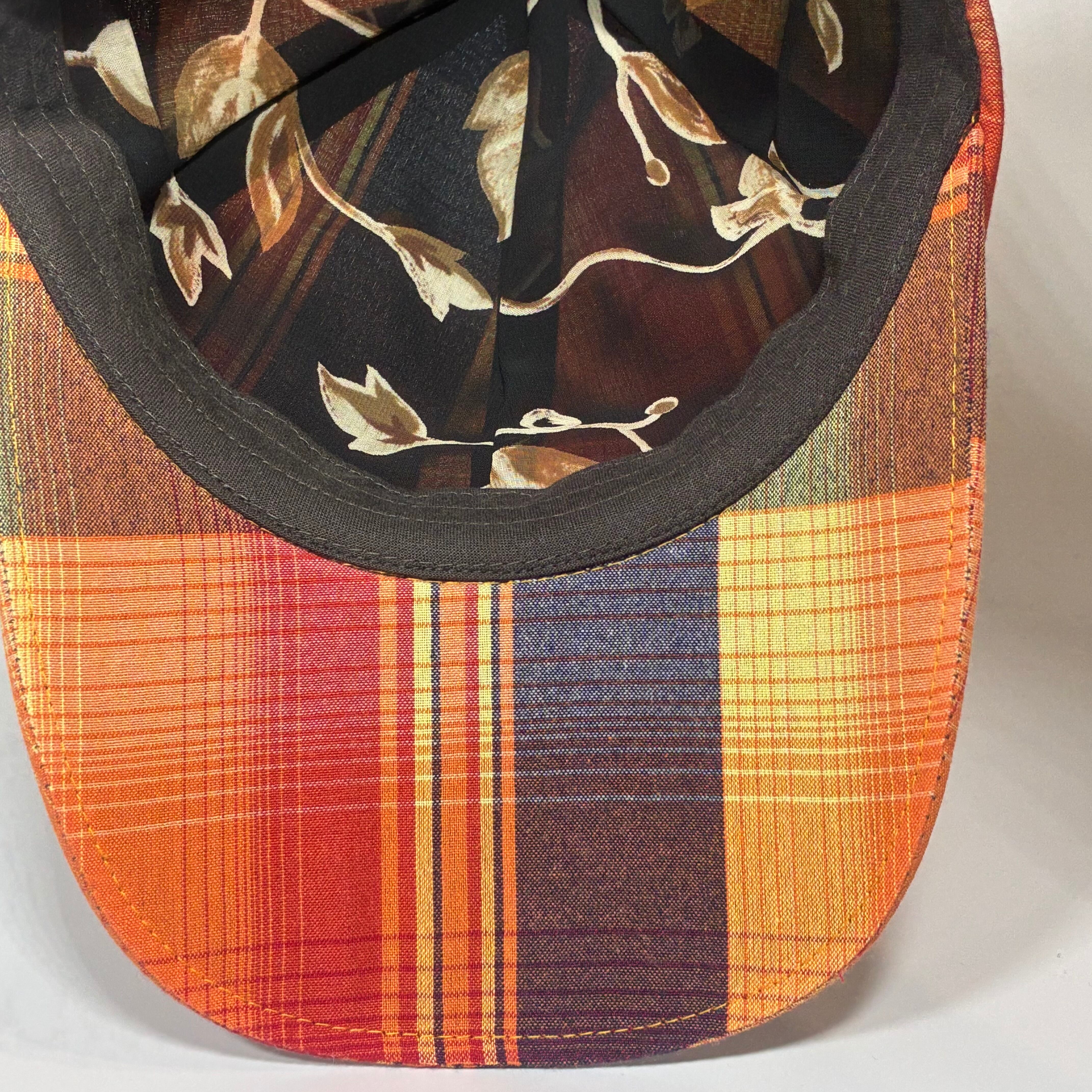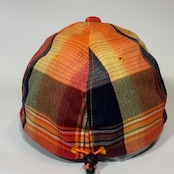 独特なマドラスチェック柄の生地で仕立てた帽子になります。