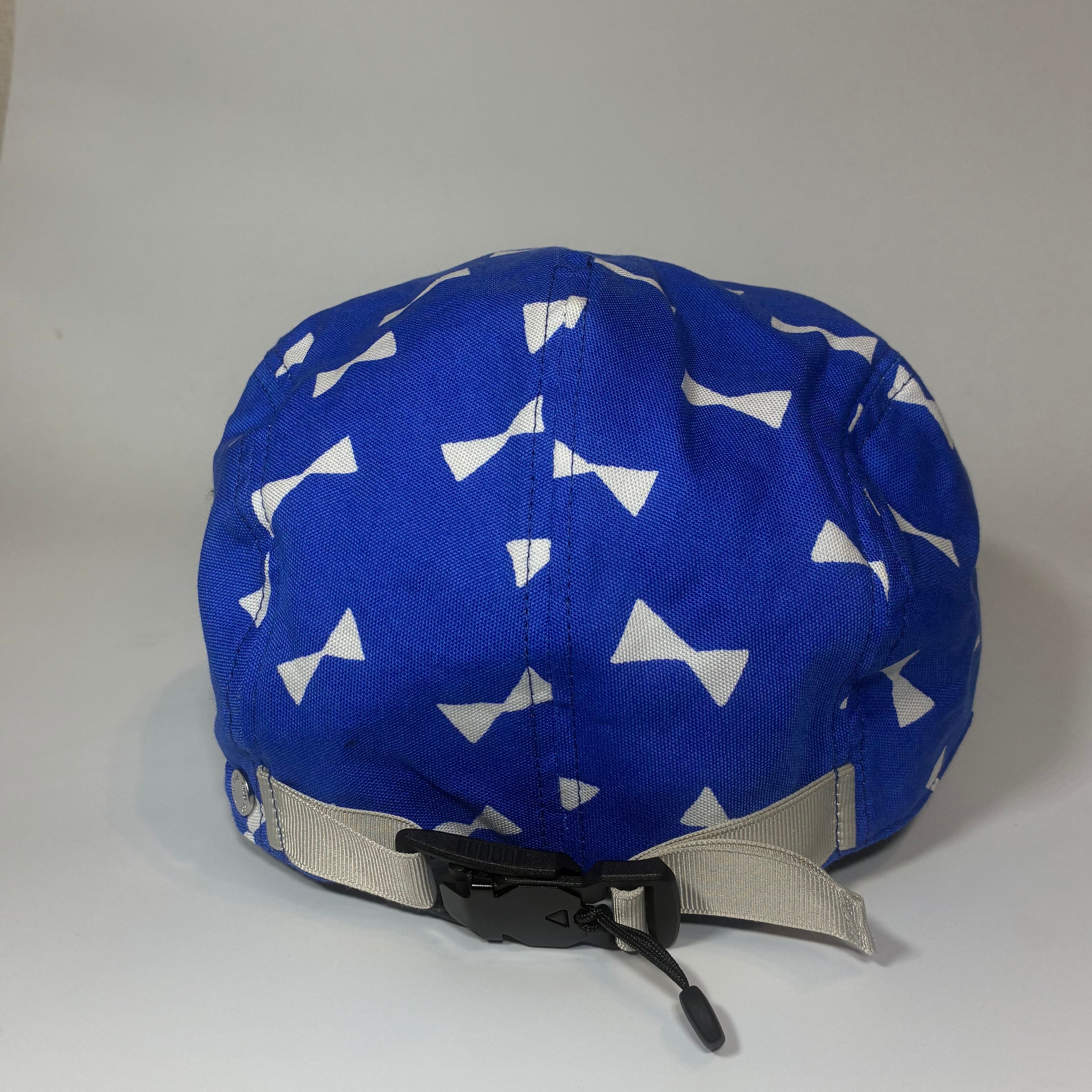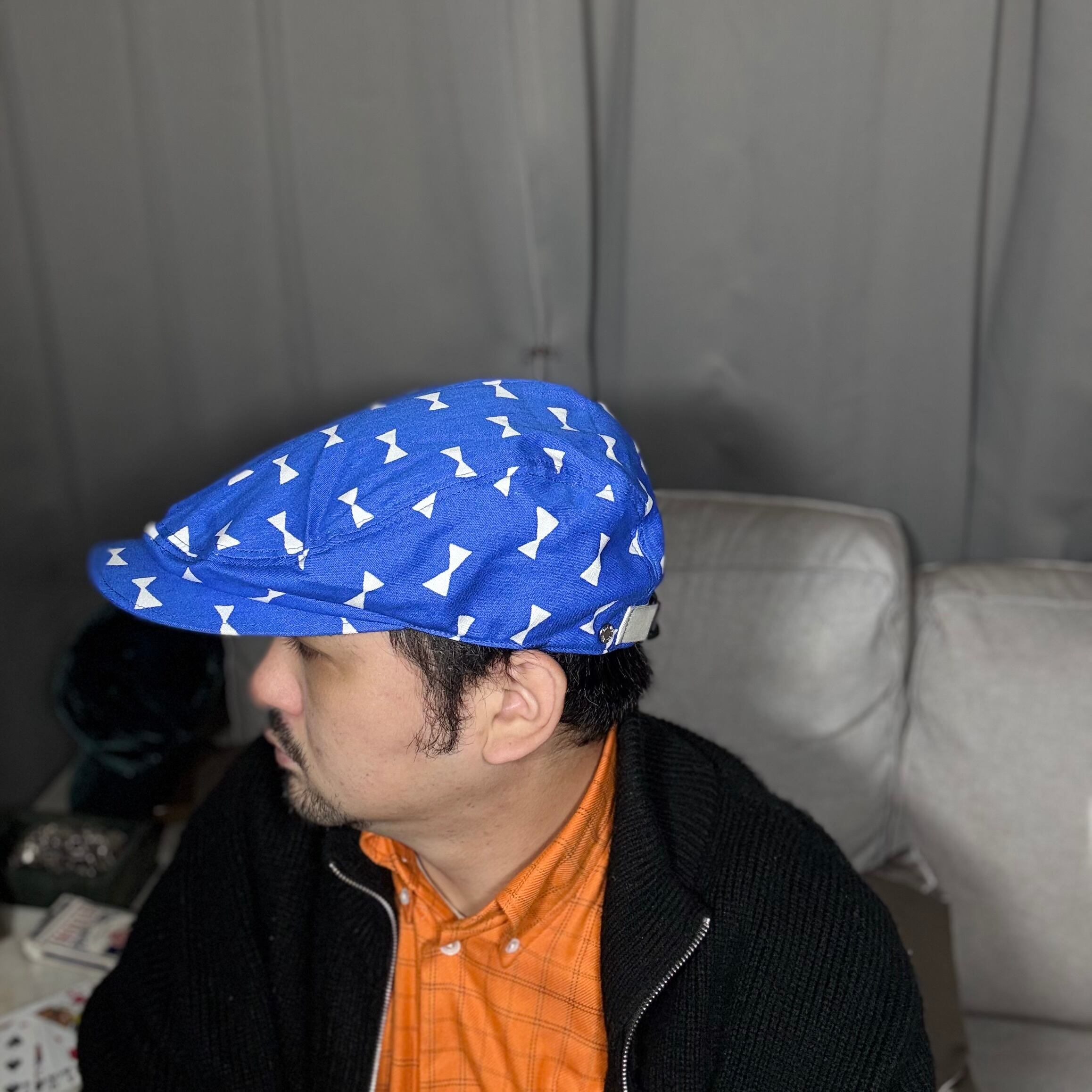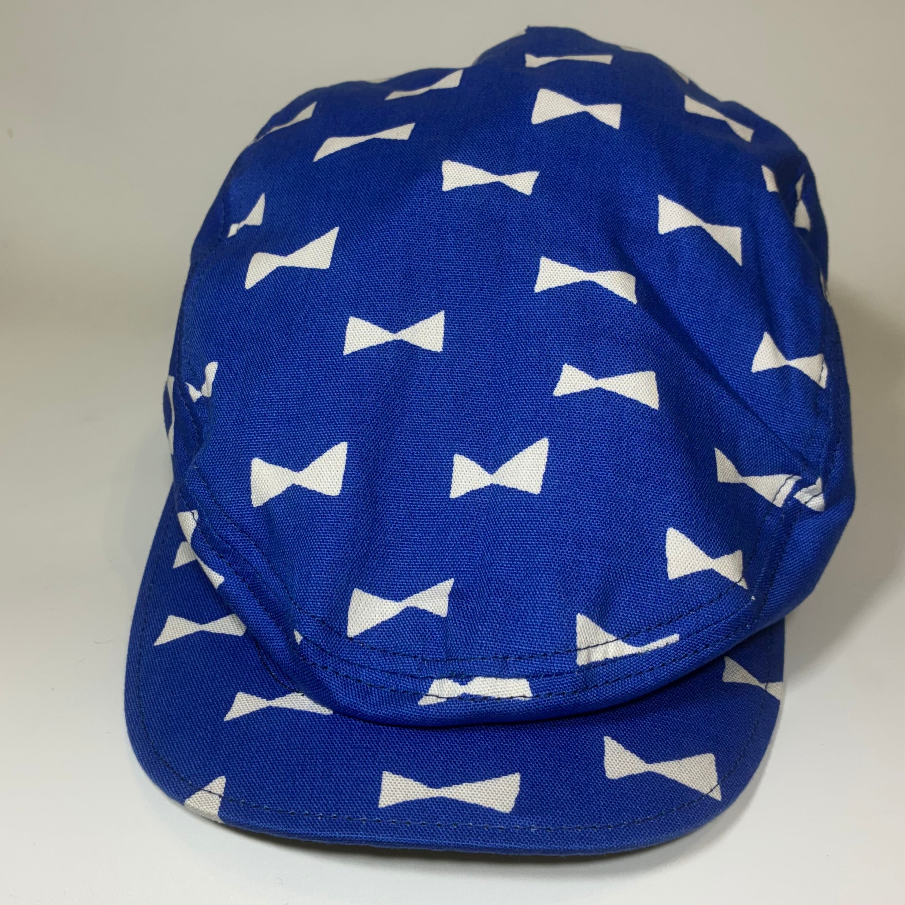 幾何学模様柄のコットンオックス生地をハンチンキャップに仕立てました。