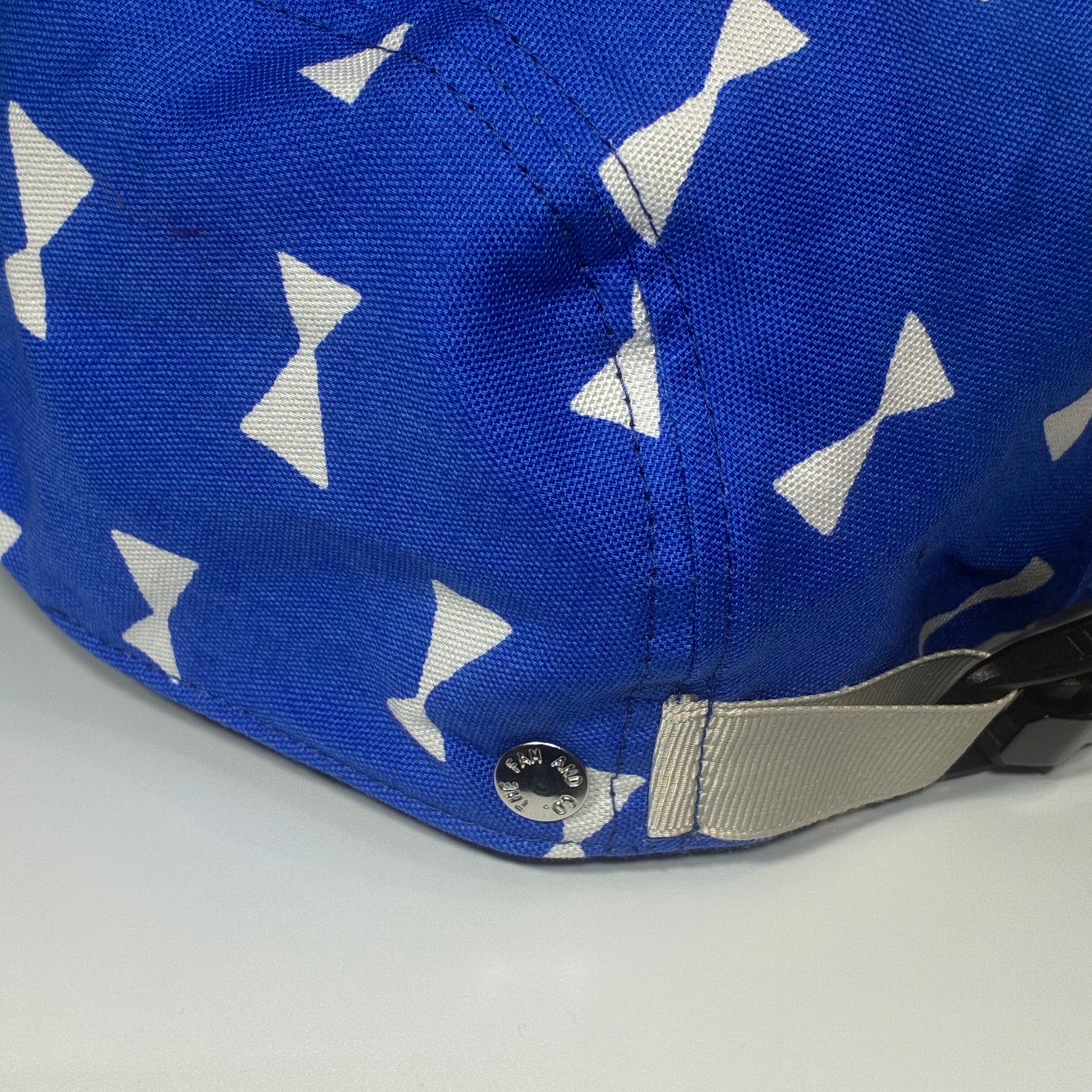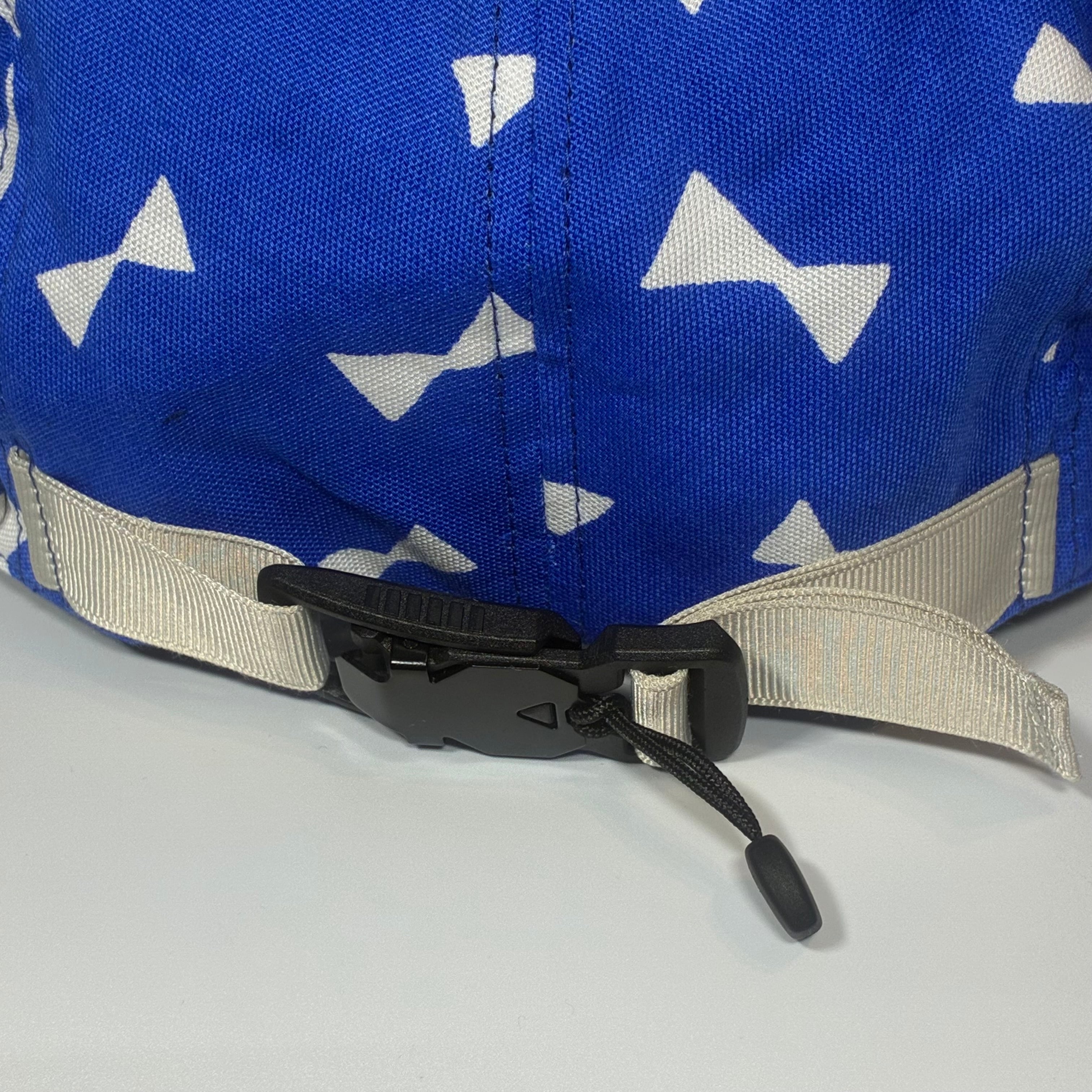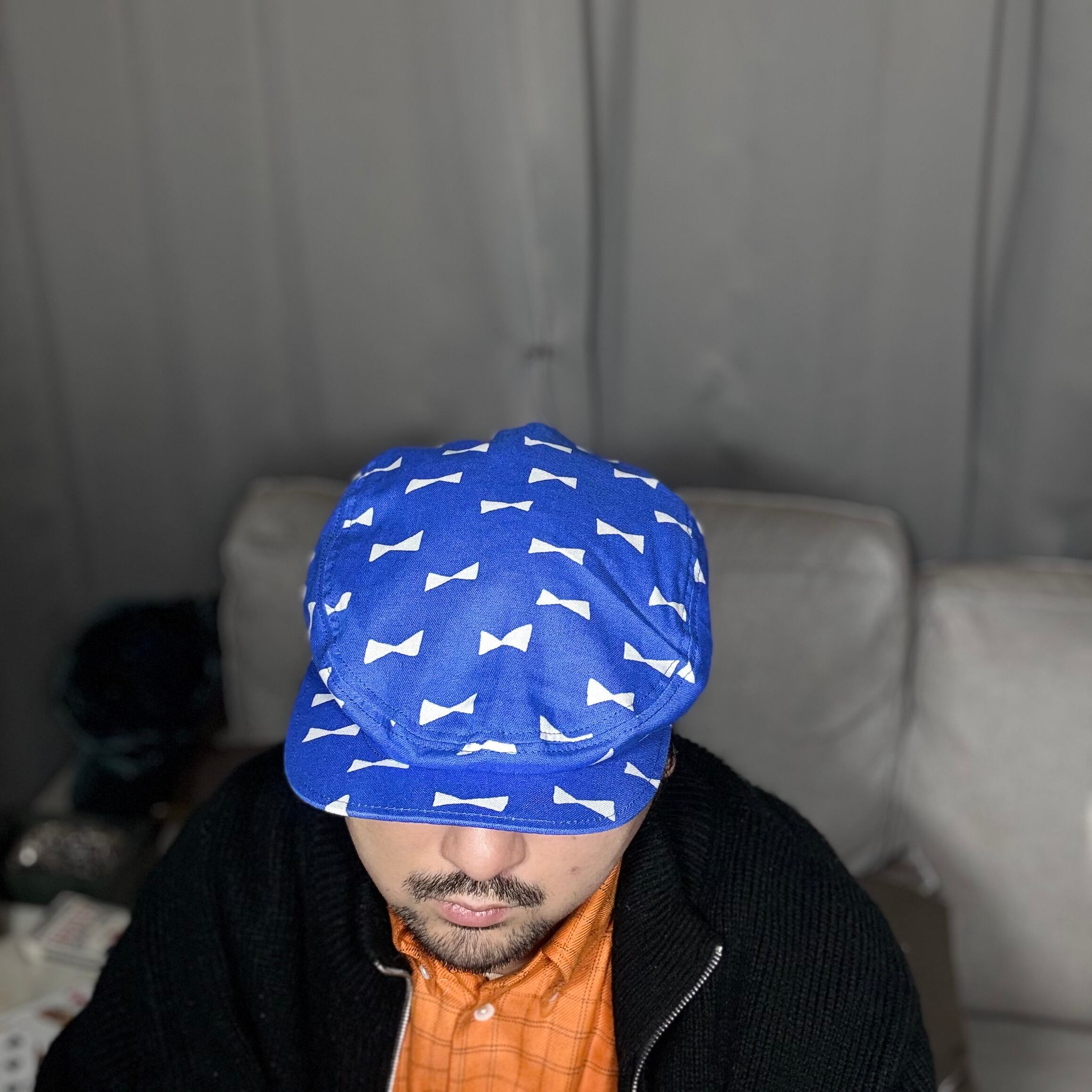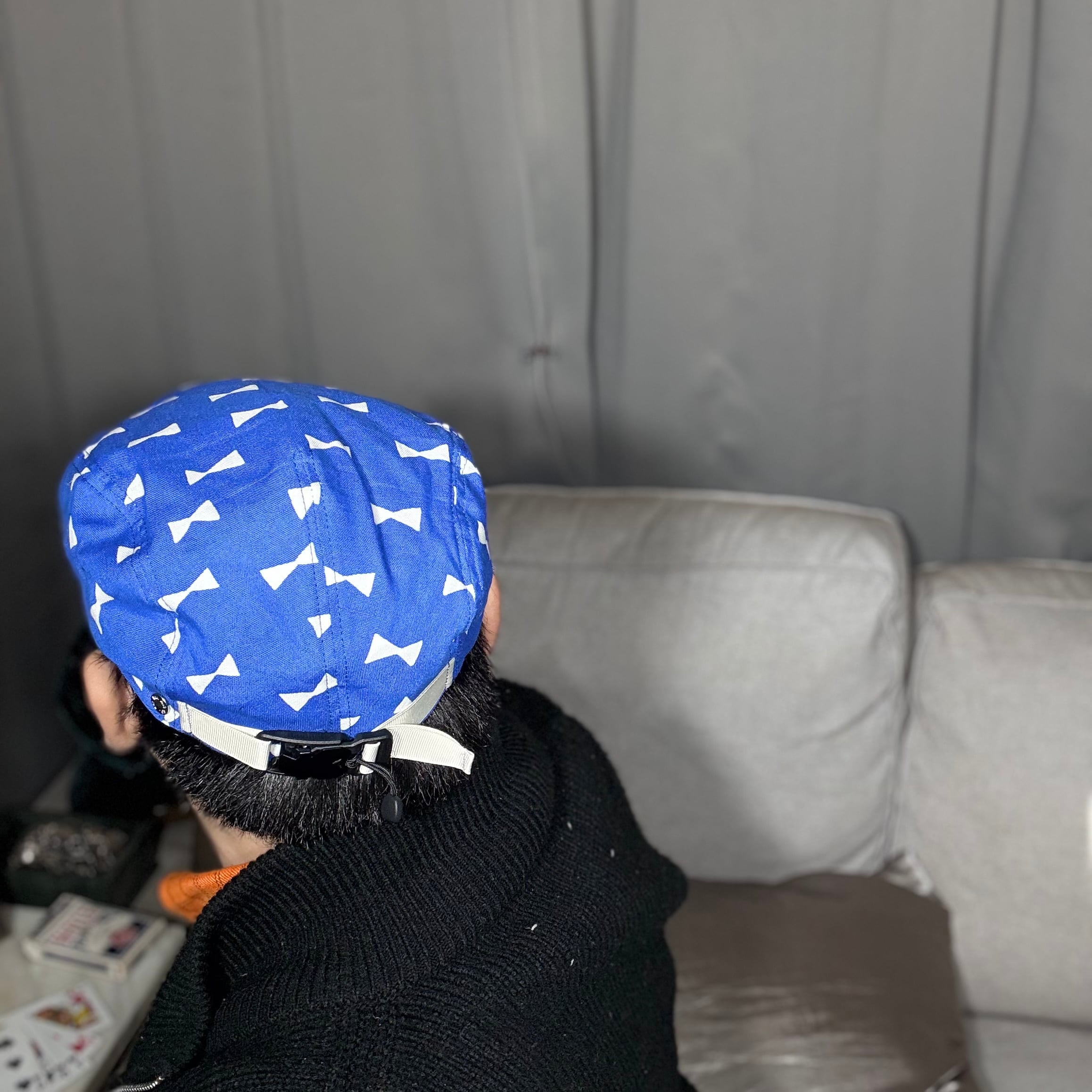 幾何学模様柄のコットンオックス生地をハンチンキャップに仕立てました。