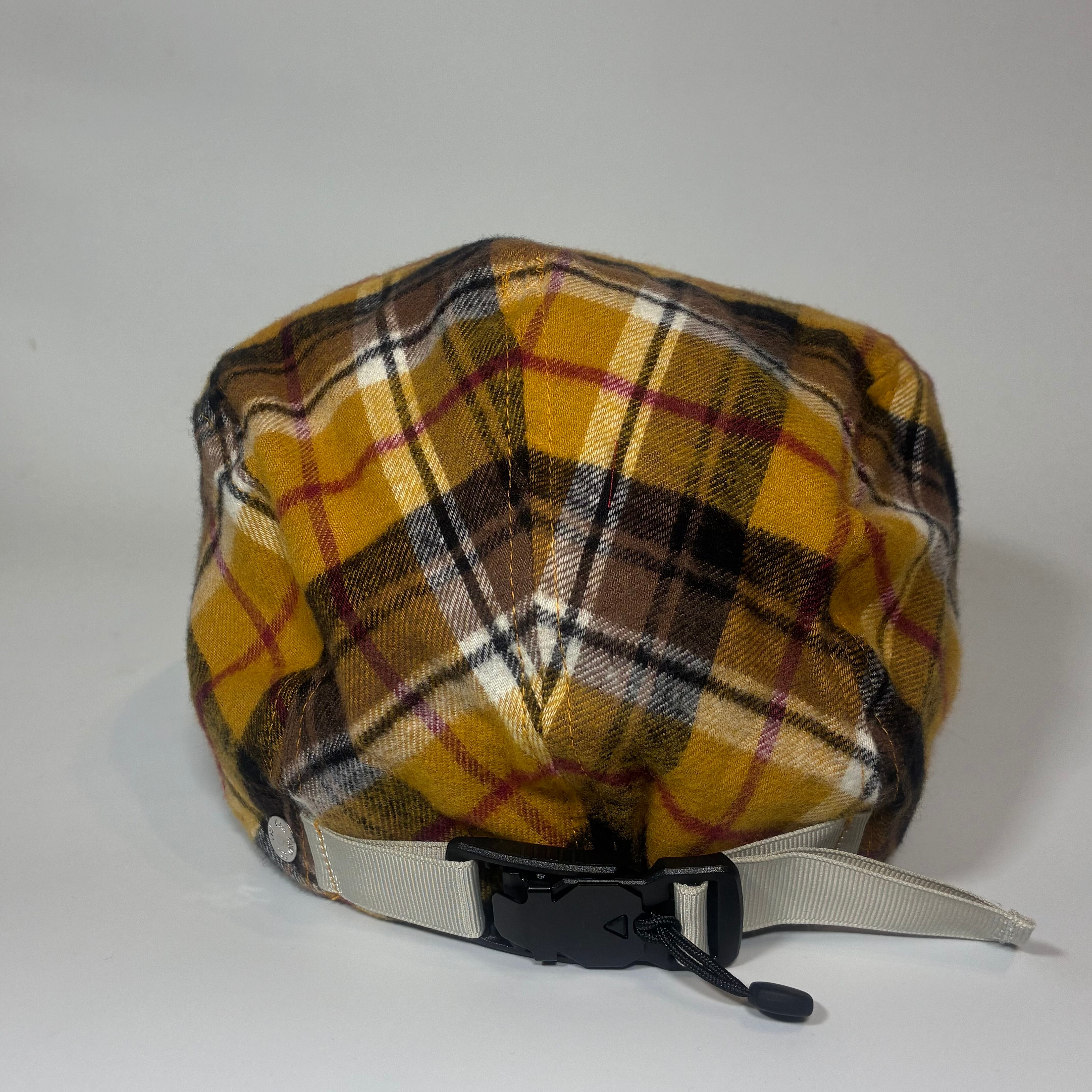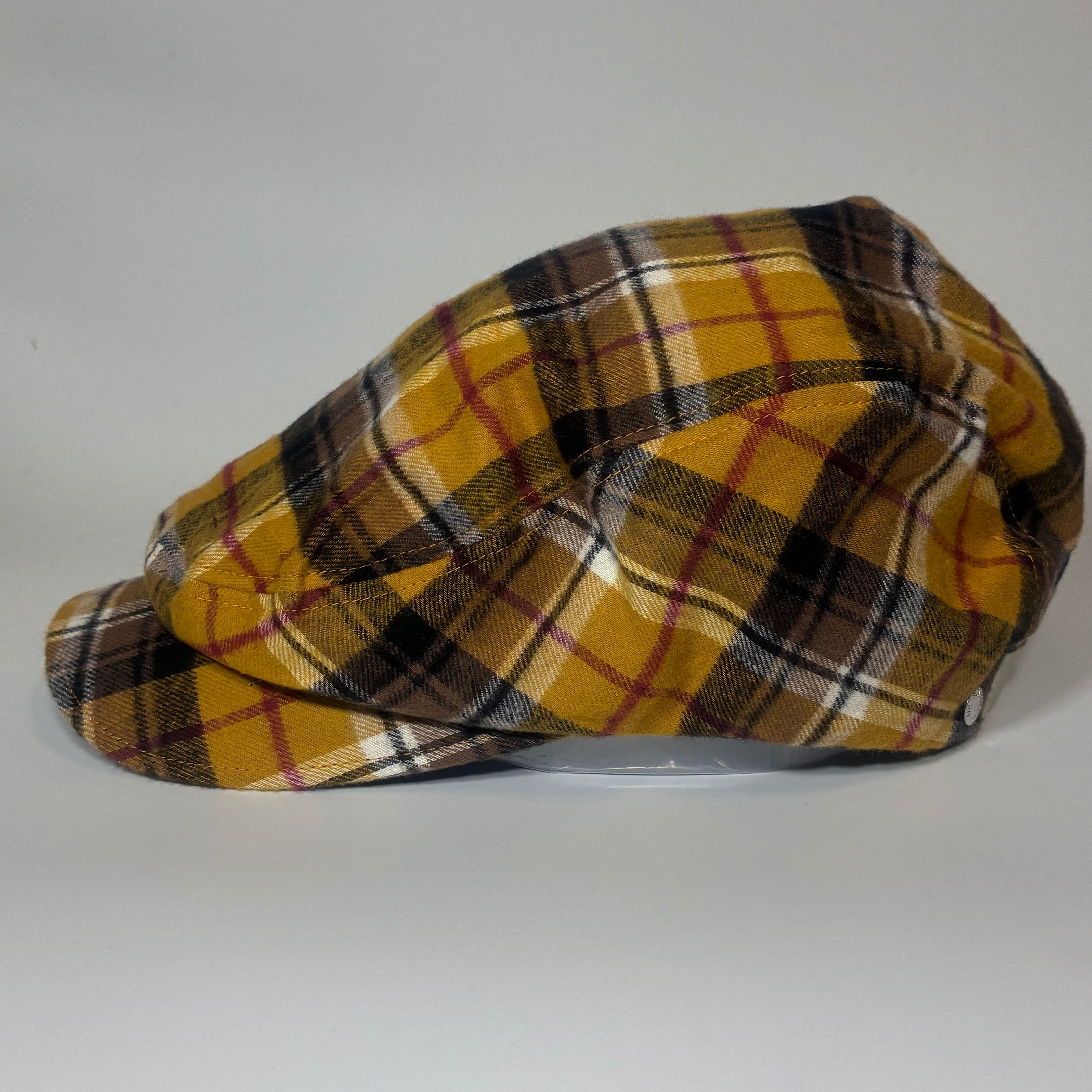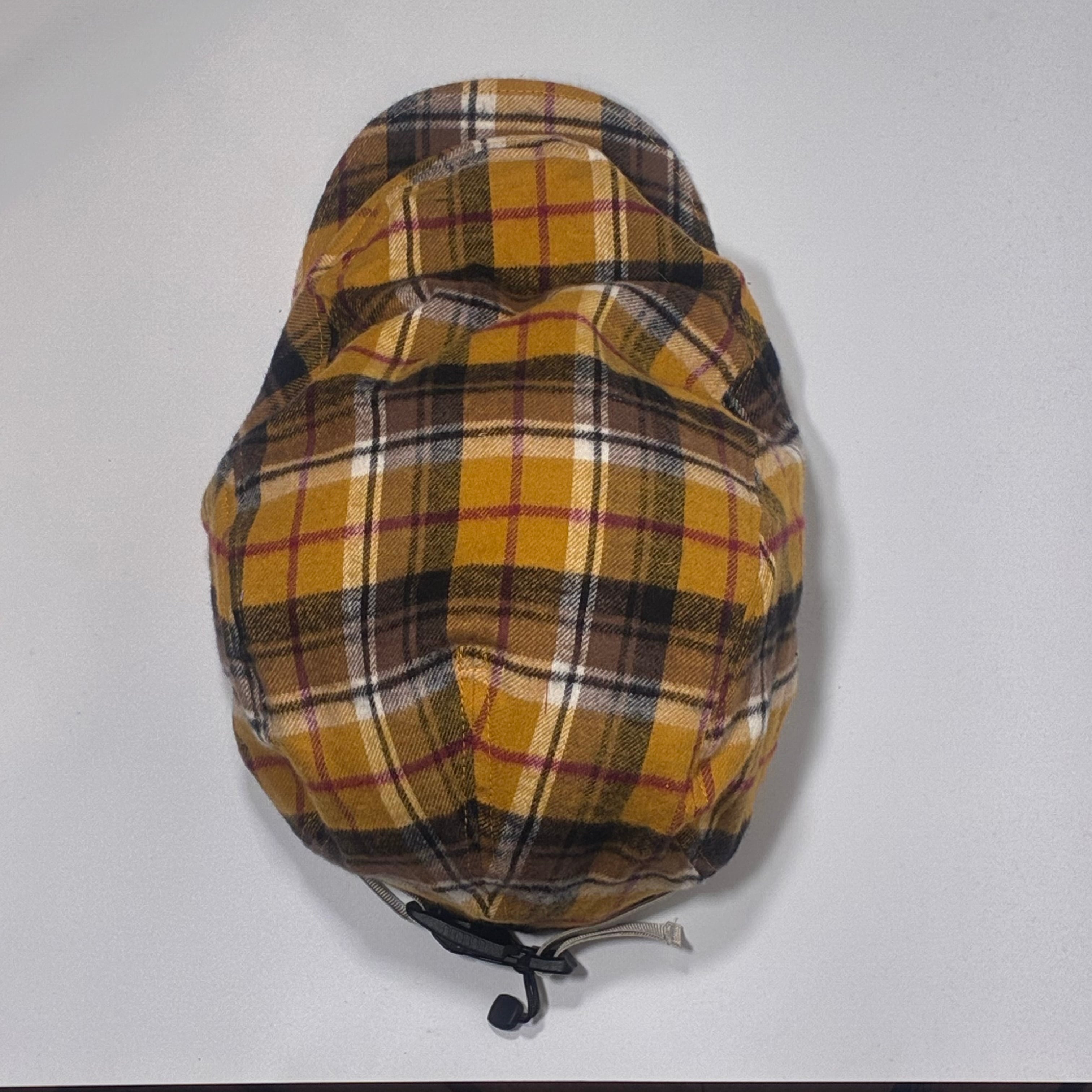 微起毛のフランネル生地をハンチンキャップに仕立てました。