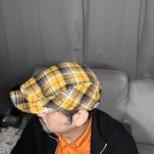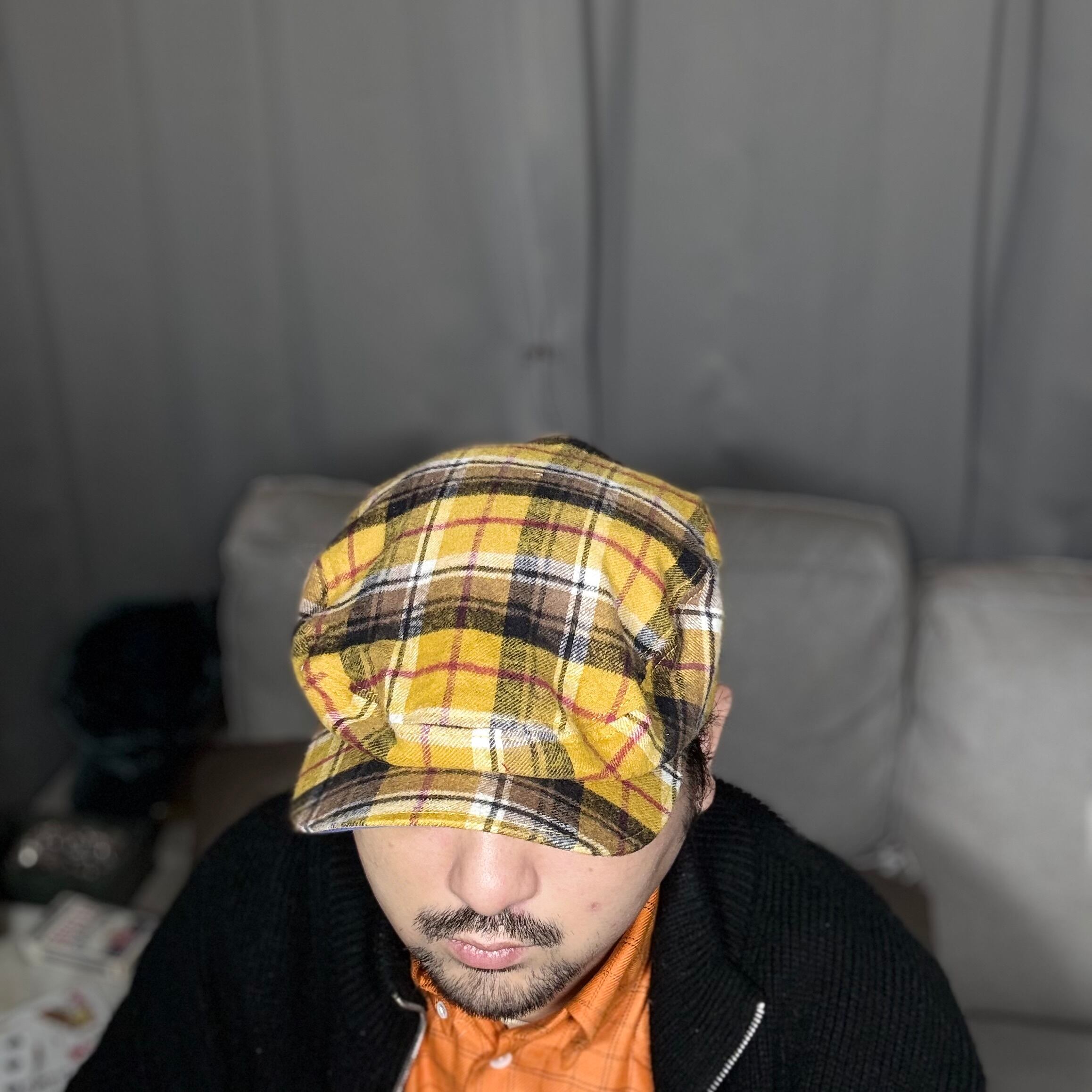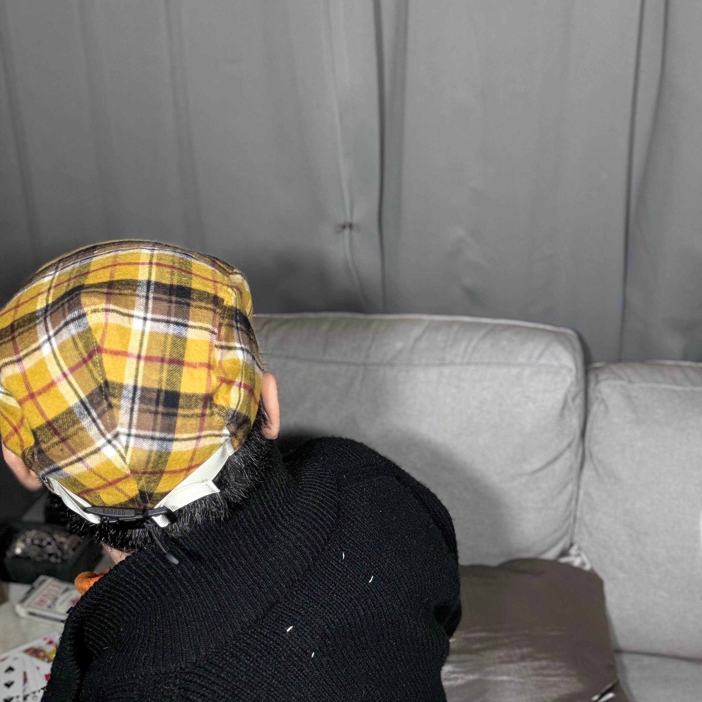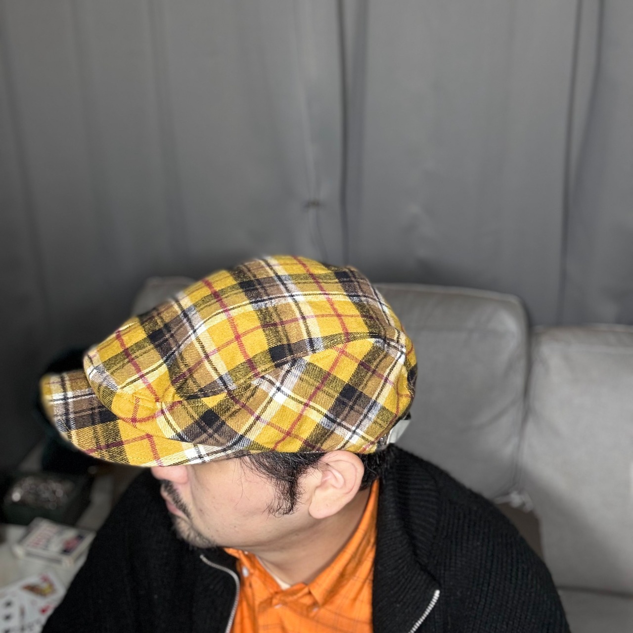 微起毛のフランネル生地をハンチンキャップに仕立てました。