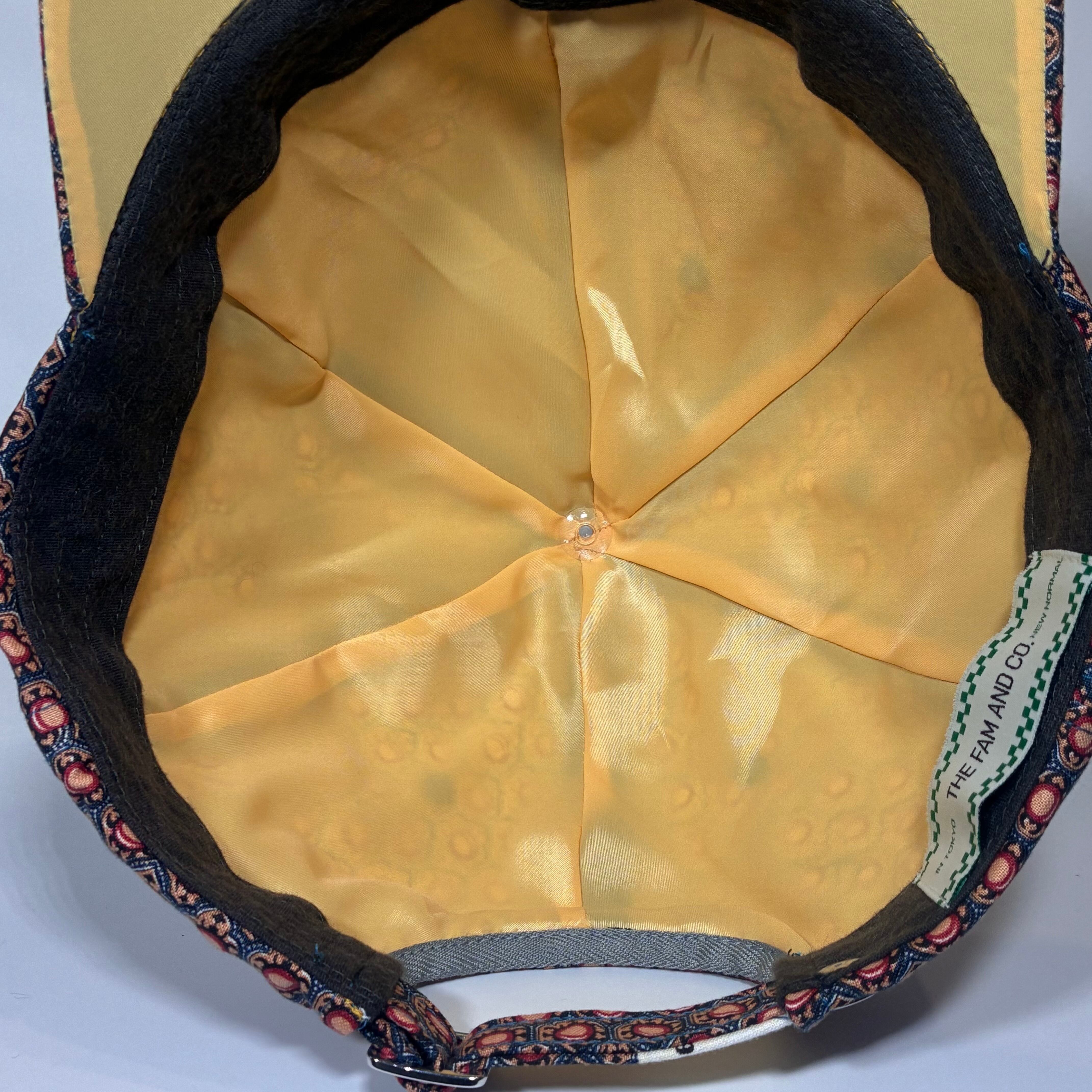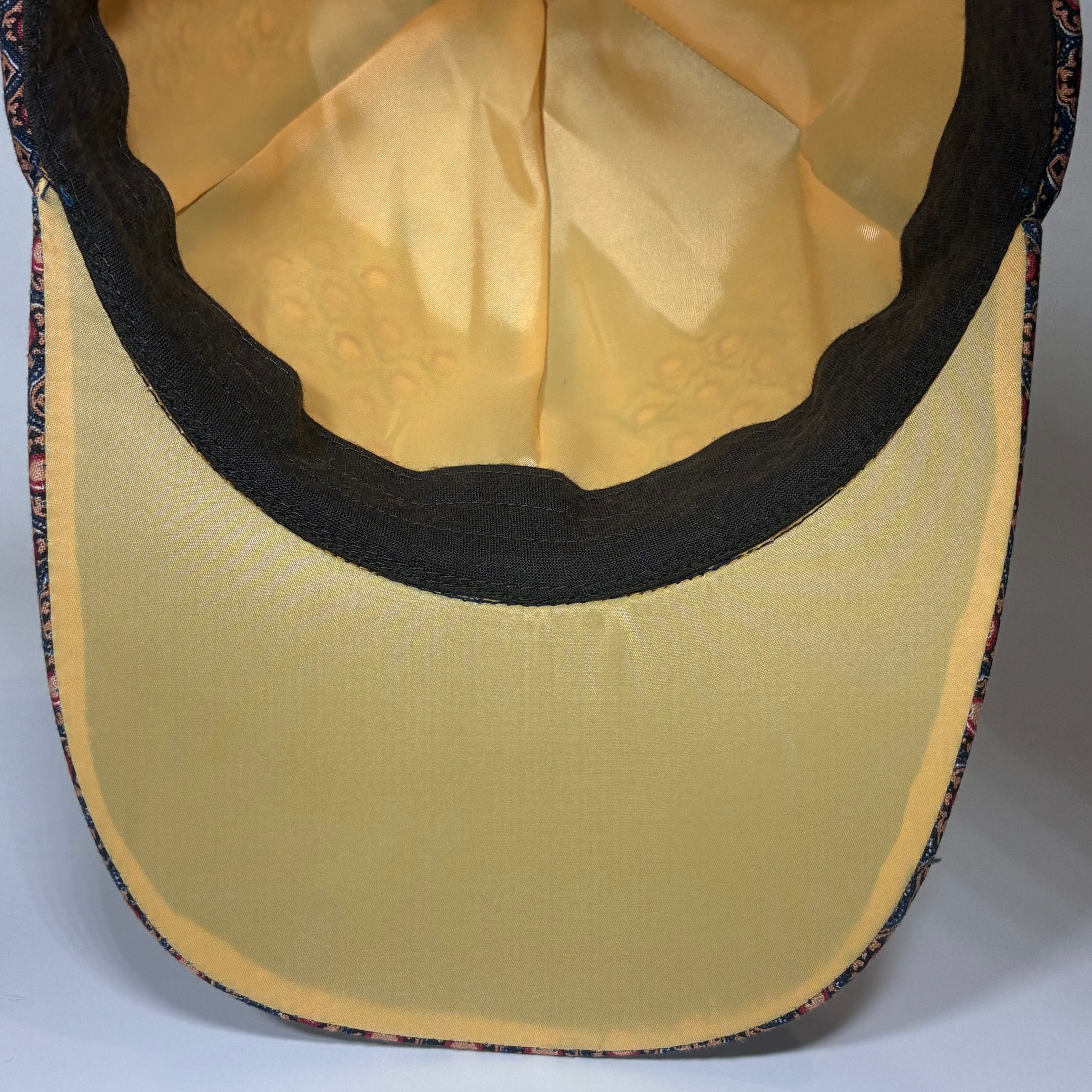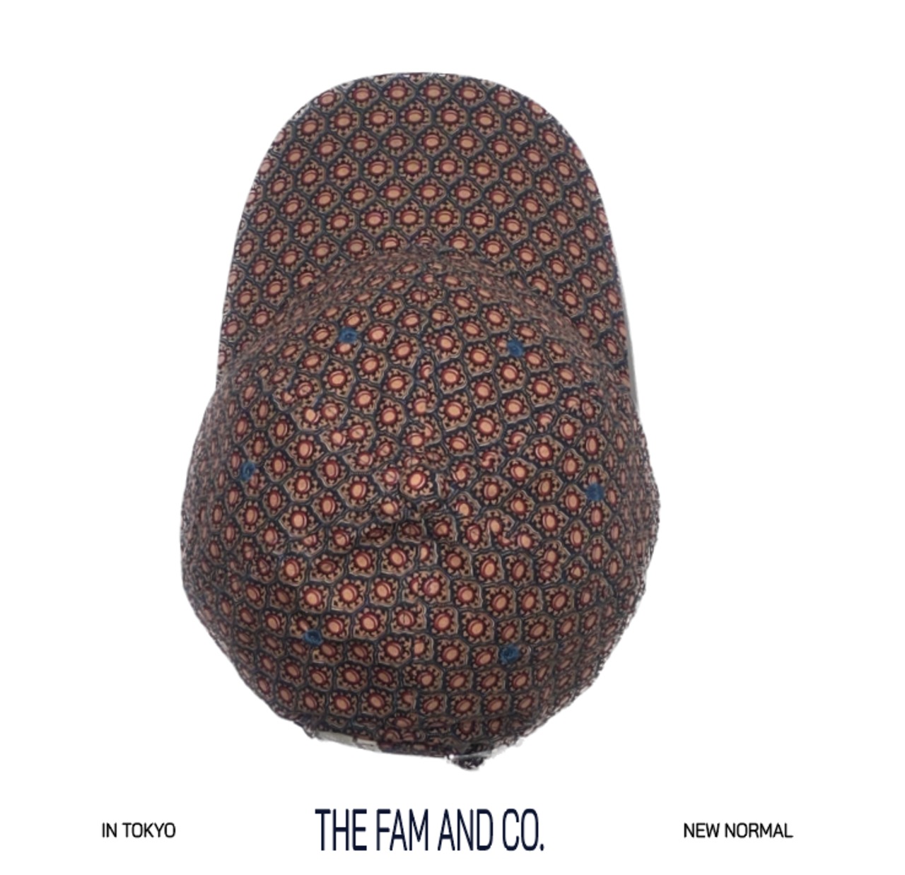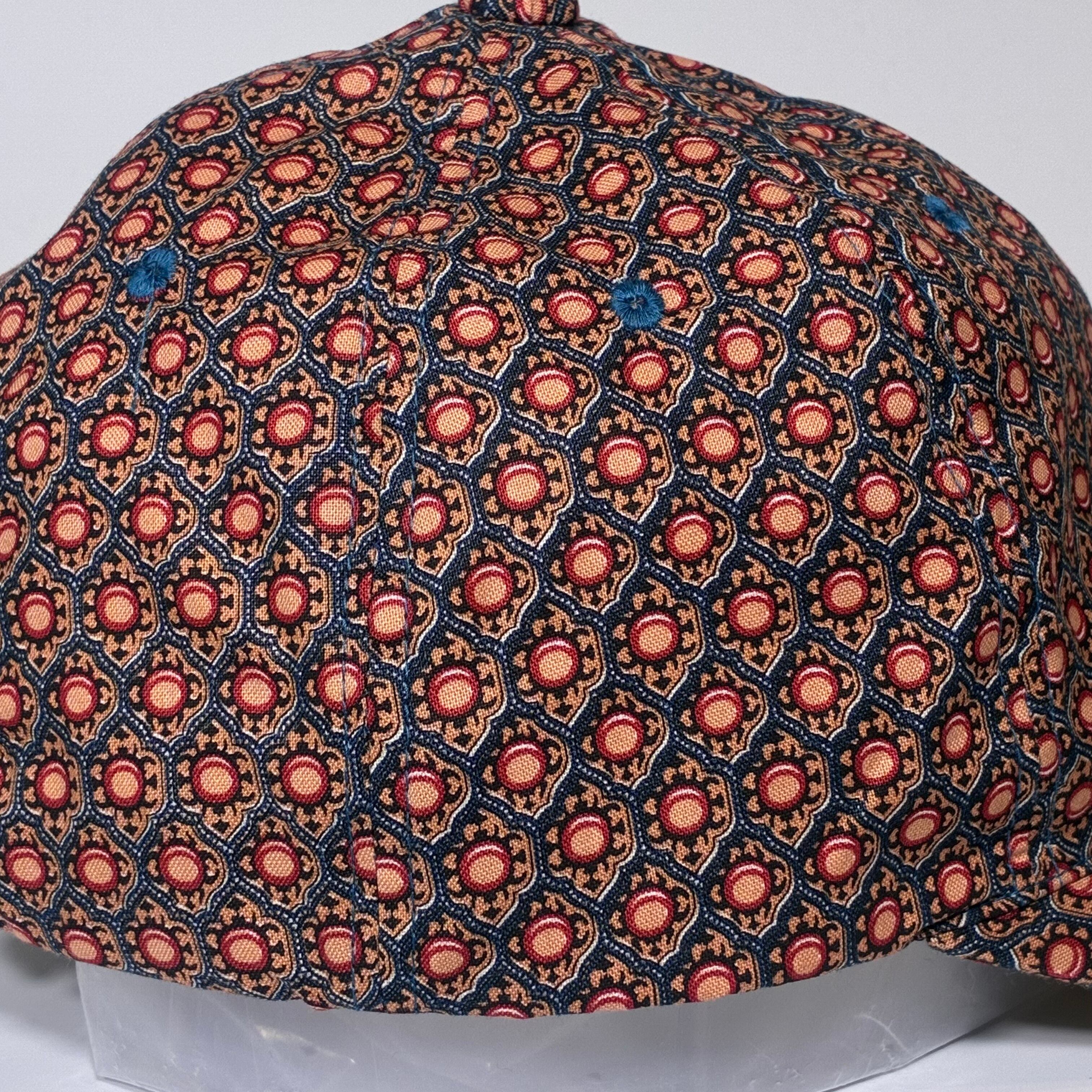 小振りな規則正しく並べられた模様がプリントされた帽子になります。
