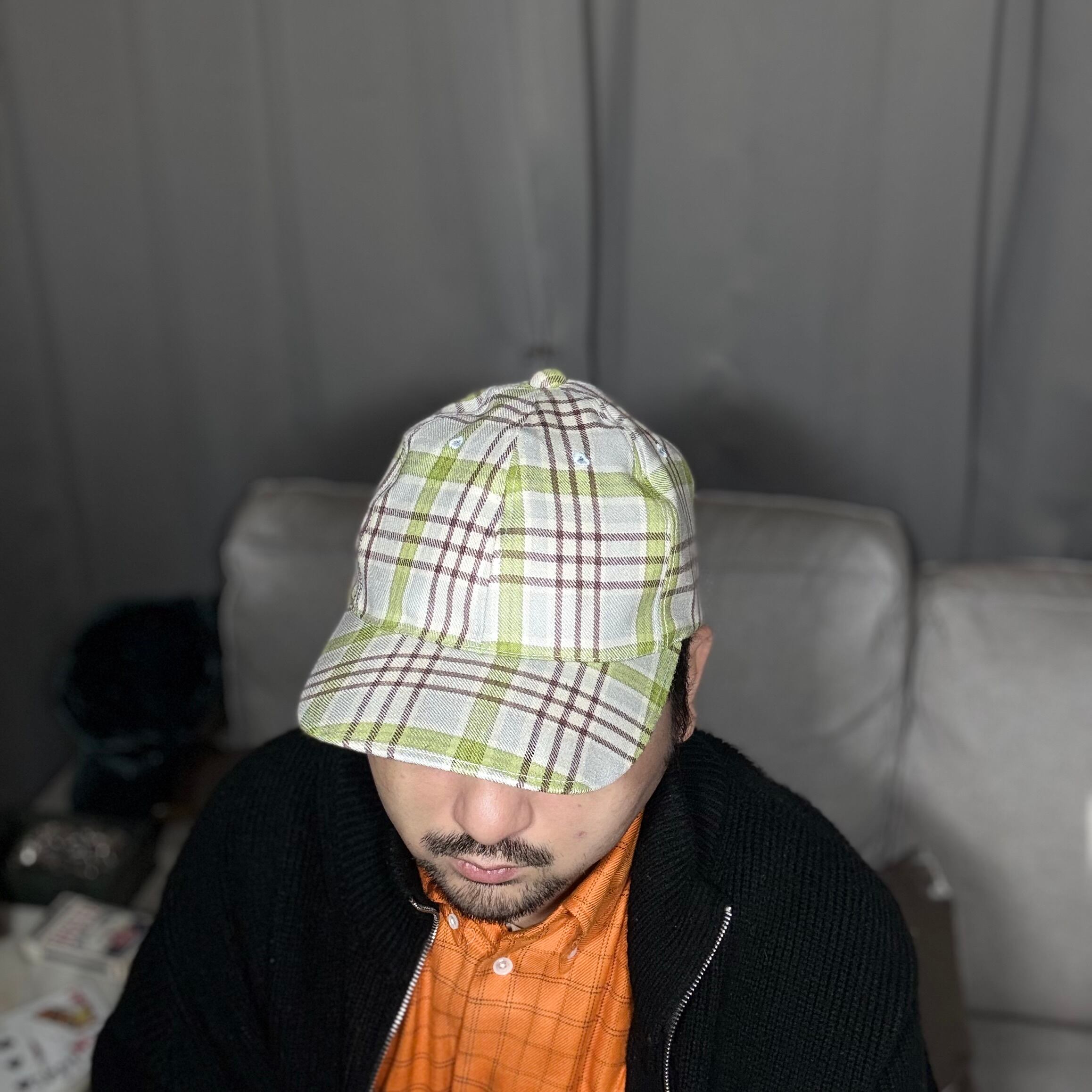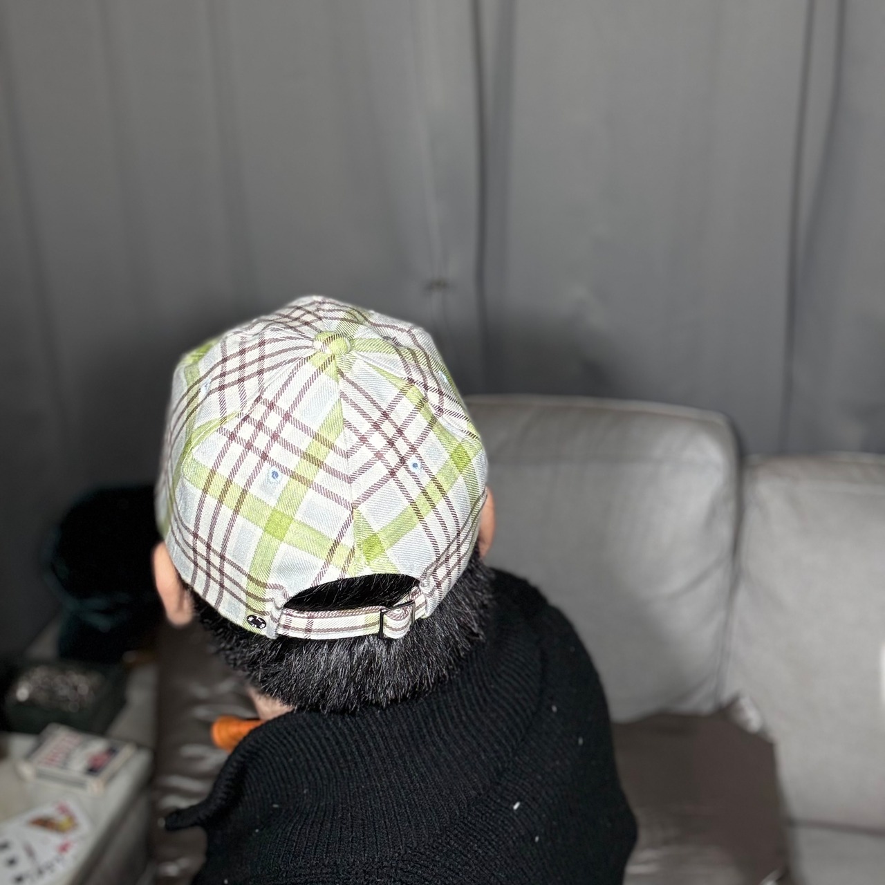 起毛感のあるフランネル生地で帽子に仕立てました。