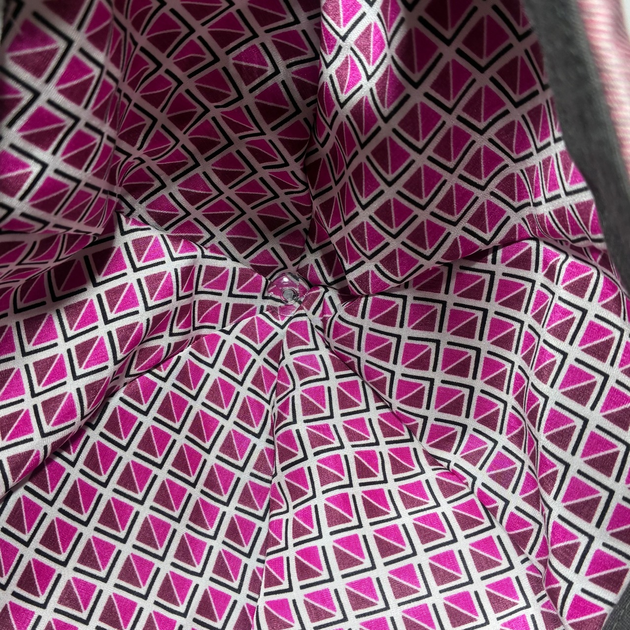 本来ドレスシャツに使われるような生地ですが、裏面がカジュアルな柄生地に切り替えられています。