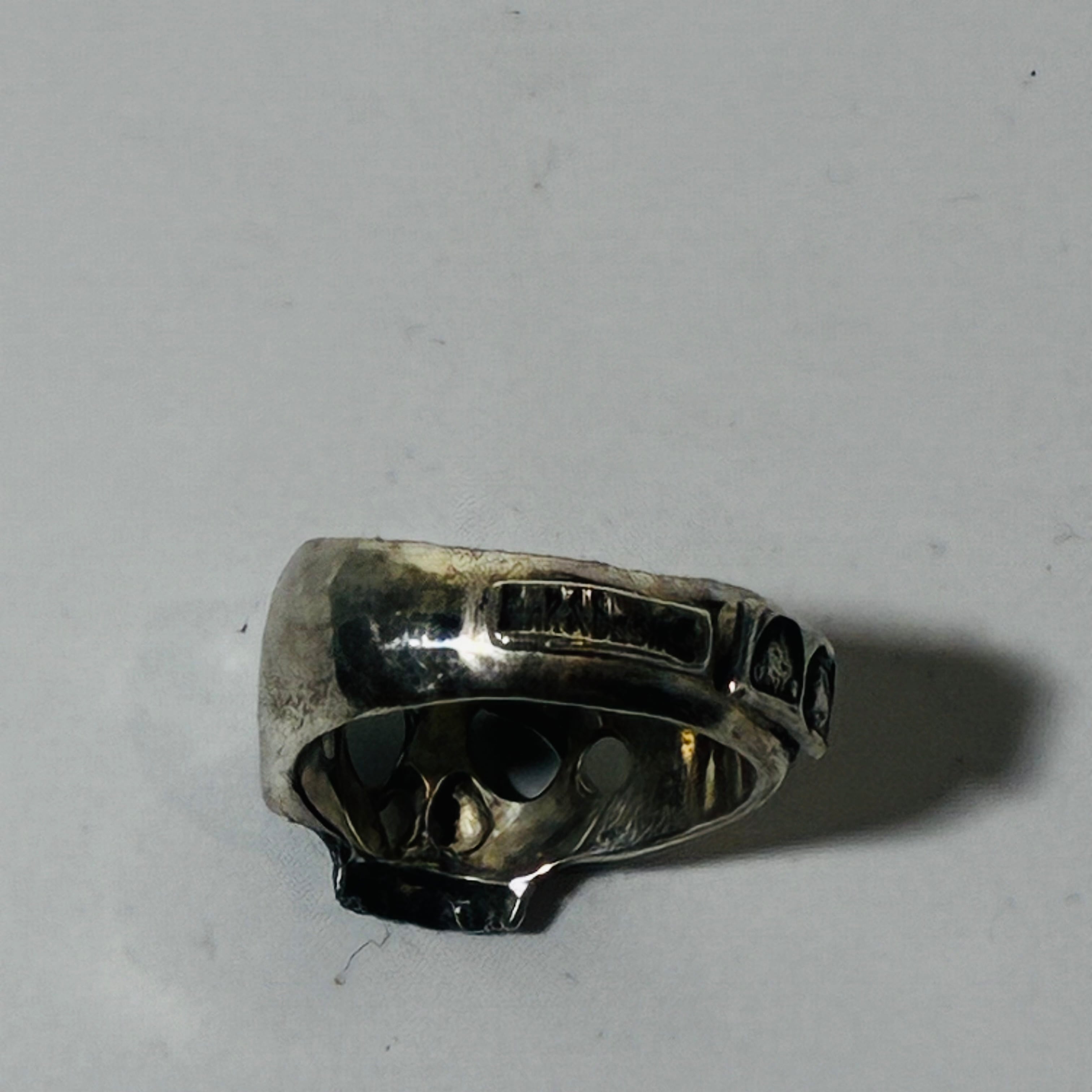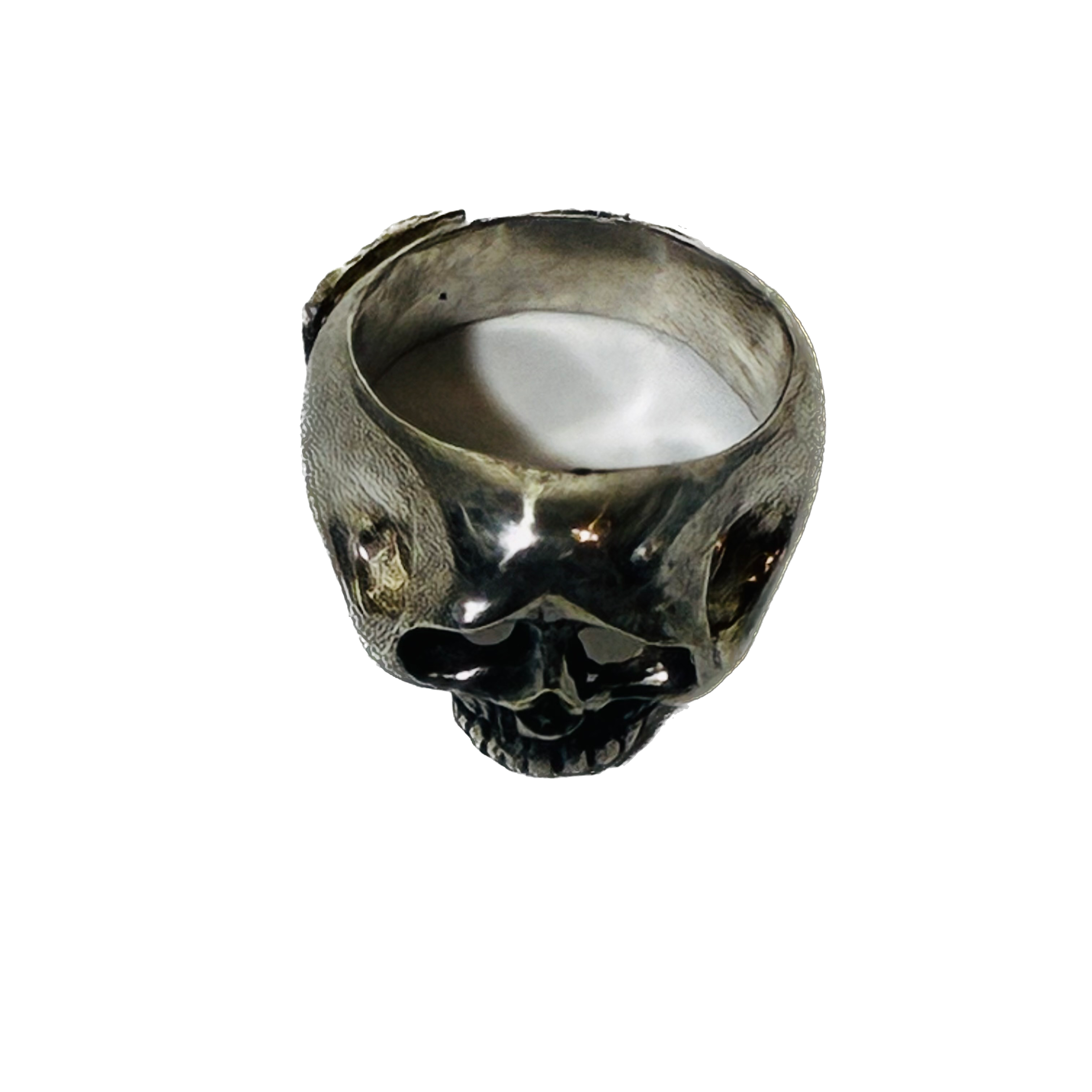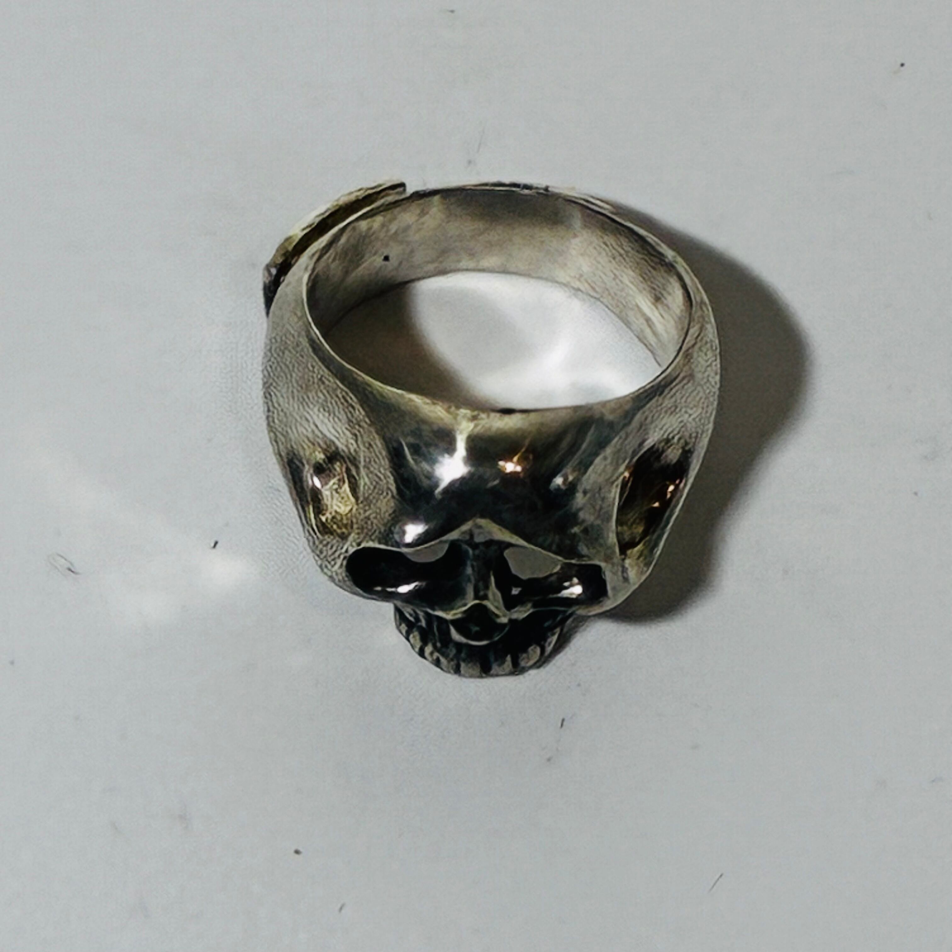ぽってりとした困り顔の骸骨がチャーミングな指輪です。