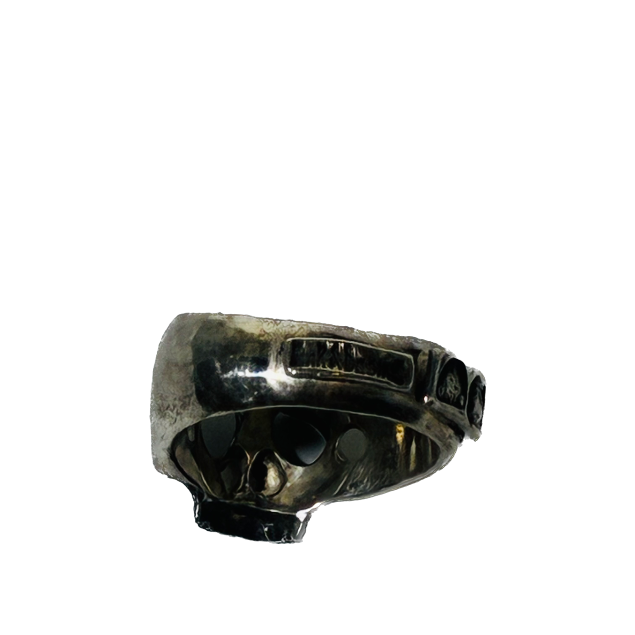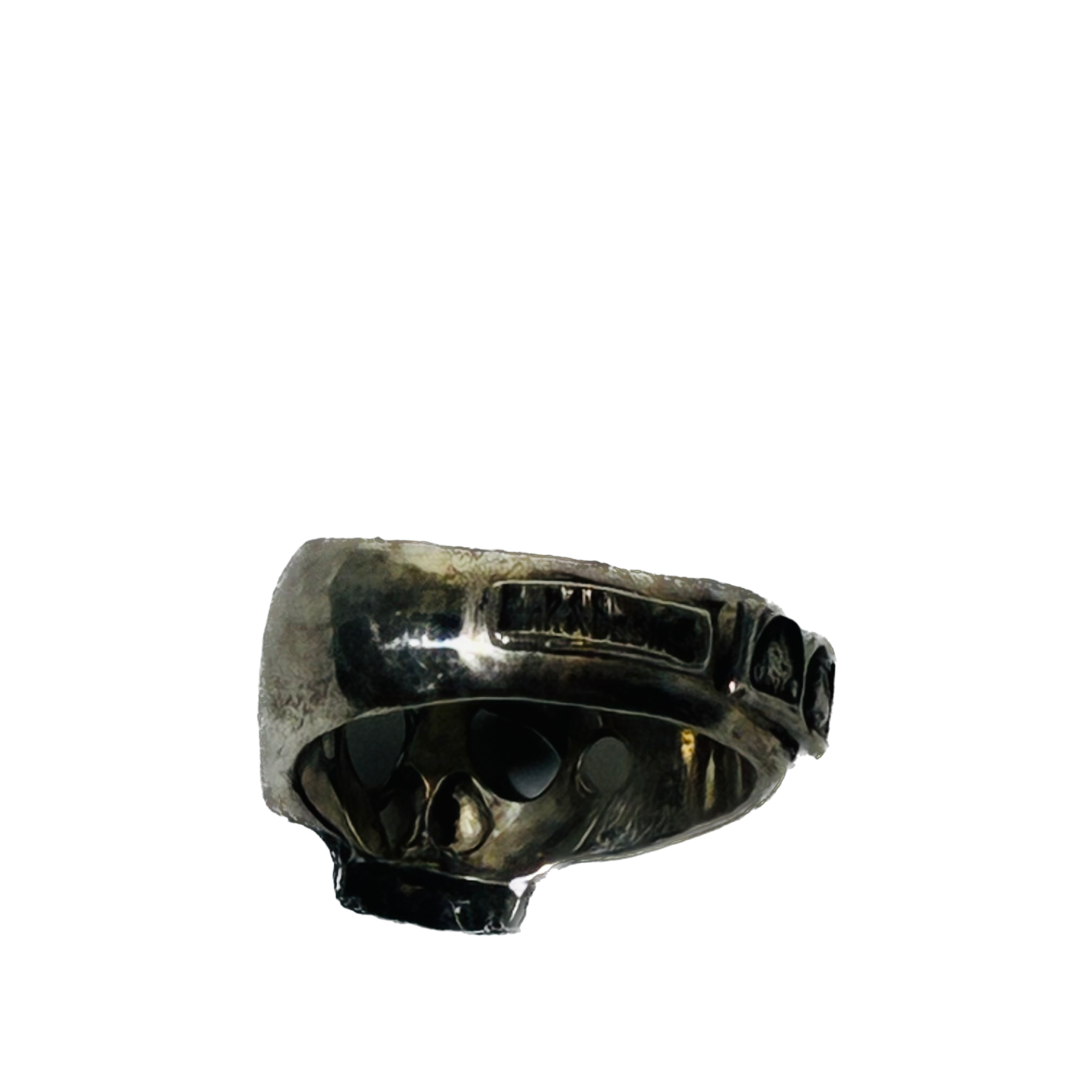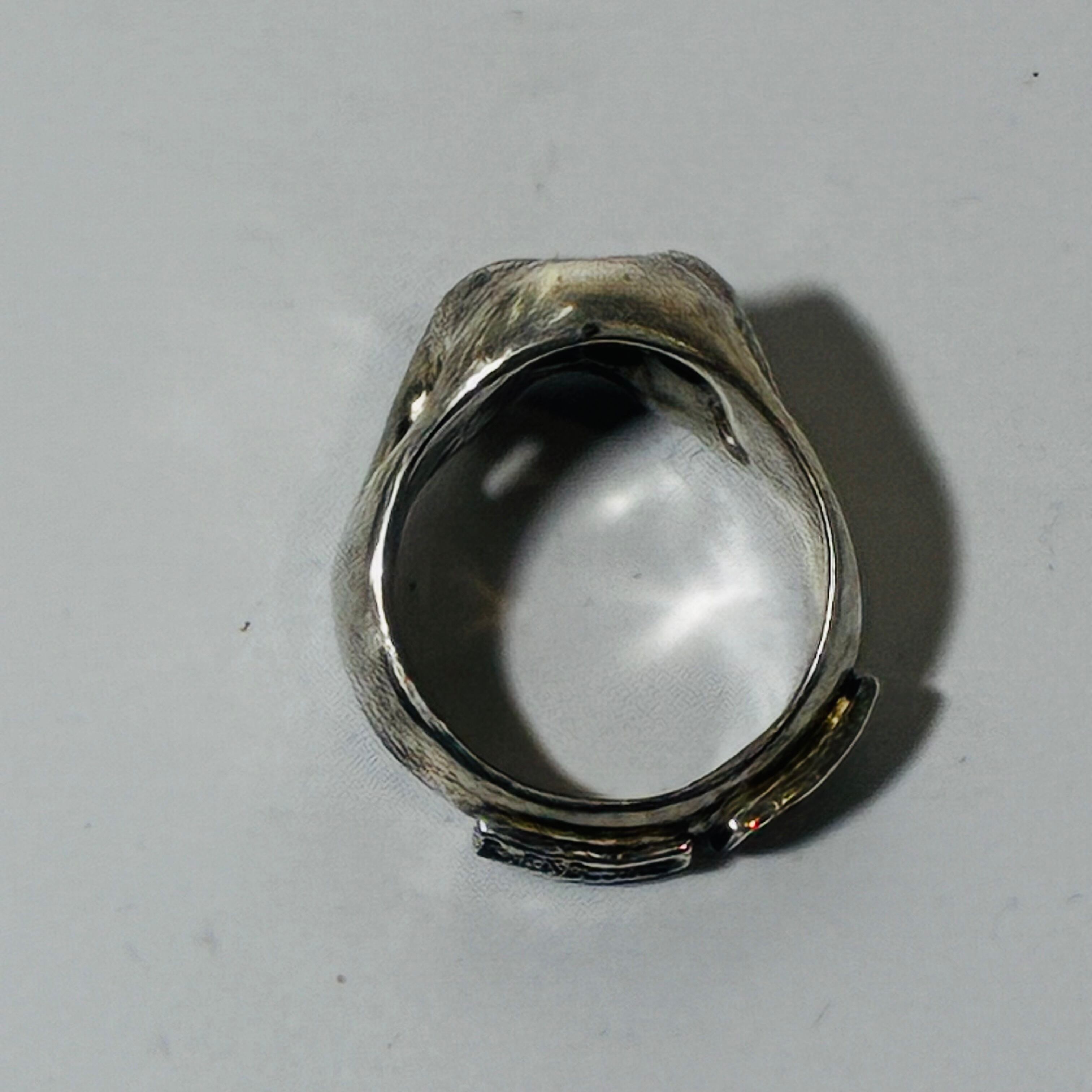 ぽってりとした困り顔の骸骨がチャーミングな指輪です。