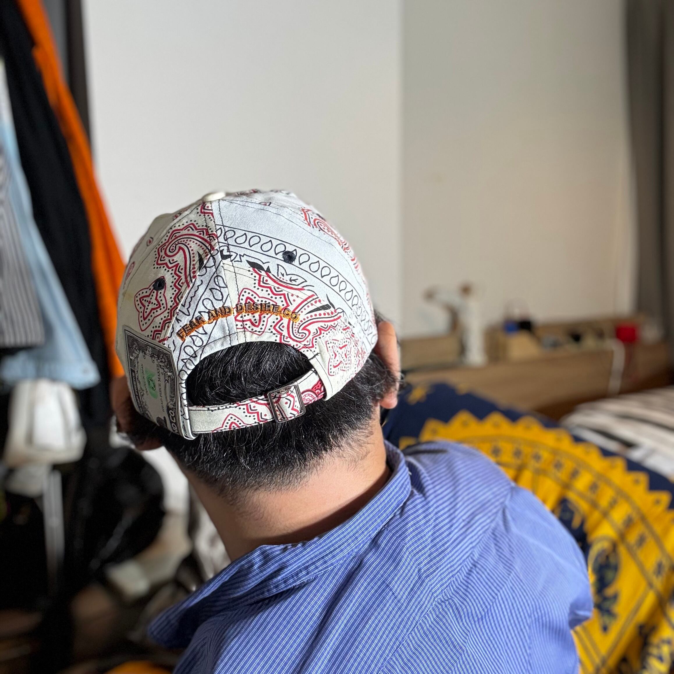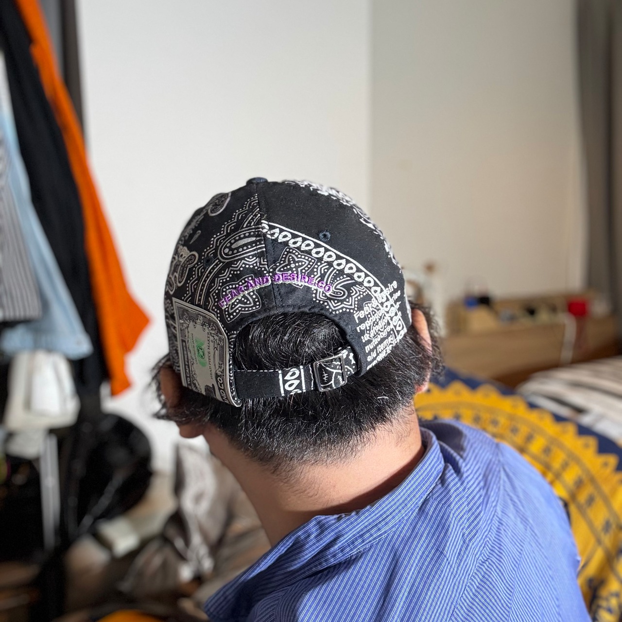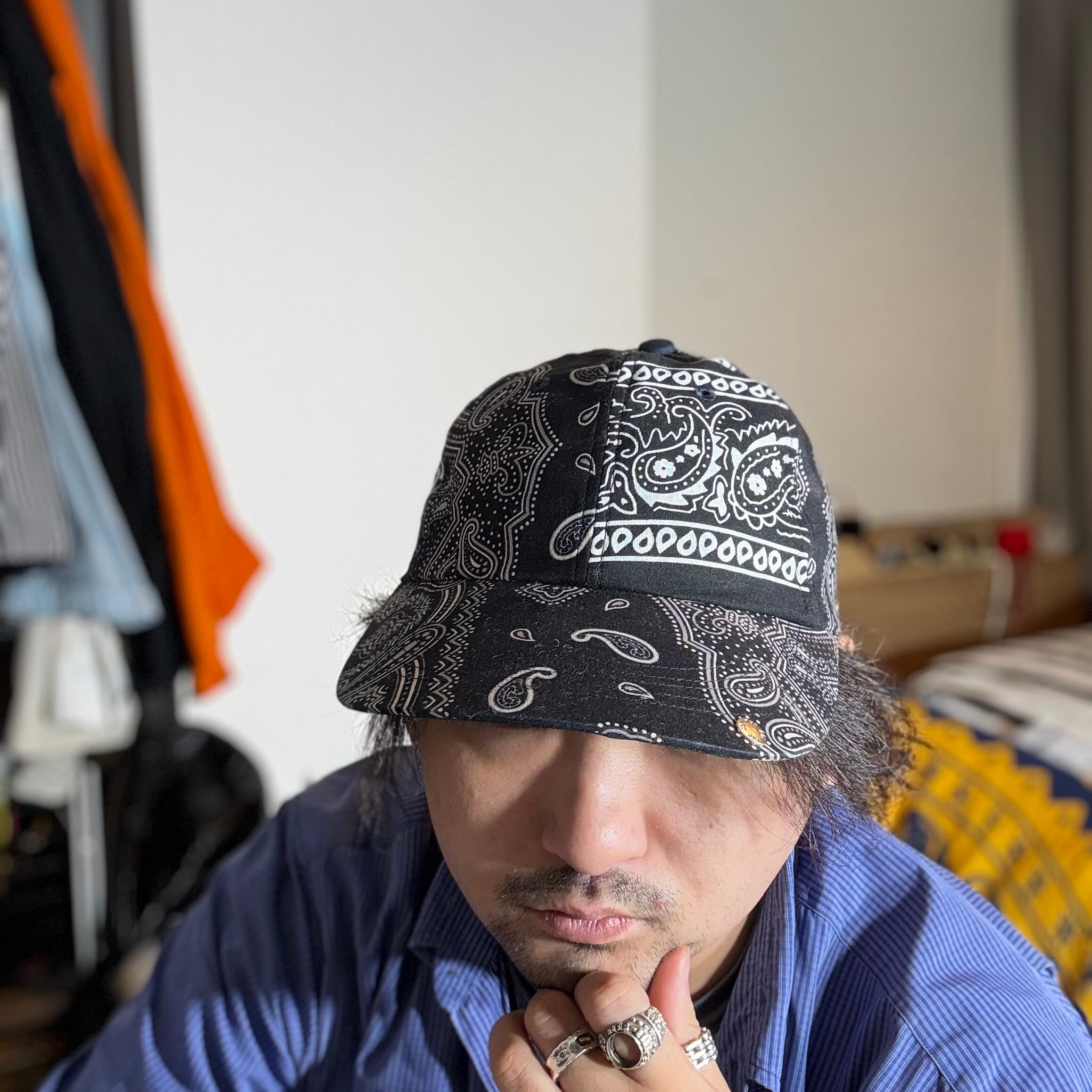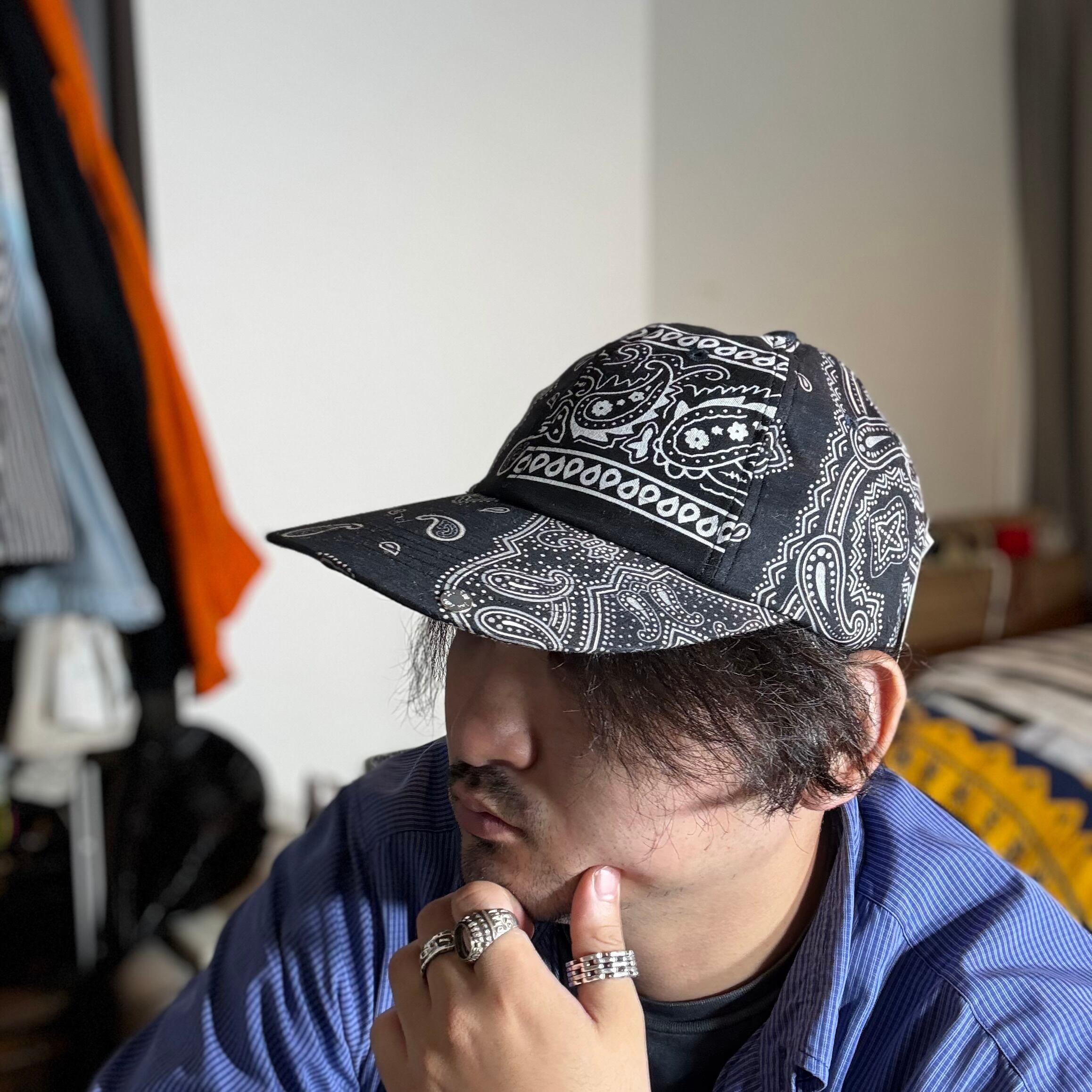 大小様々なバンダナ生地を組み合わせた6パネルキャップになります。