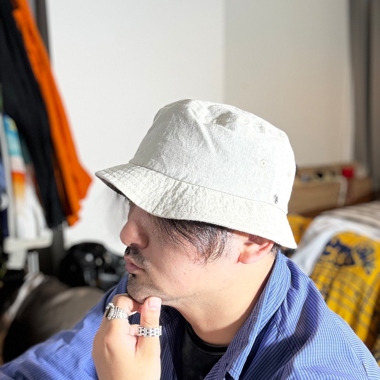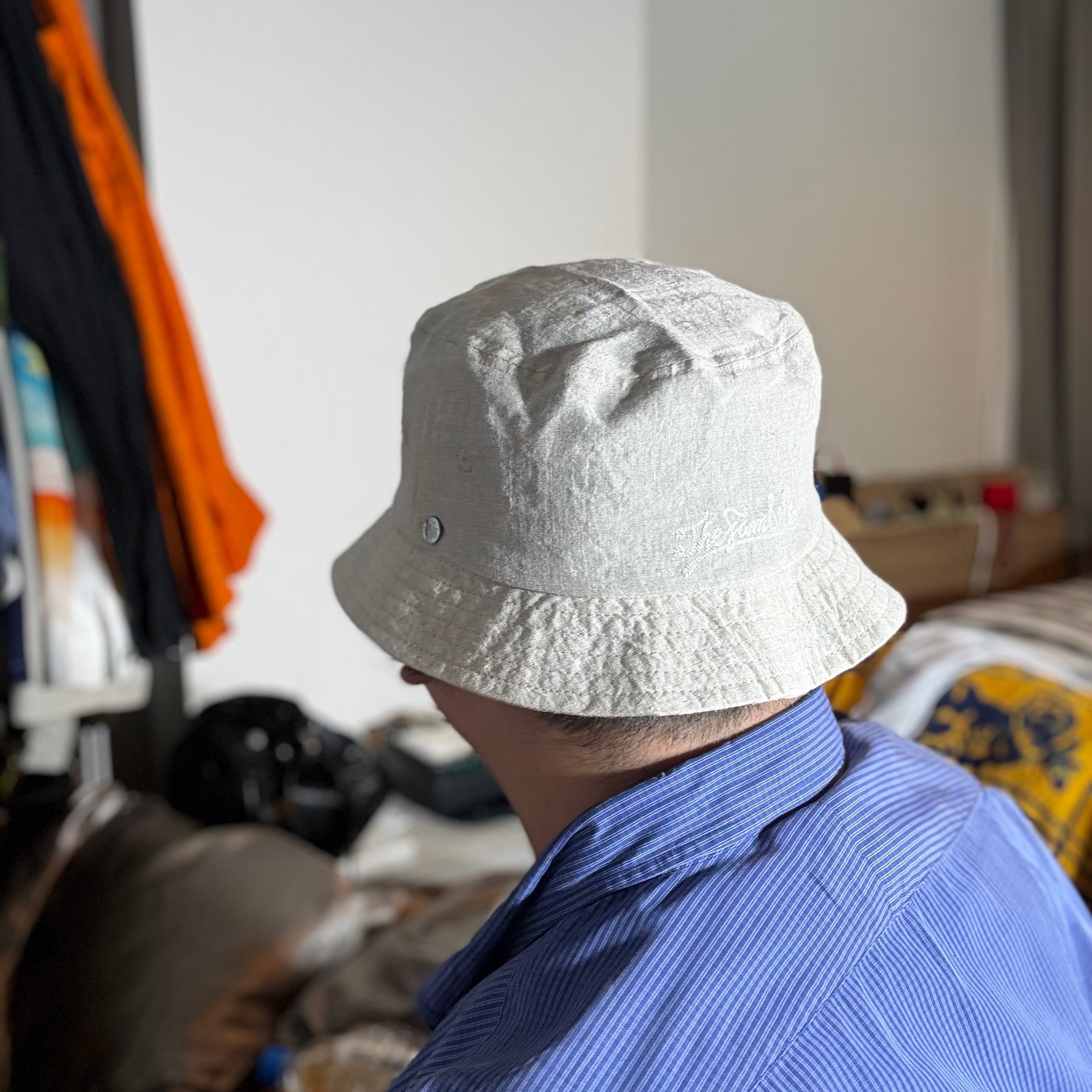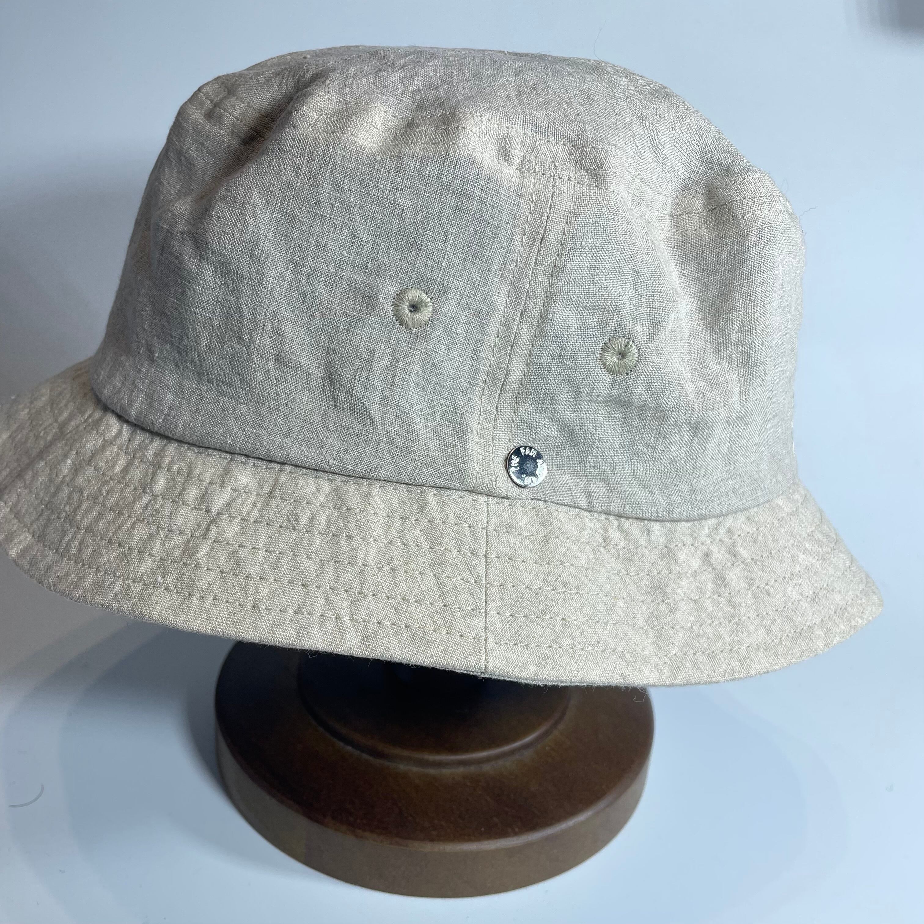 スーツ地に使われるリネン生地をクラシックなバケットハットに仕立てました。