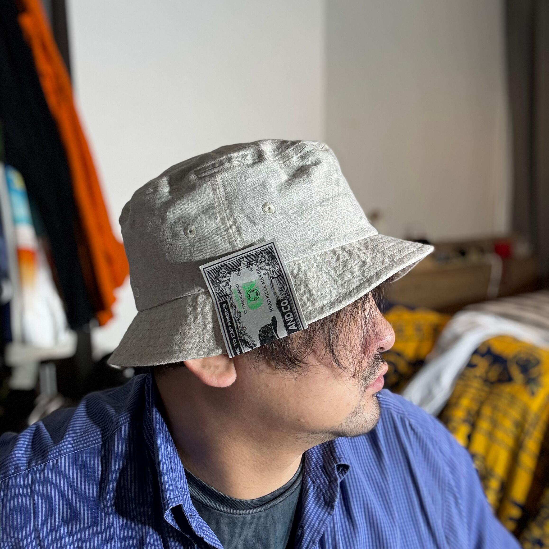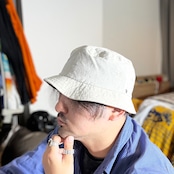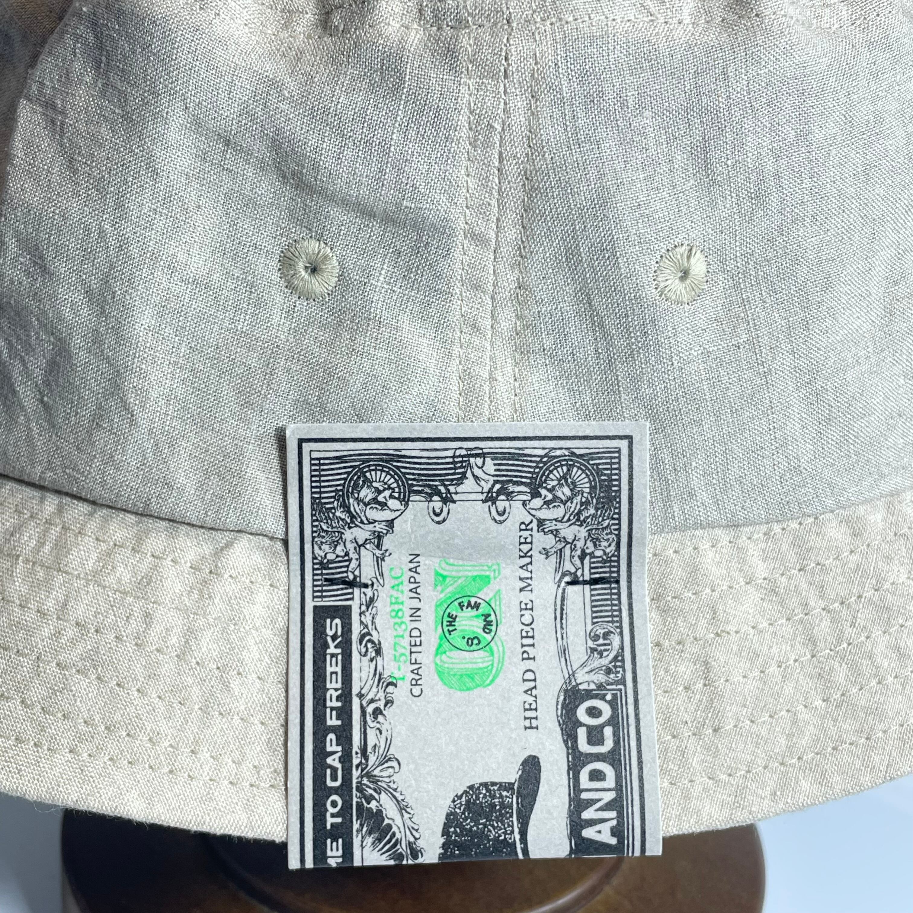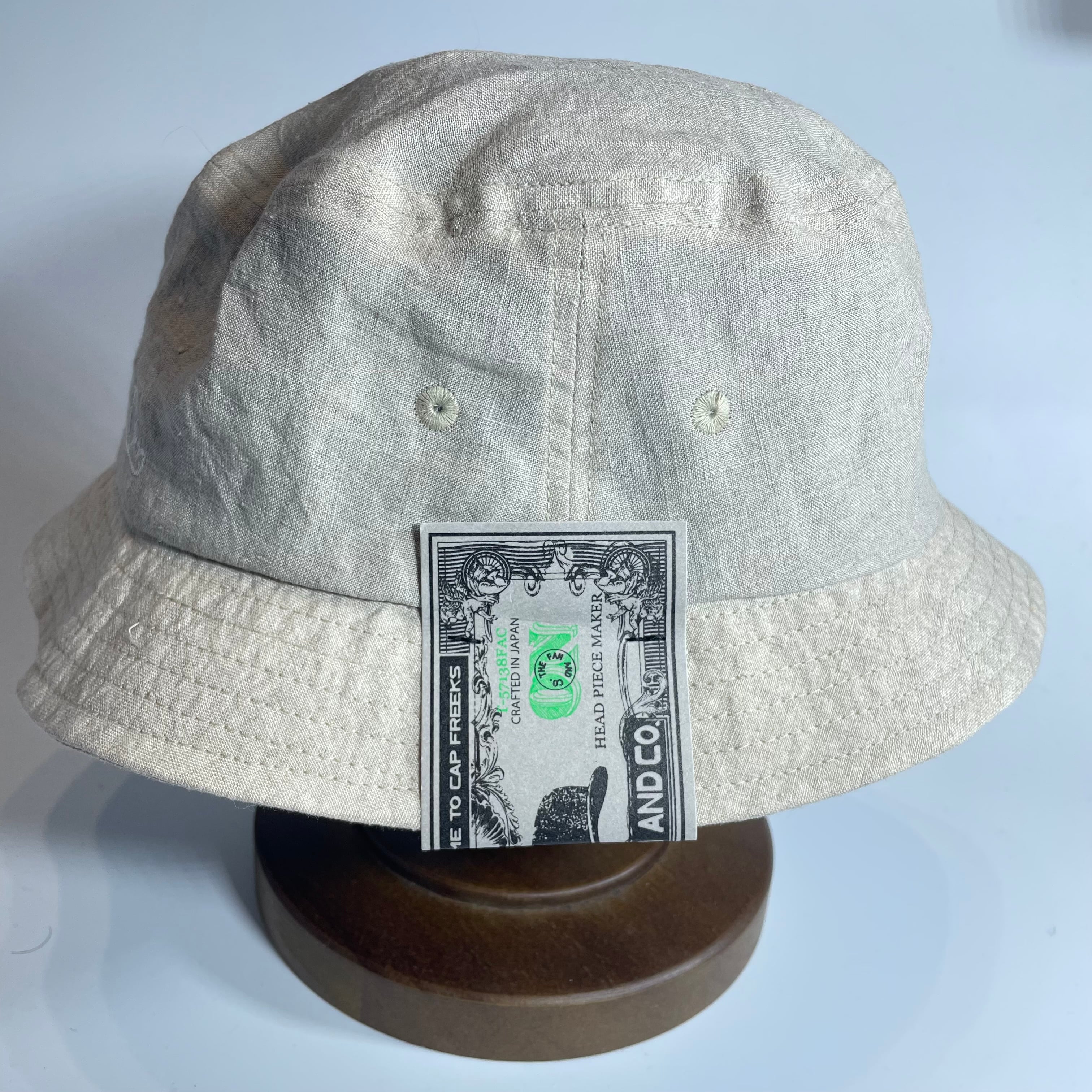 スーツ地に使われるリネン生地をクラシックなバケットハットに仕立てました。