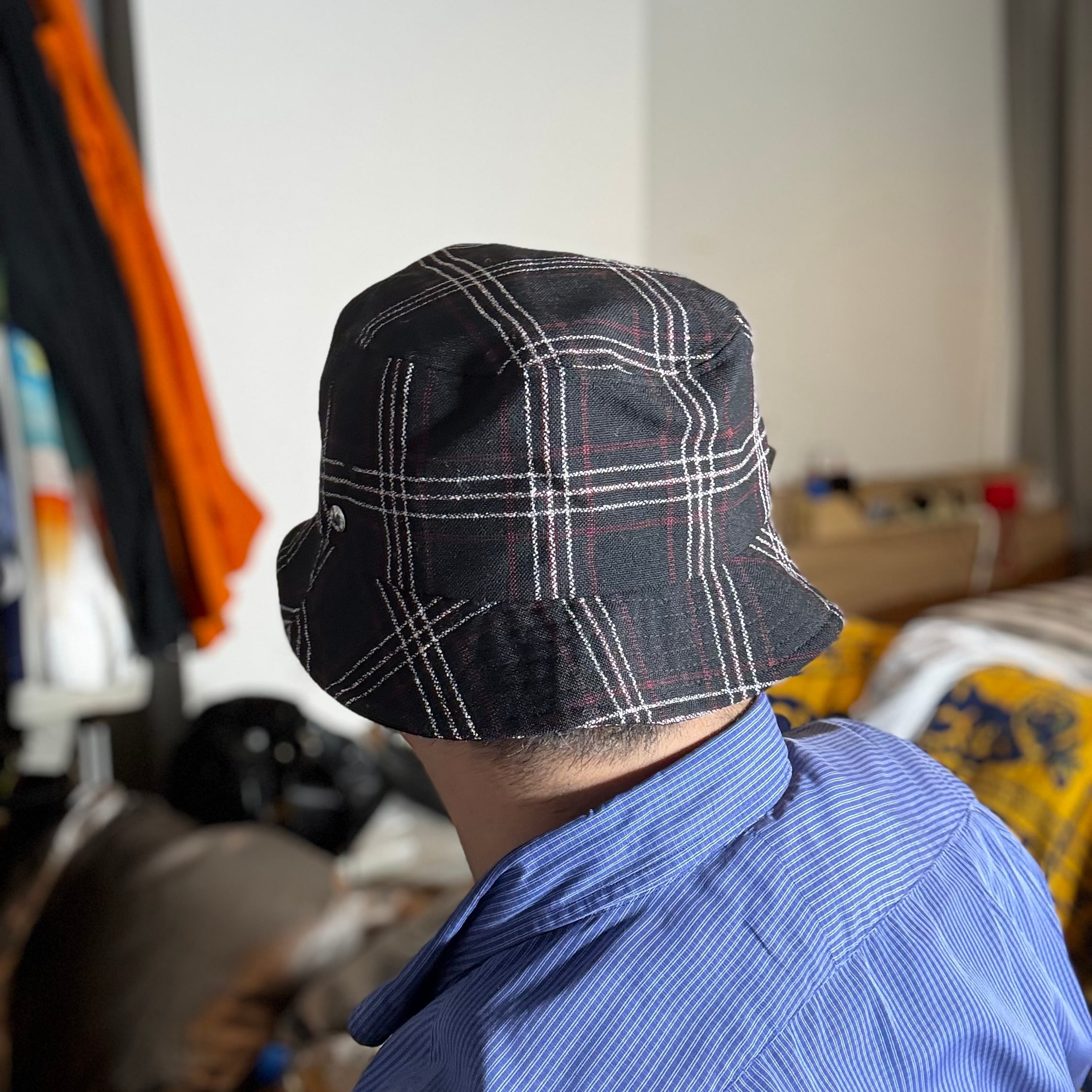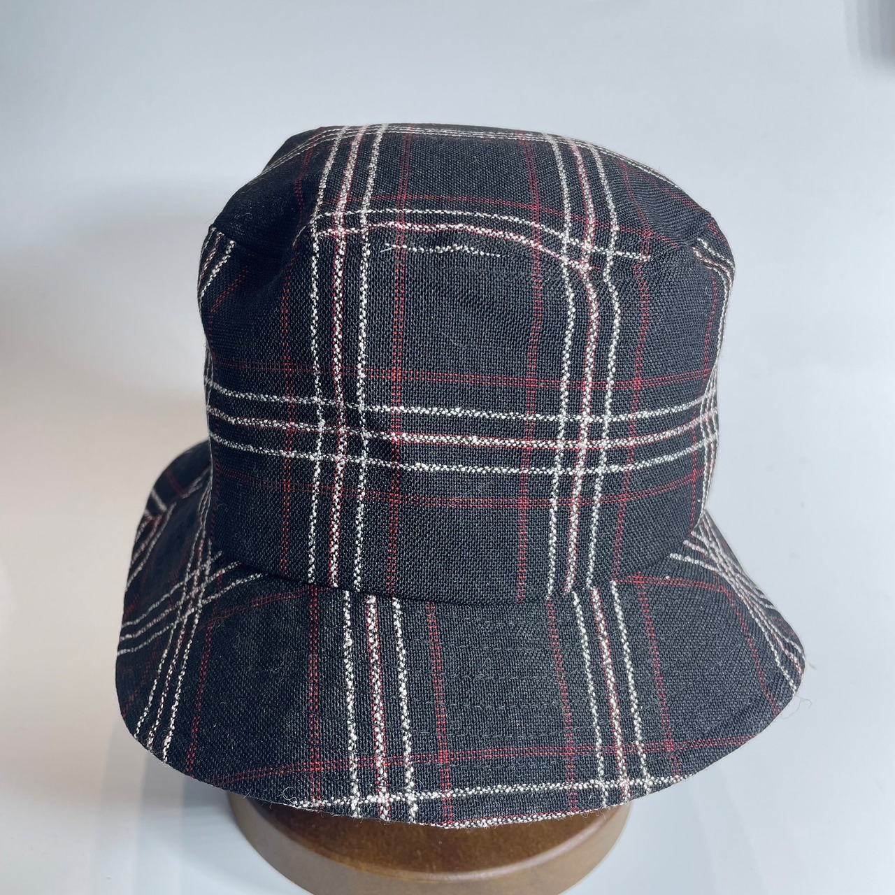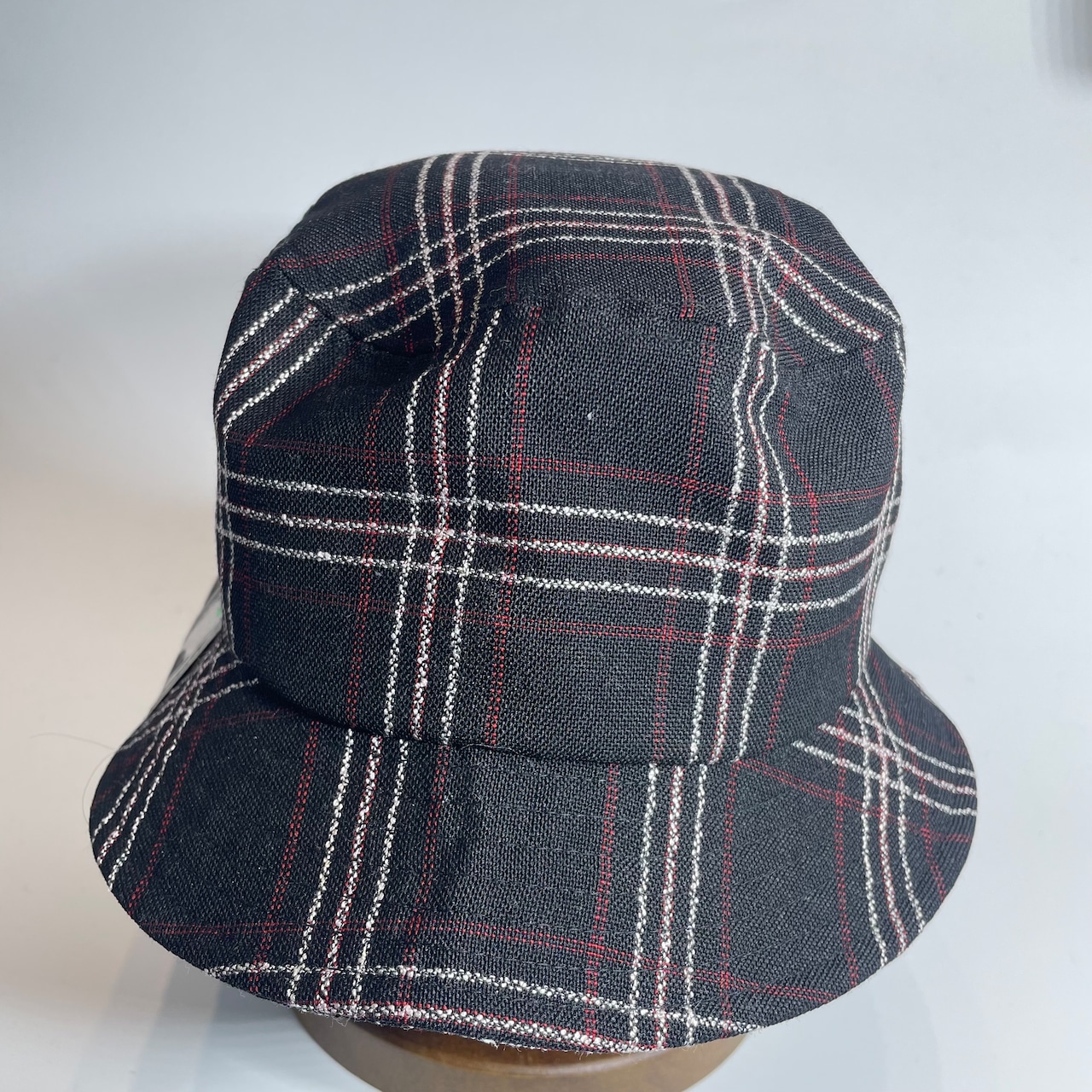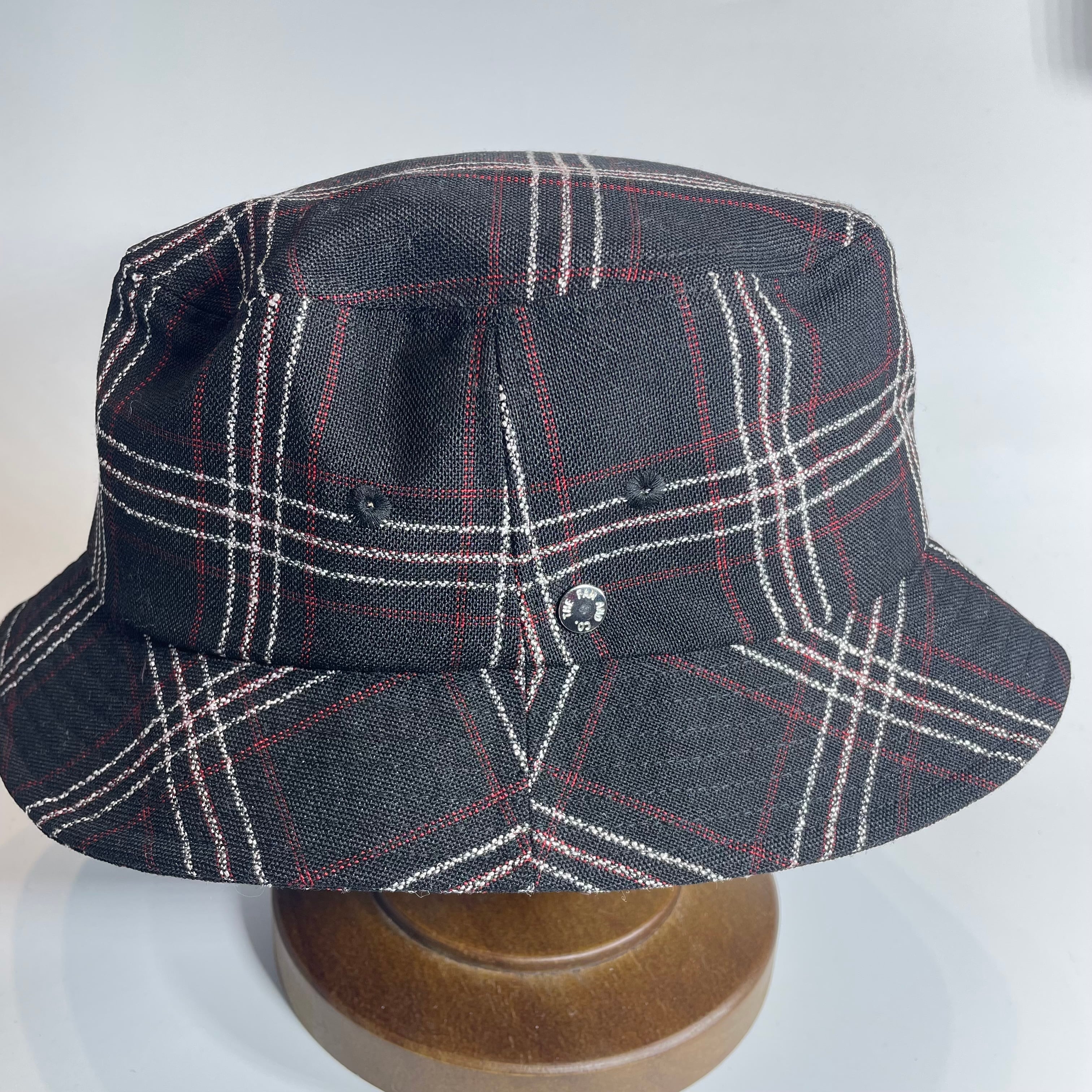 フォーマルな生地をあえてカジュアルなバケットハットに落とし込みました。