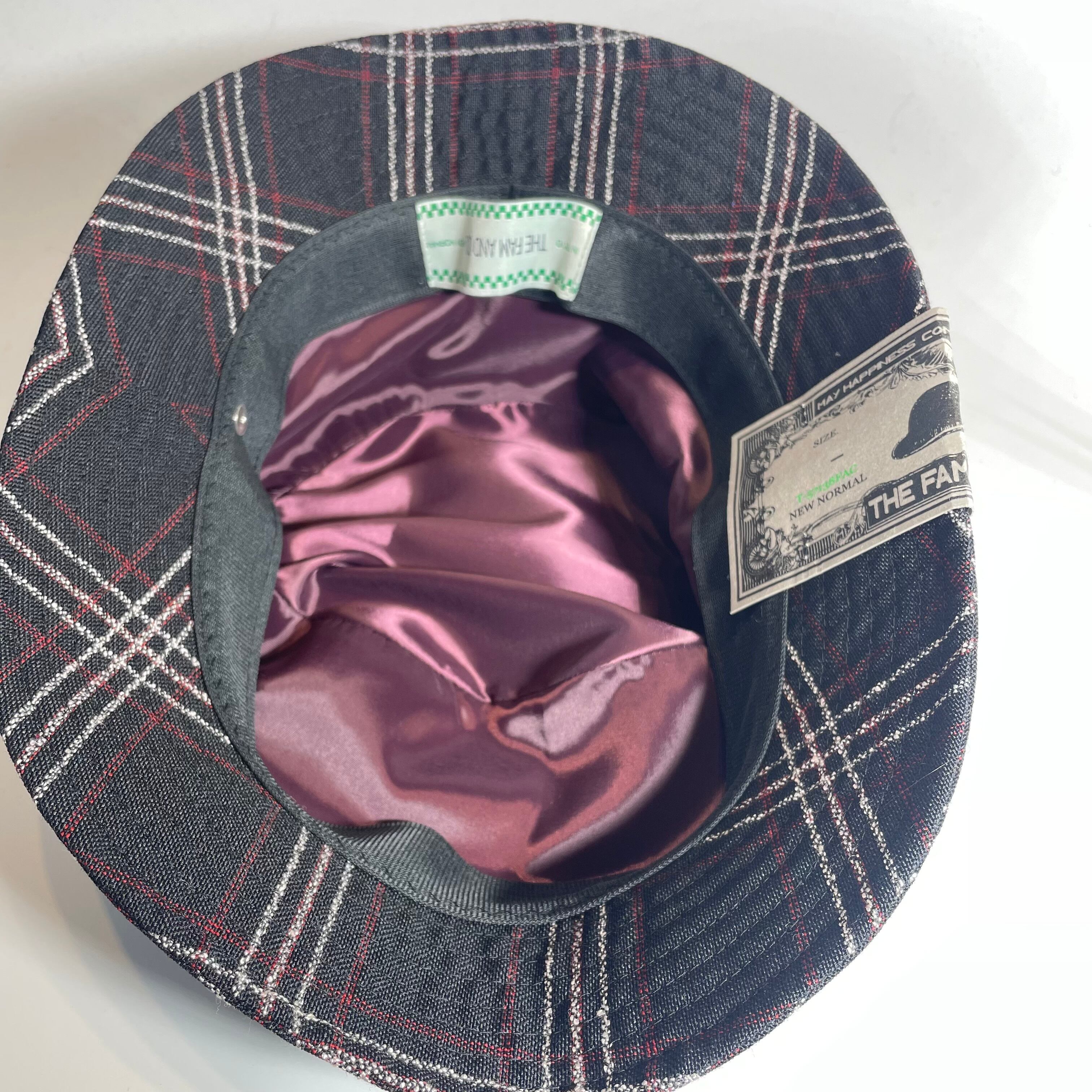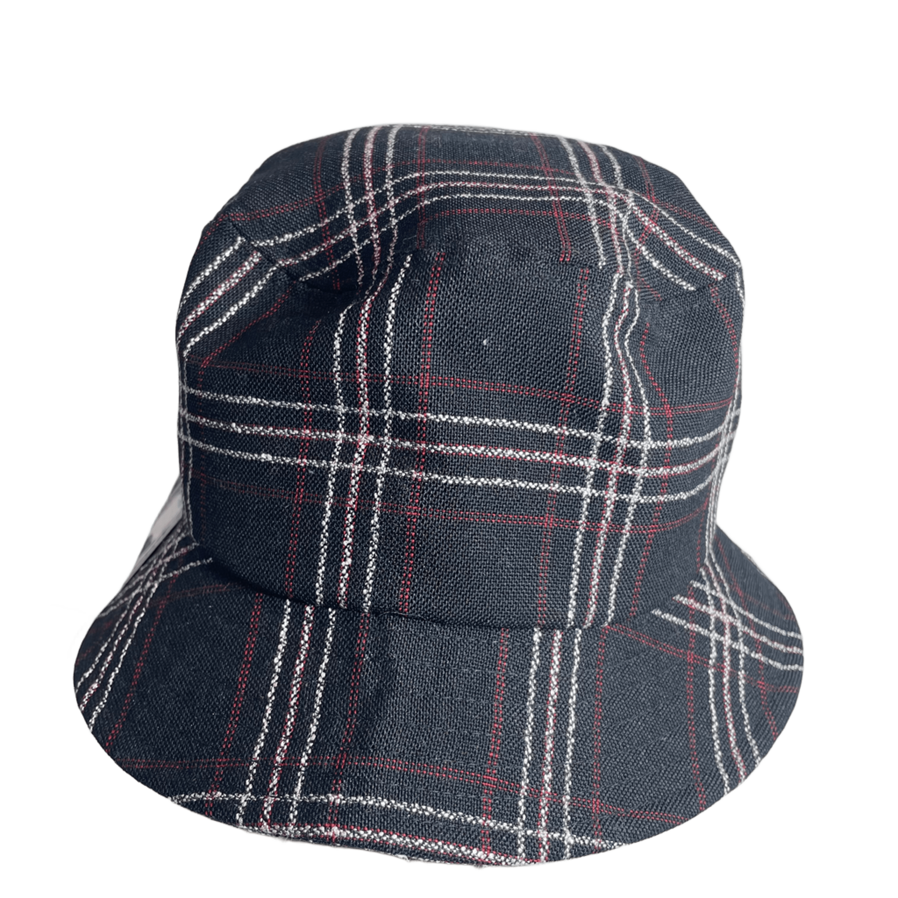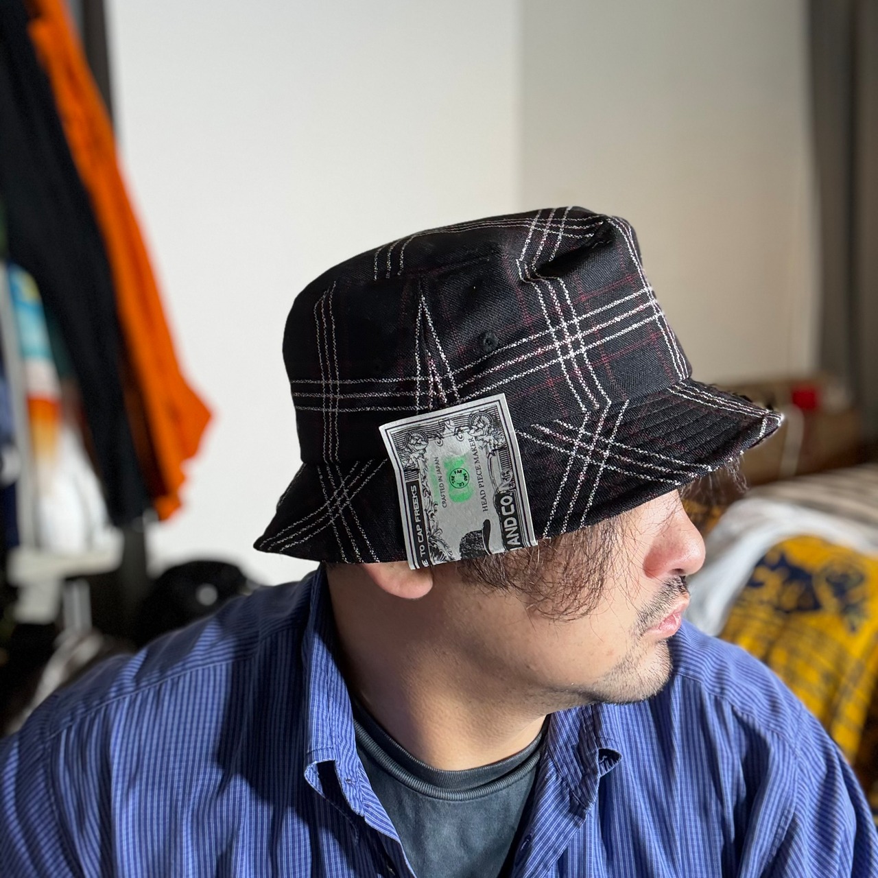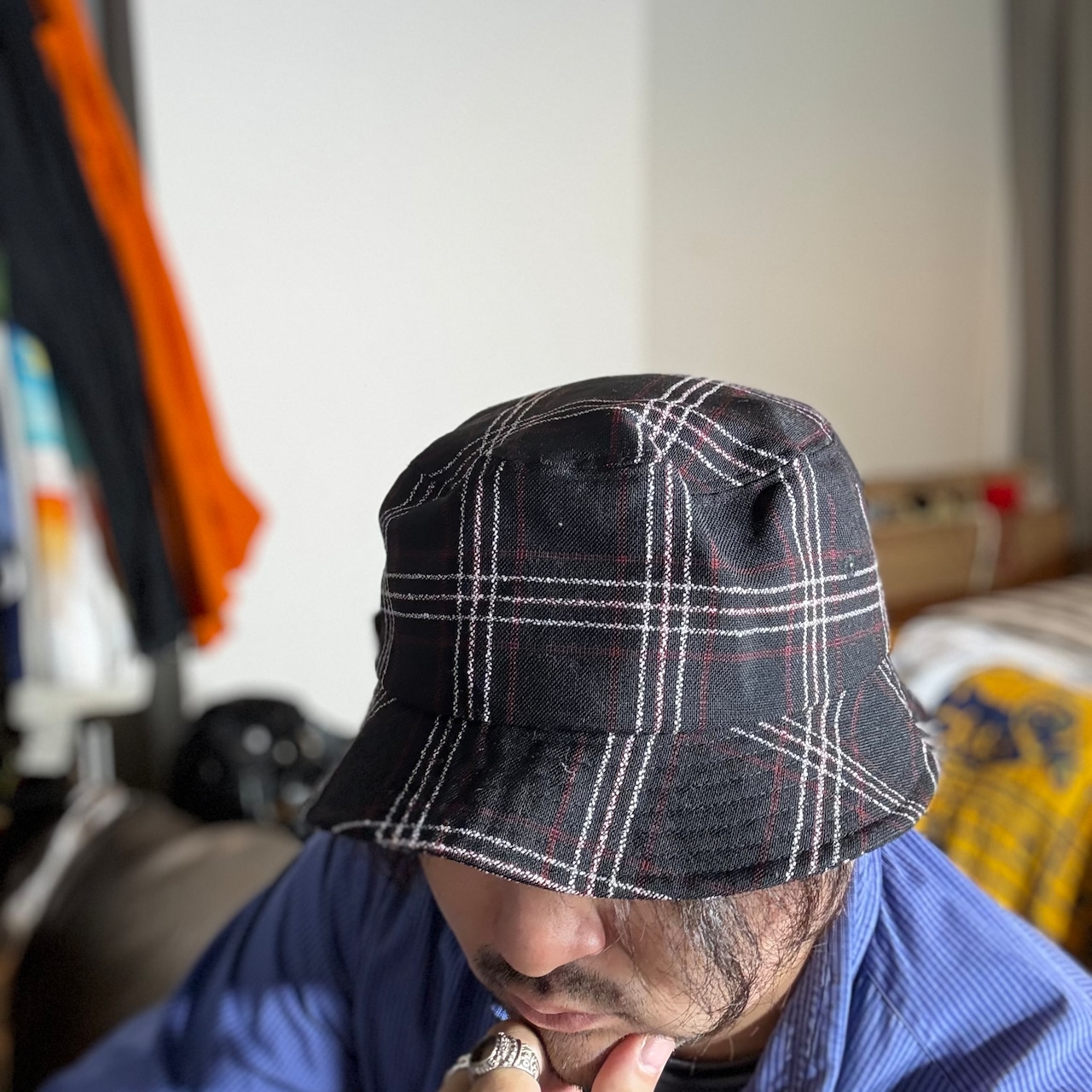 フォーマルな生地をあえてカジュアルなバケットハットに落とし込みました。