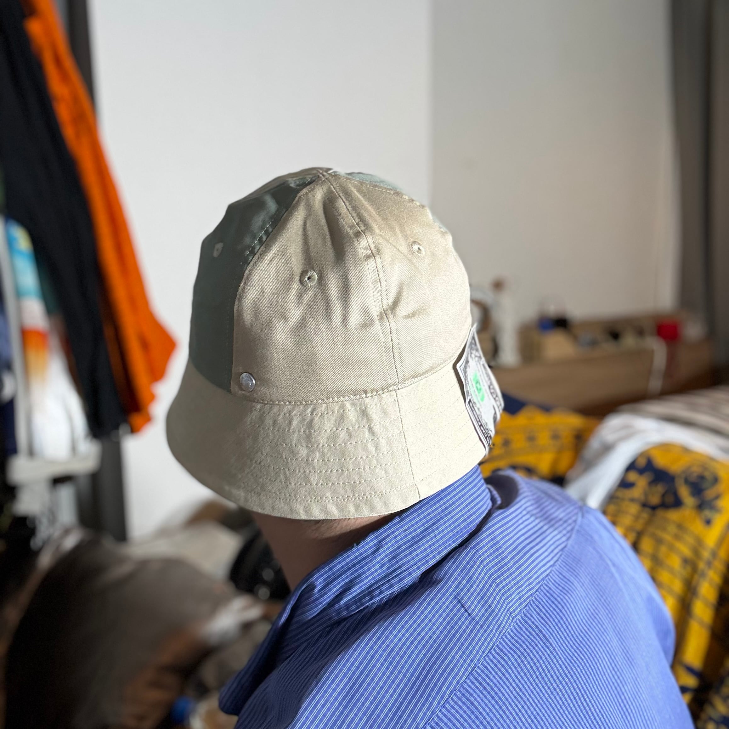角度によって見え方の変わるシャンブレー生地でメトロハットを仕立てました。