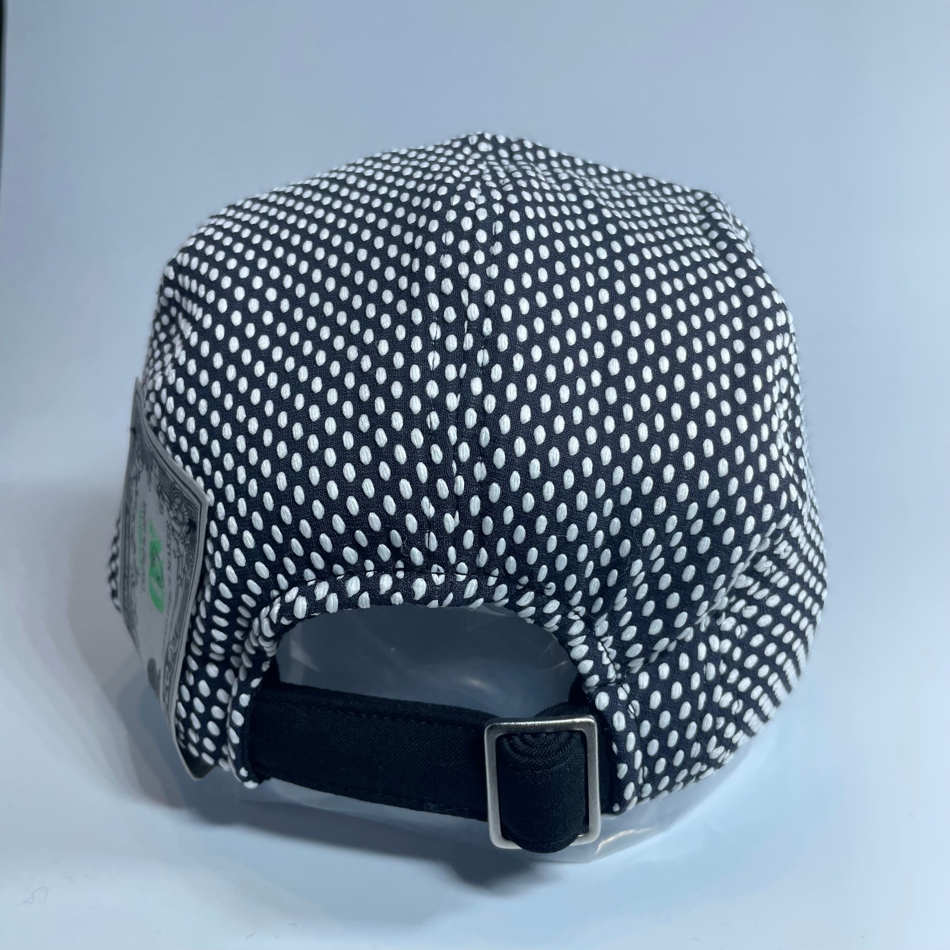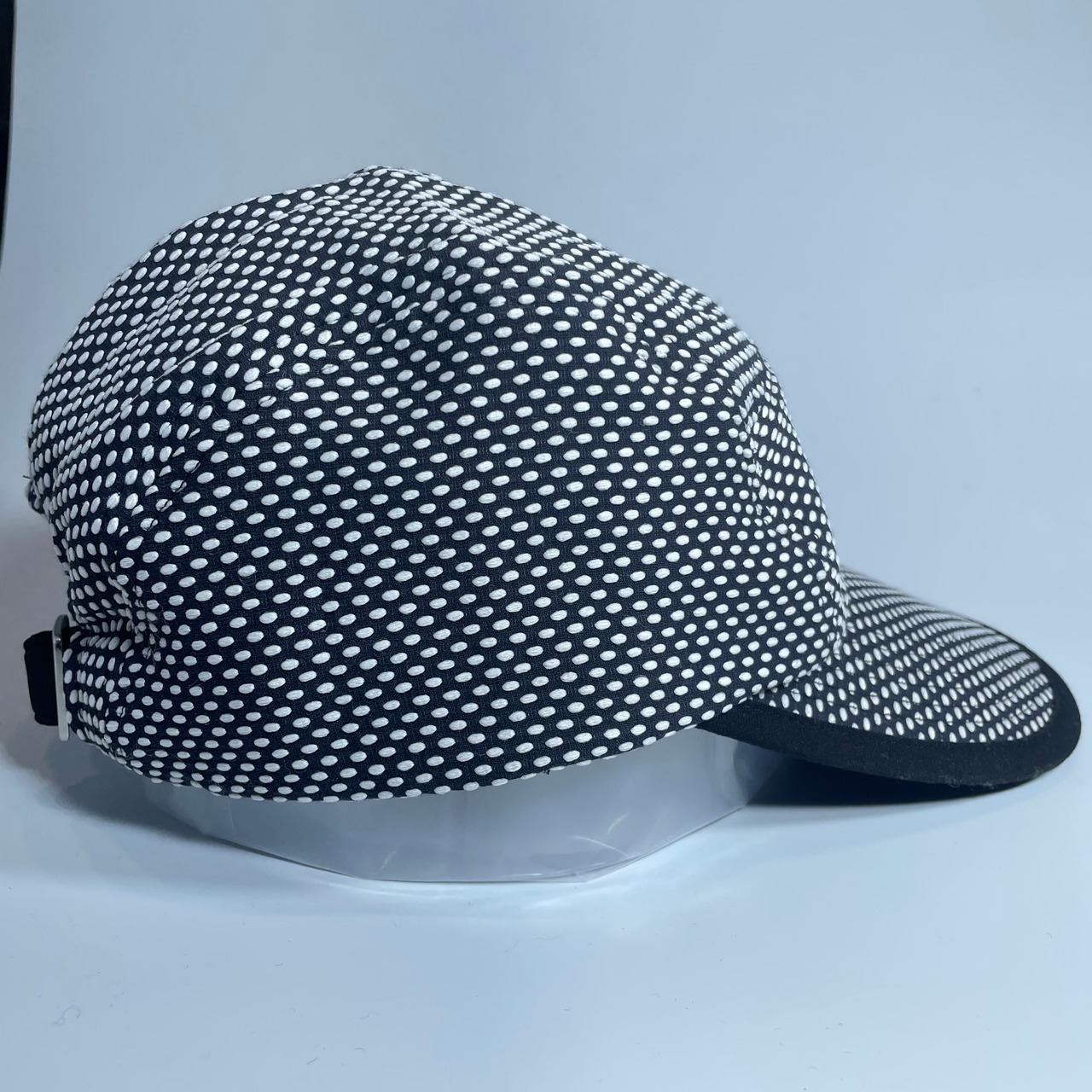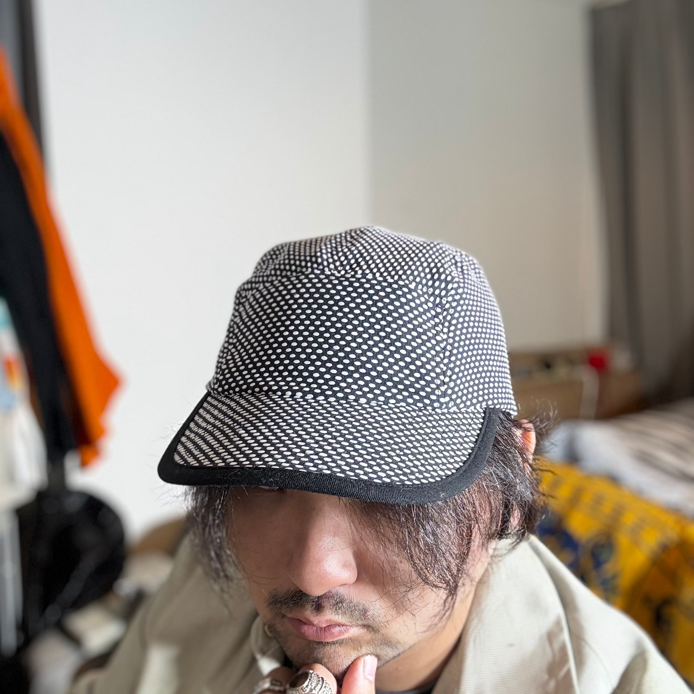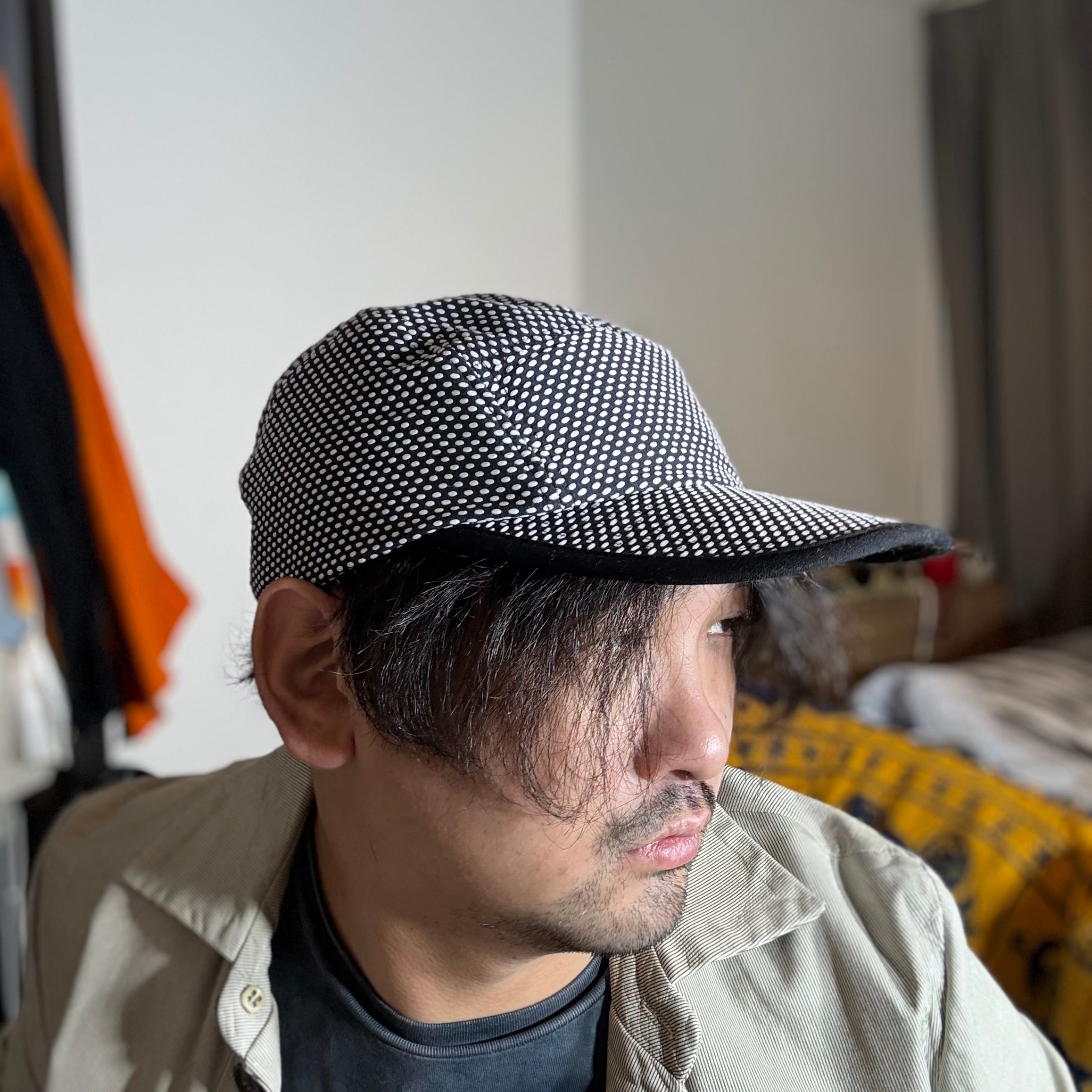 ステッチ模様のストライプ柄が特徴的な生地で仕立てられたジェットキャップになります。
