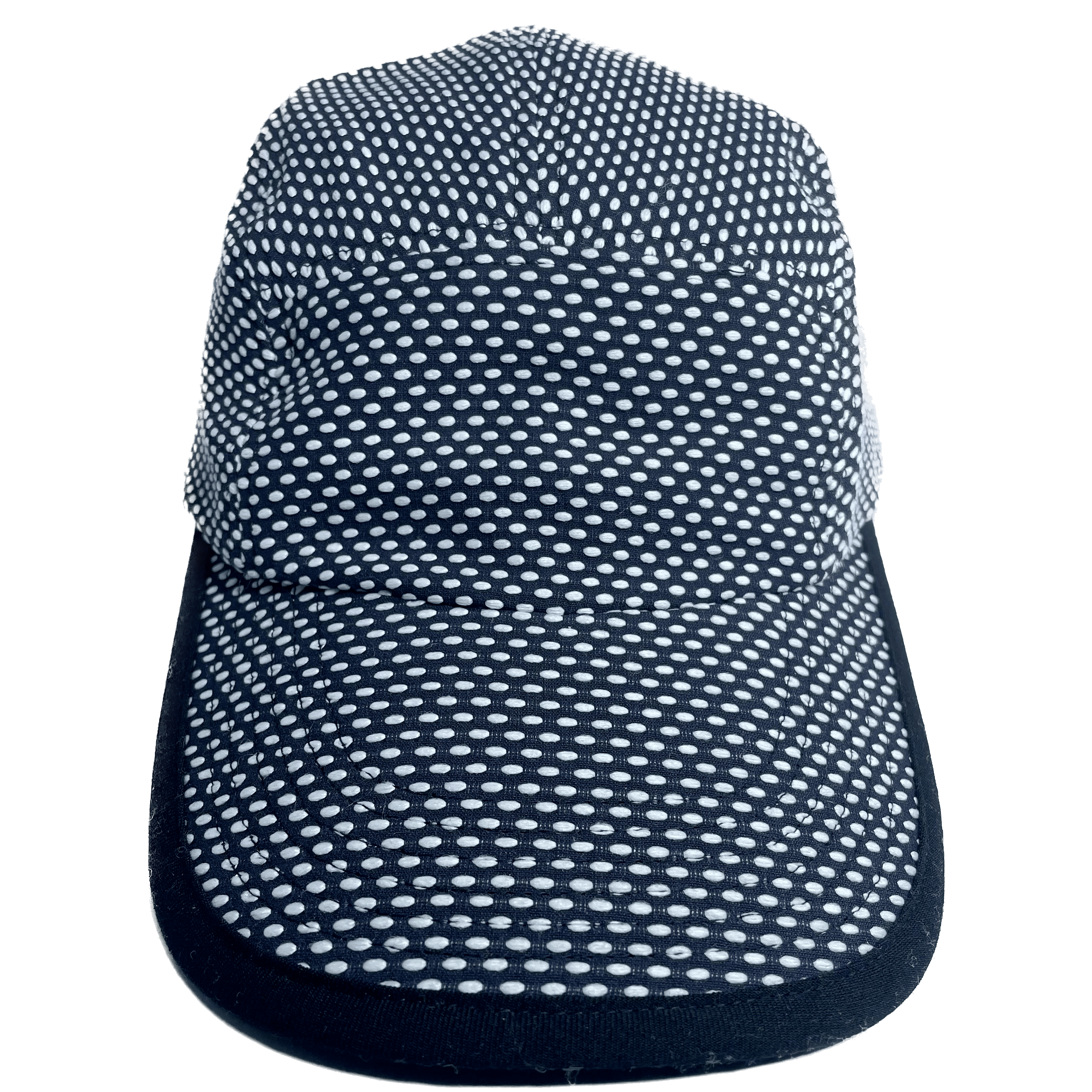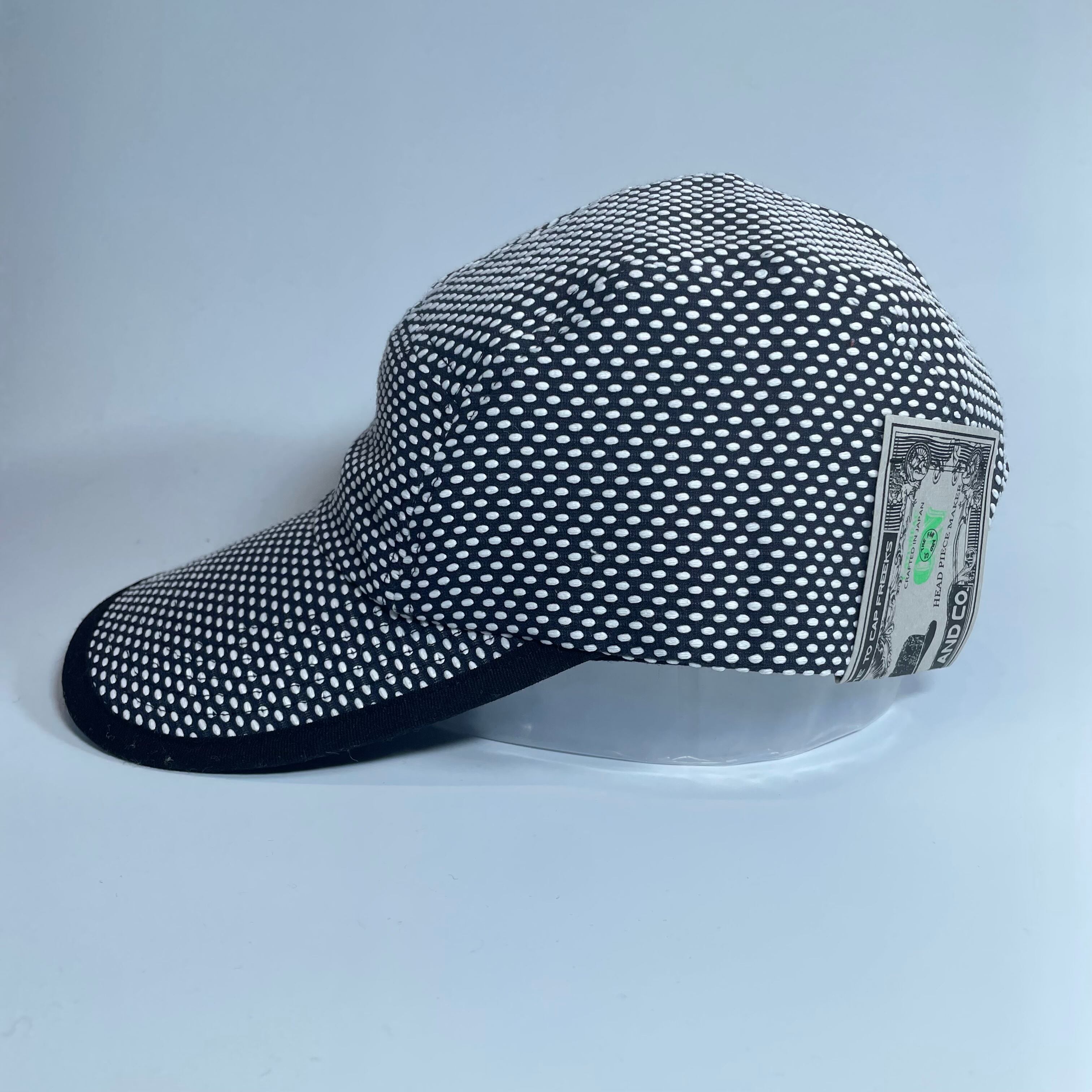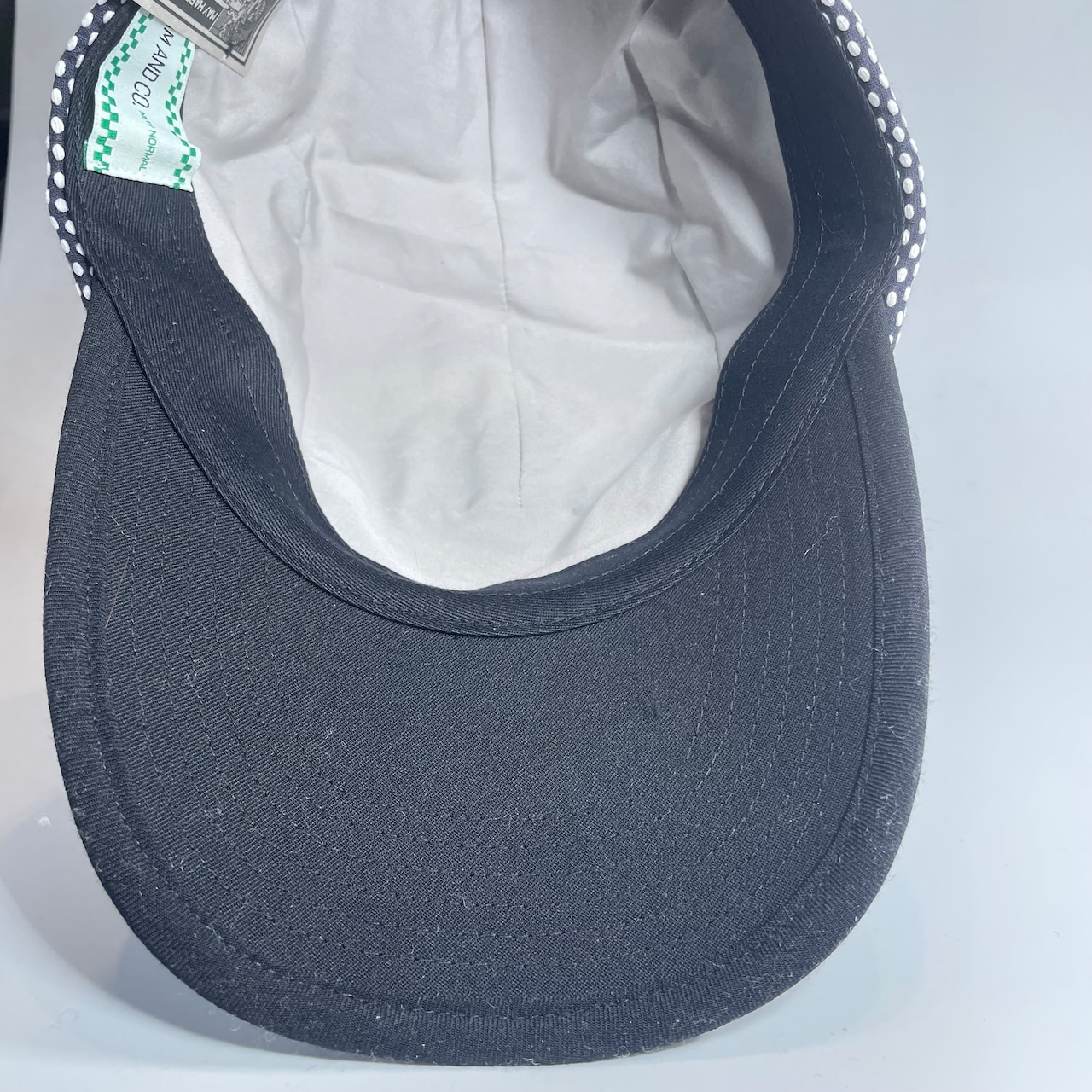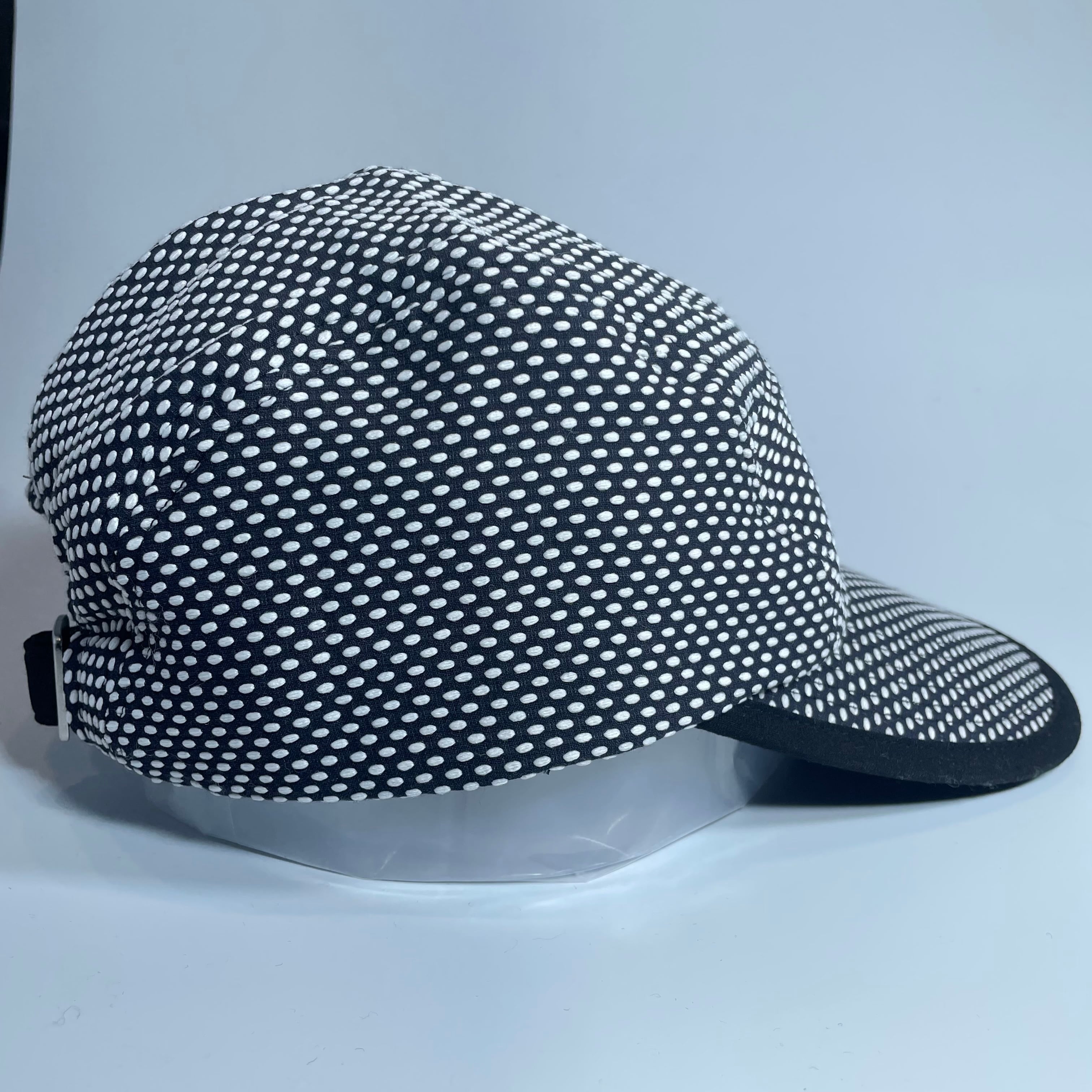 ステッチ模様のストライプ柄が特徴的な生地で仕立てられたジェットキャップになります。