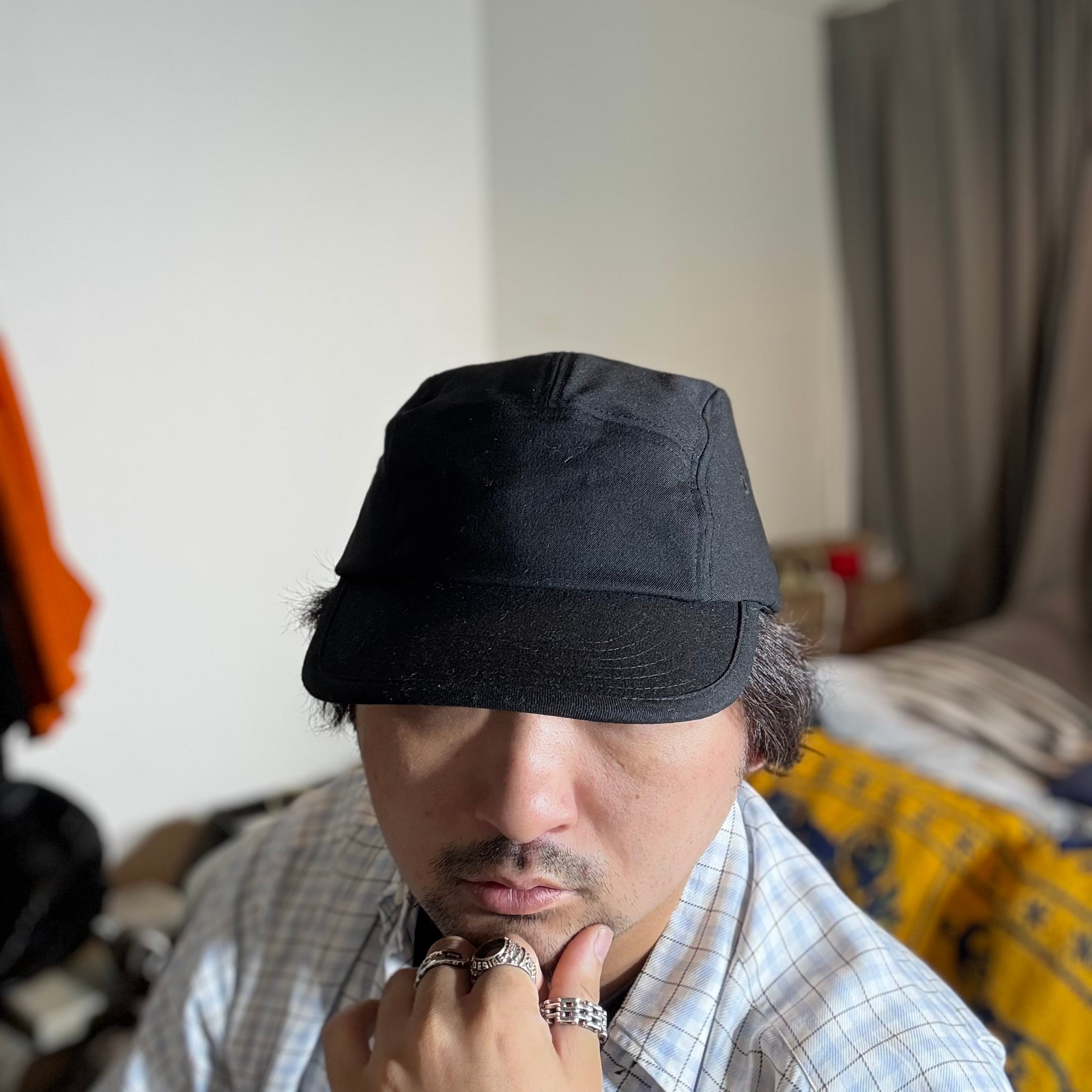 ソリッドなウール生地で仕立てられたジェットキャップになります。