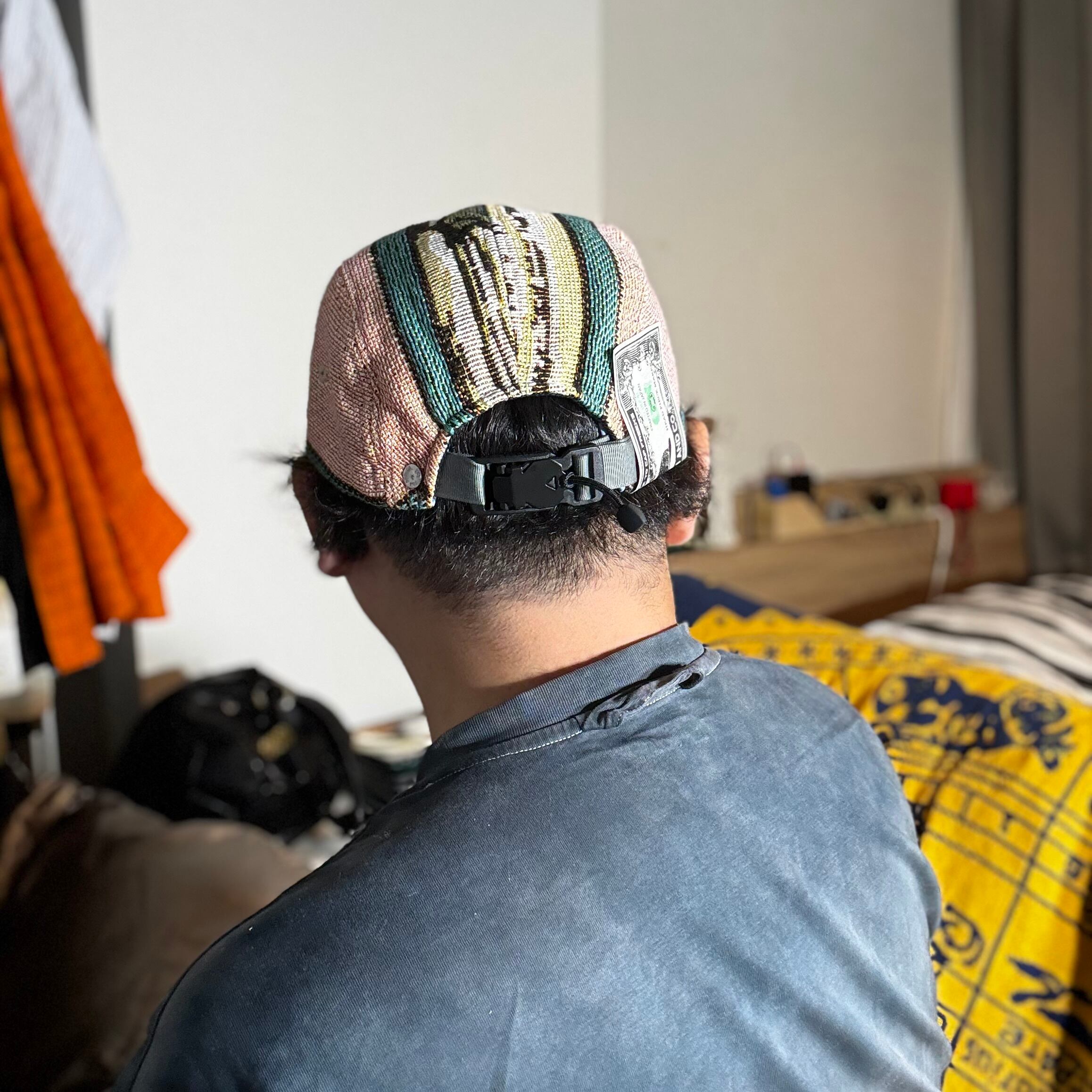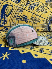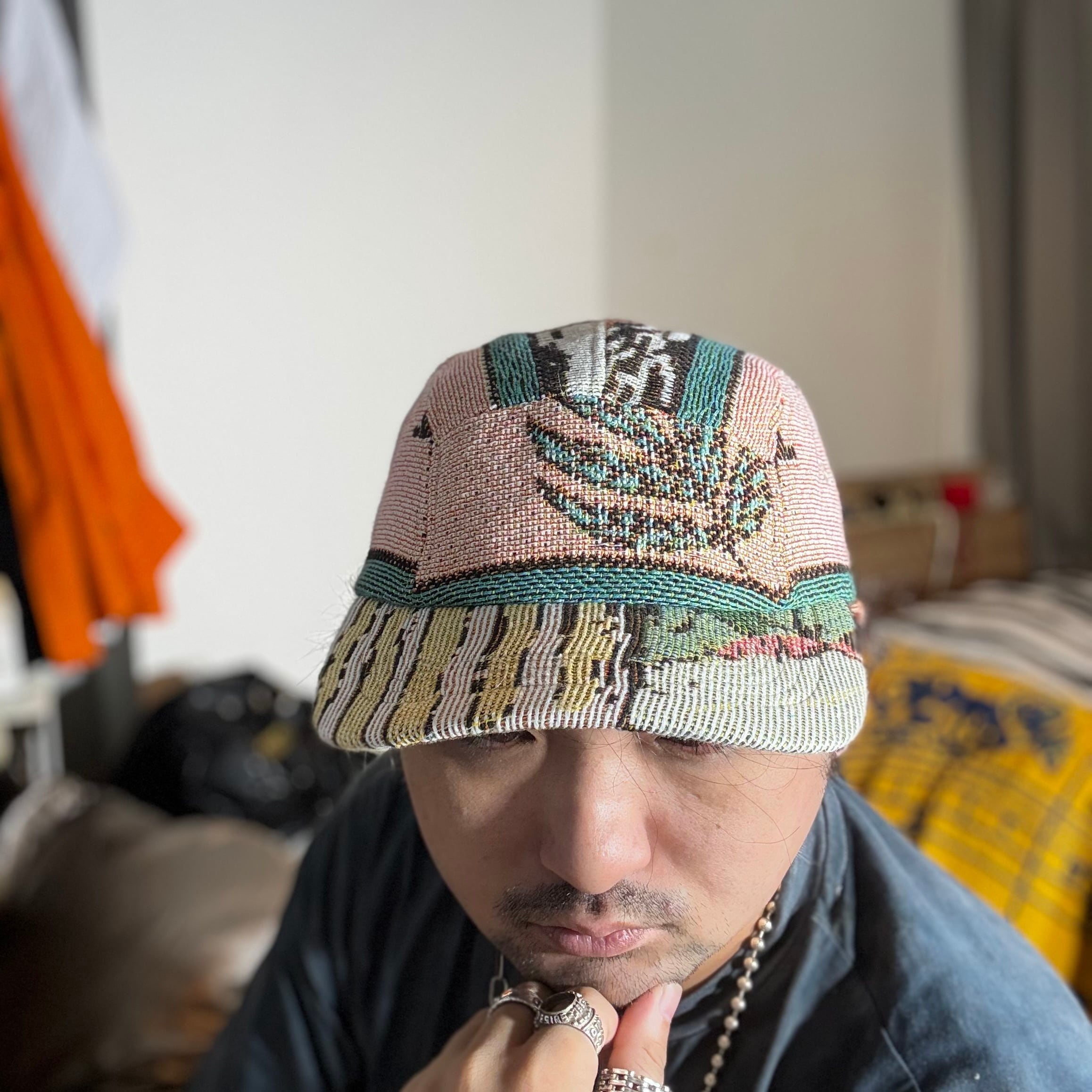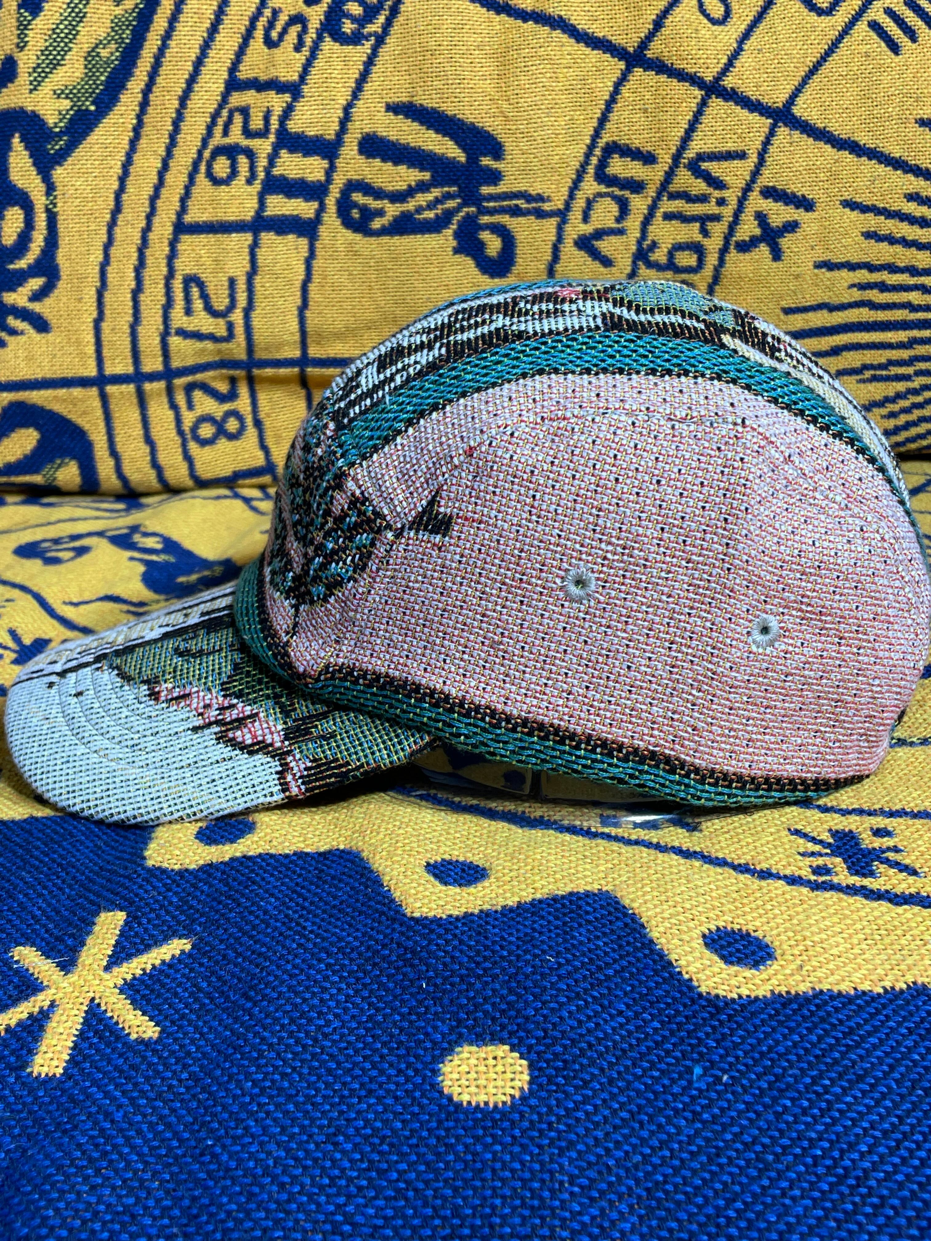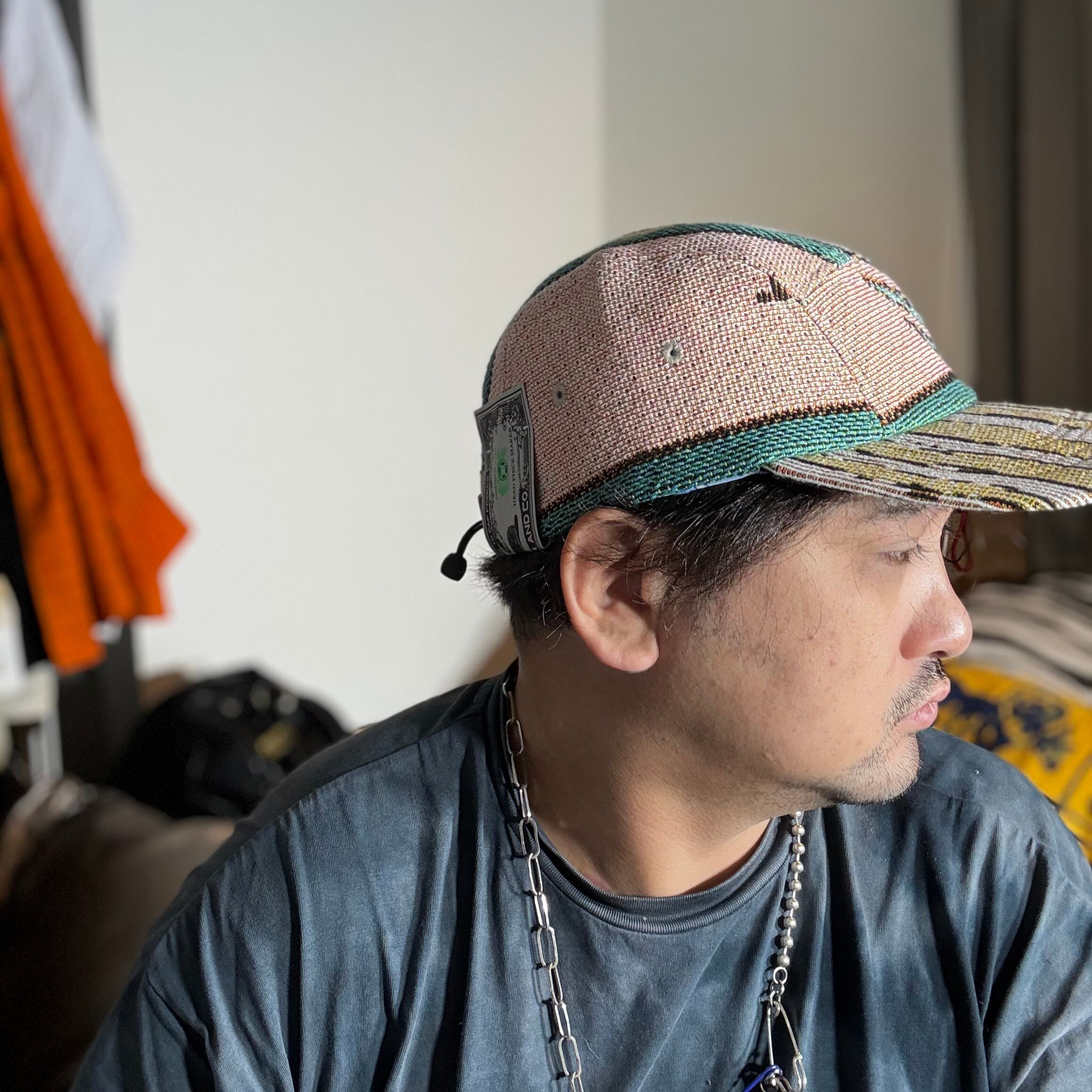 幻想的な柄のジャガード織生地で仕立て上げられたジェットキャップになります。