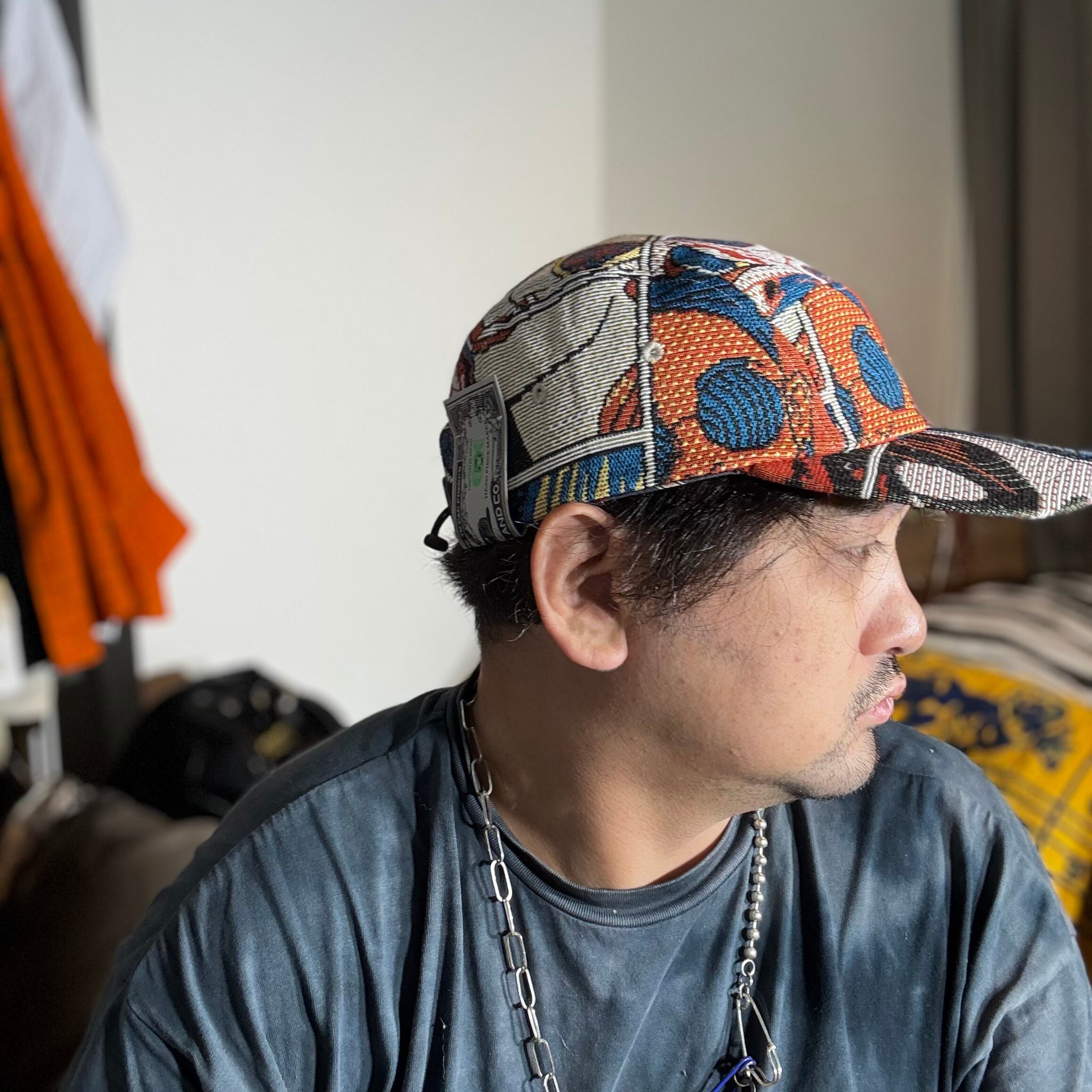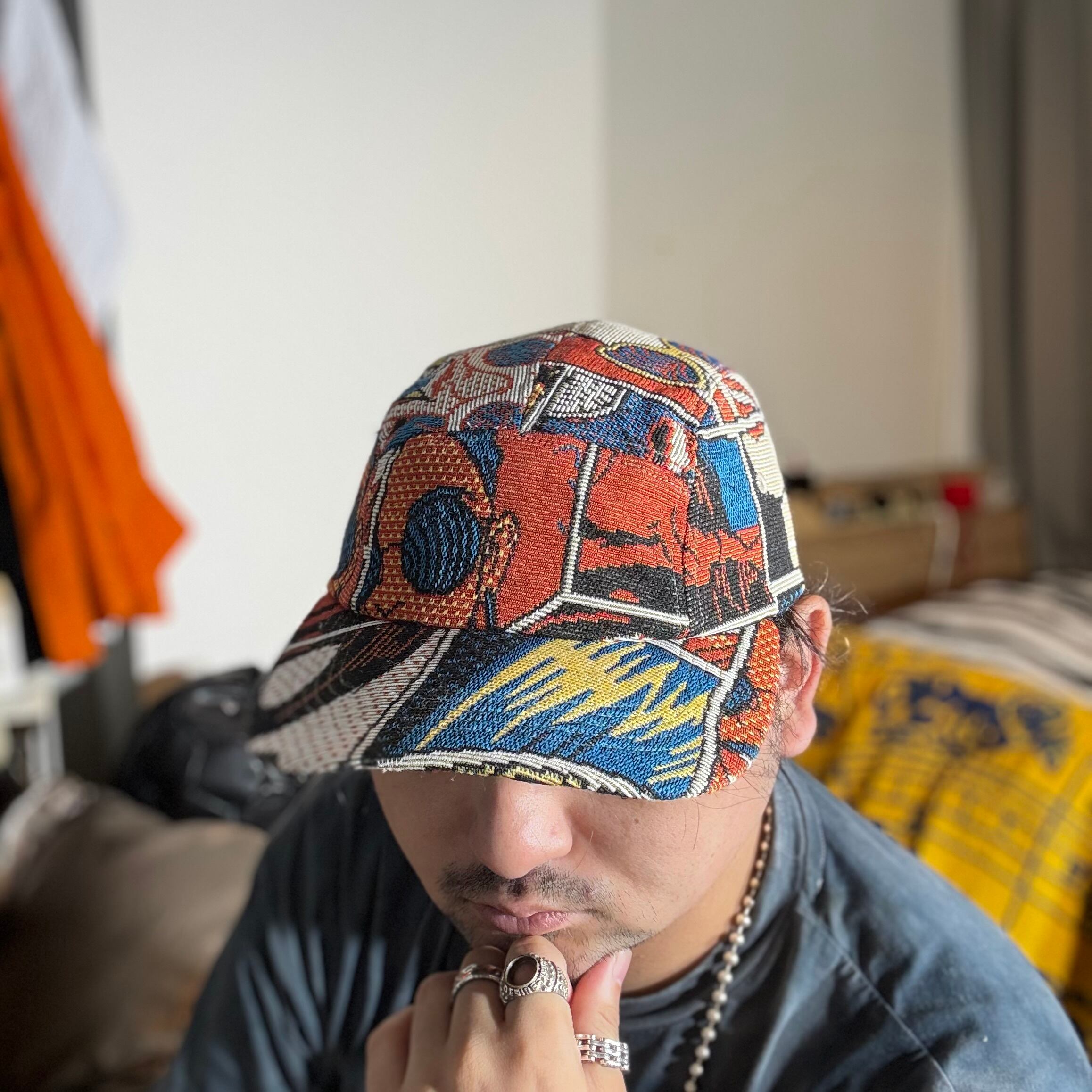 アメコミ漫画柄のジャガード織生地で仕立て上げられたジェットキャップになります。