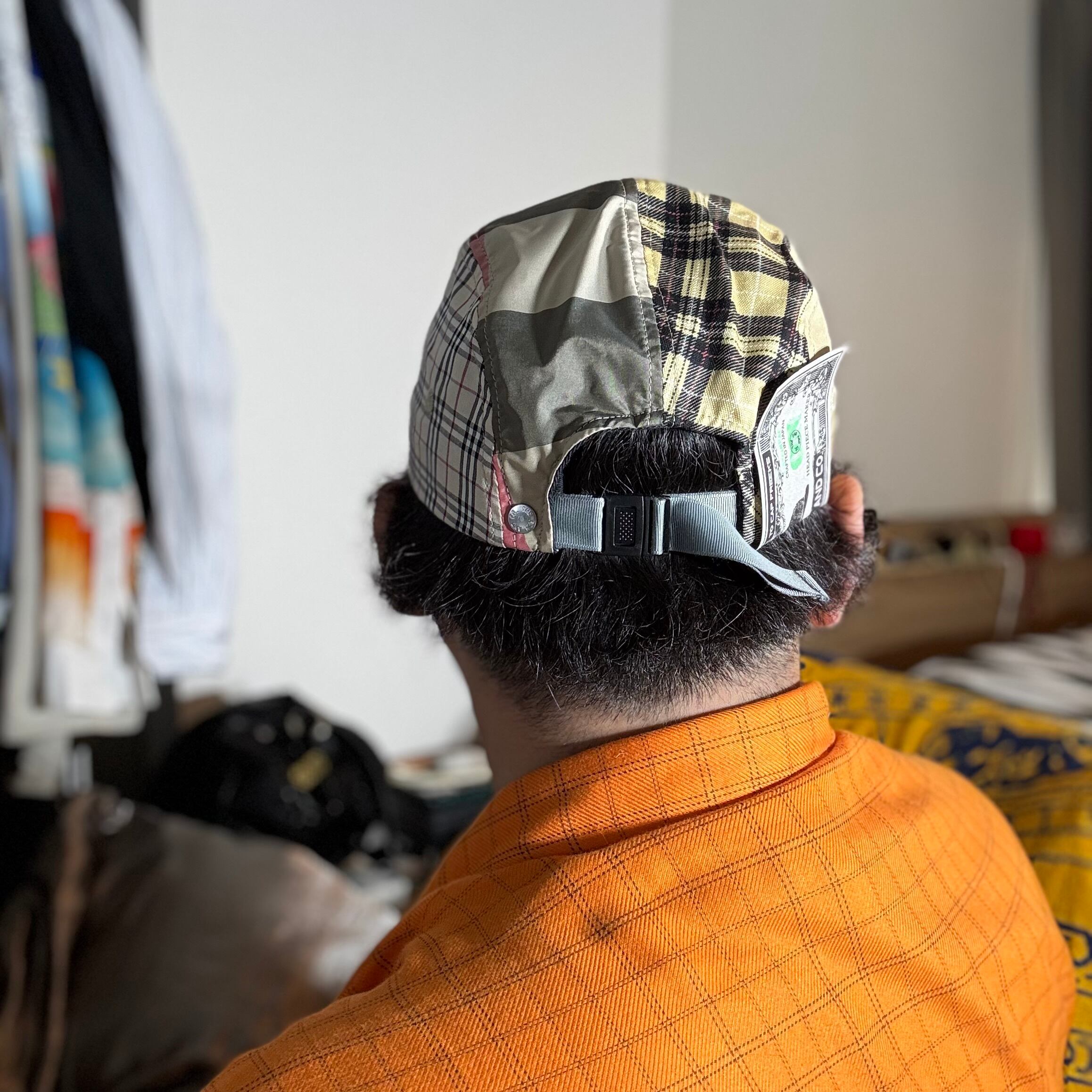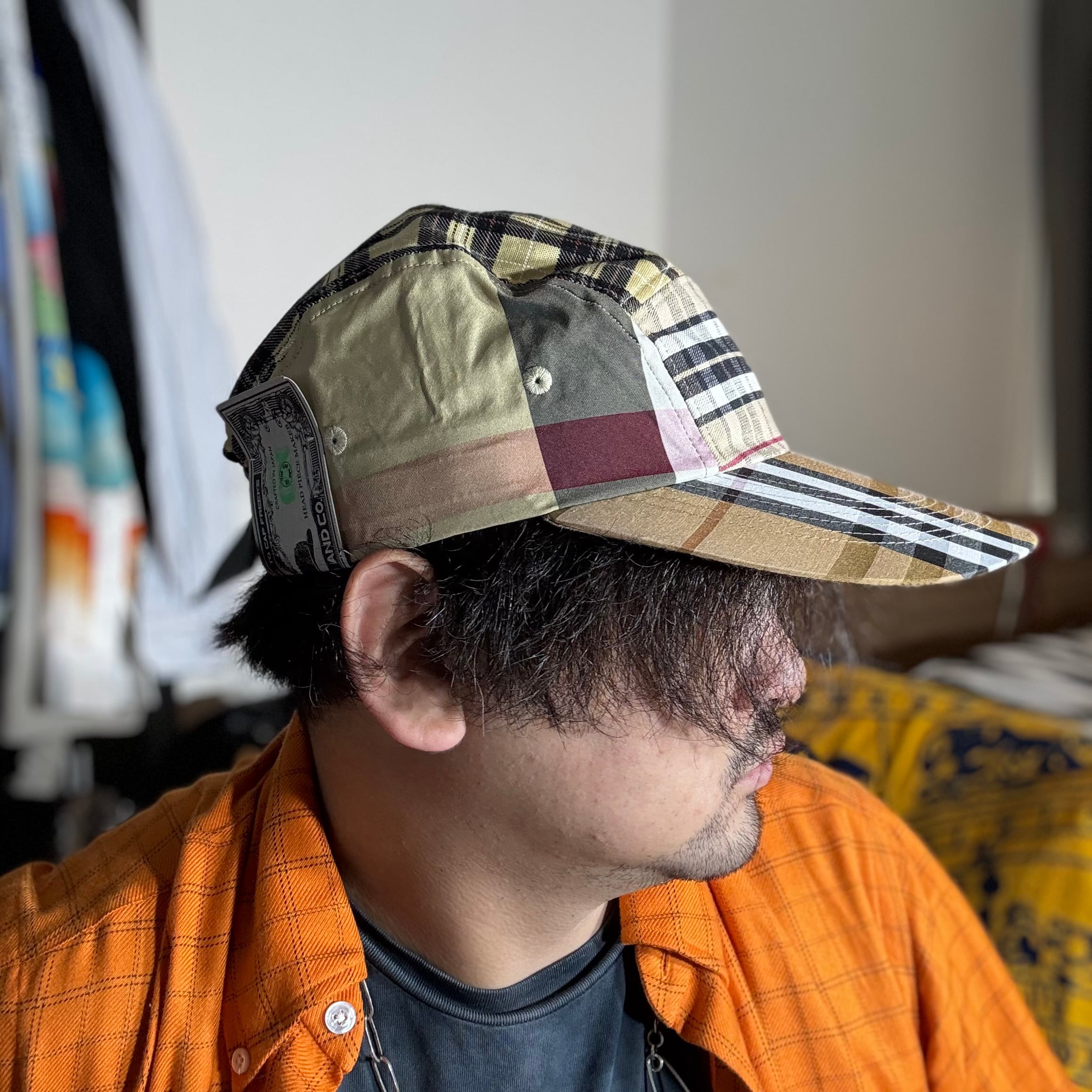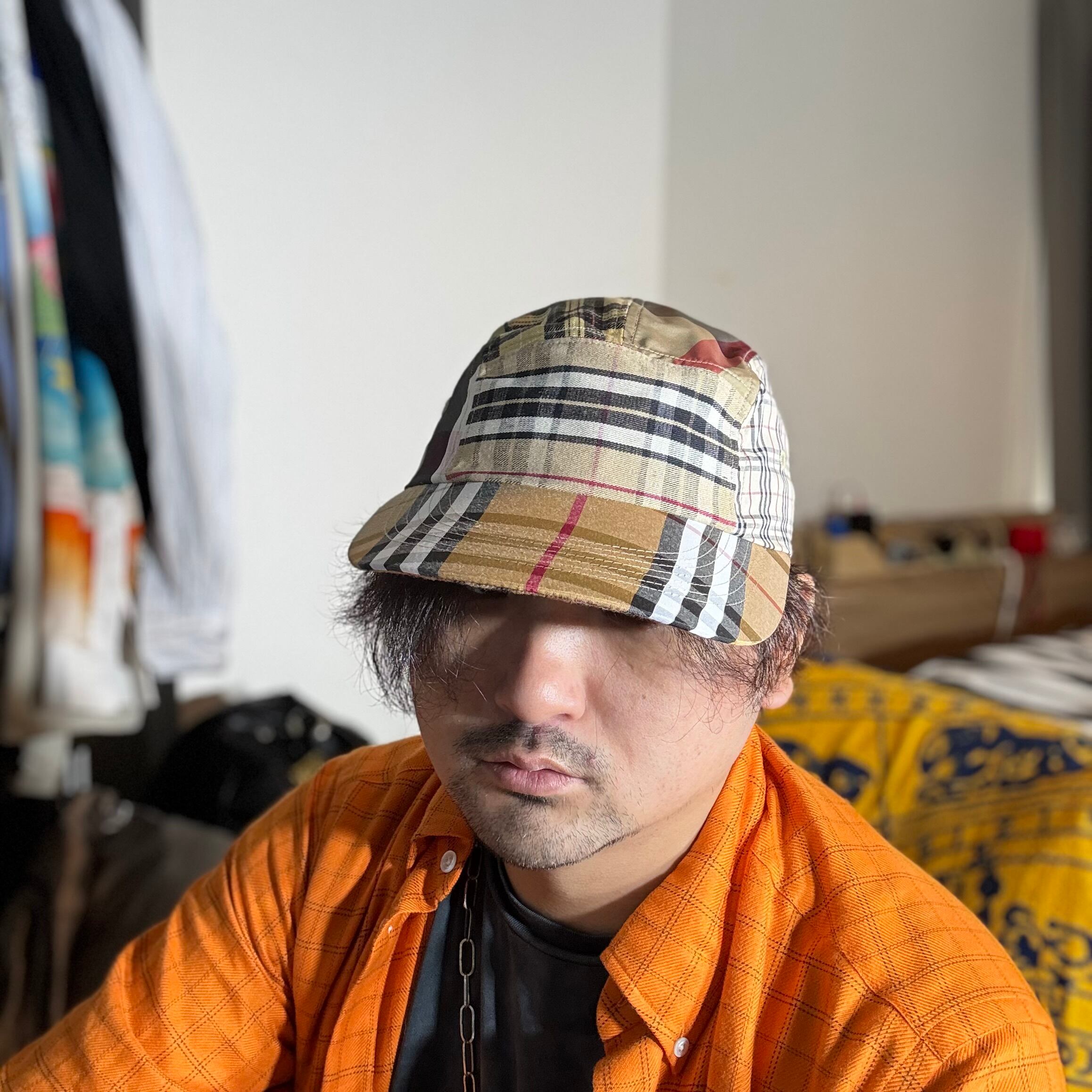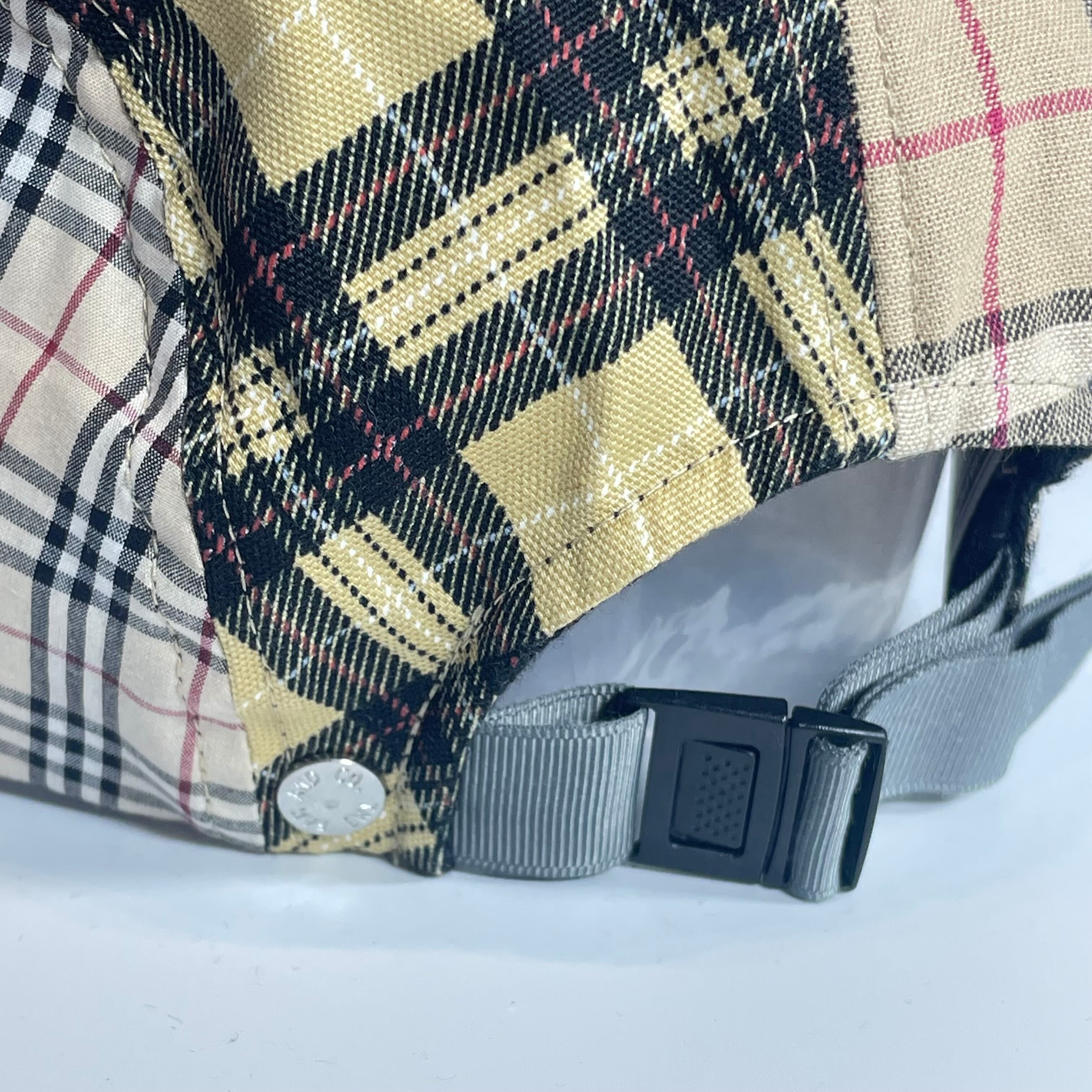 大小様々なノヴァチェック柄の生地を組み合わせた帽子になります。