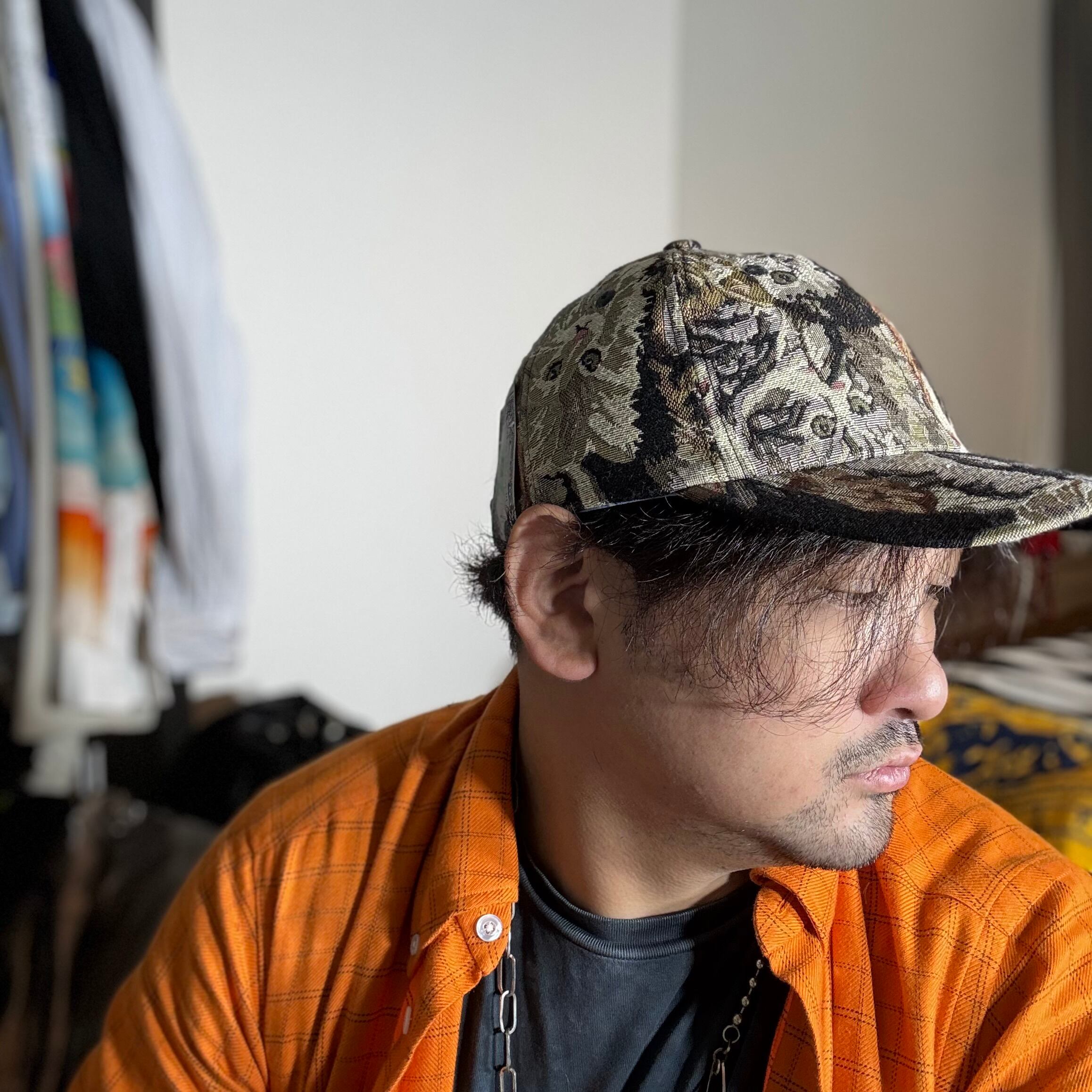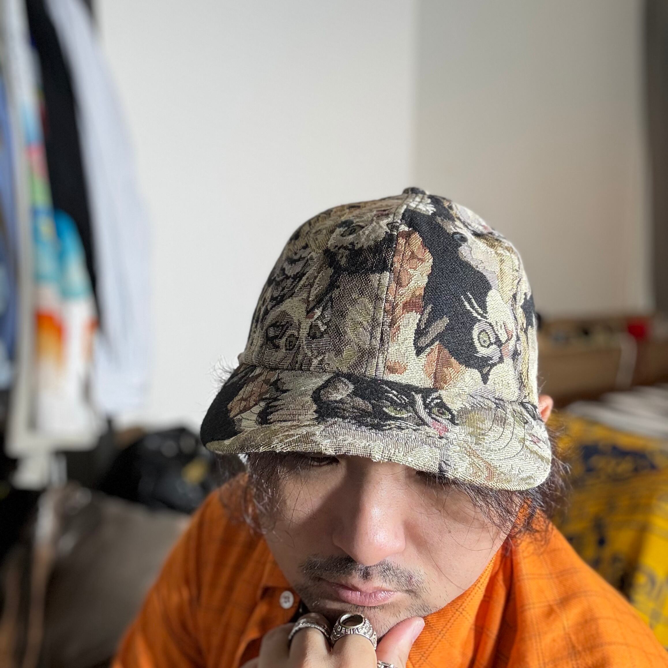 様々な猫が集まっている柄生地で仕立て上げられたベースボールキャップになります。