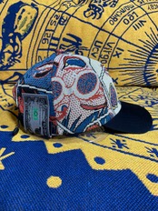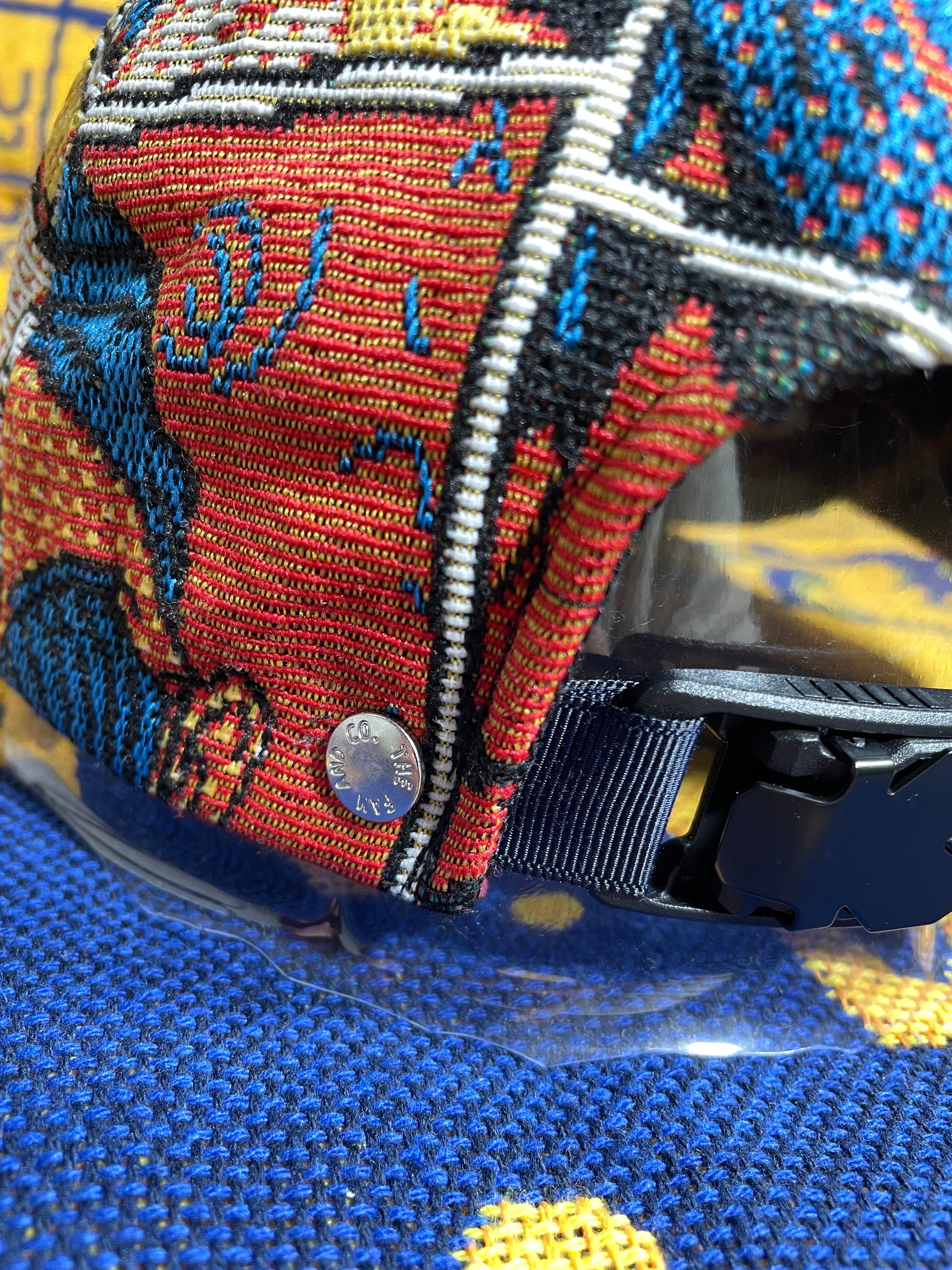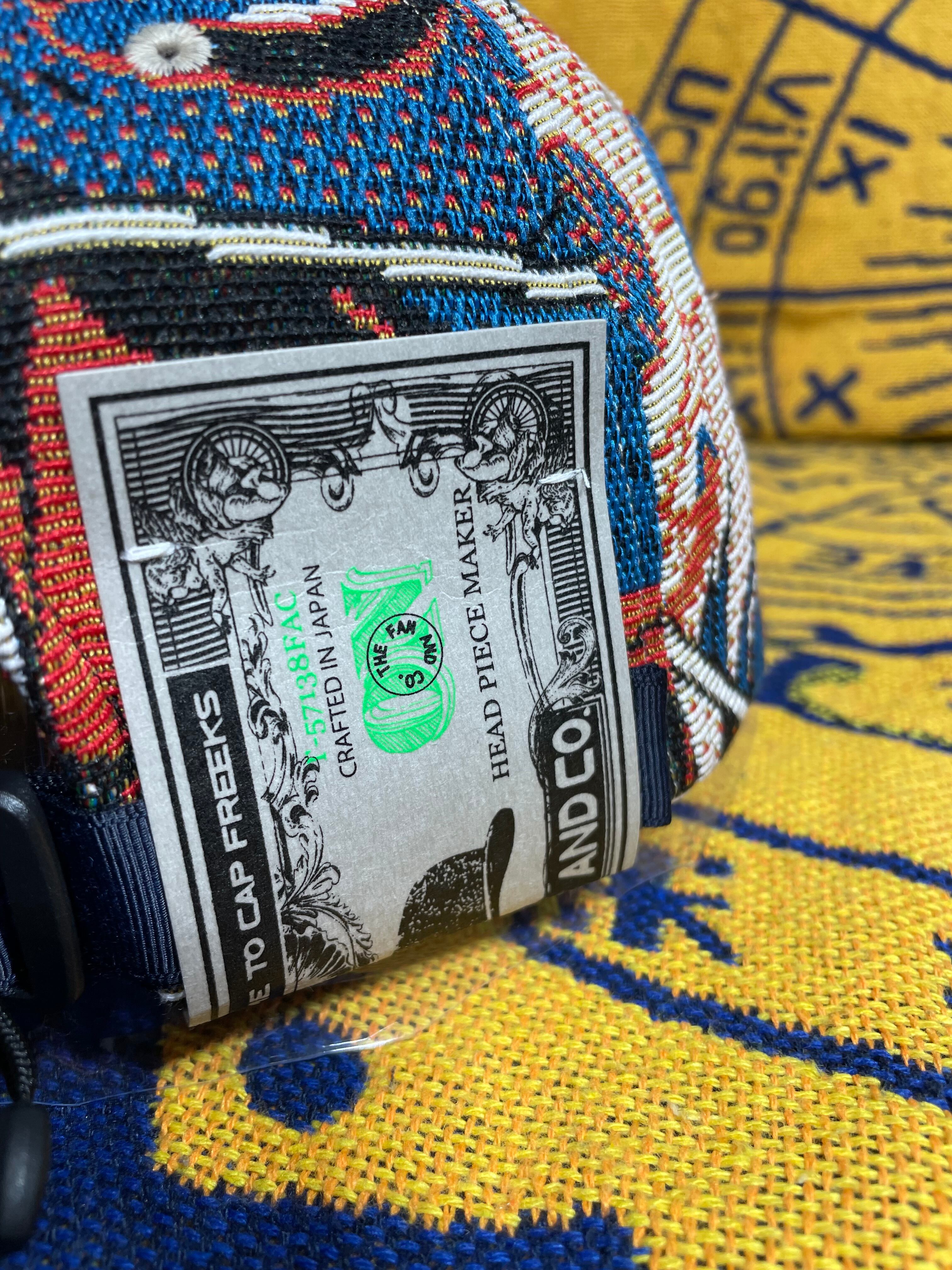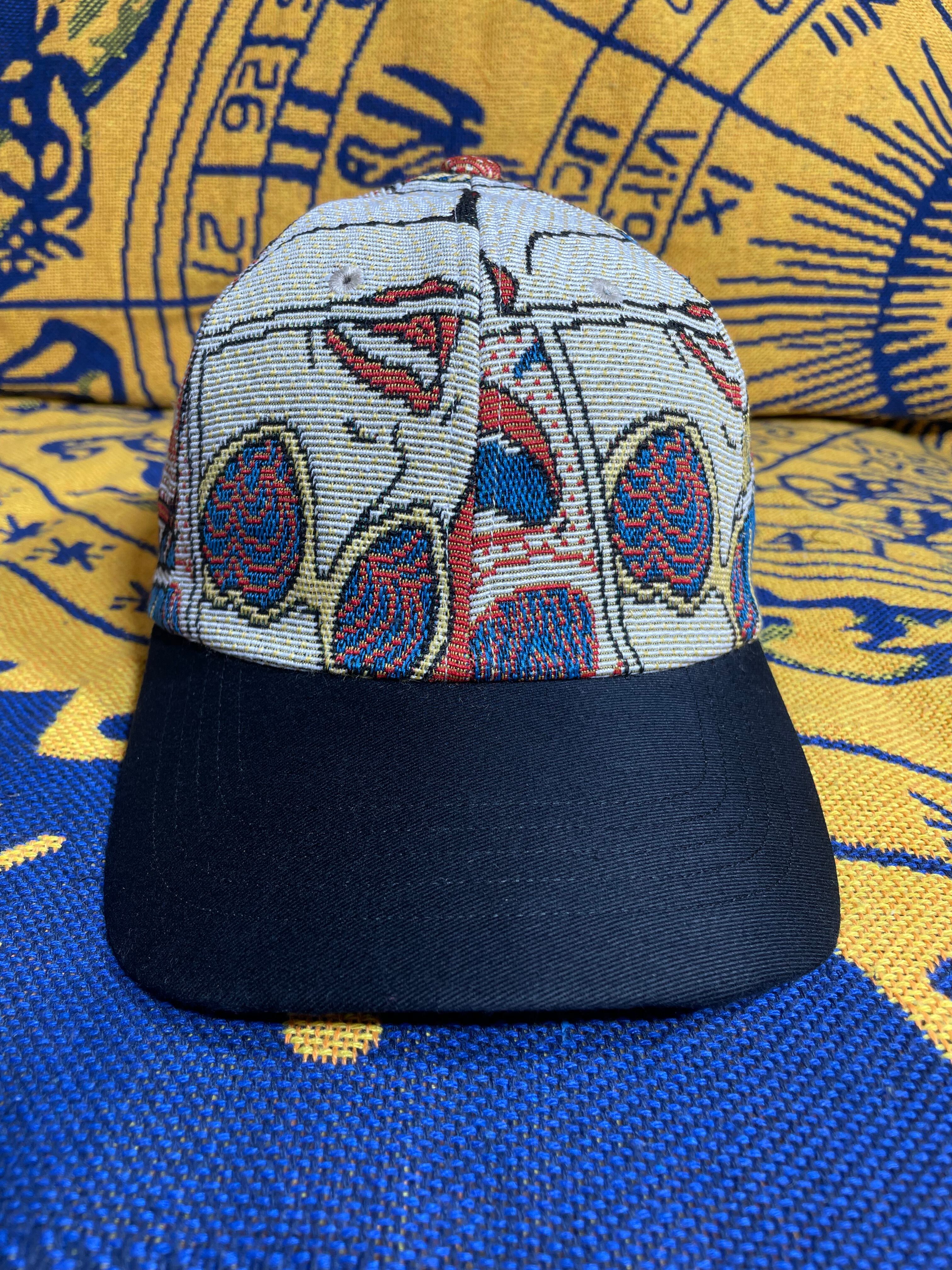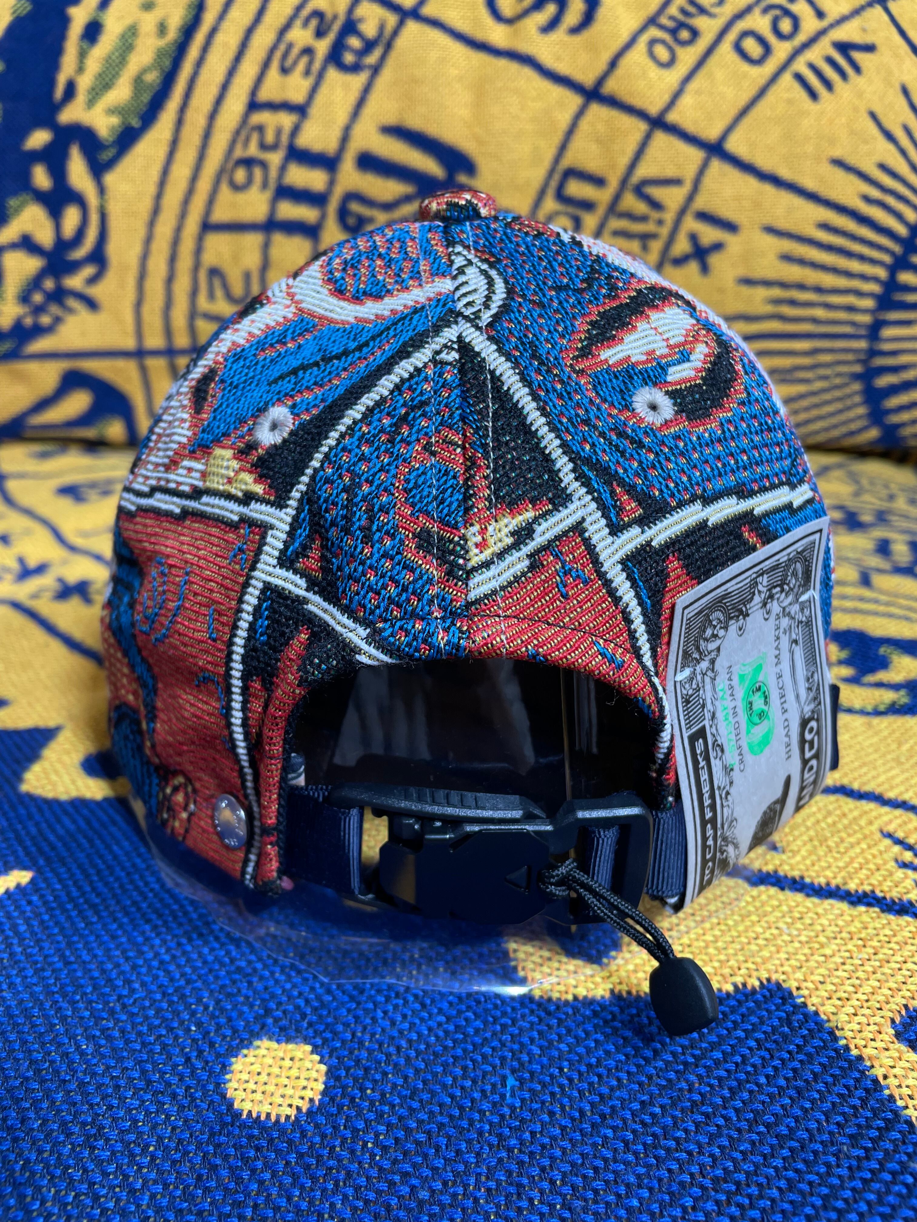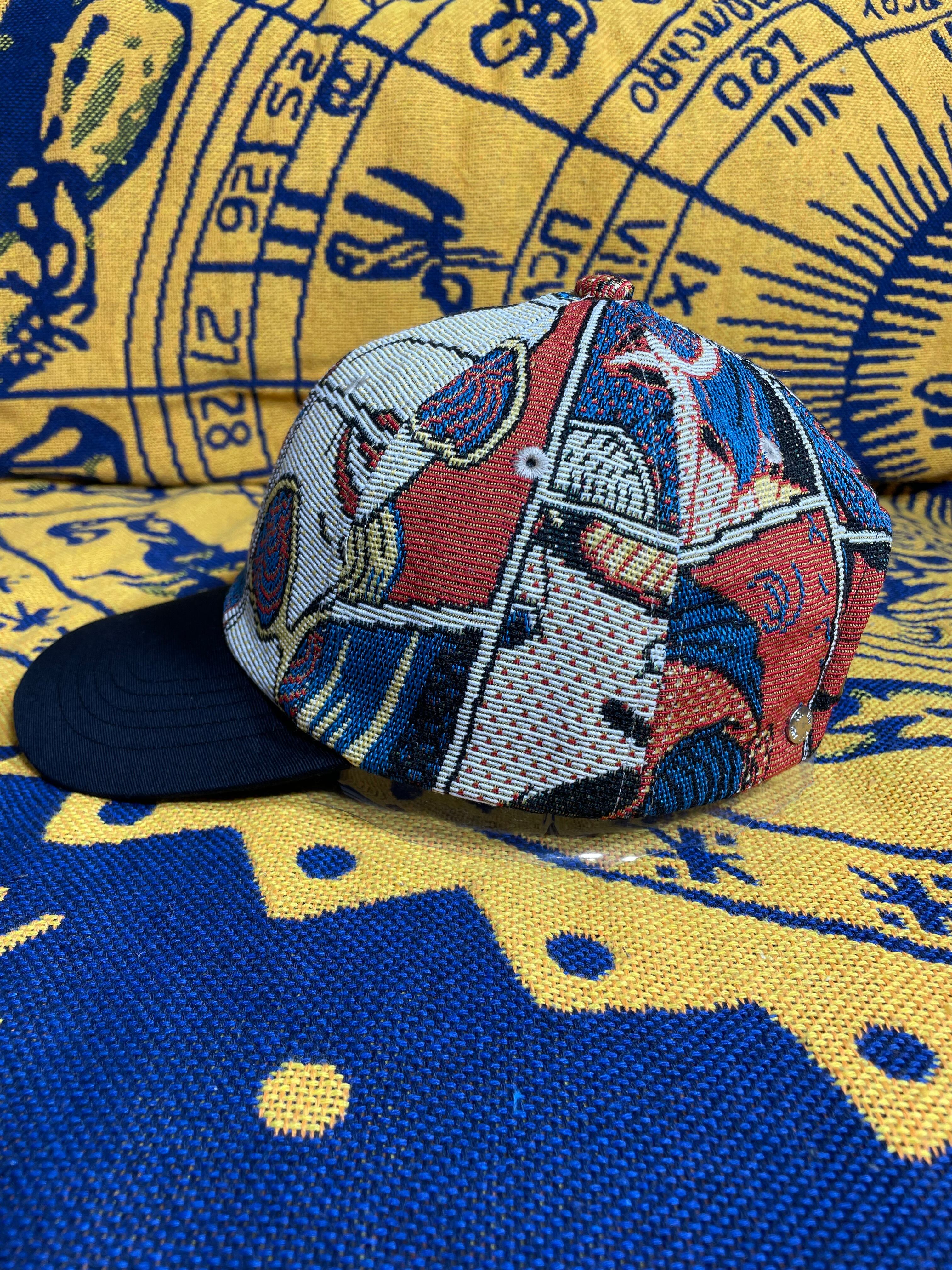 アメコミのようなコマ割りされたジャガード織生地で仕立て上げられたベースボールキャップになります。