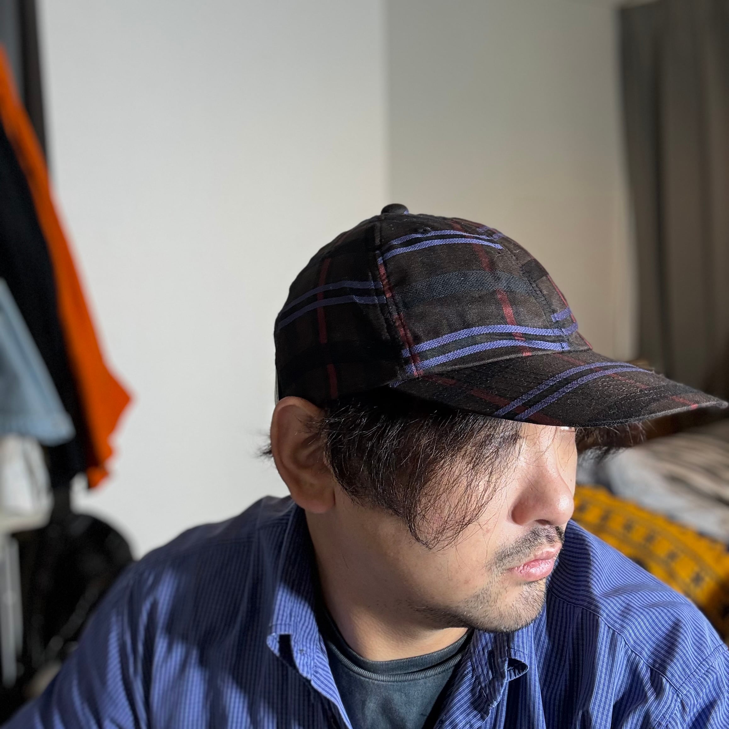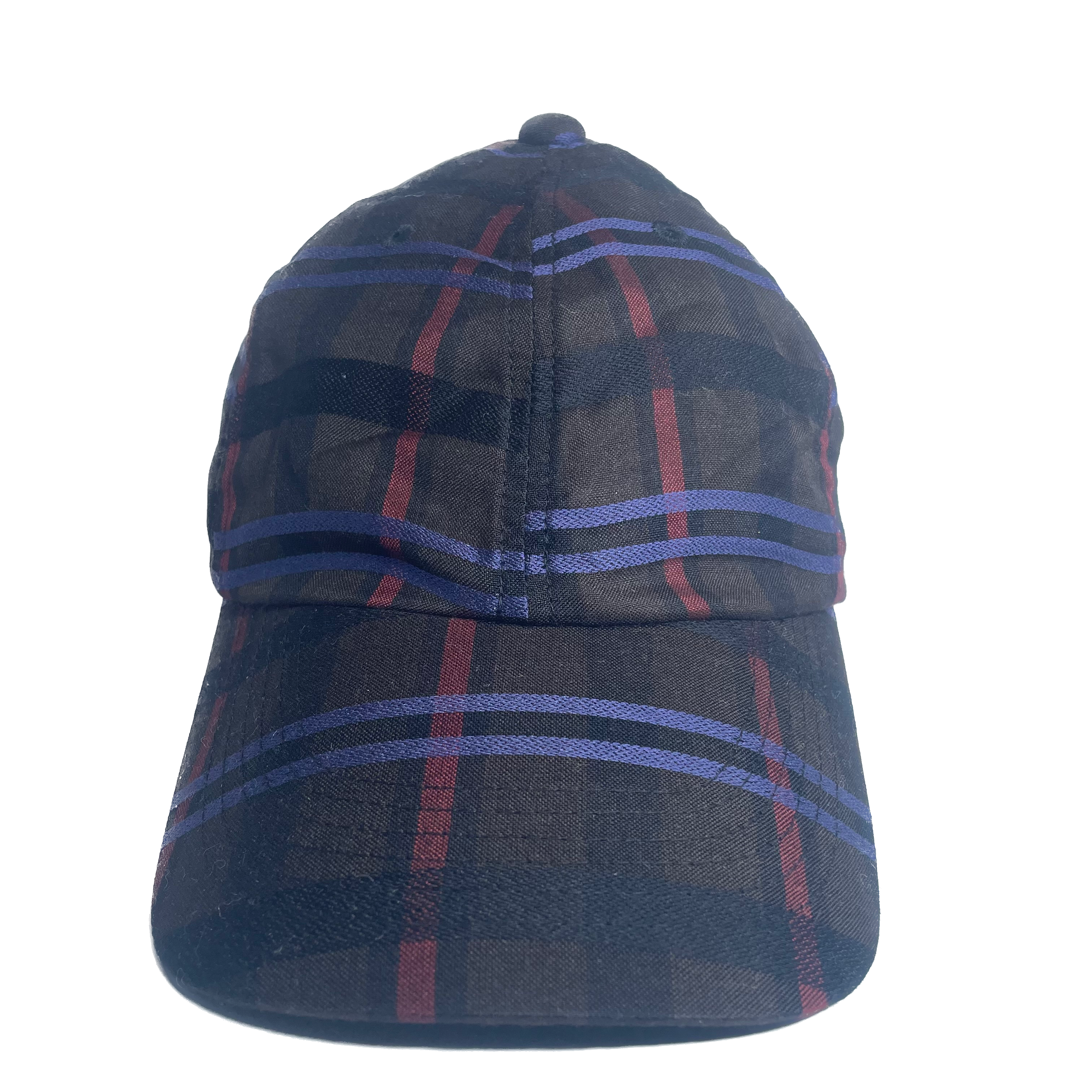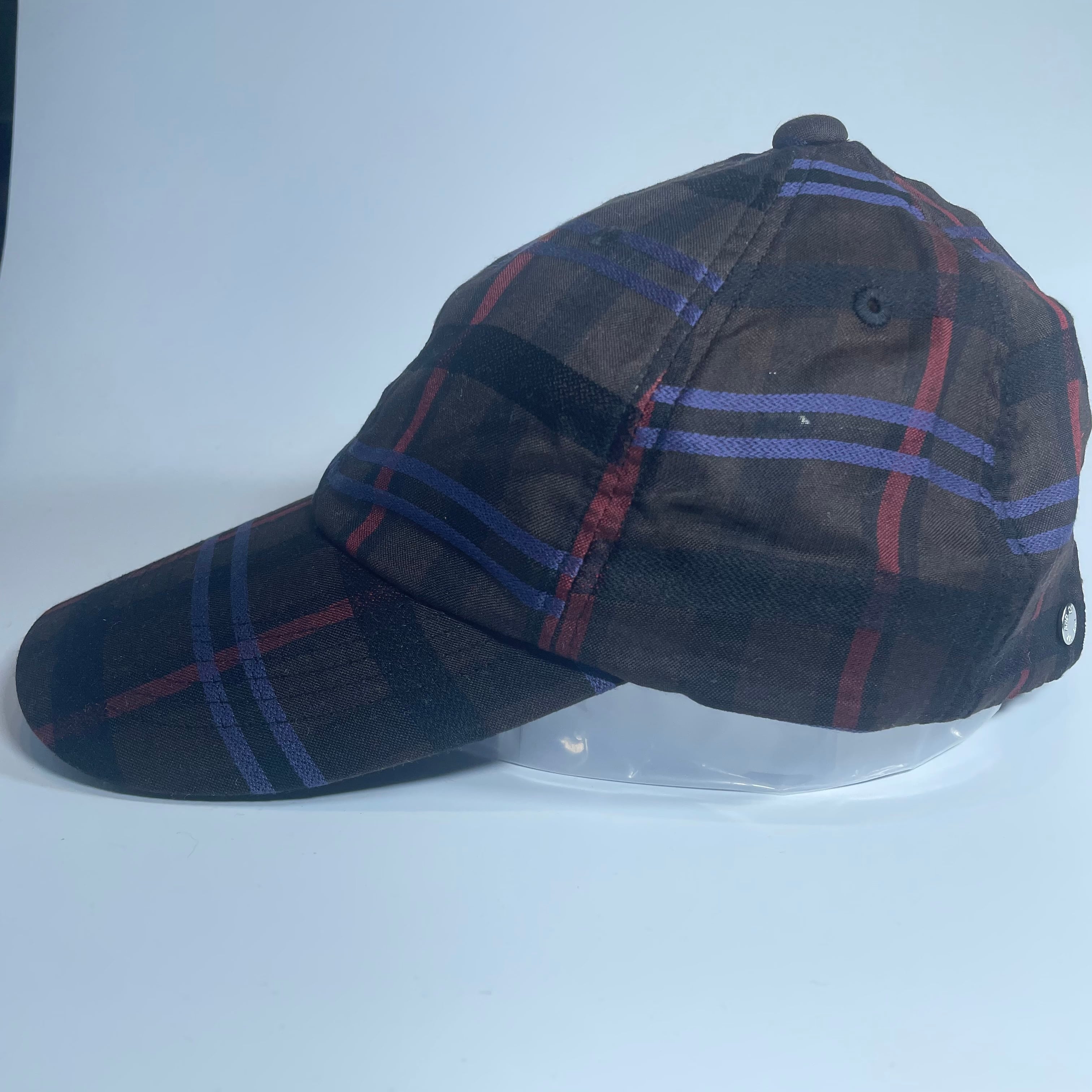 繊細なチェックの織柄生地でベースボールキャップを仕立てました。