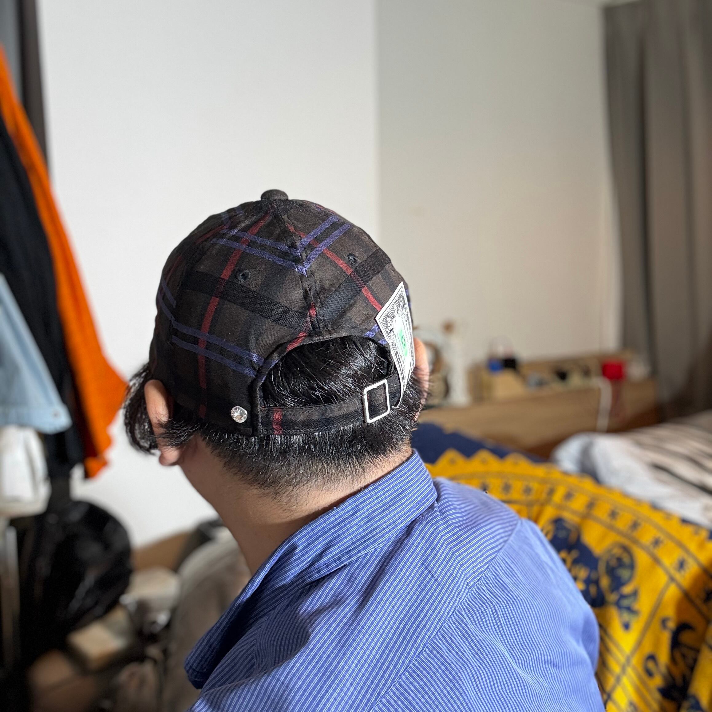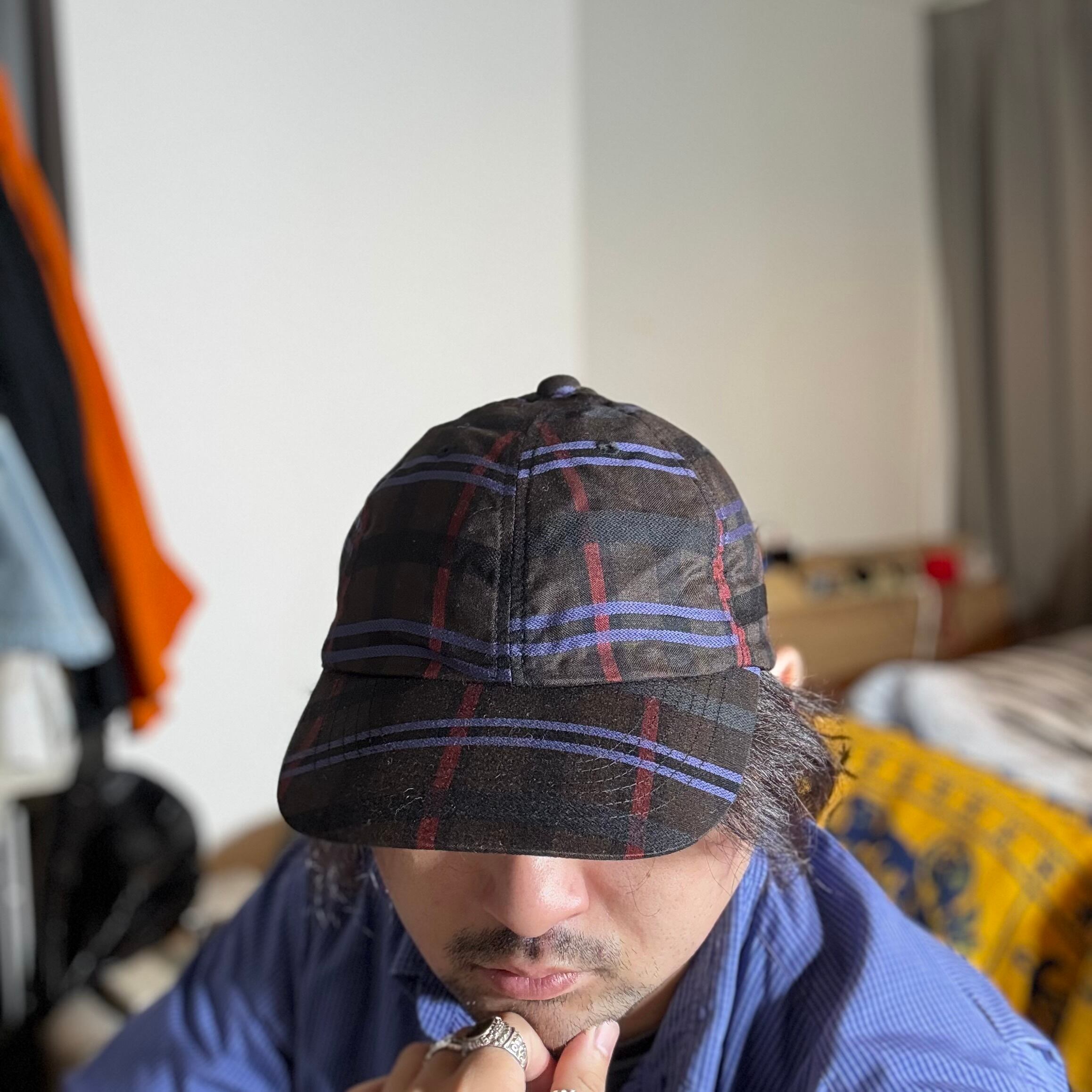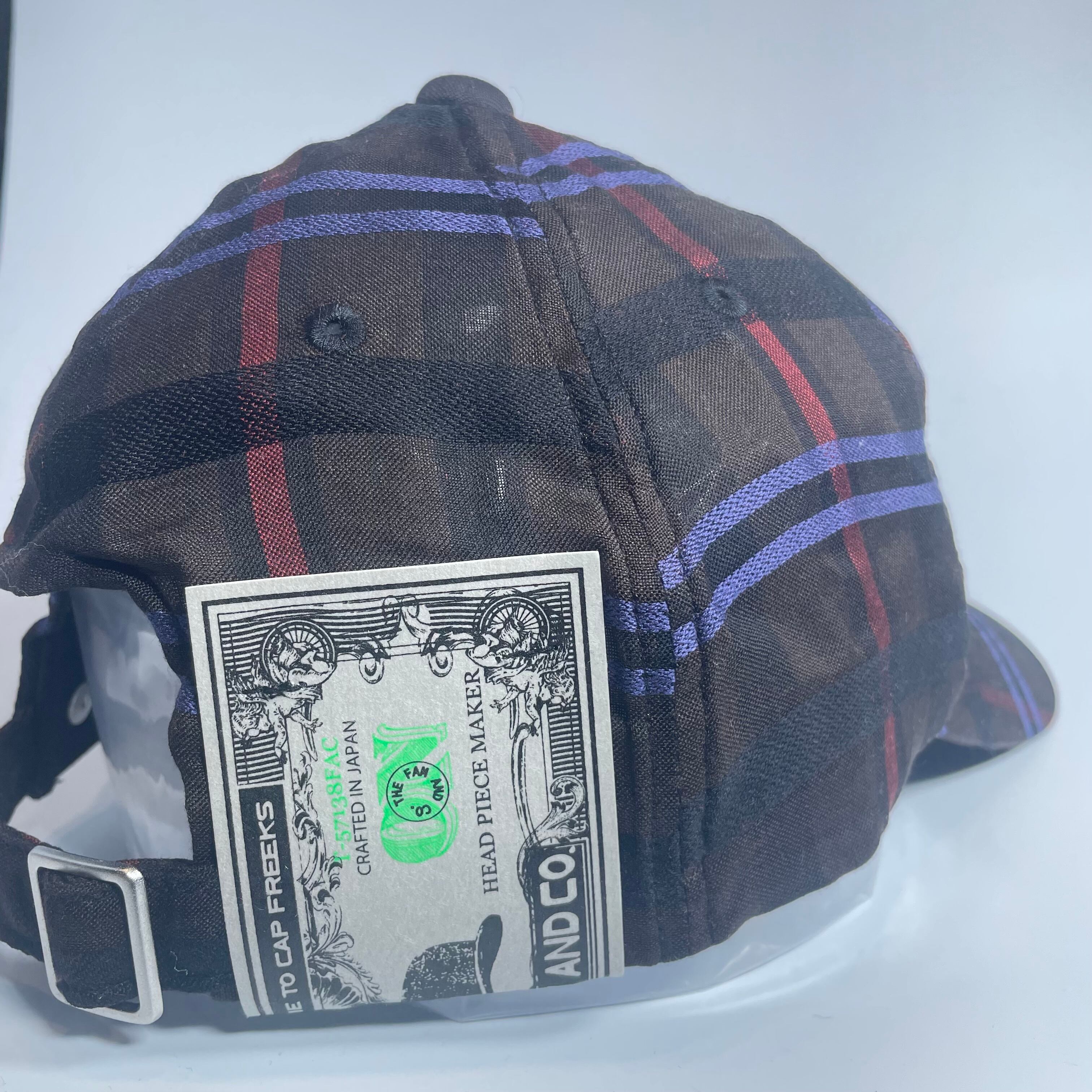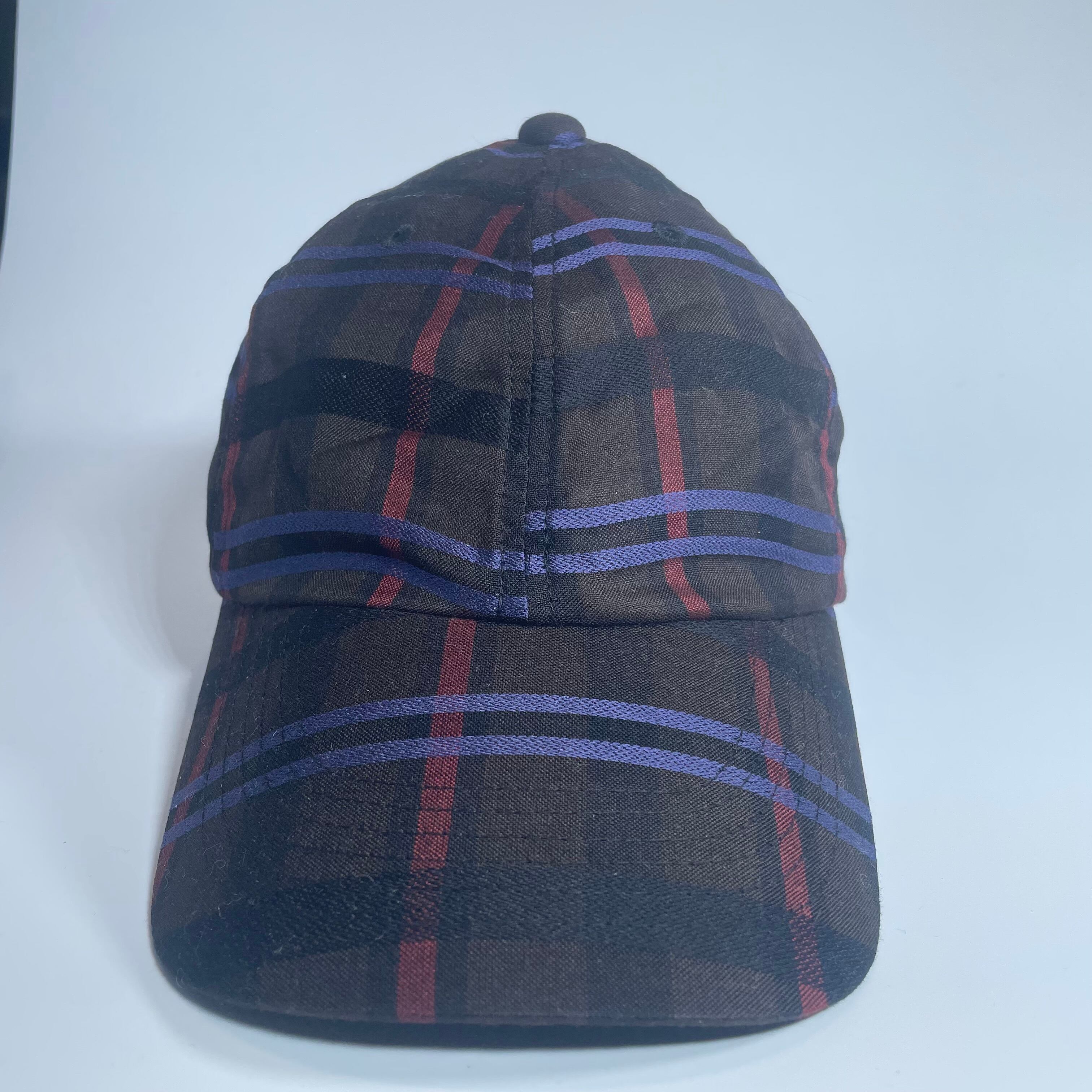 繊細なチェックの織柄生地でベースボールキャップを仕立てました。