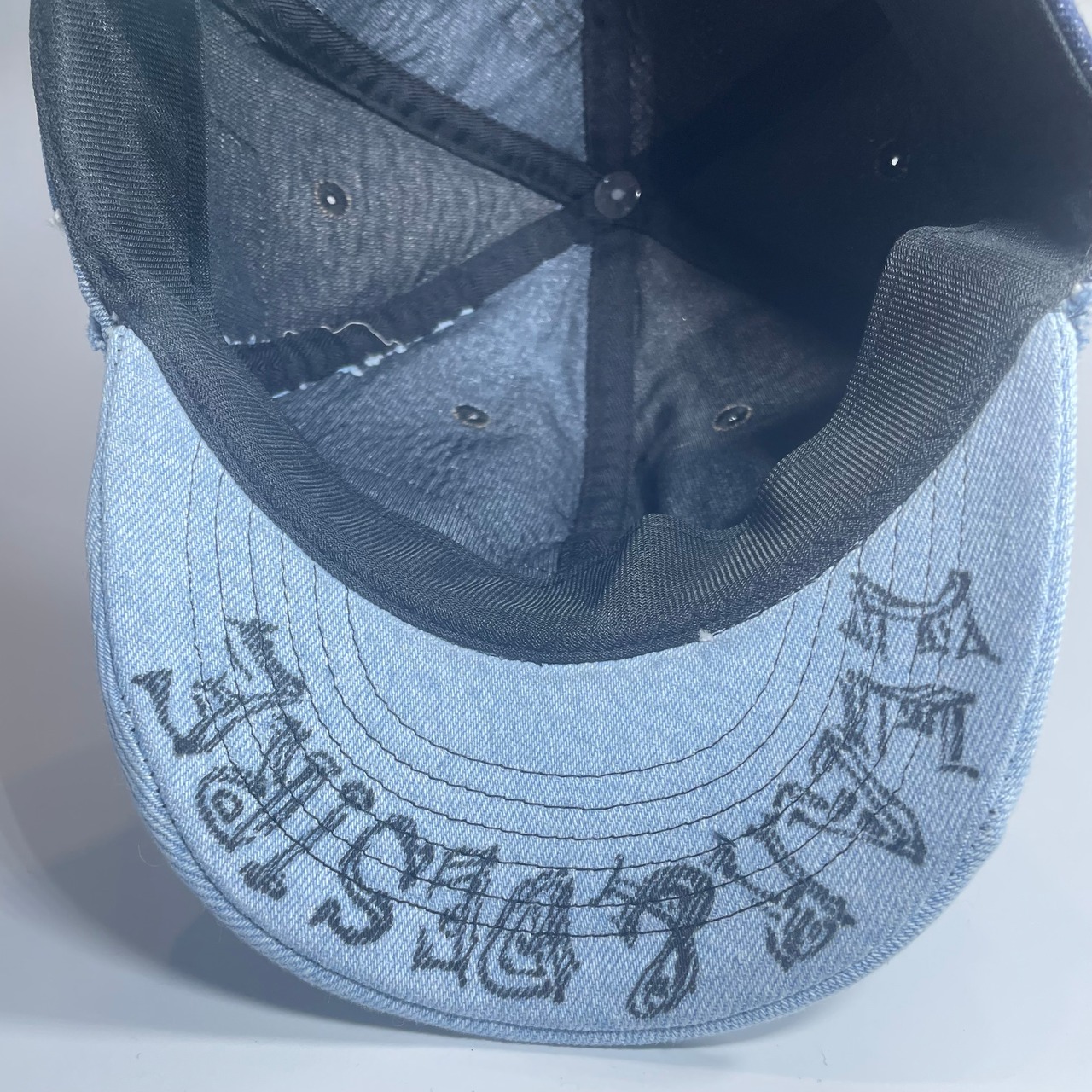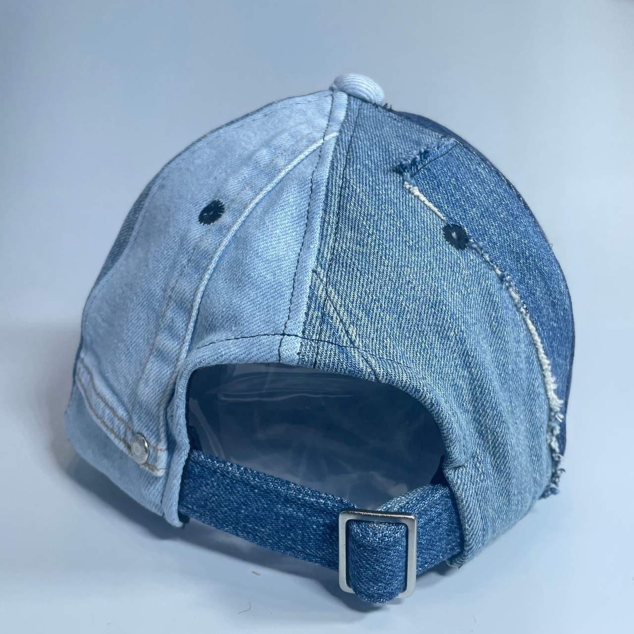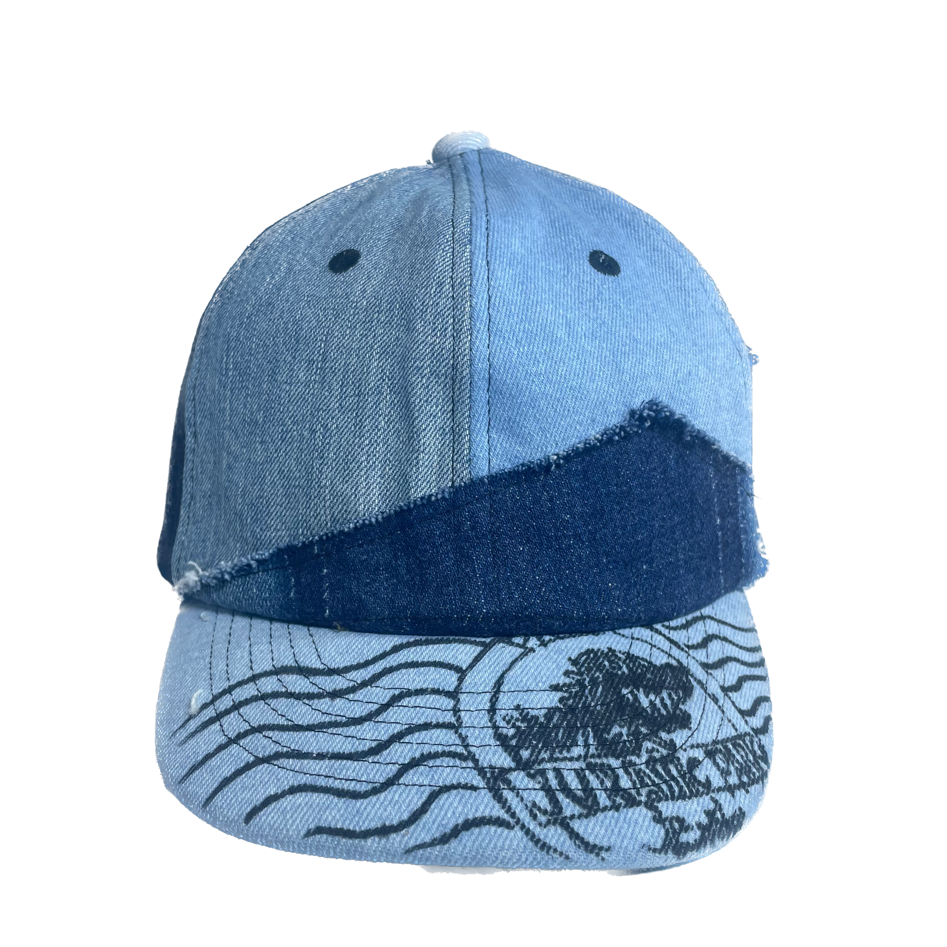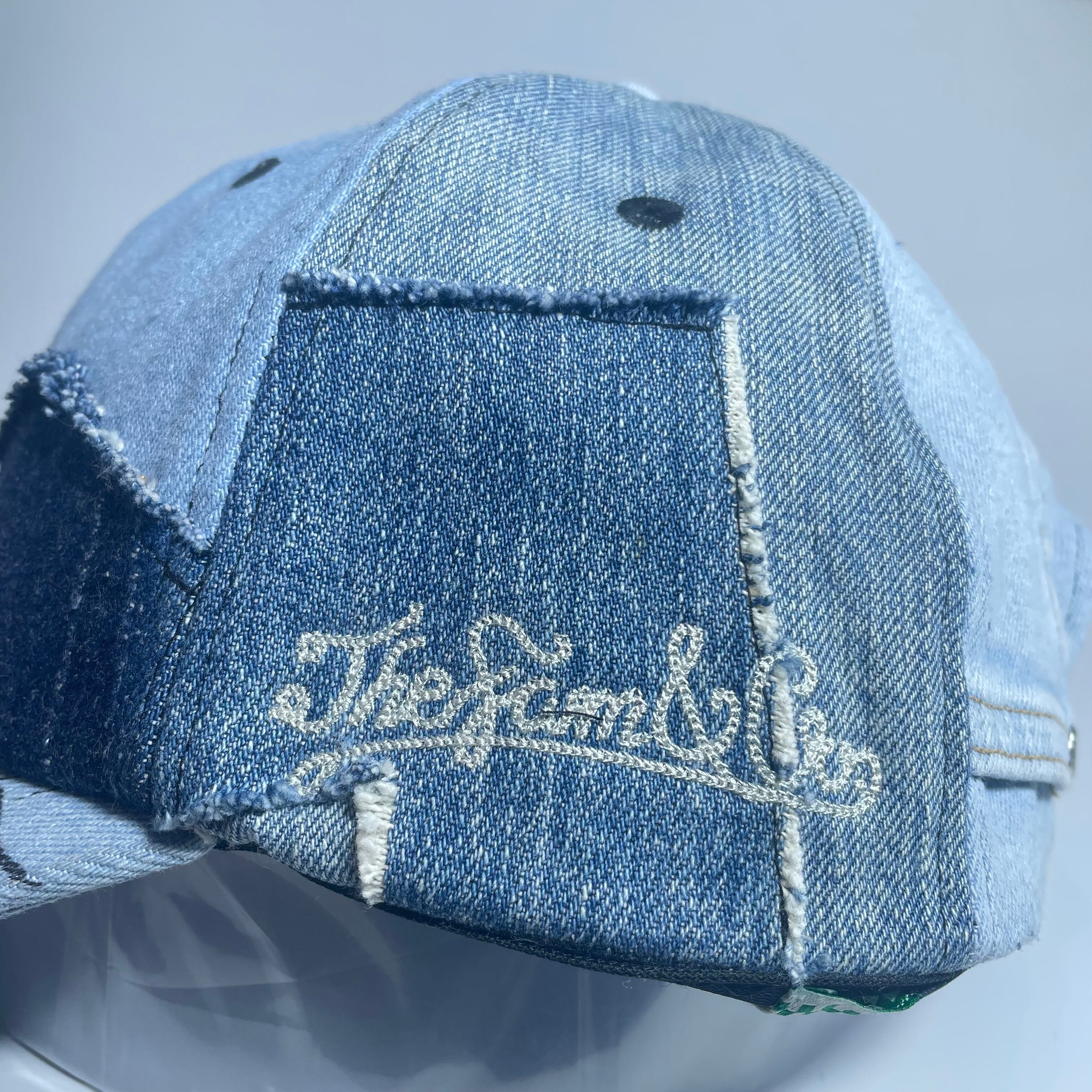 古着のデニムより解体されたパーツをランダムに組み合わせたベースボールキャップです。