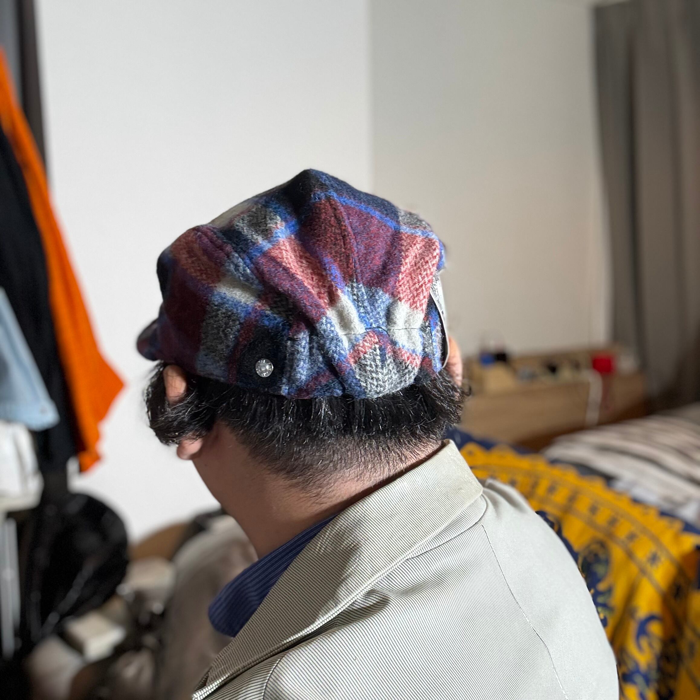 肉厚のメルトンウール地を大きめのハンチングキャップに落とし込みました。