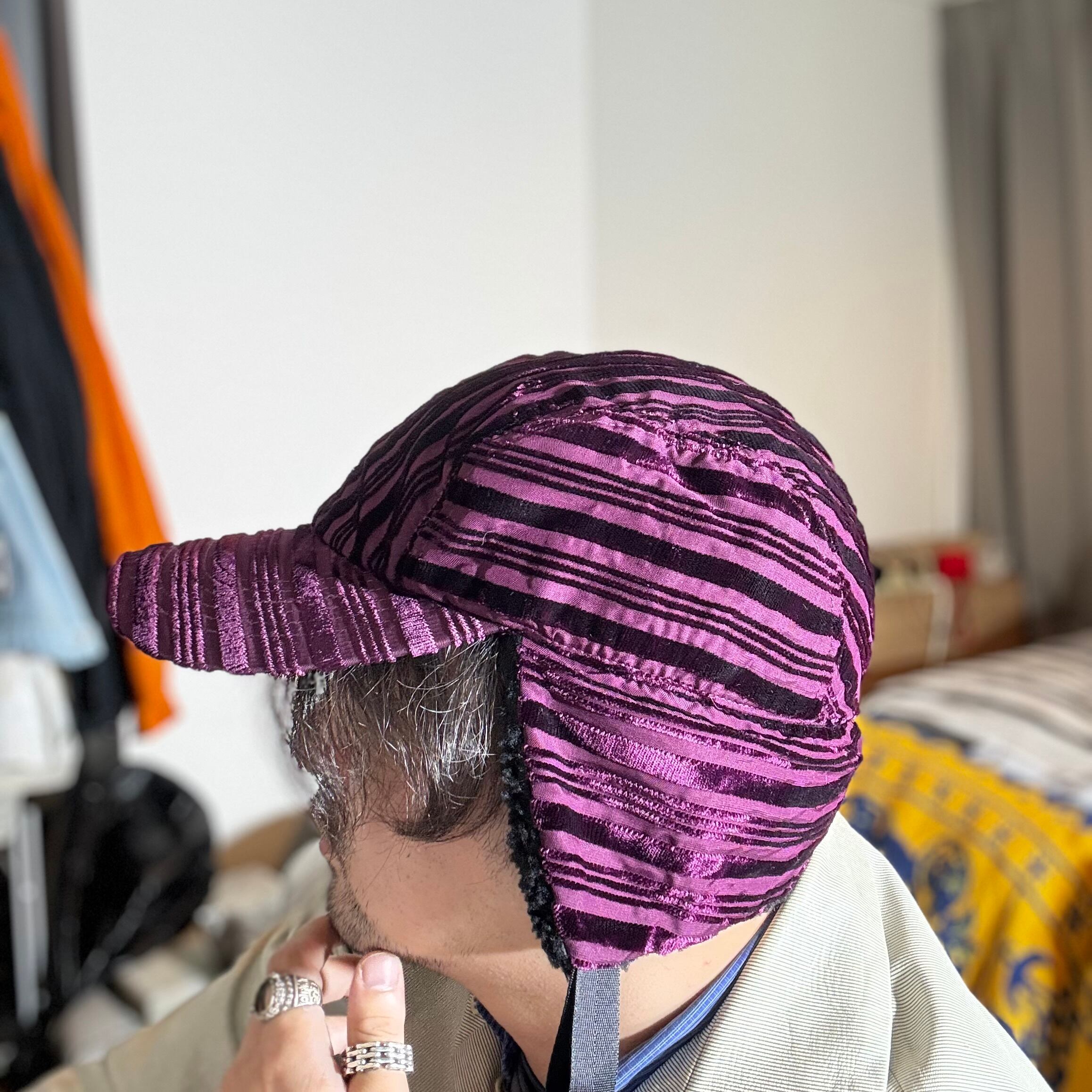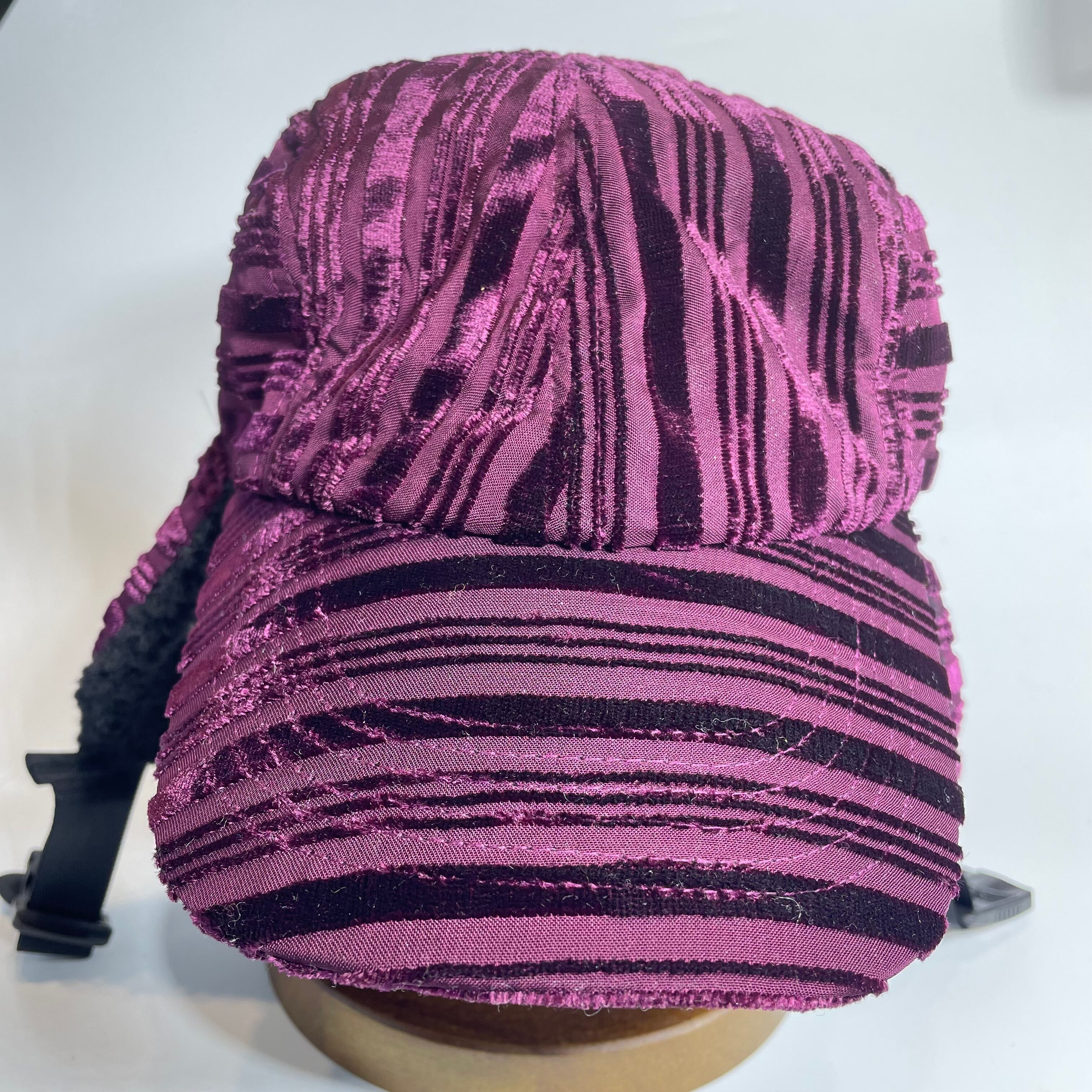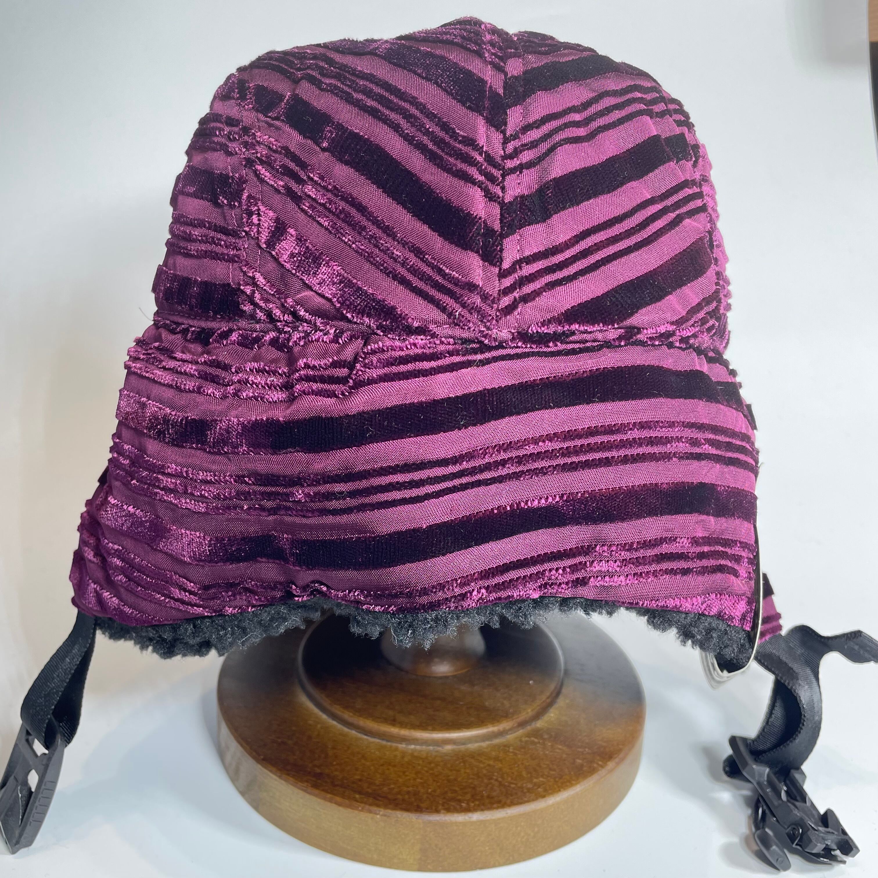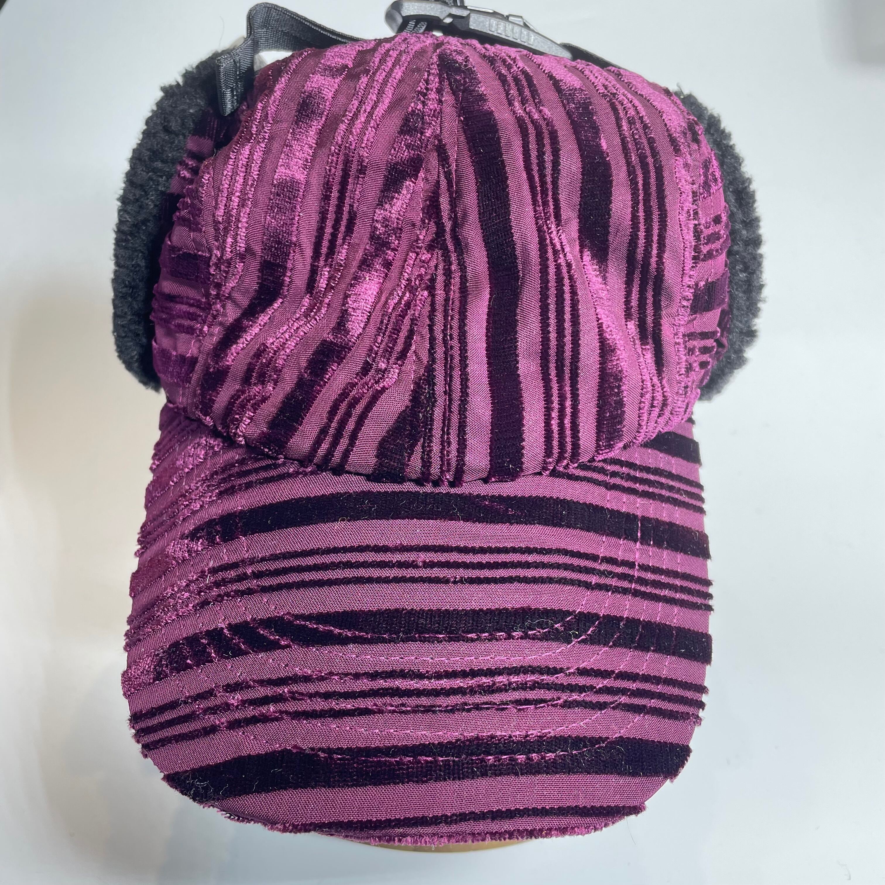 艶感のあるベルベットと独特な透け感のある生地素材で仕立てた耳付きファーキャップです。