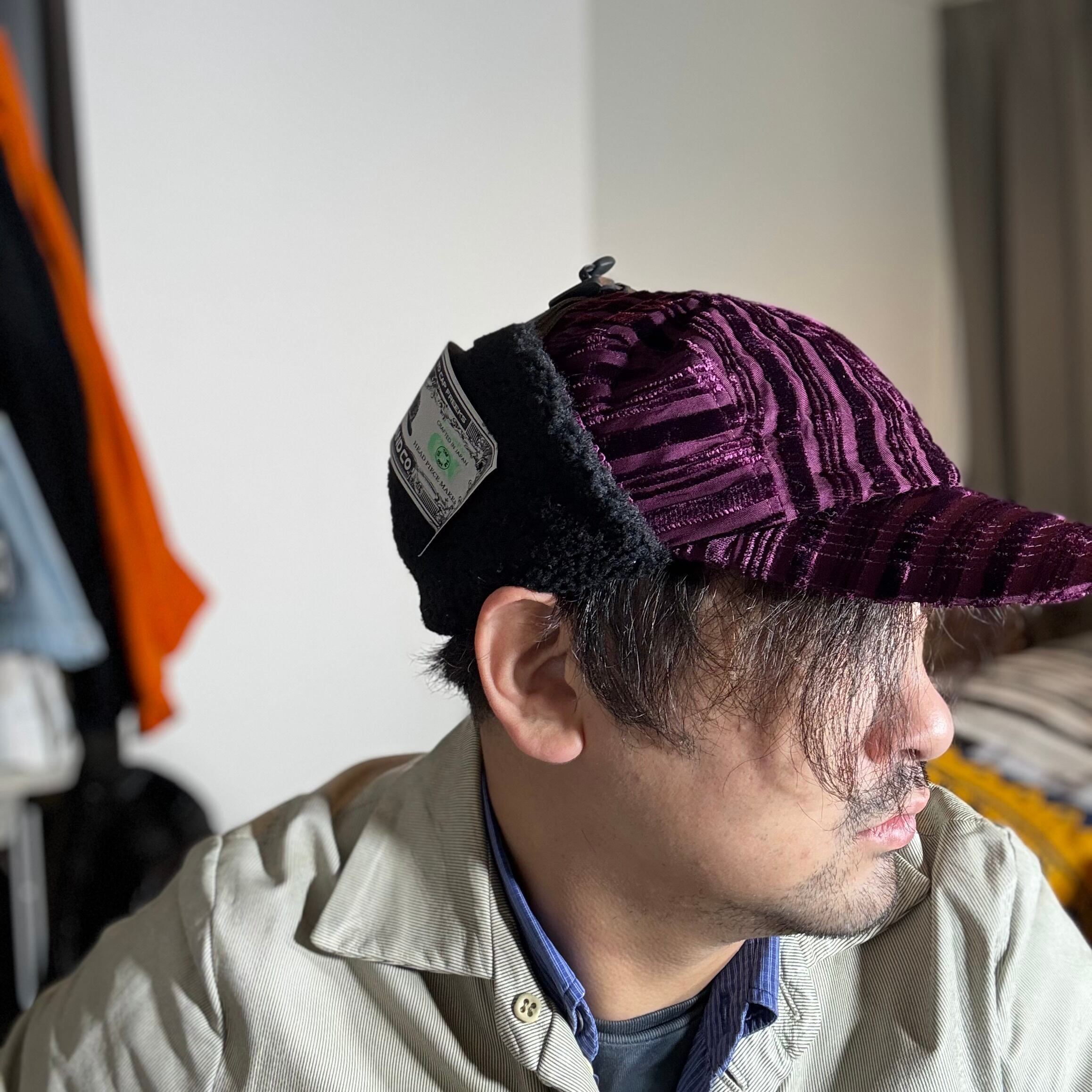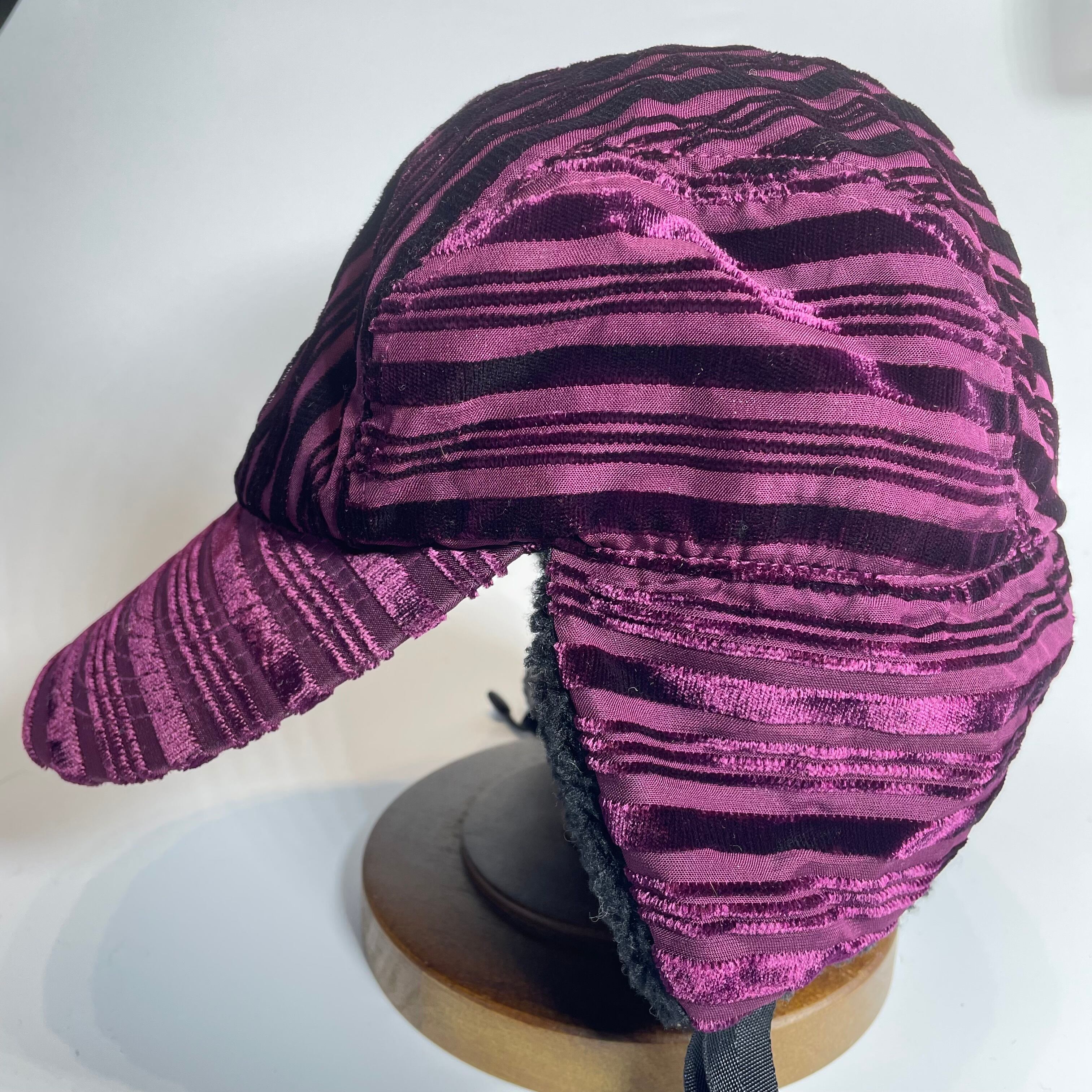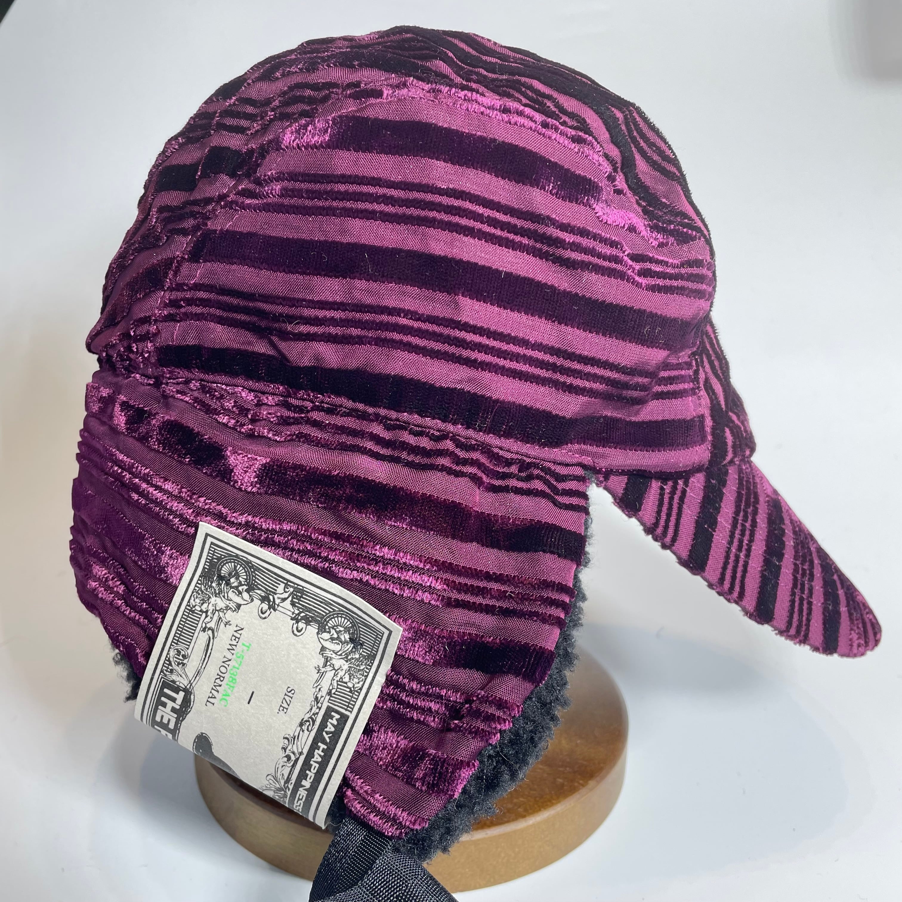 艶感のあるベルベットと独特な透け感のある生地素材で仕立てた耳付きファーキャップです。