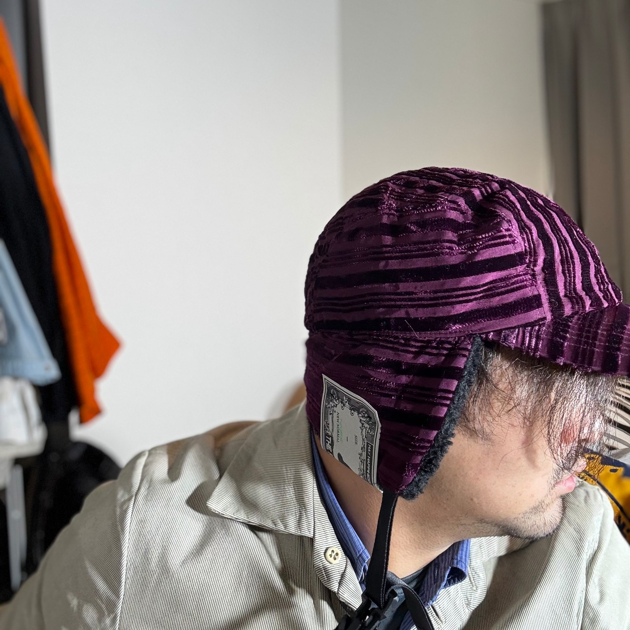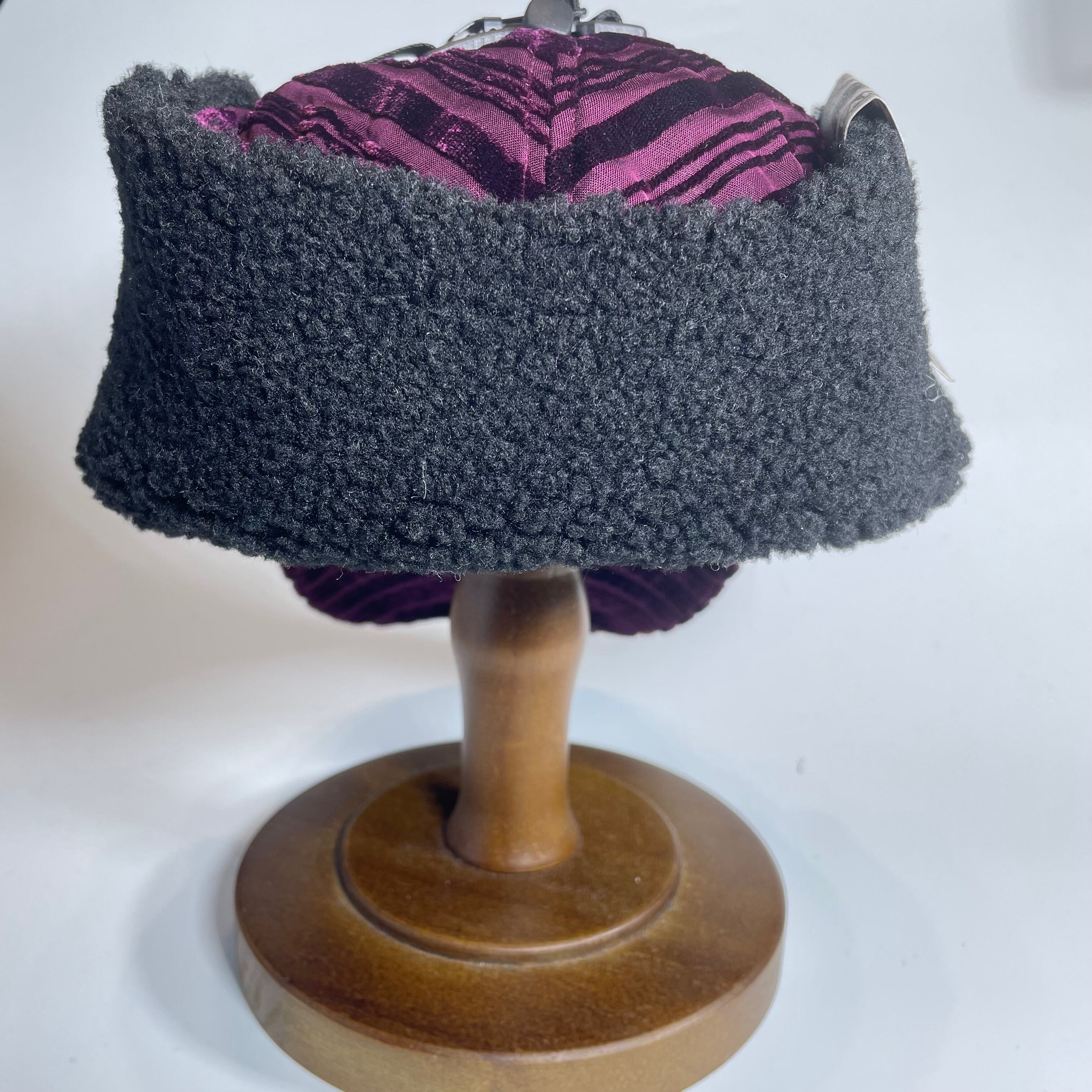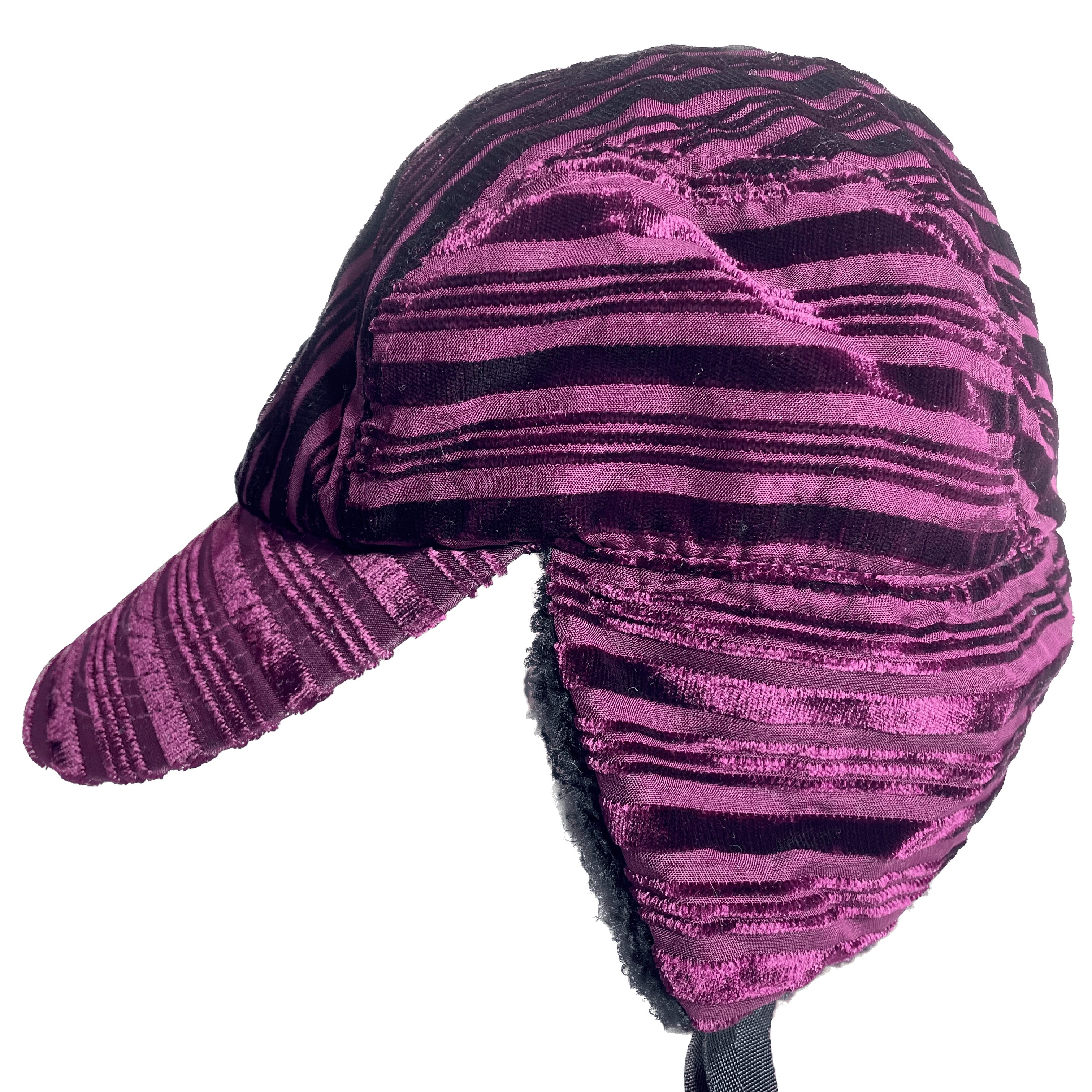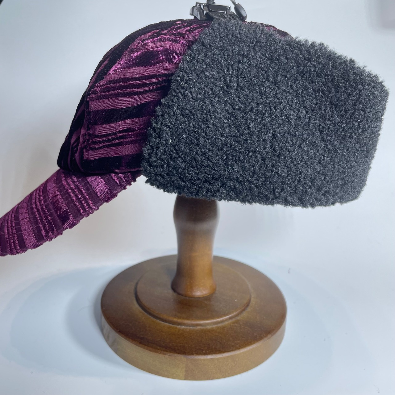 艶感のあるベルベットと独特な透け感のある生地素材で仕立てた耳付きファーキャップです。