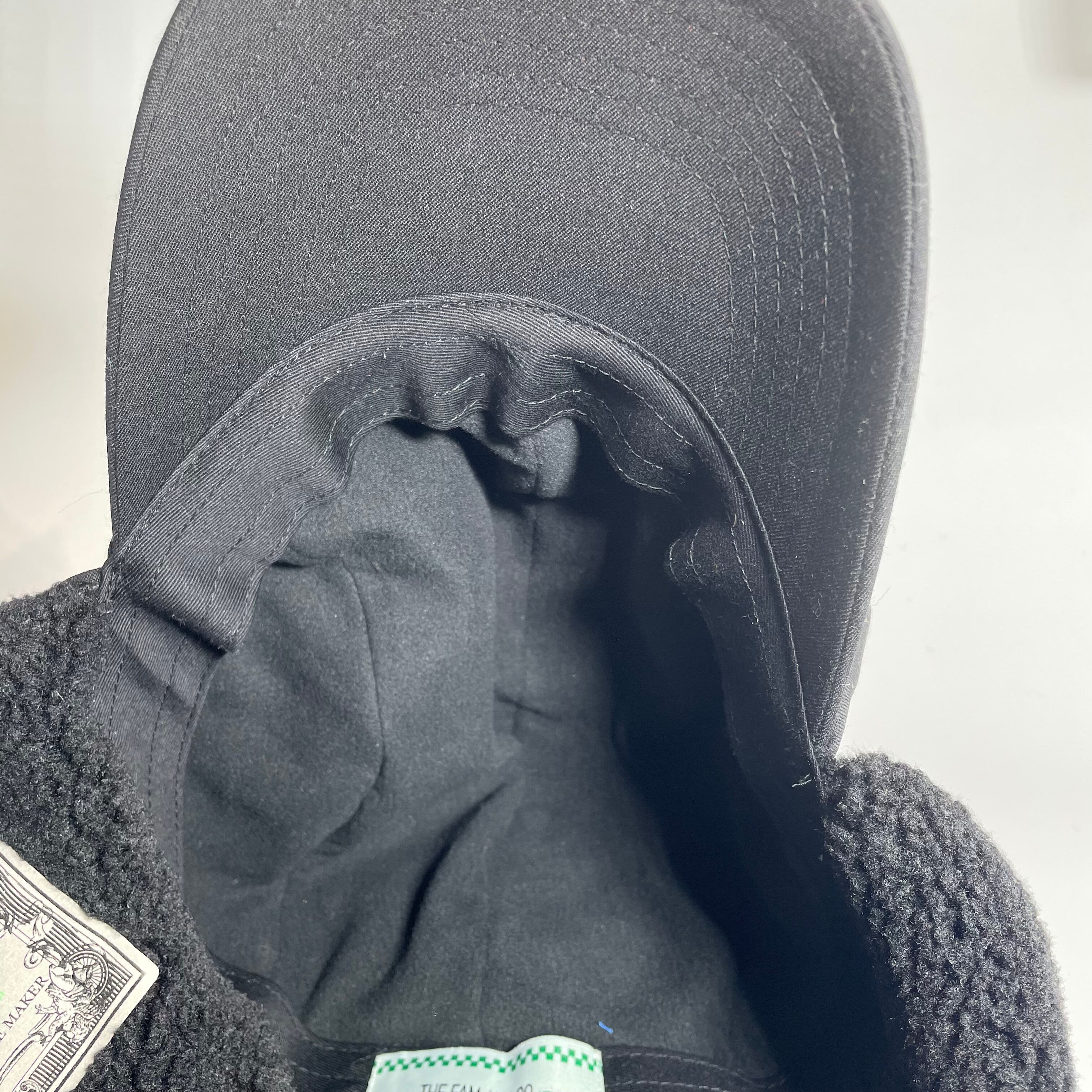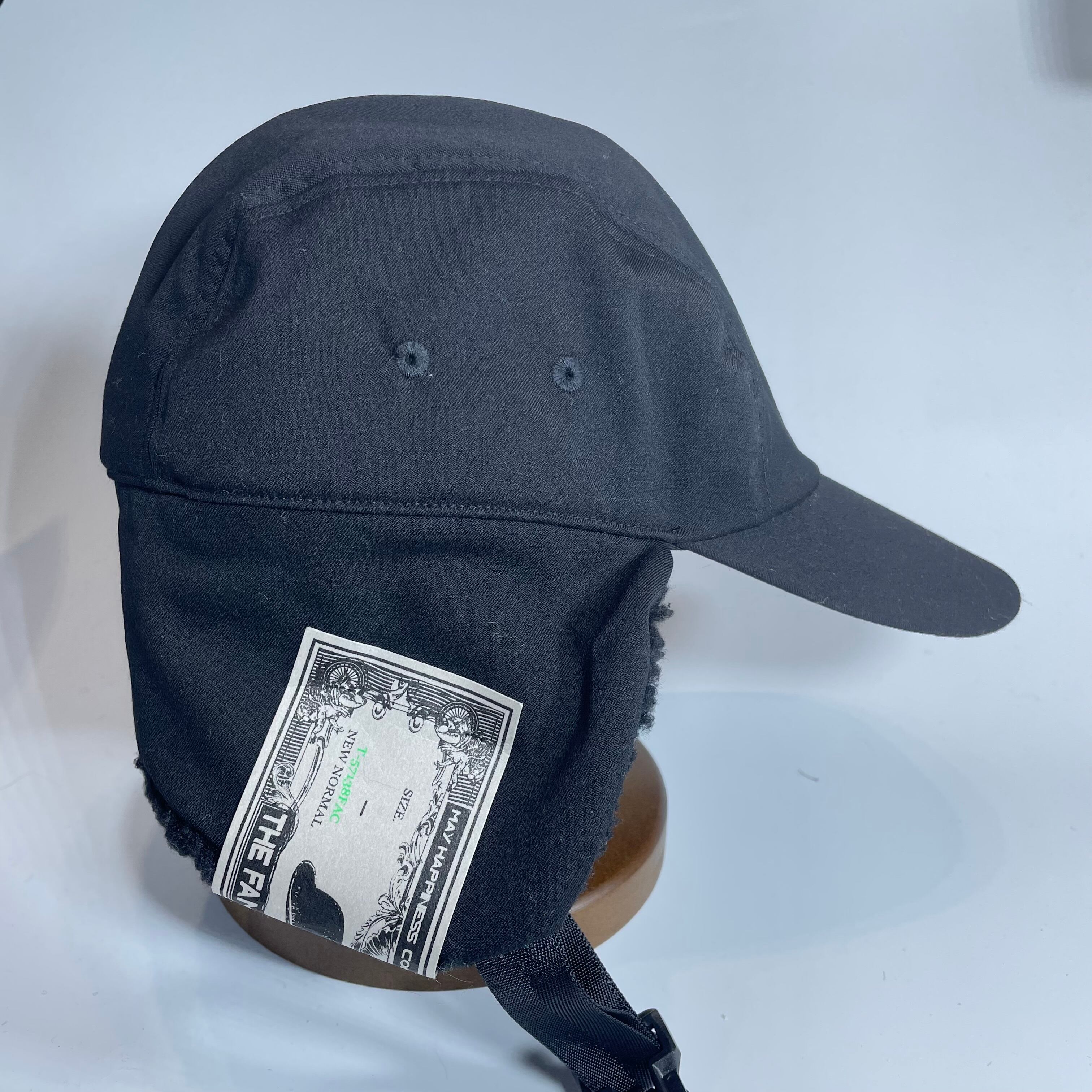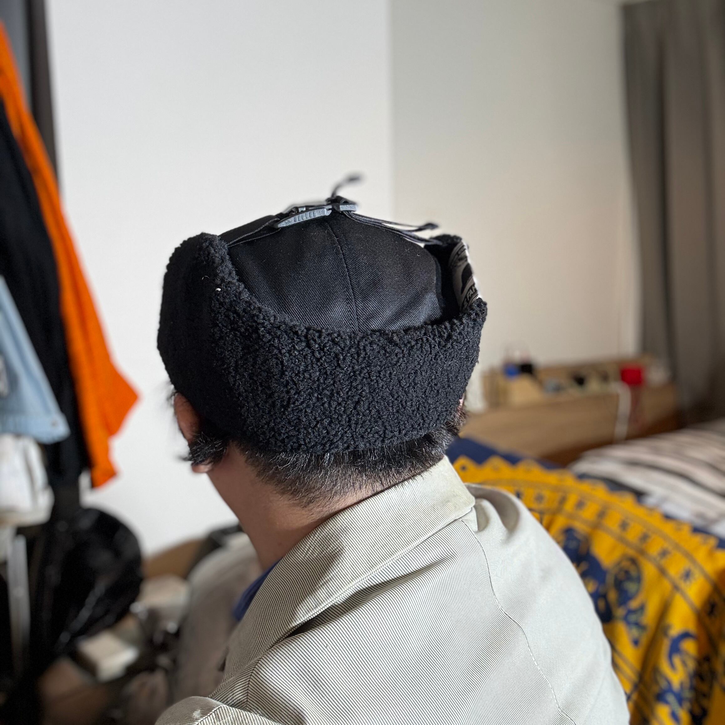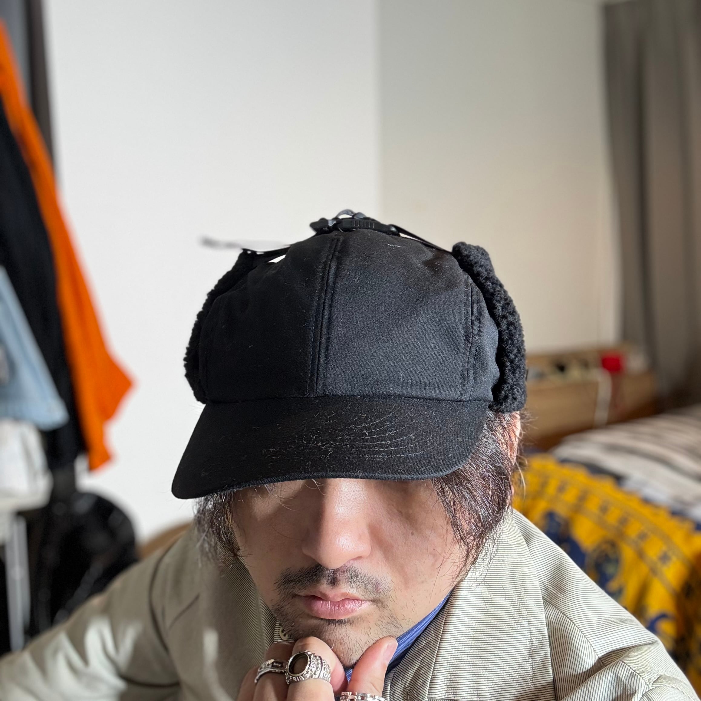 スーツ地として使われるストレッチウール素材で仕立てた耳付きファーキャップです。