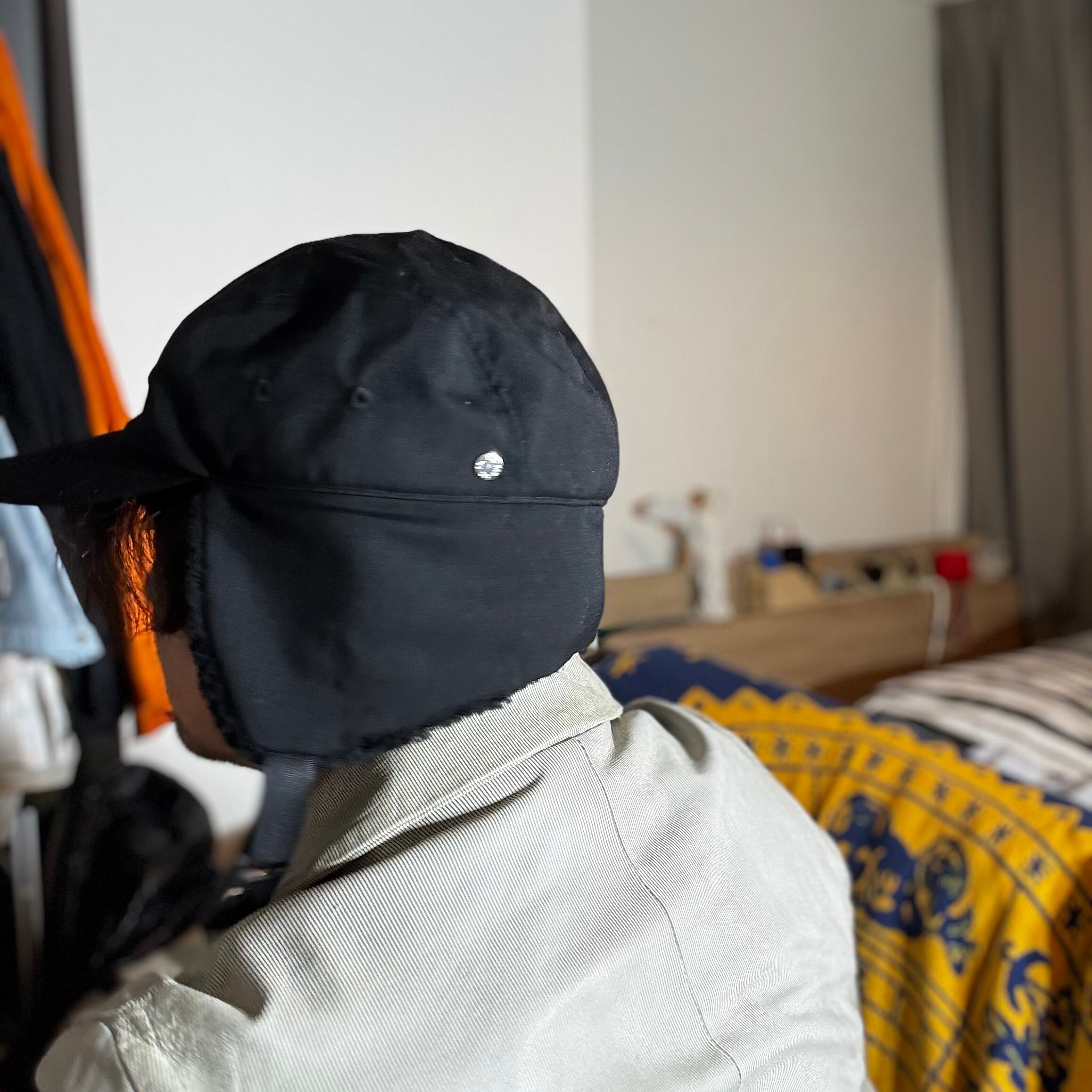 フラップ部をそのまま垂らしたり、上に上げて被ることも出来ます。
