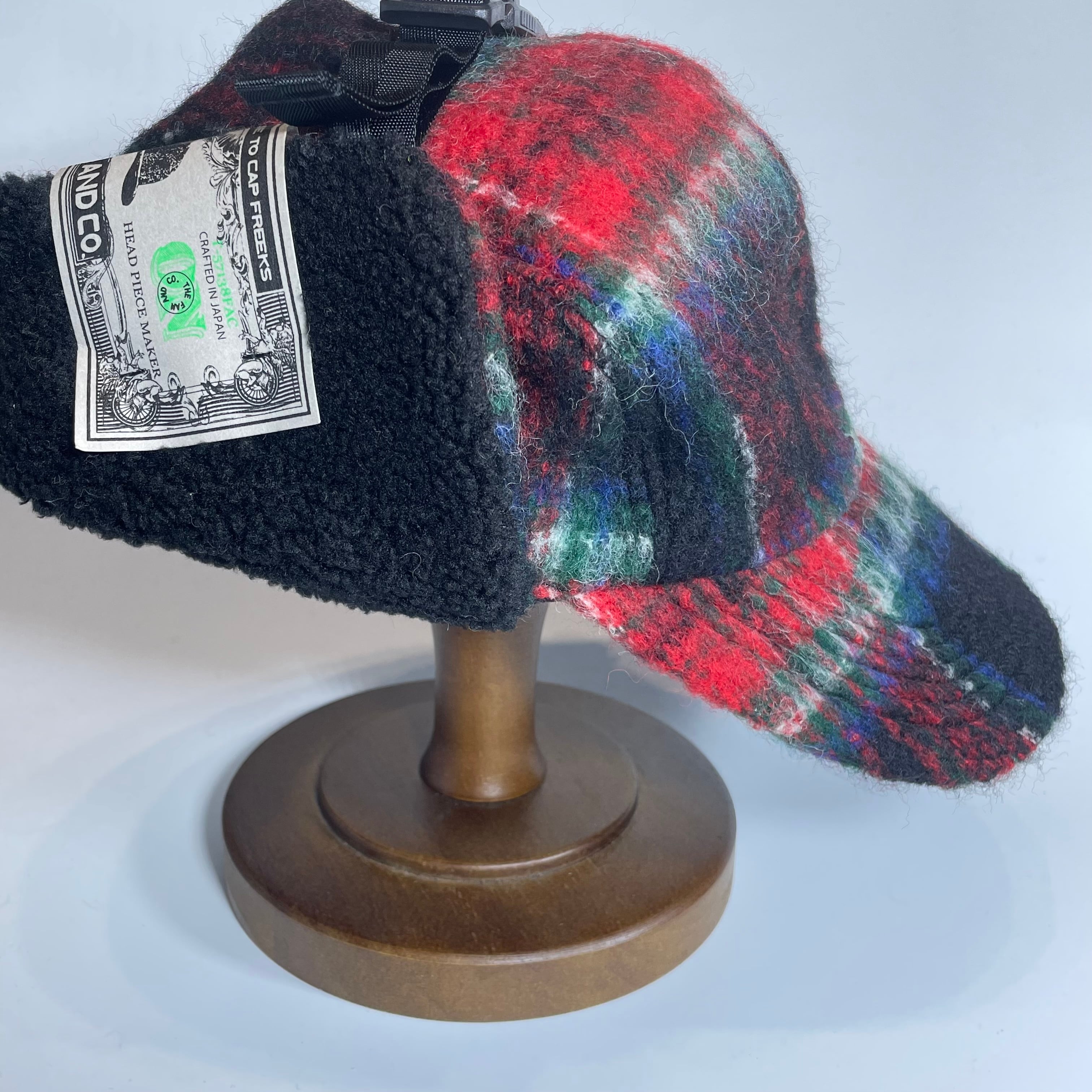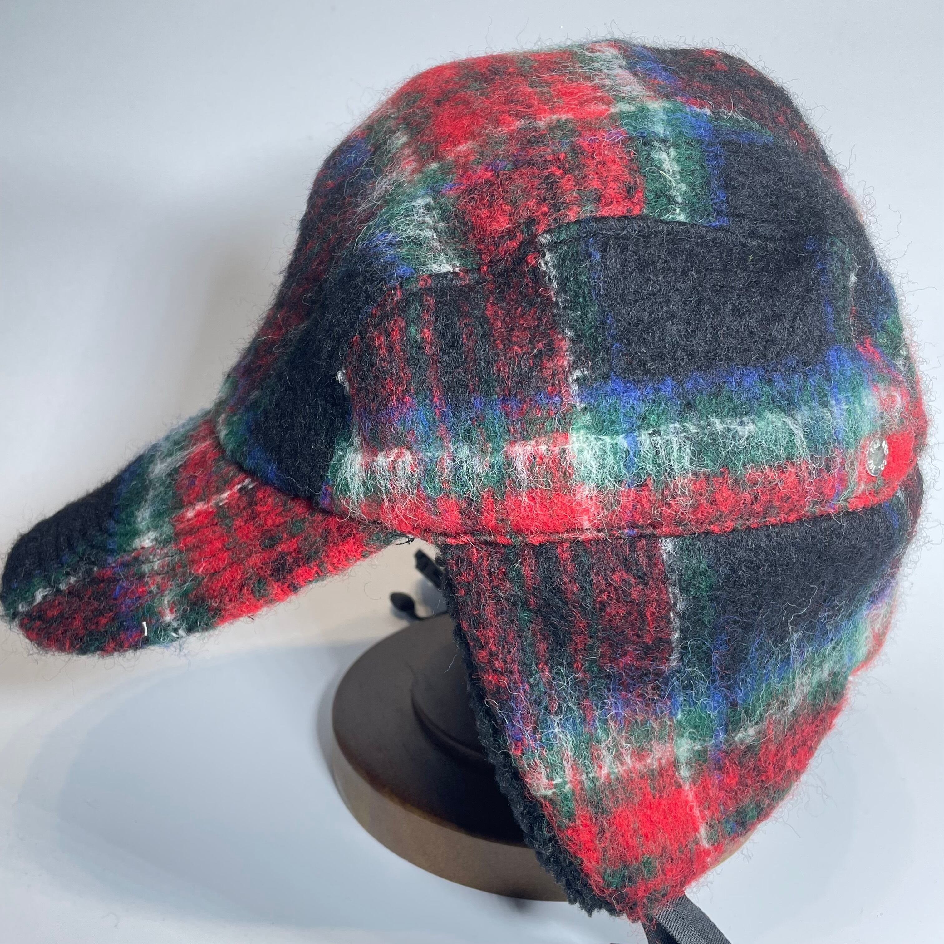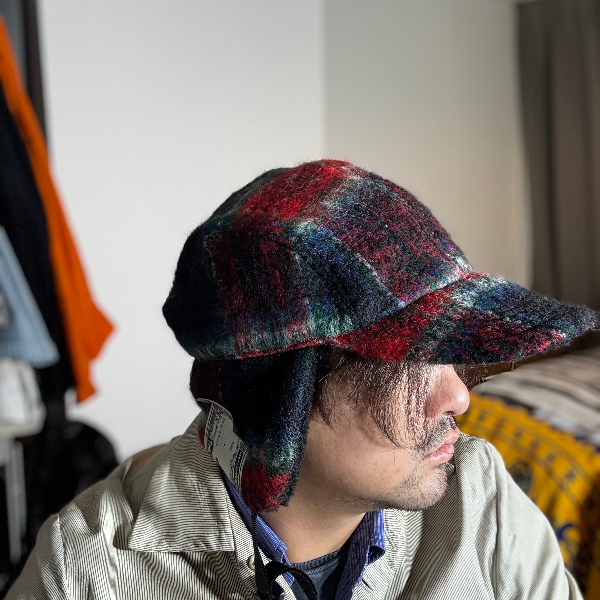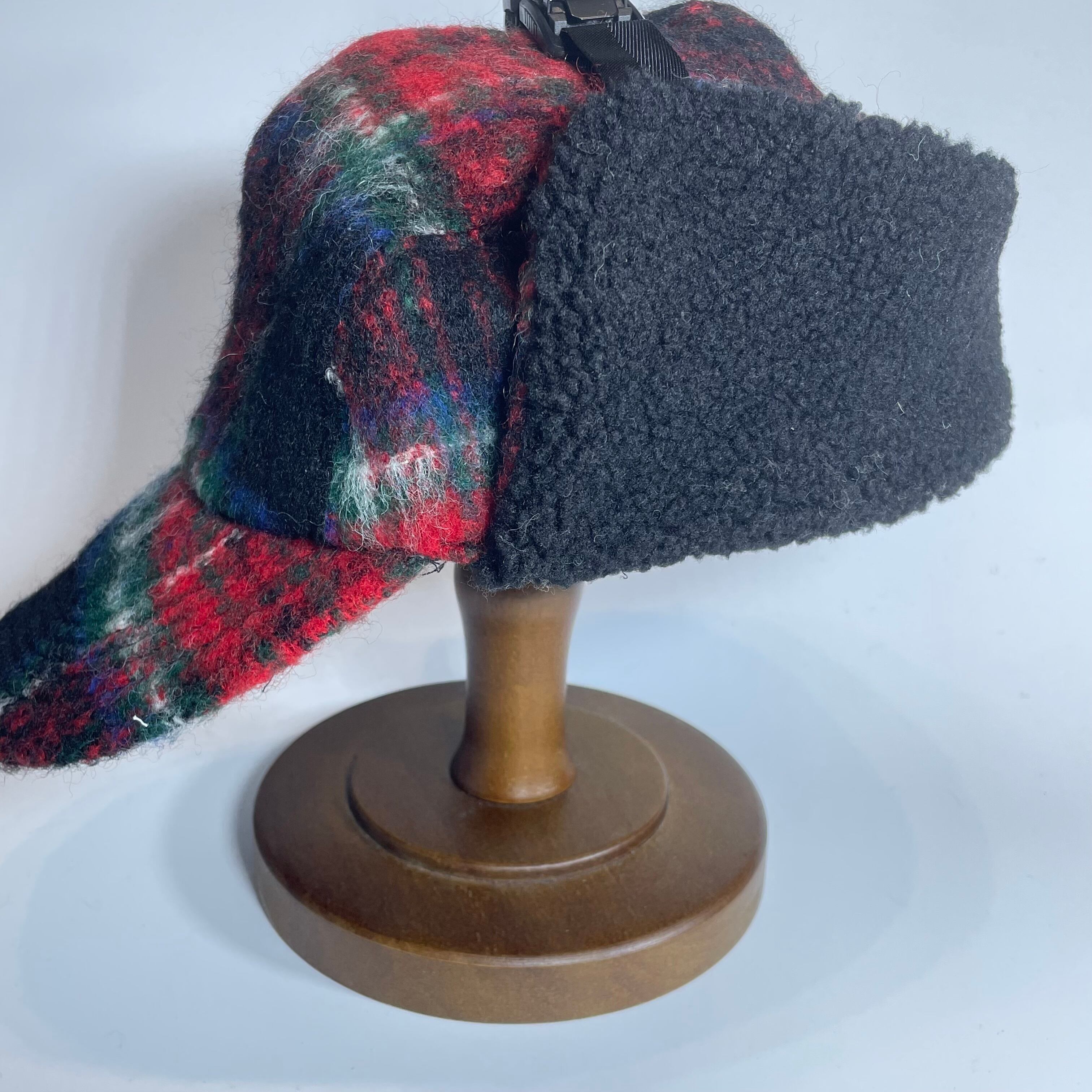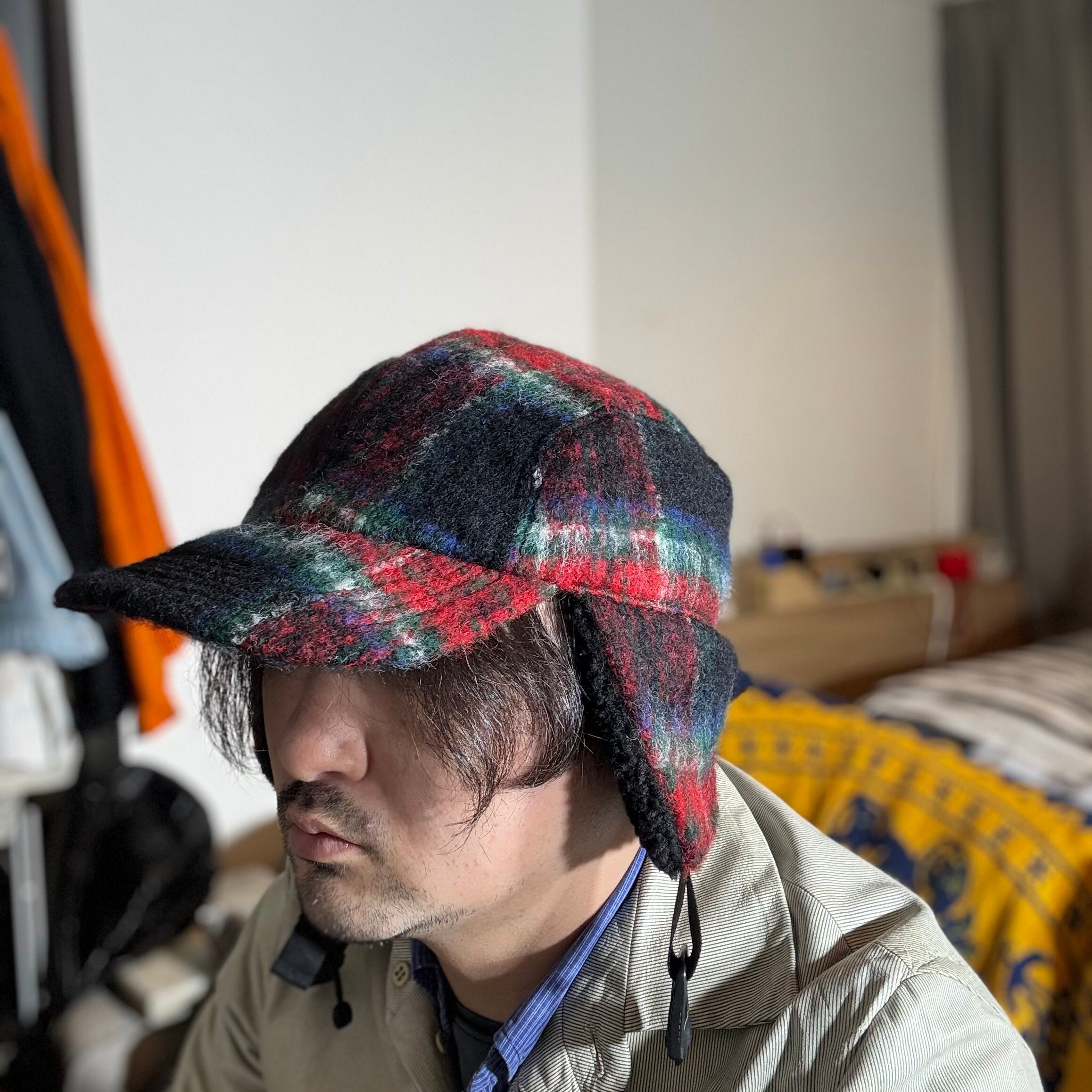 オリジナルのふんわり織られたウールモヘア生地を耳付きのフライトキャップに仕立て上げました。