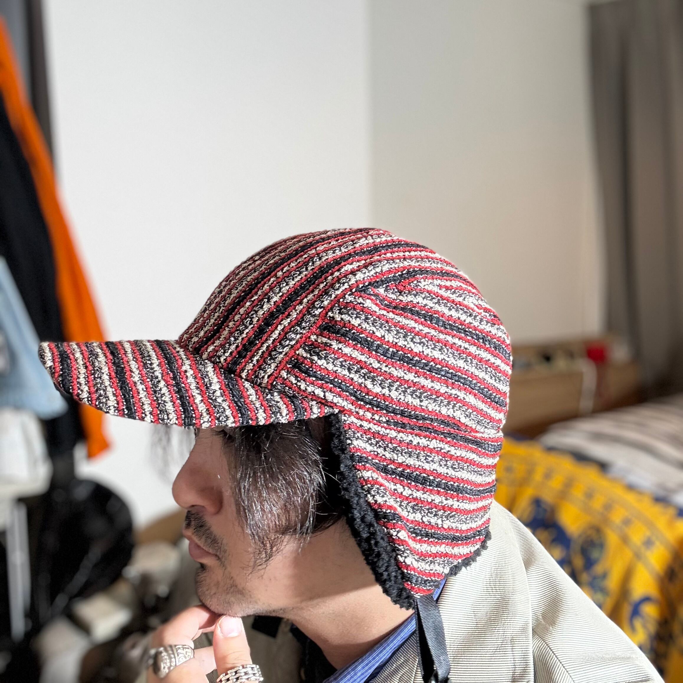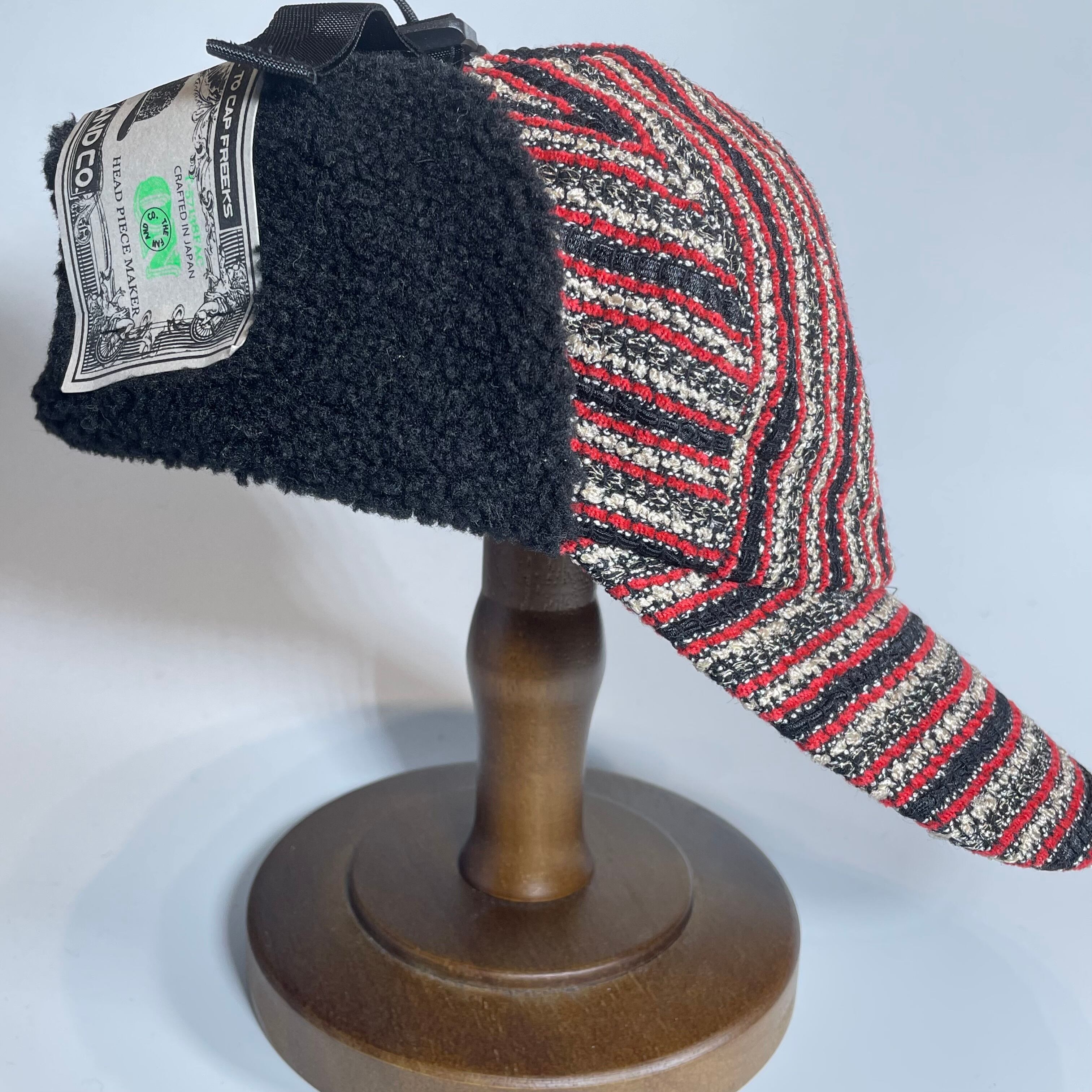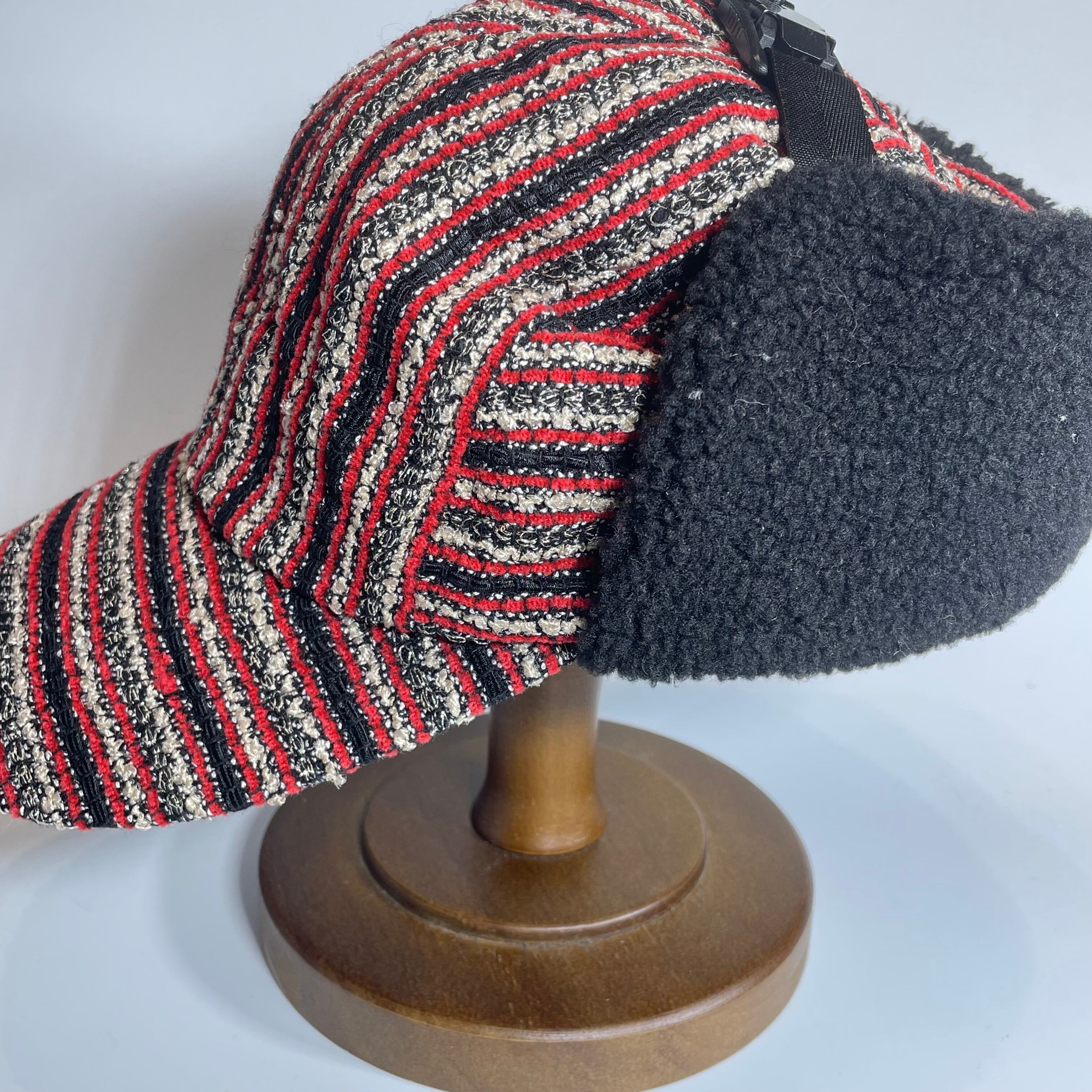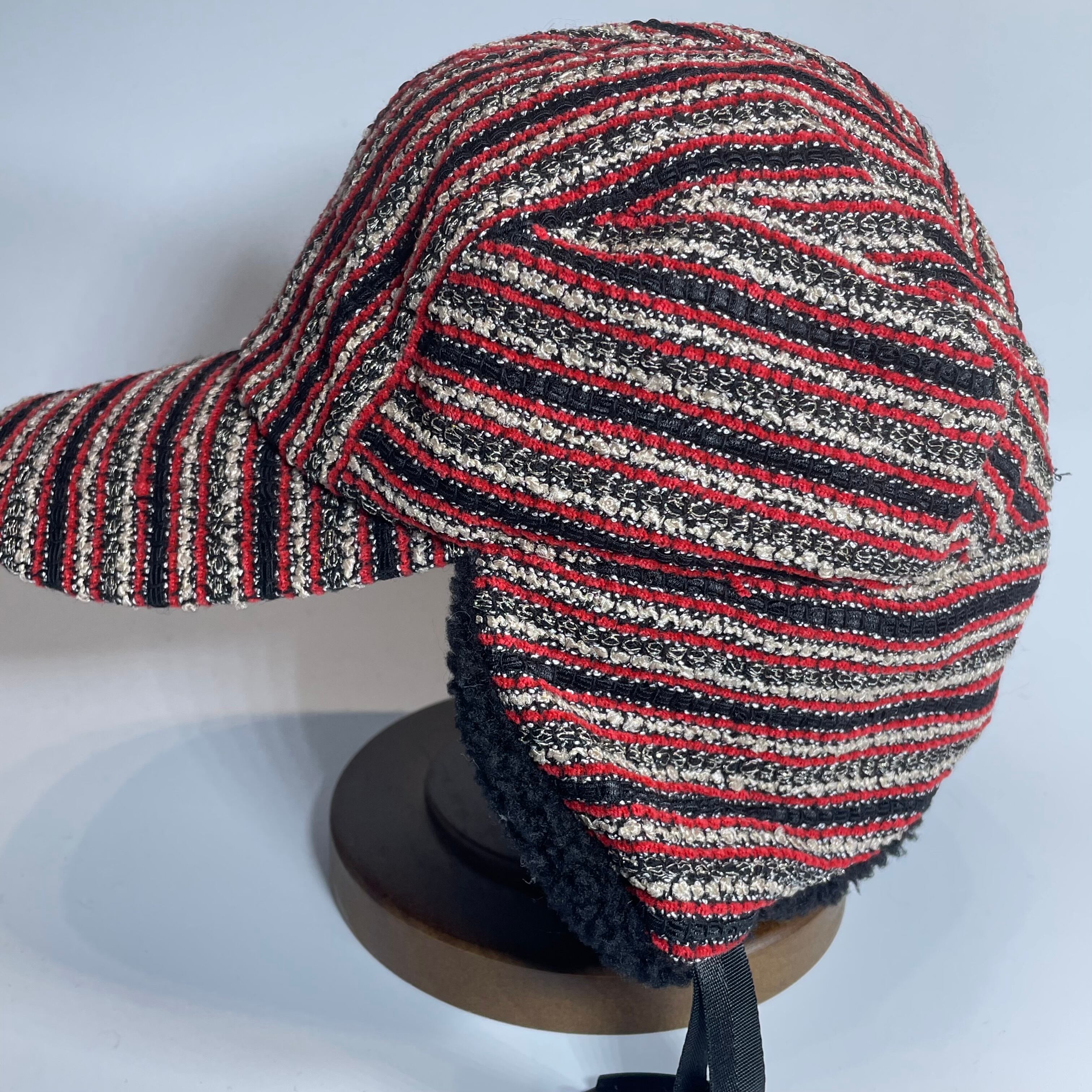 テーラーで使用されていたデッドストックのツイード生地がカジュアルでもフォーマルでも合わせやすい耳付きファーキャップになります。