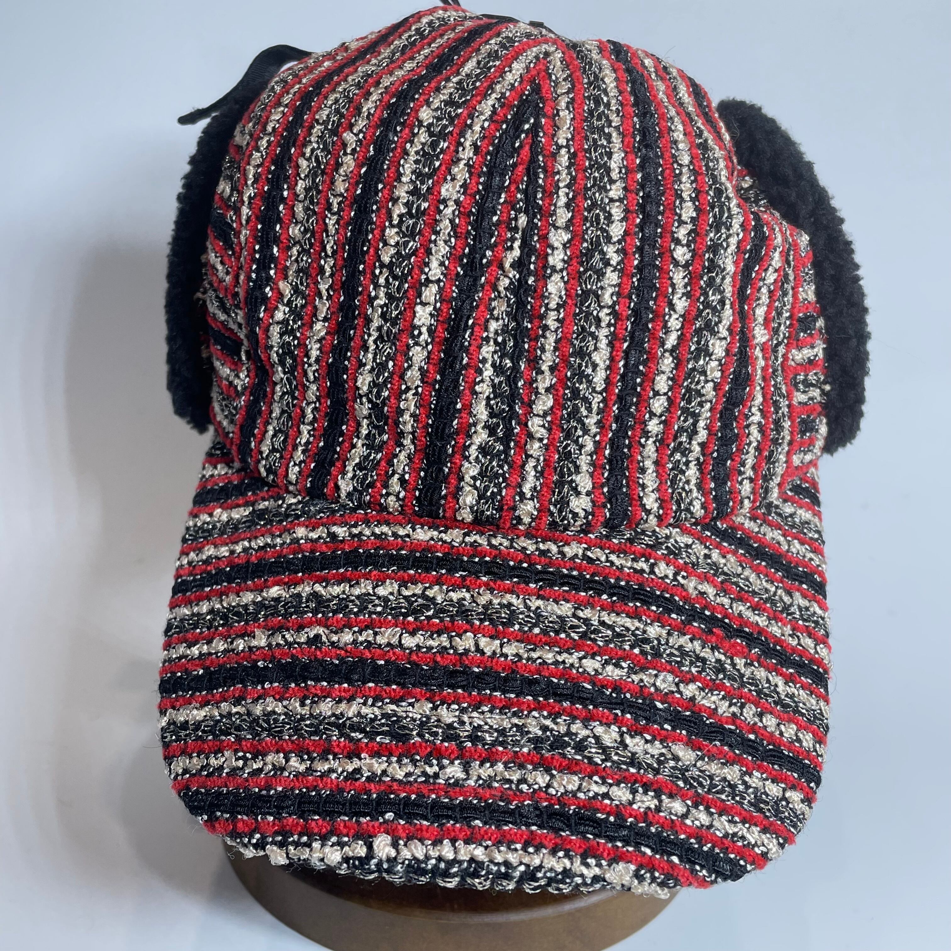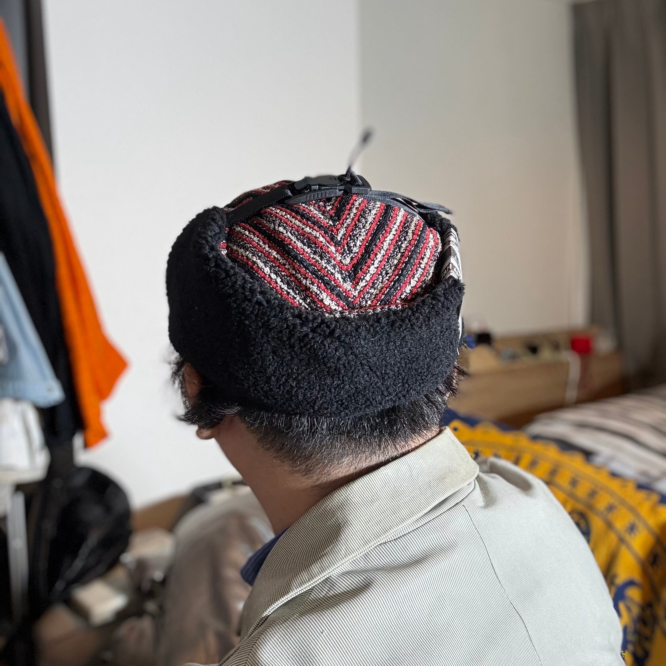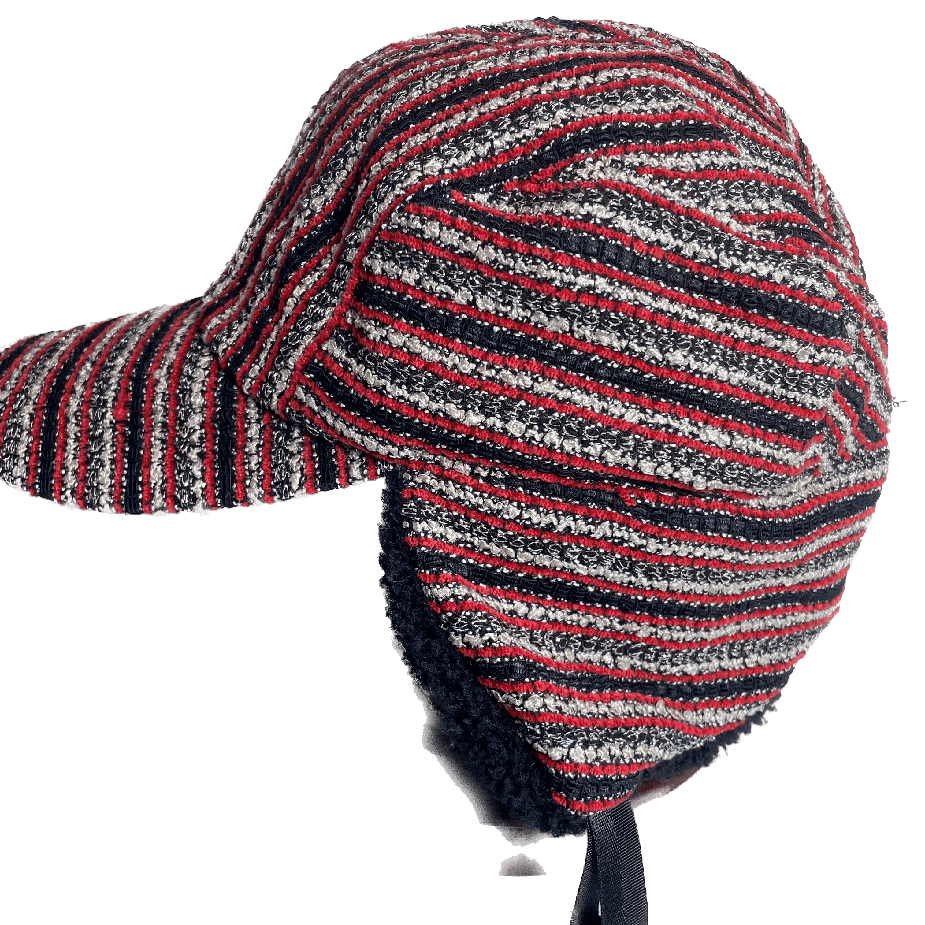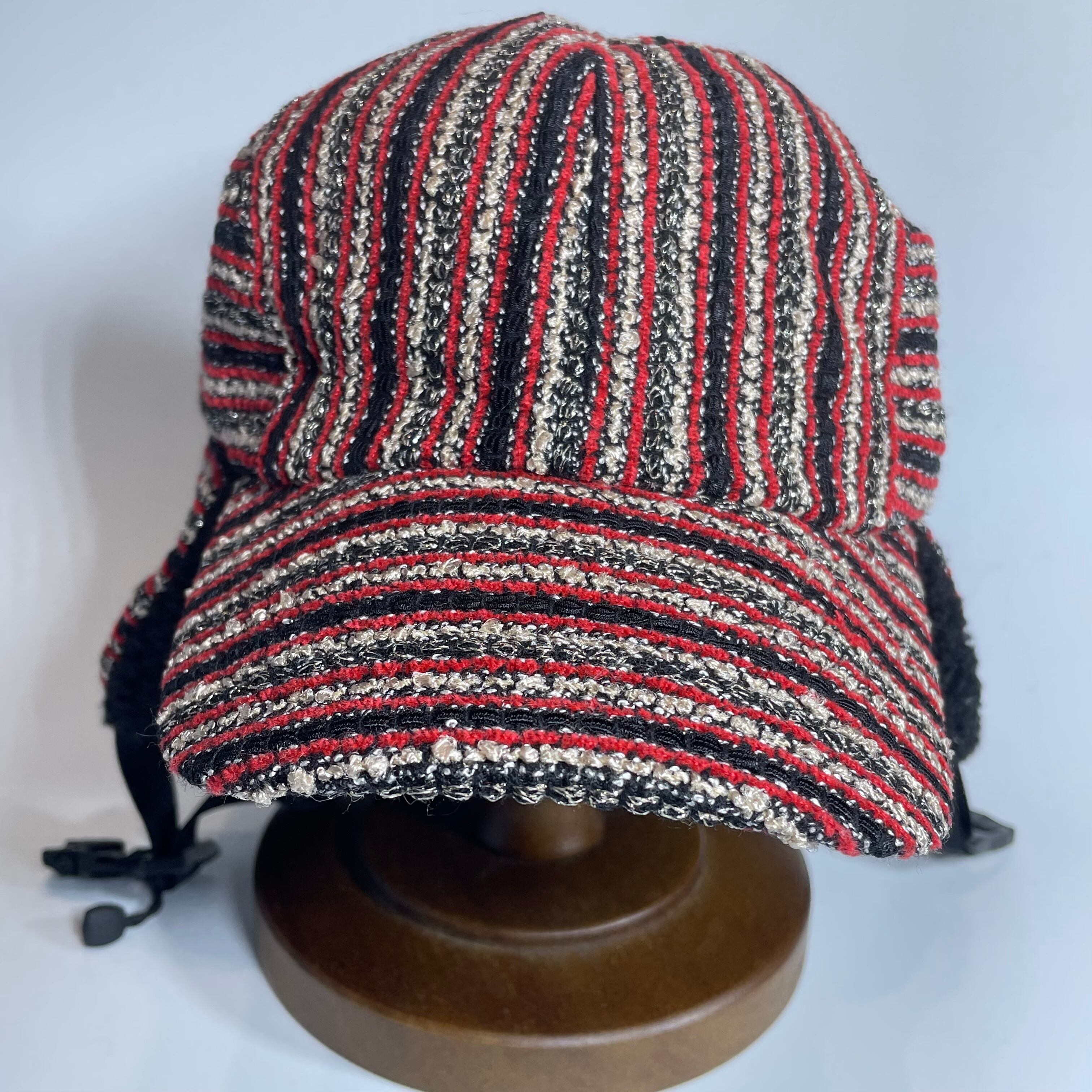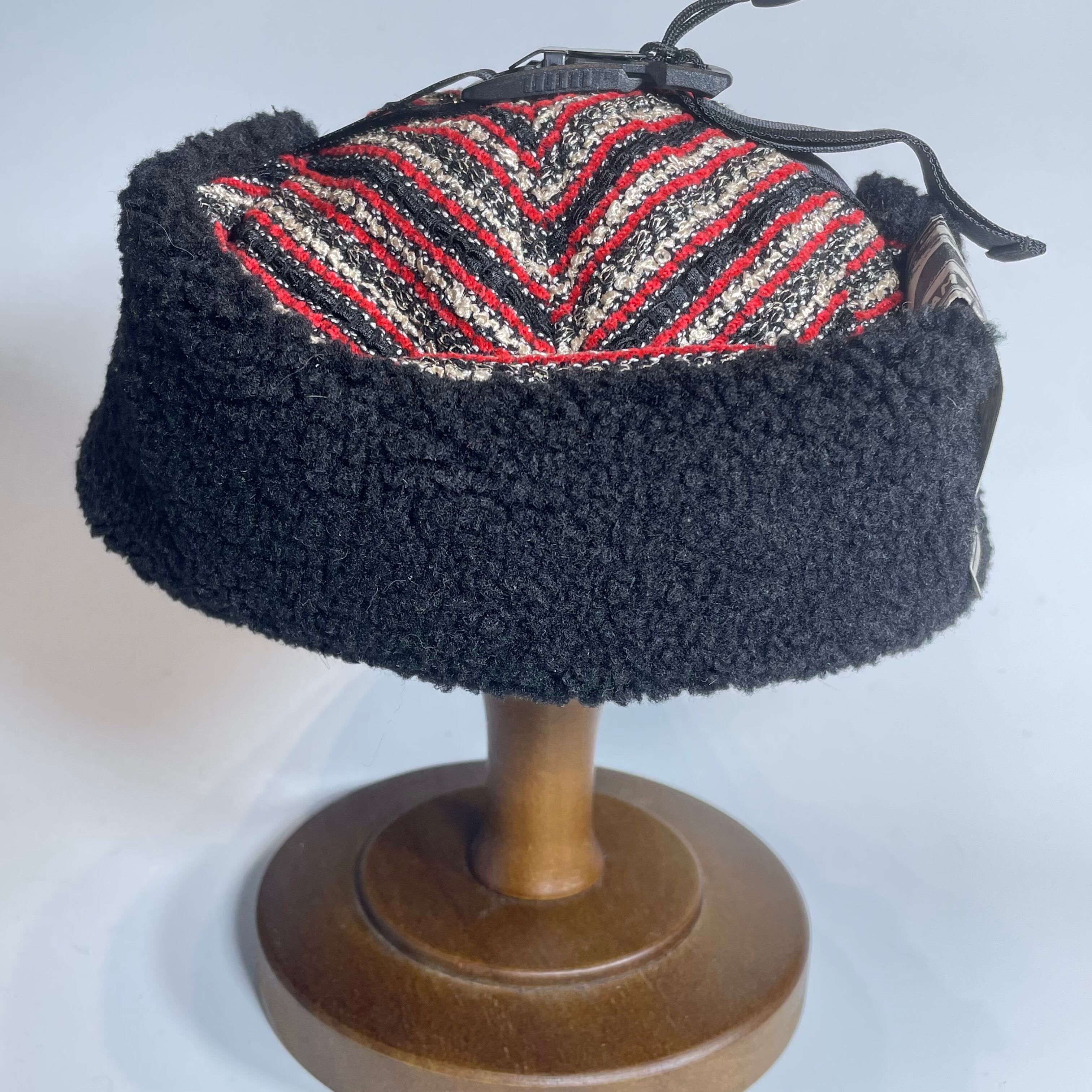 テーラーで使用されていたデッドストックのツイード生地がカジュアルでもフォーマルでも合わせやすい耳付きファーキャップになります。