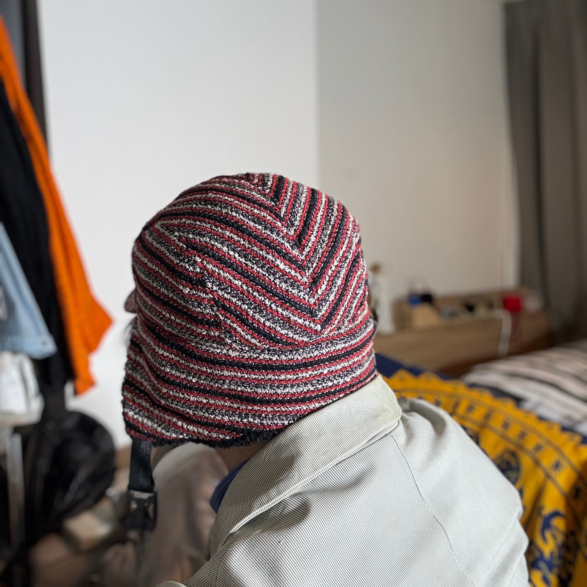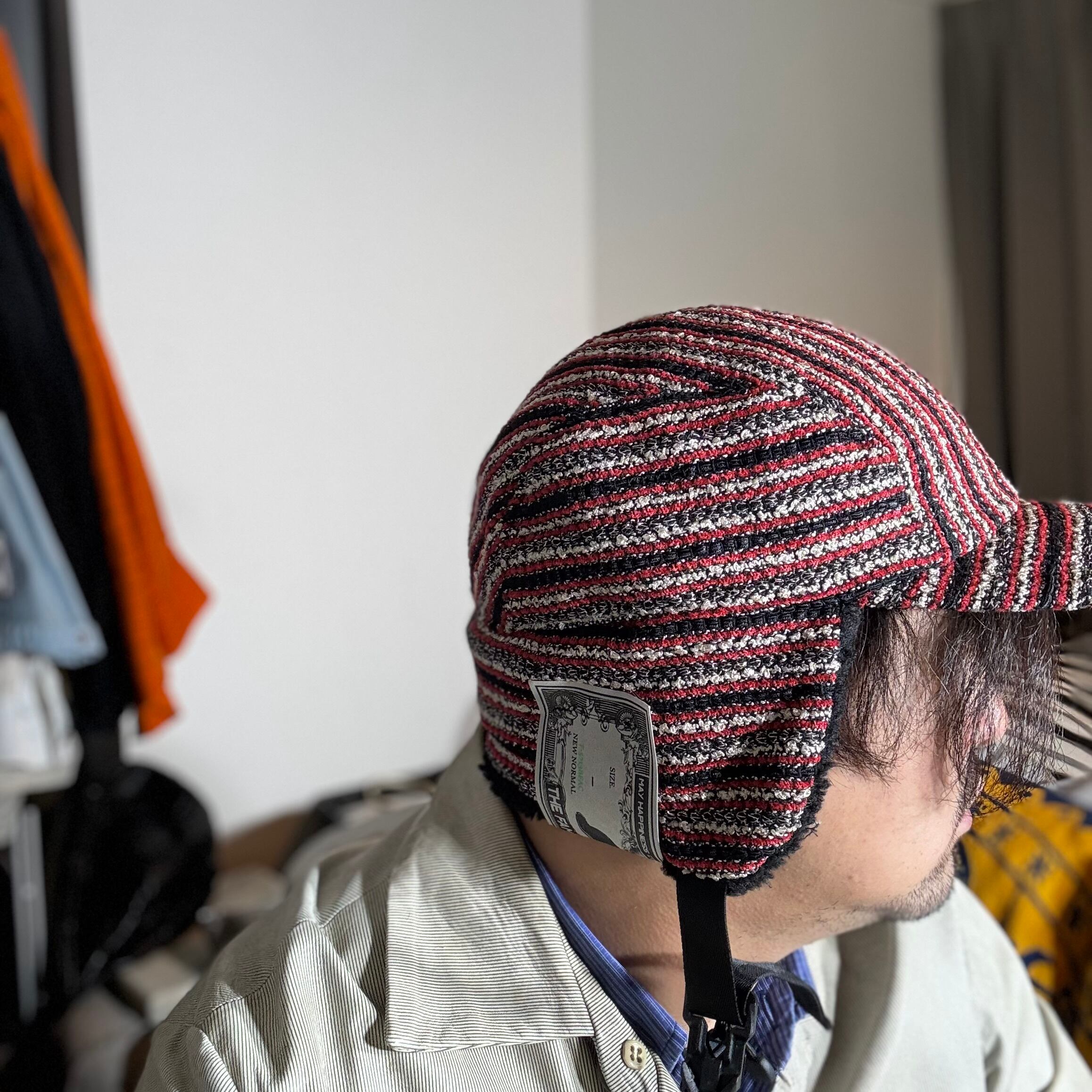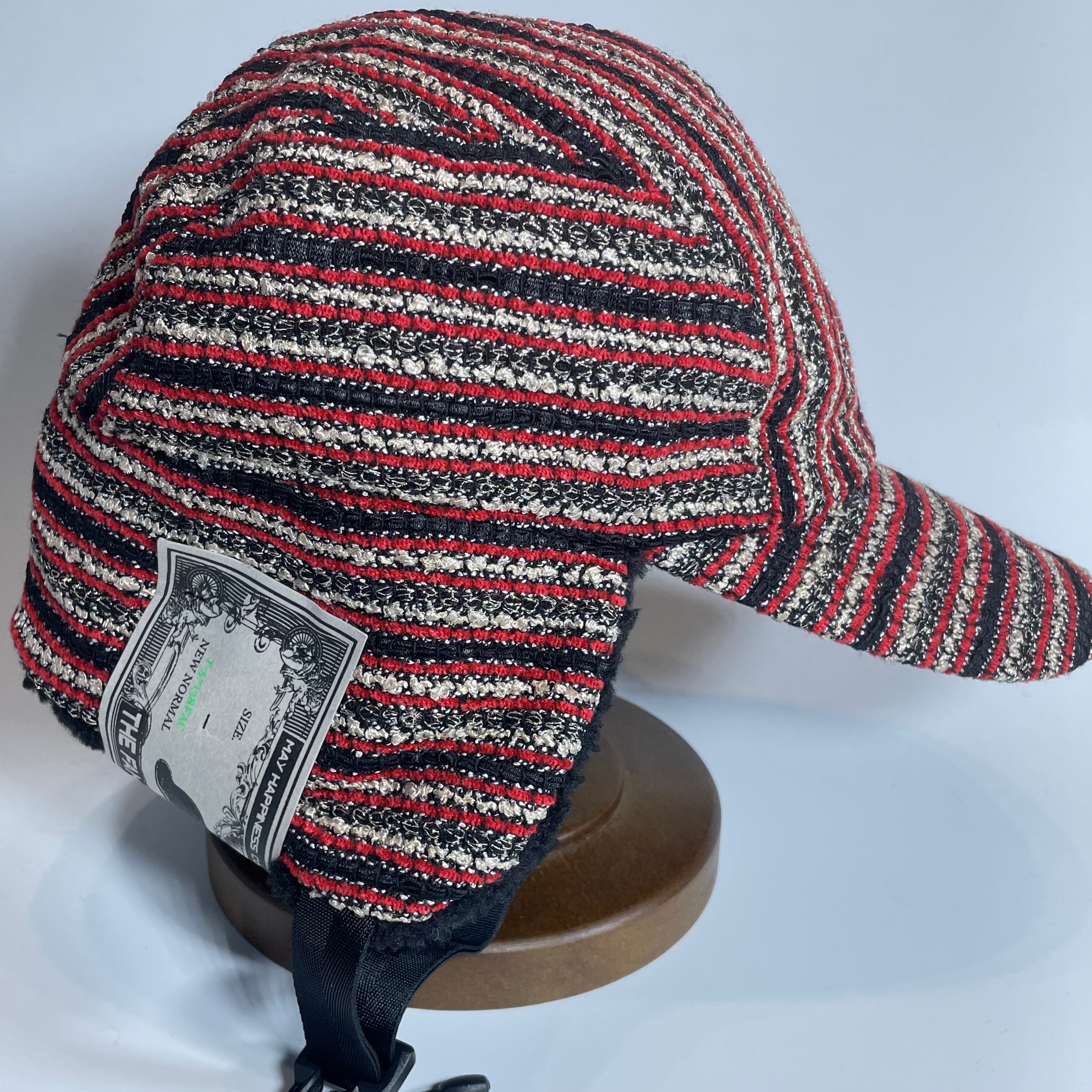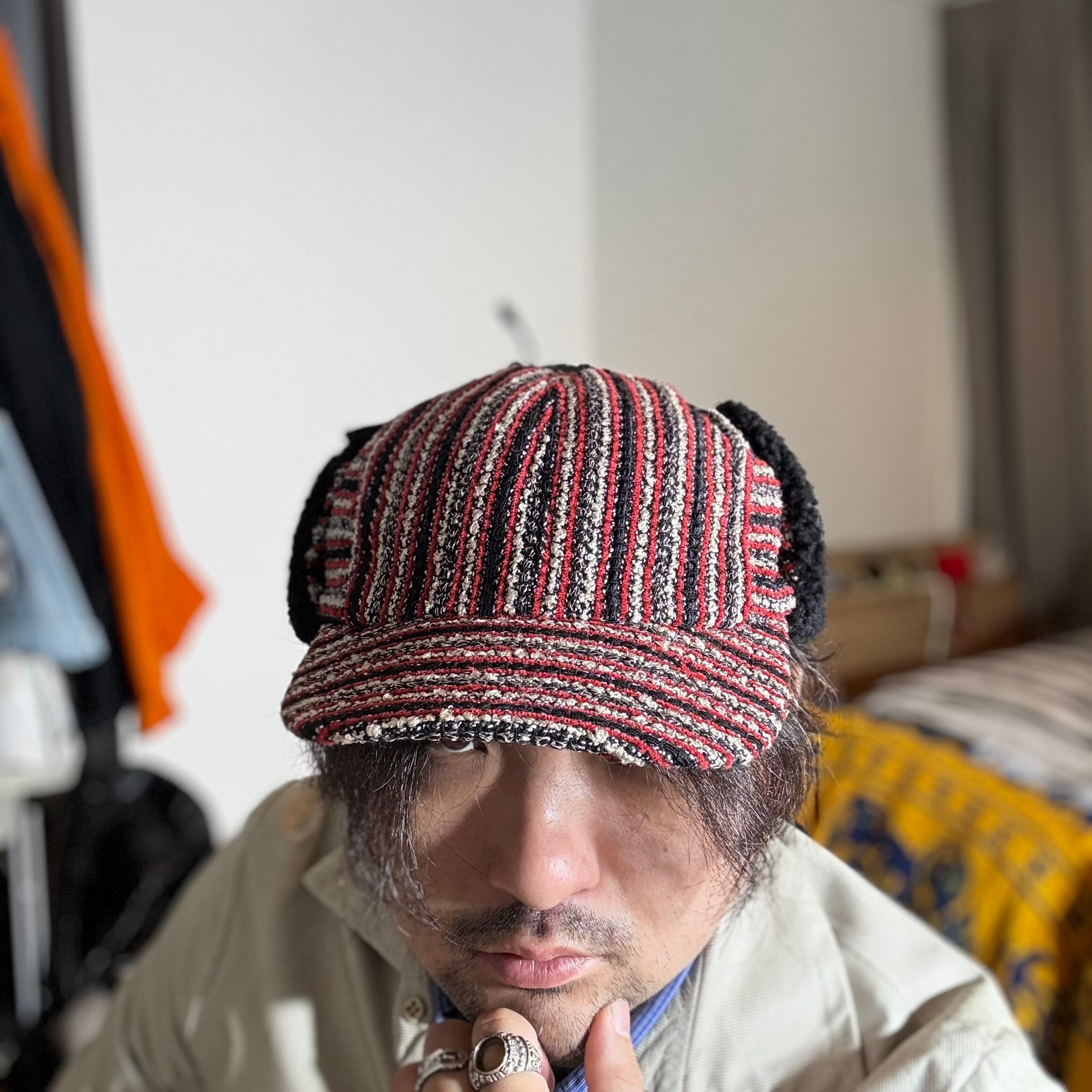 テーラーで使用されていたデッドストックのツイード生地がカジュアルでもフォーマルでも合わせやすい耳付きファーキャップになります。