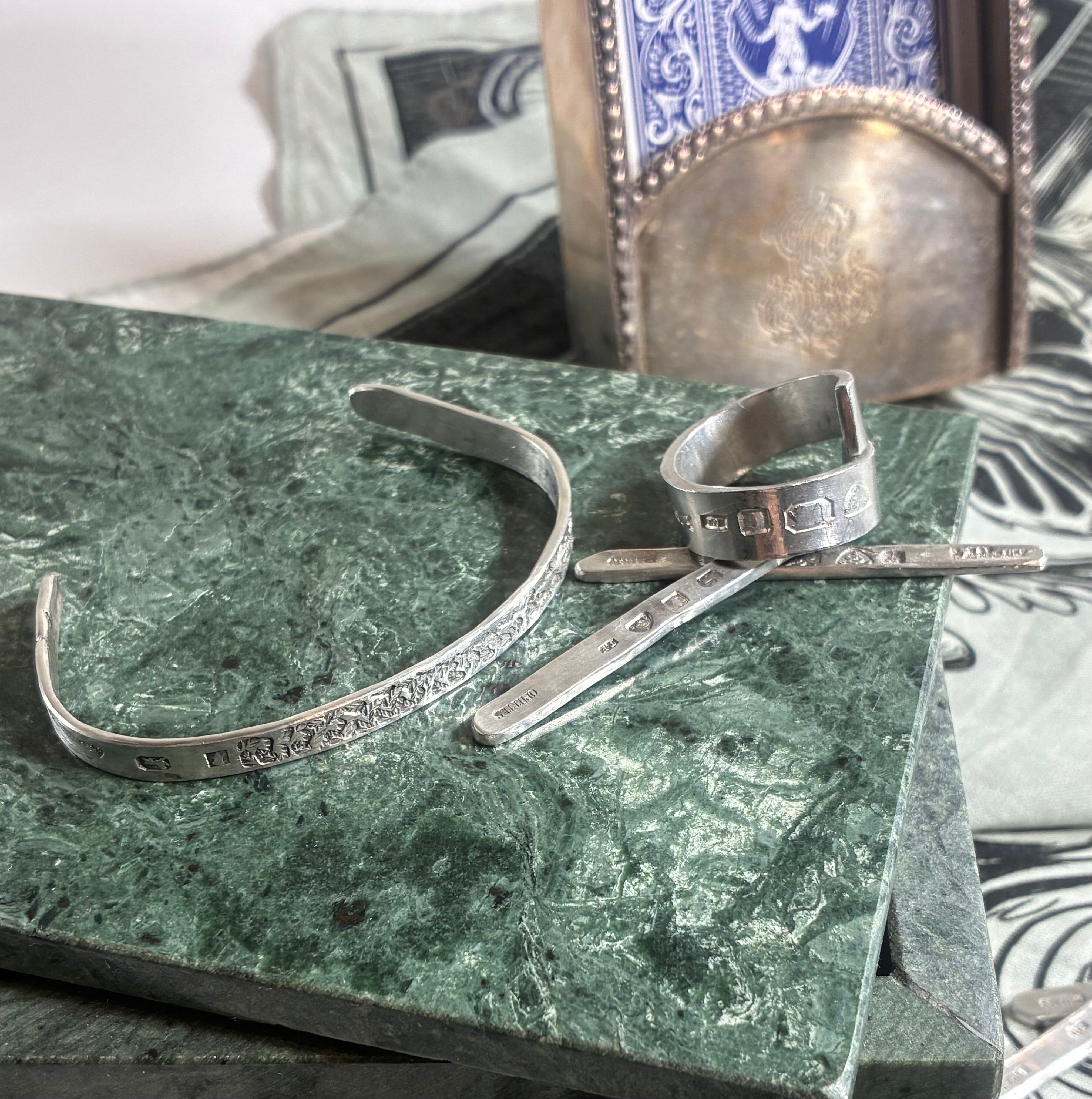 錫に少量の銀を加えた、柔らかな合金で仕立てたハンドメイドリングです。