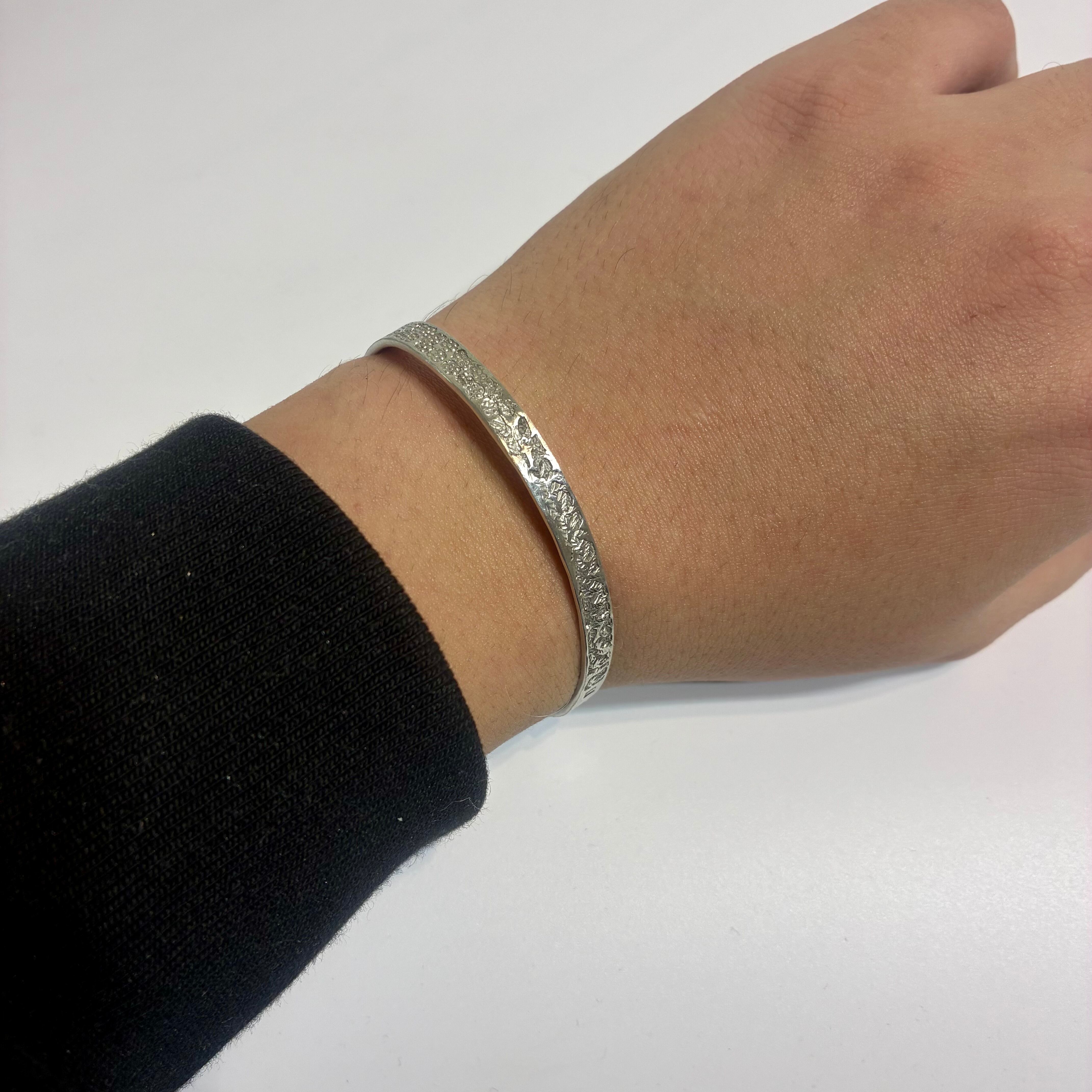 錫に少量の銀を加えた、柔らかな合金で仕立てたハンドメイドブレスレットです。