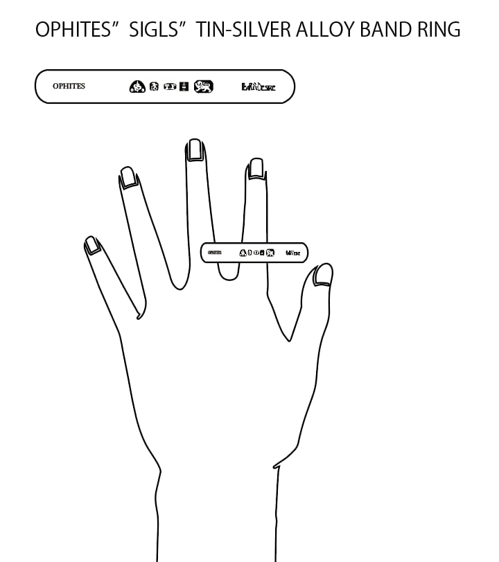 OPHITES ”SIGLS” TIN-SILVER ALLOY BAND RING MOTIVO