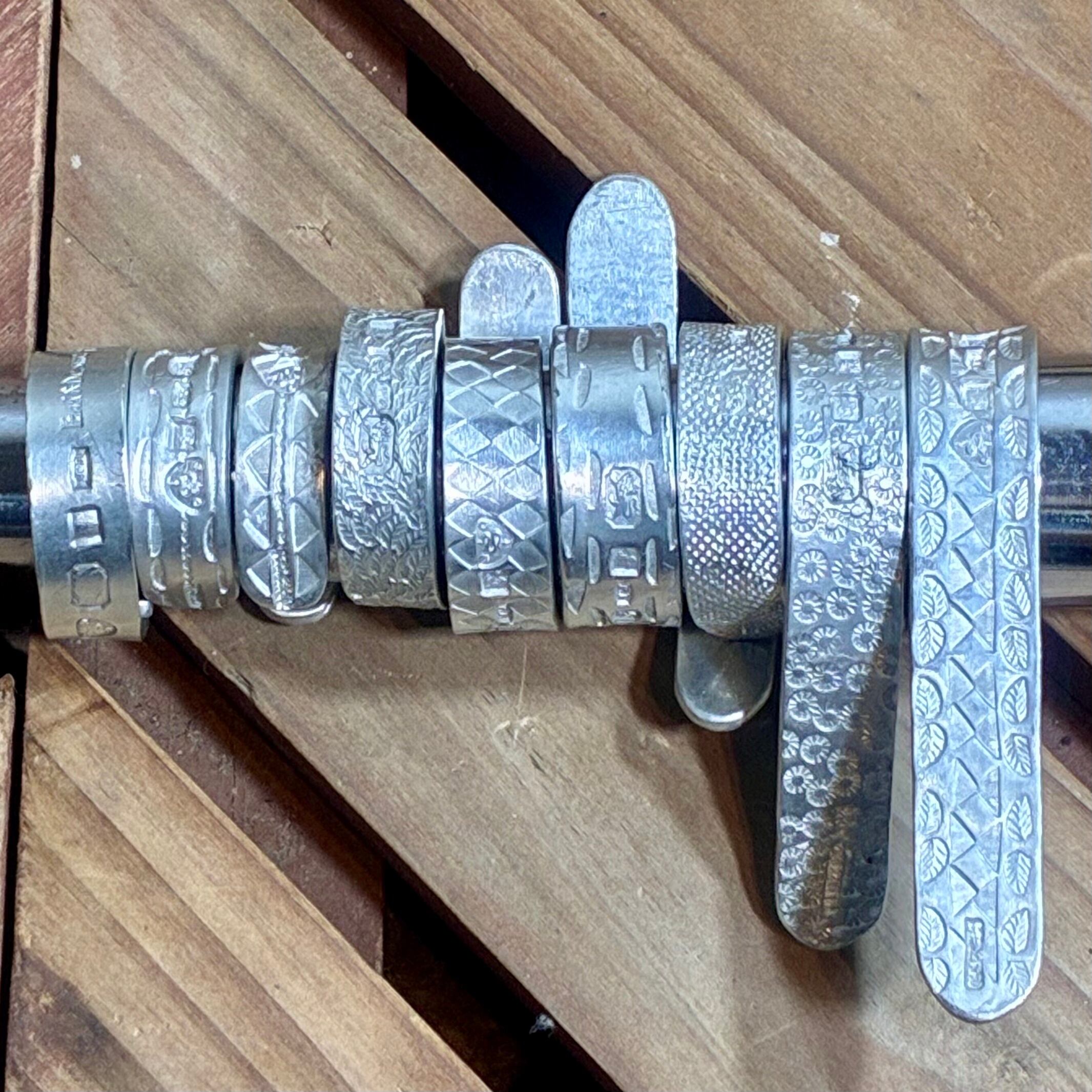 錫に少量の銀を加えた、柔らかな合金で仕立てたハンドメイドリングです。