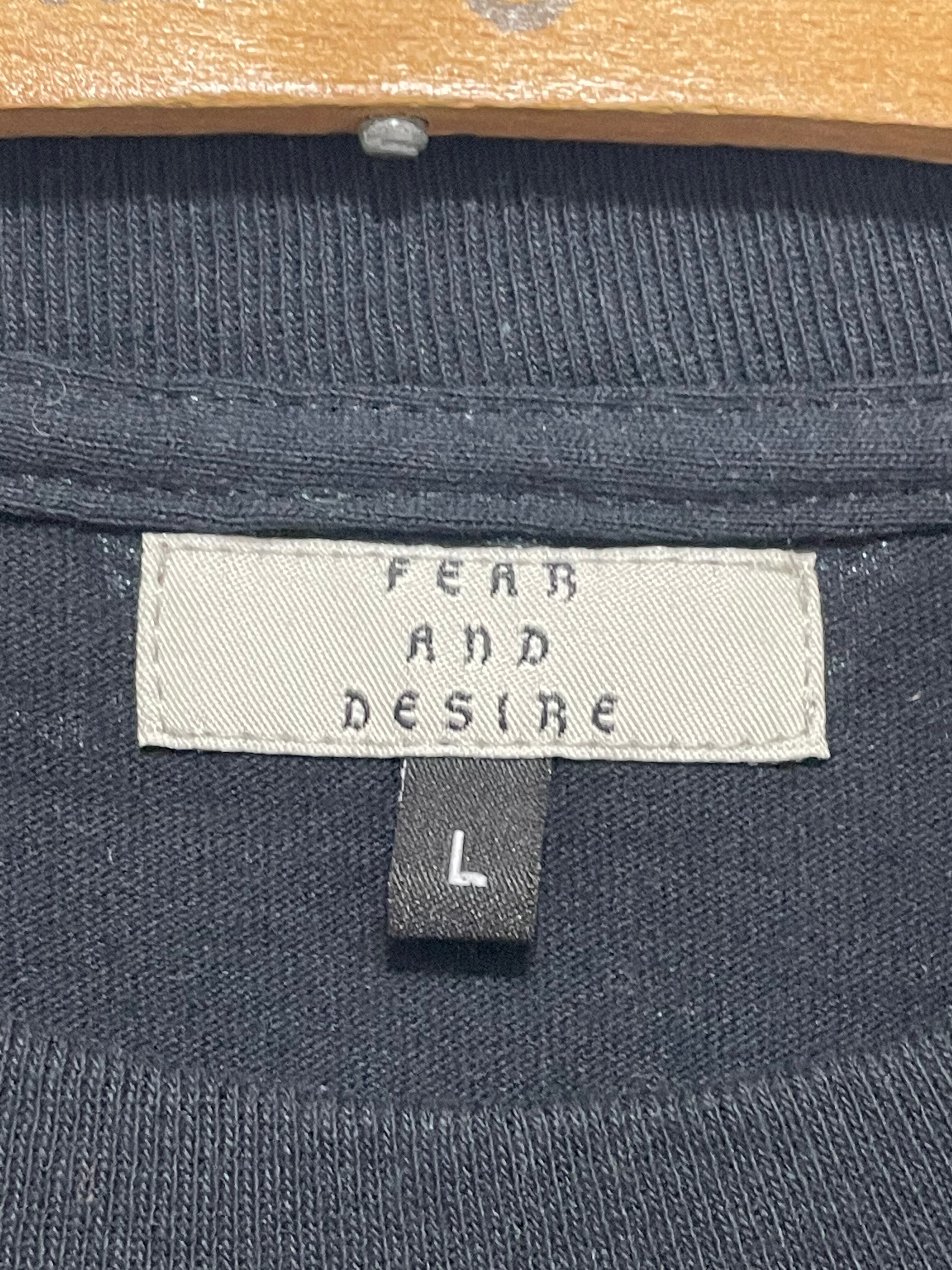 fear&desireの6ozのしっかりとした厚みのあるボディの背面には掠れプリントでグラフィカルな書体がプリントされています。