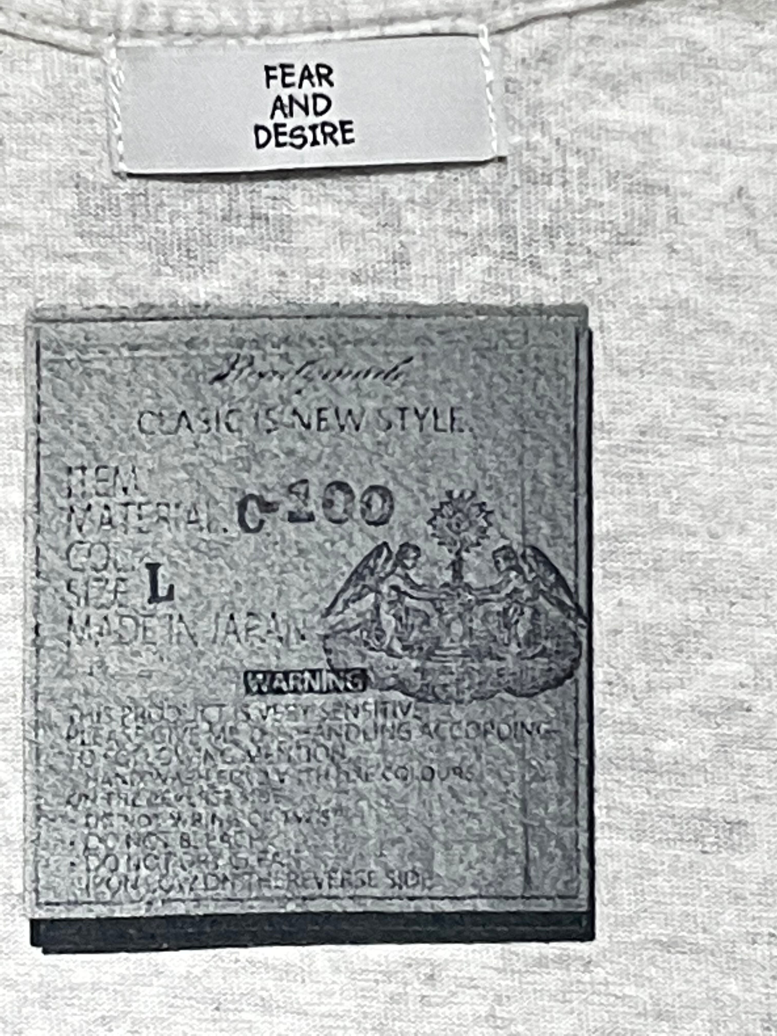 見つめ合う天使の視線を隠すようにロゴが配置されたプリントが印象的な一枚になります。