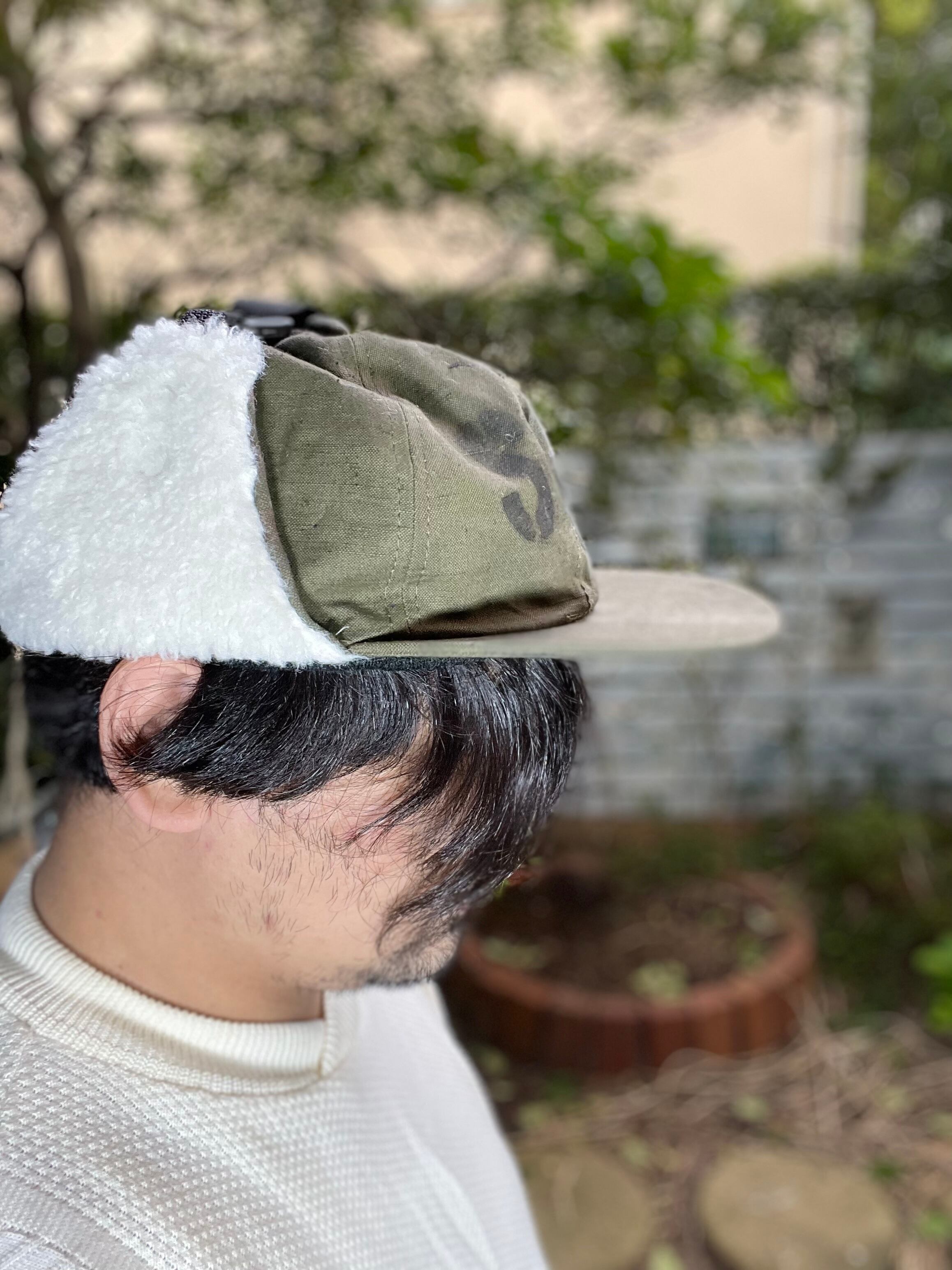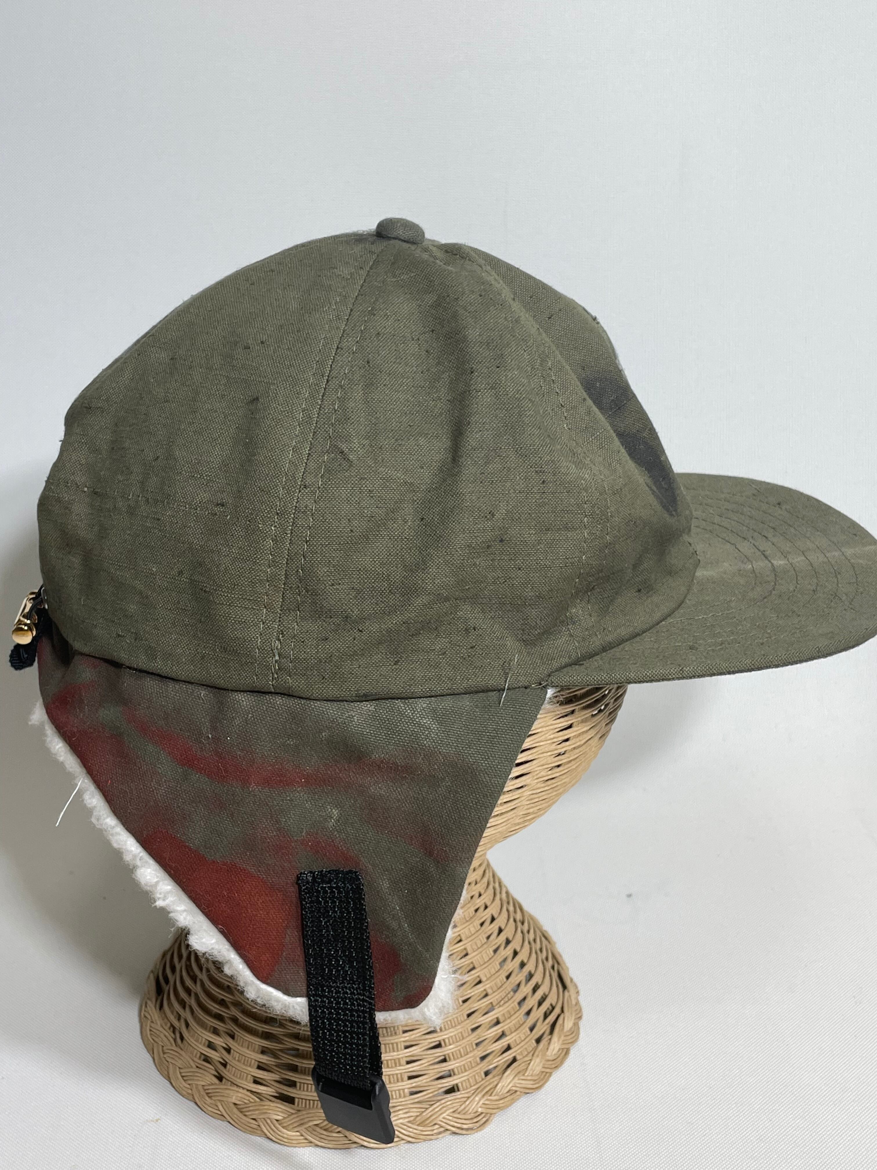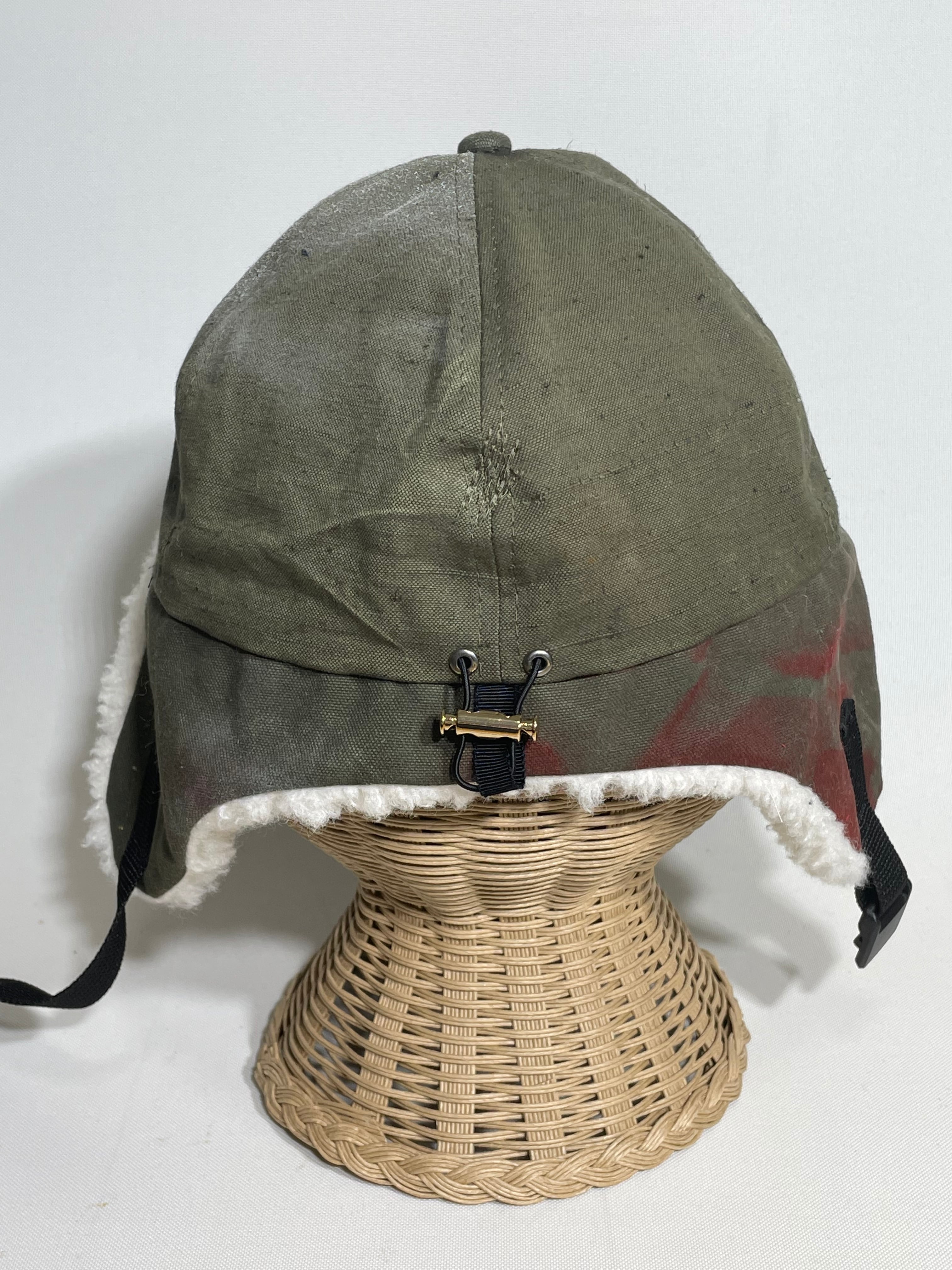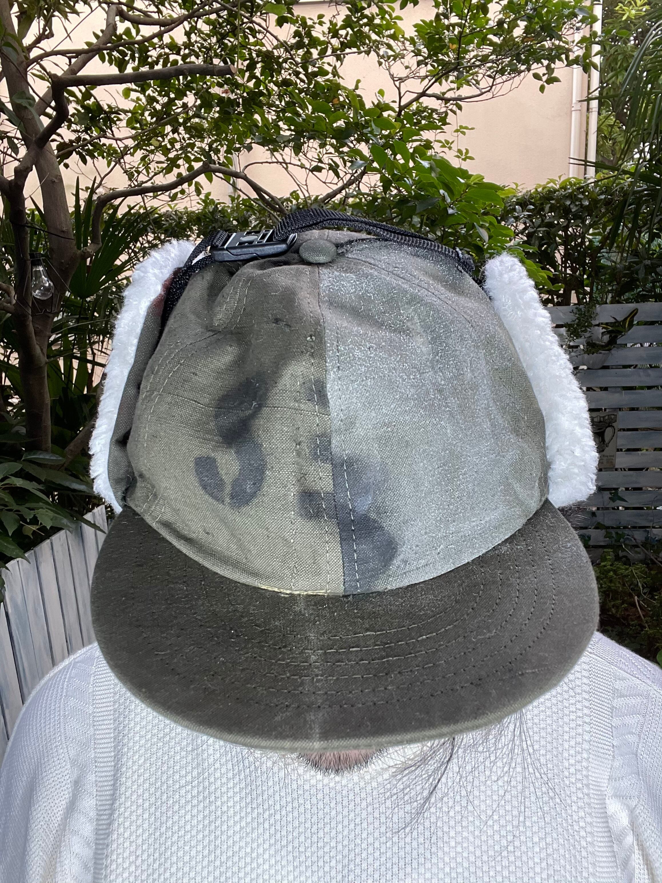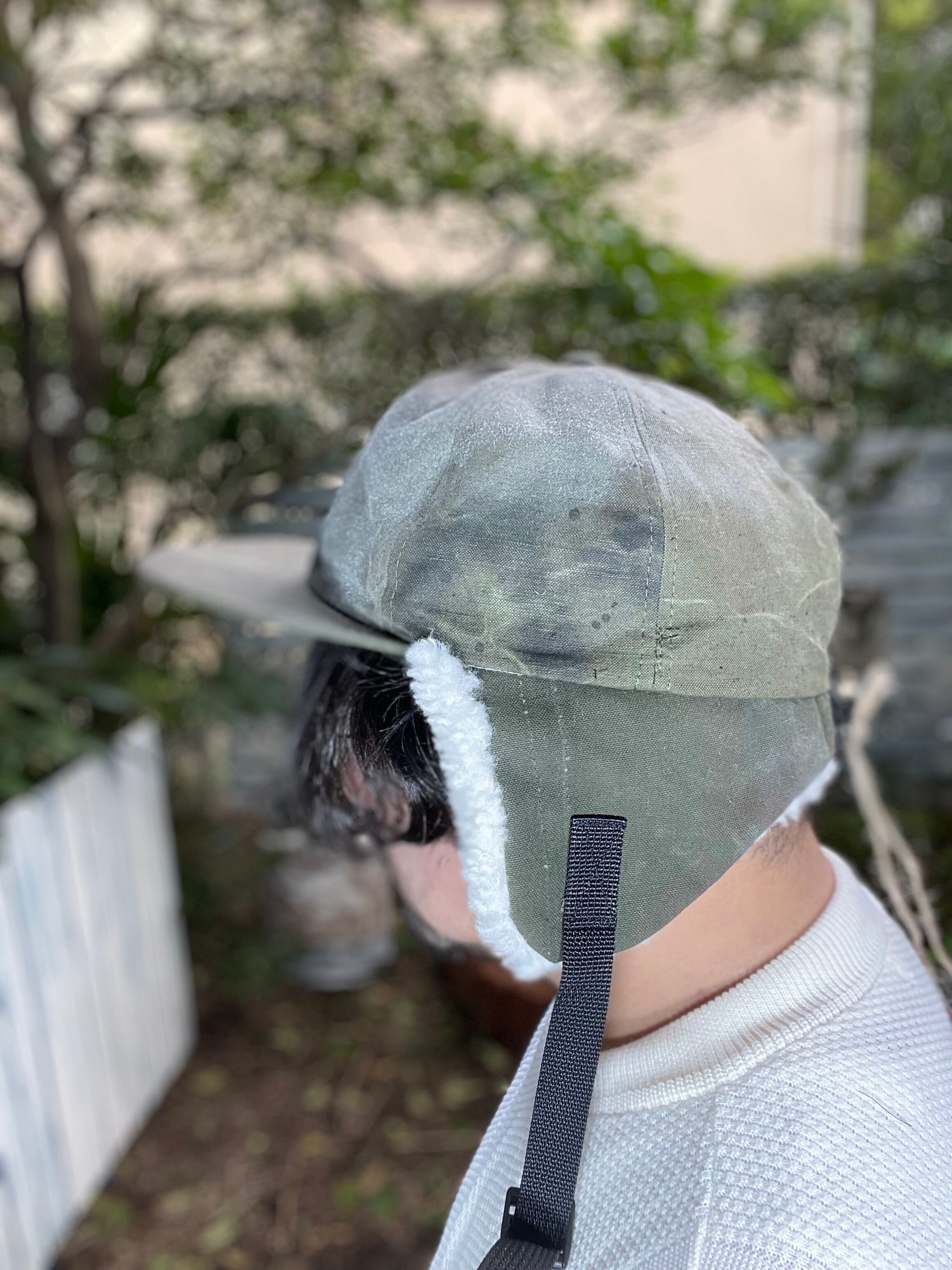 大戦時のドイツ軍のミリタリーダッフルバッグを解体してフラップキャップに仕立て直しました。