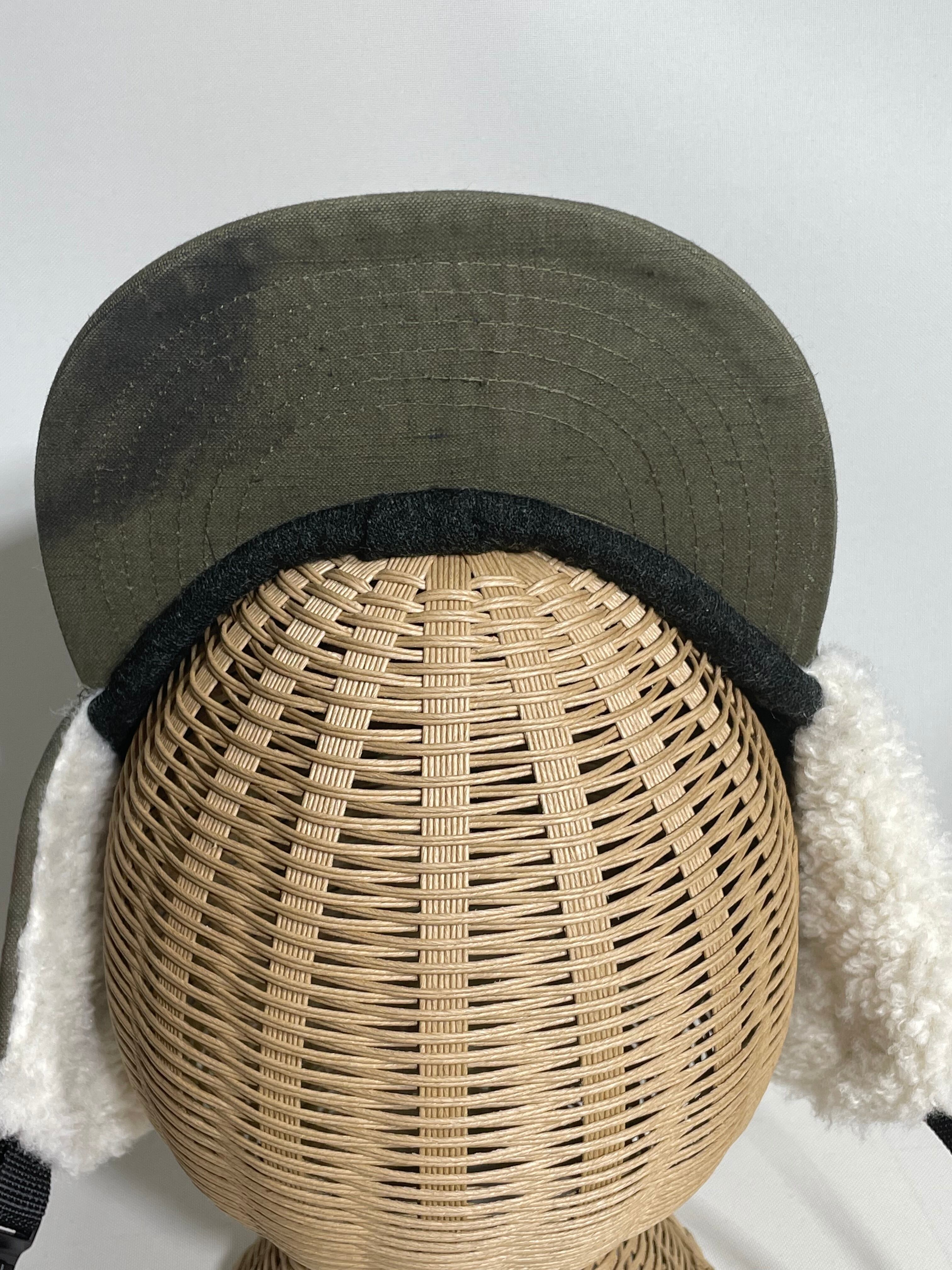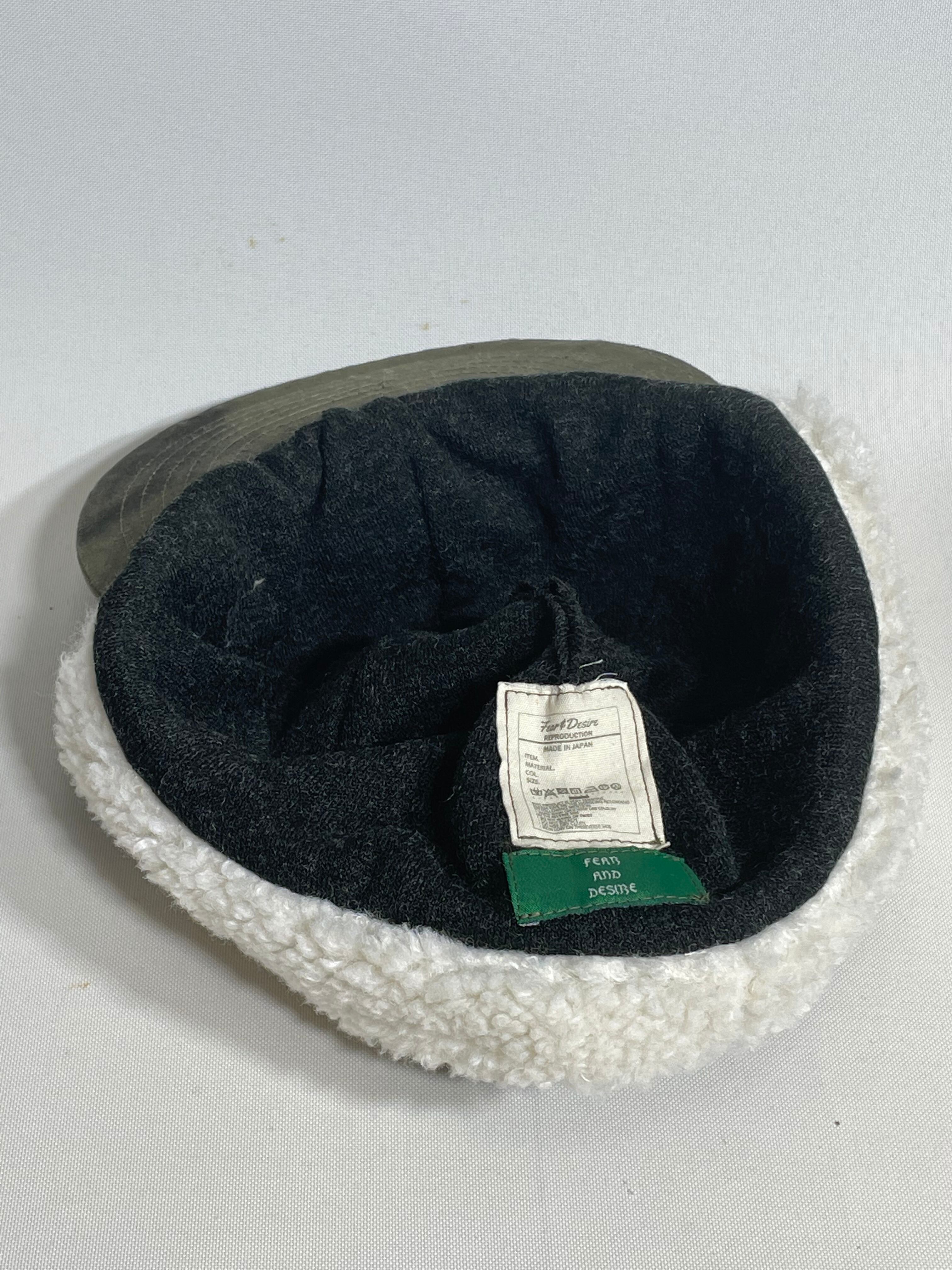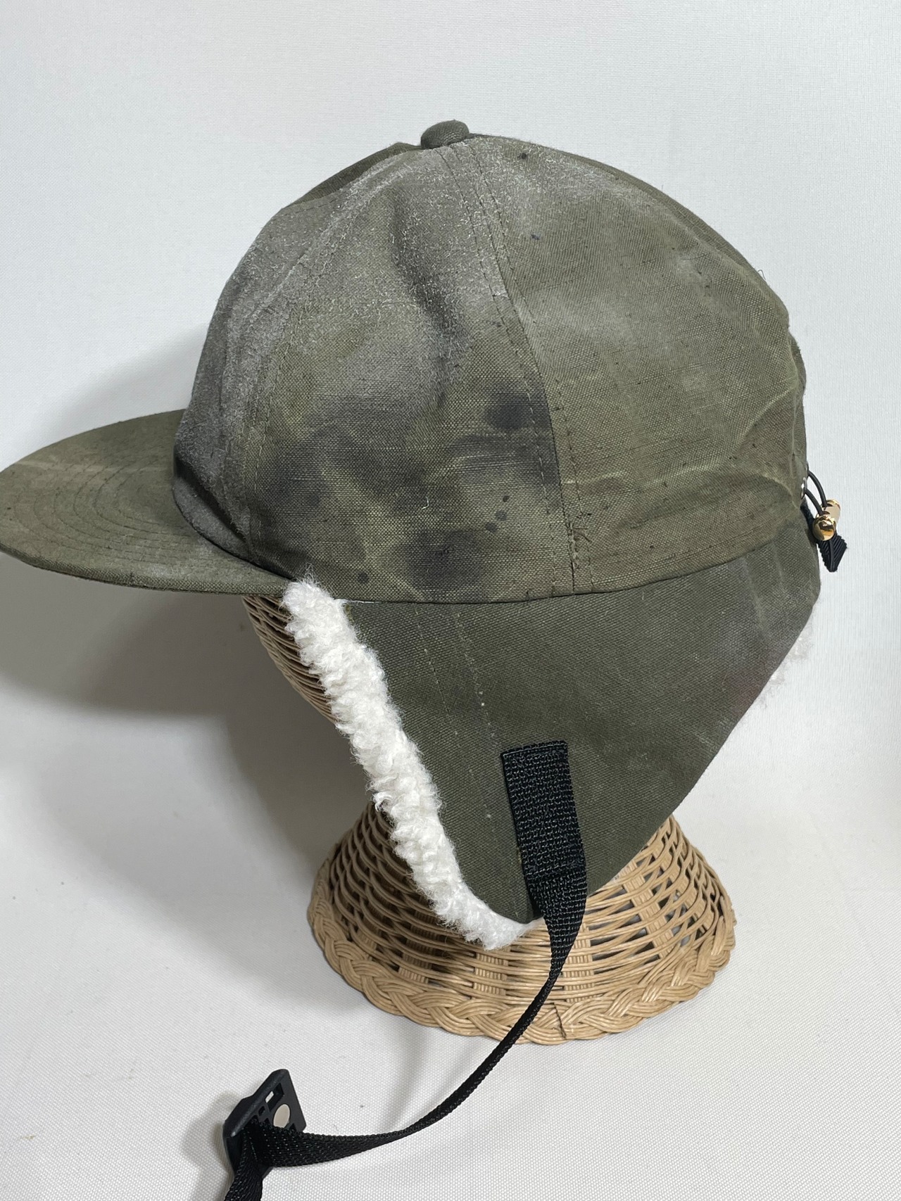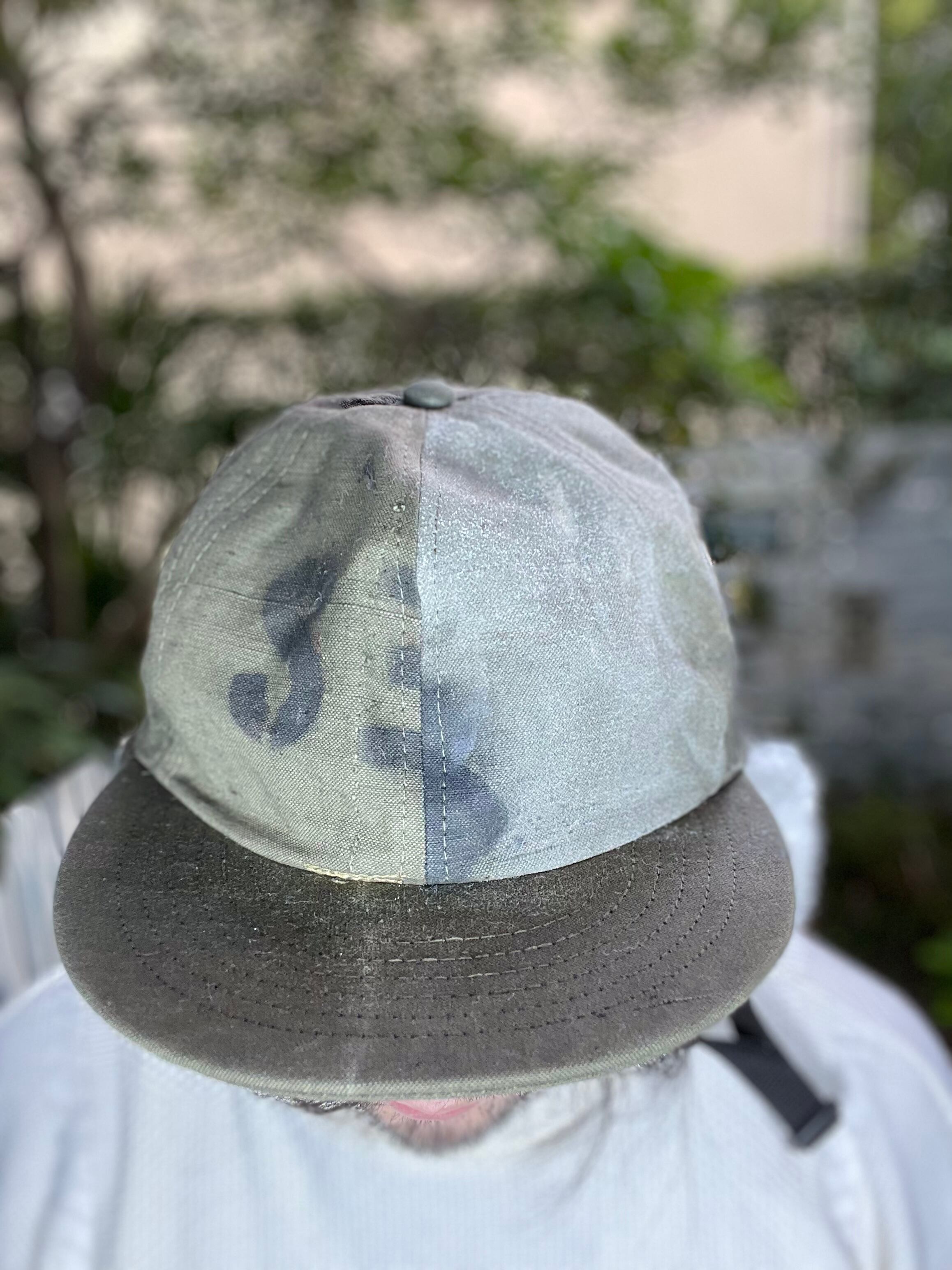 大戦時のドイツ軍のミリタリーダッフルバッグを解体してフラップキャップに仕立て直しました。