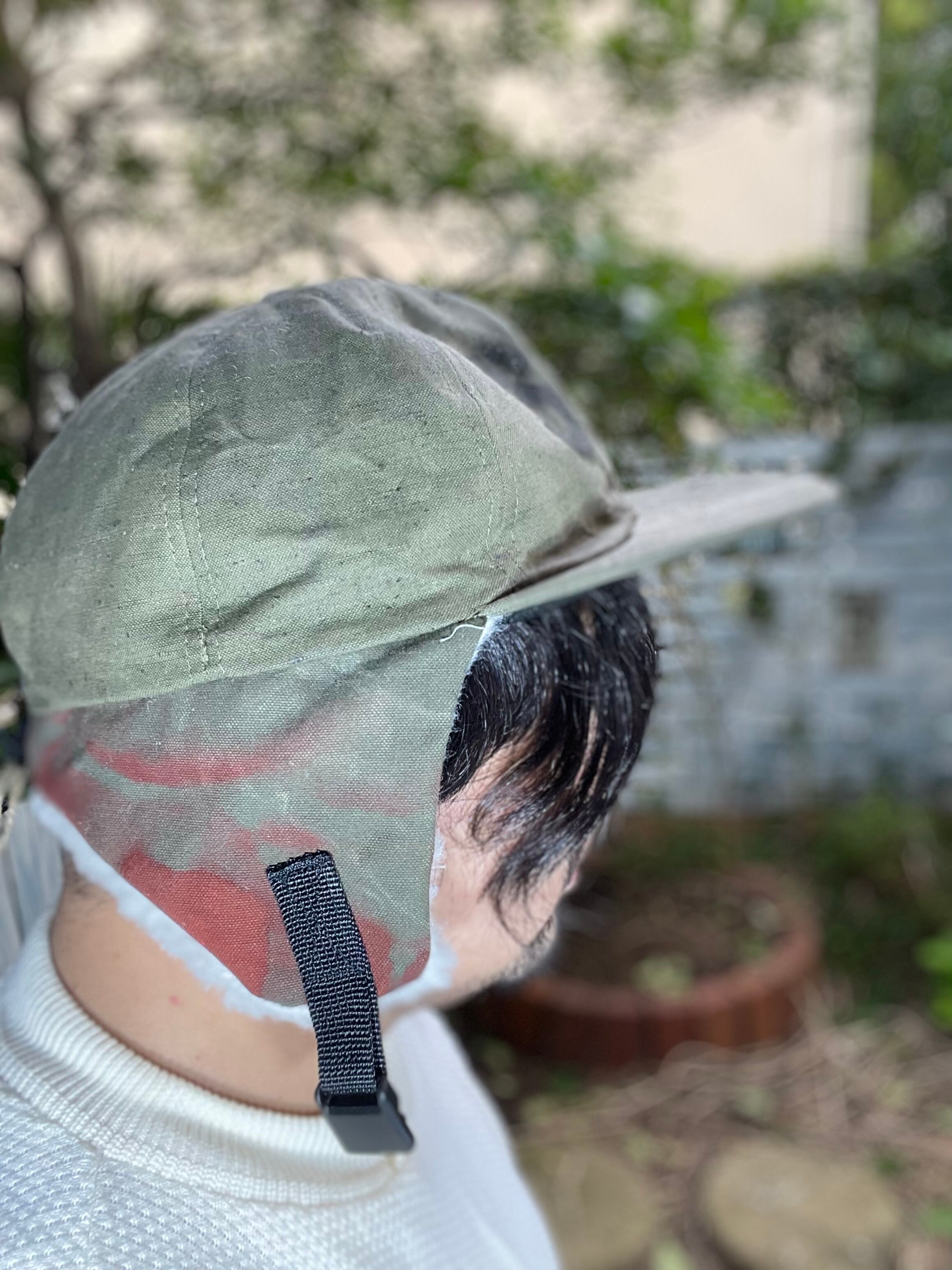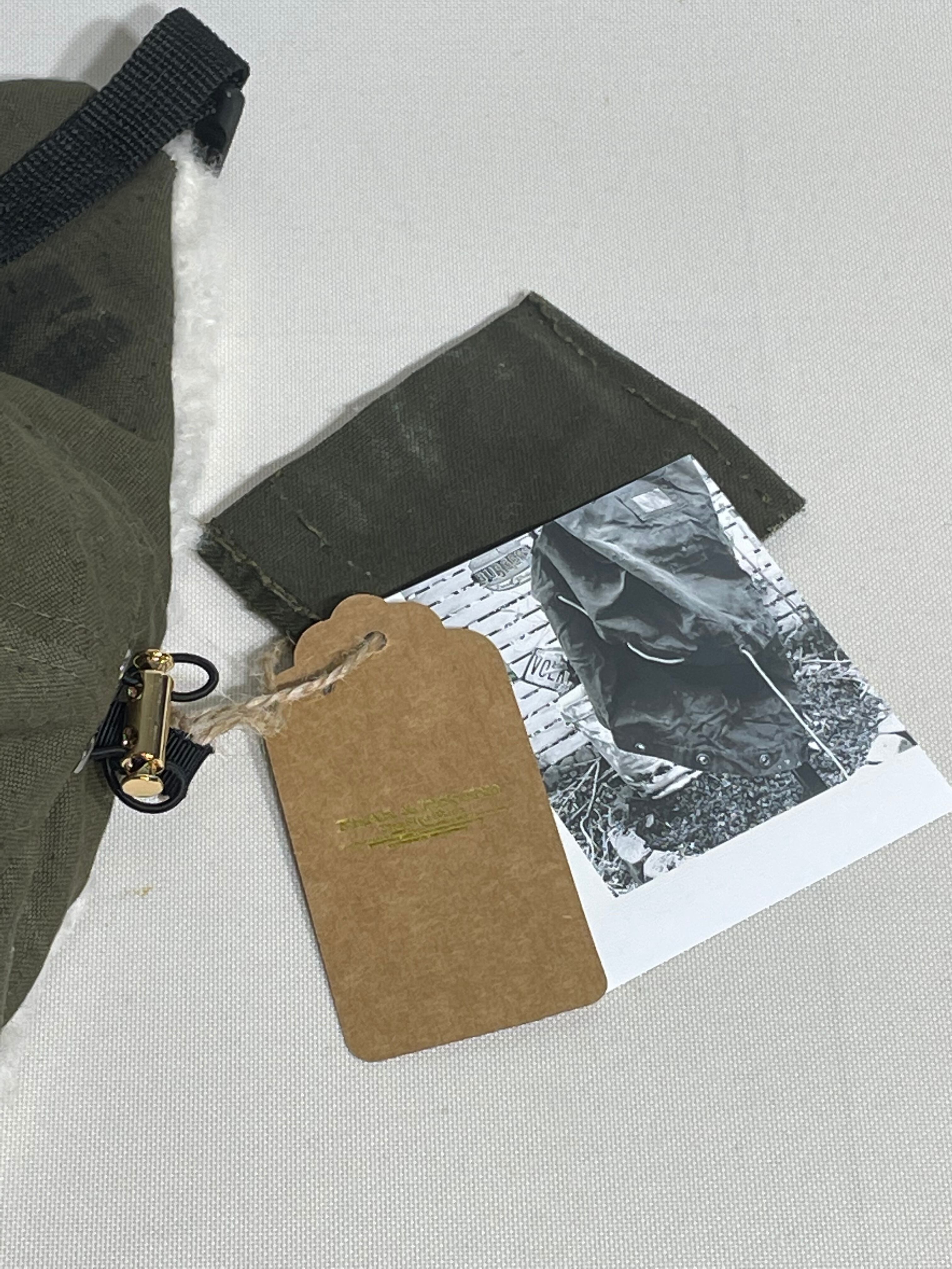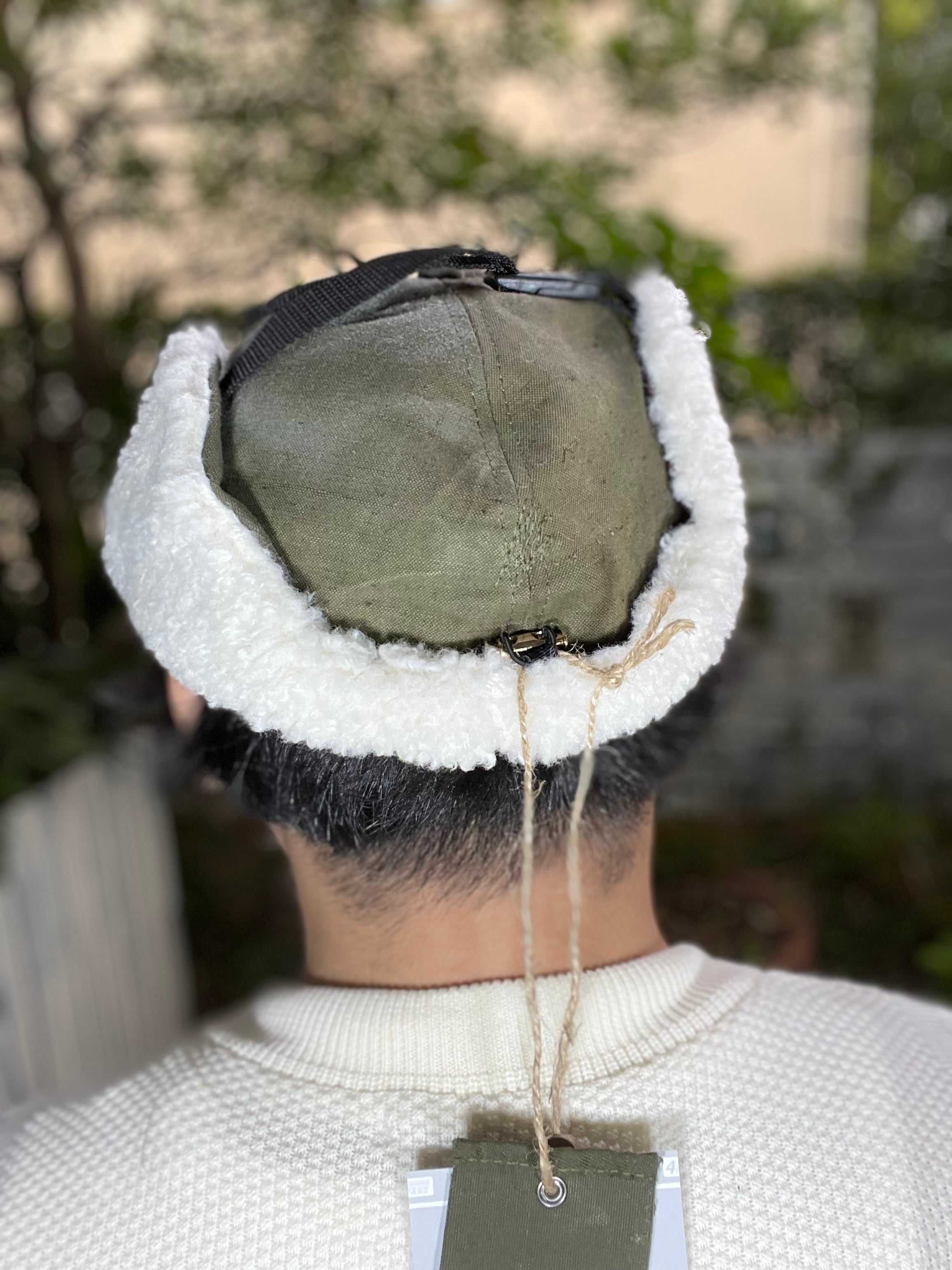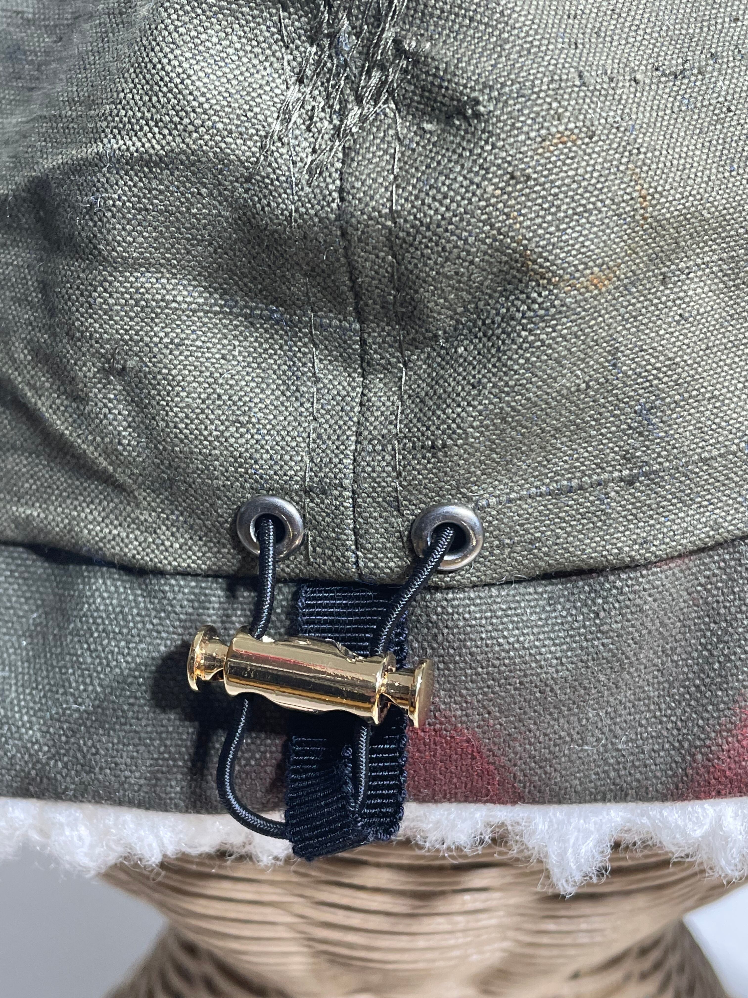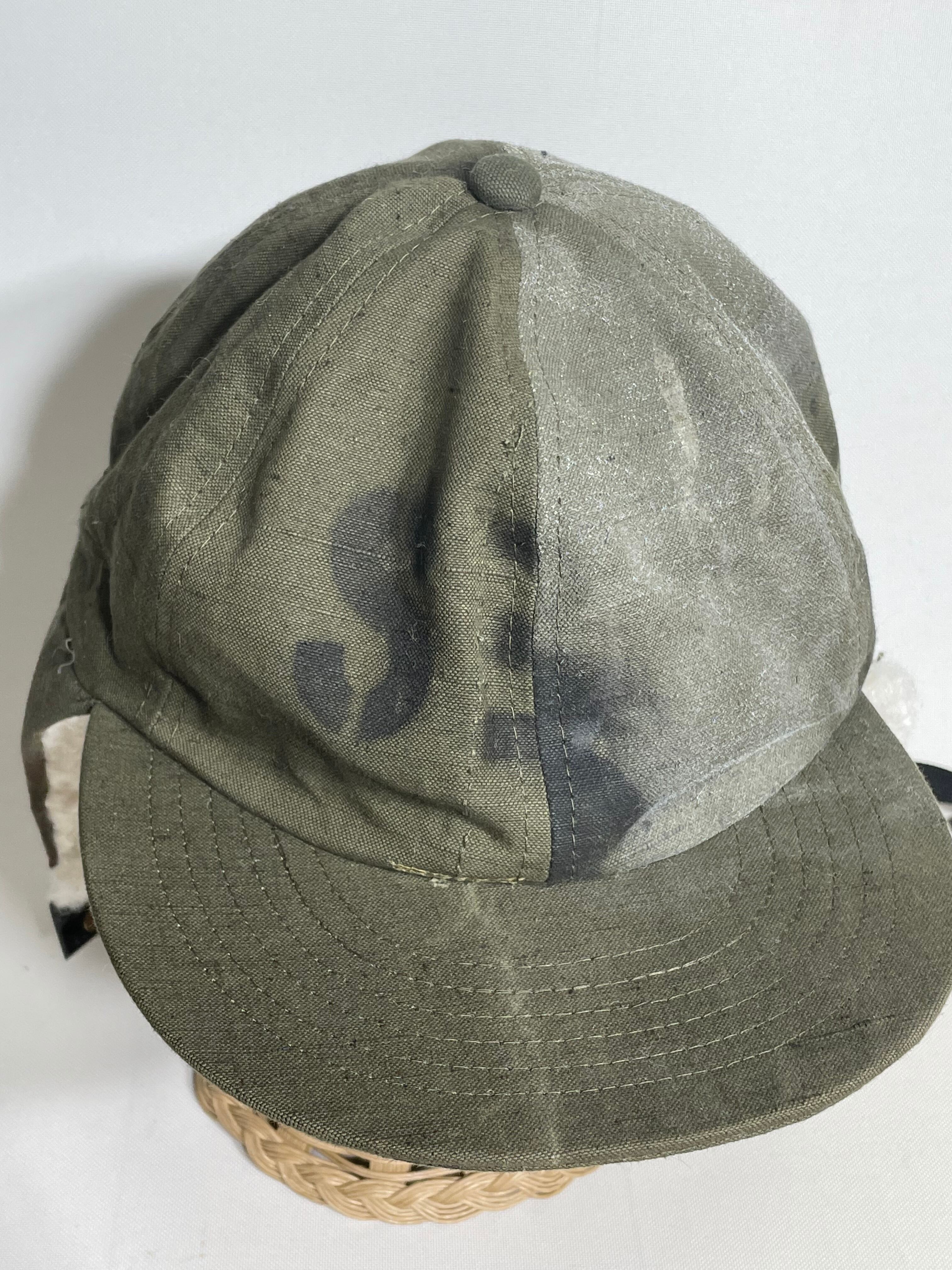 大戦時のドイツ軍のミリタリーダッフルバッグを解体してフラップキャップに仕立て直しました。