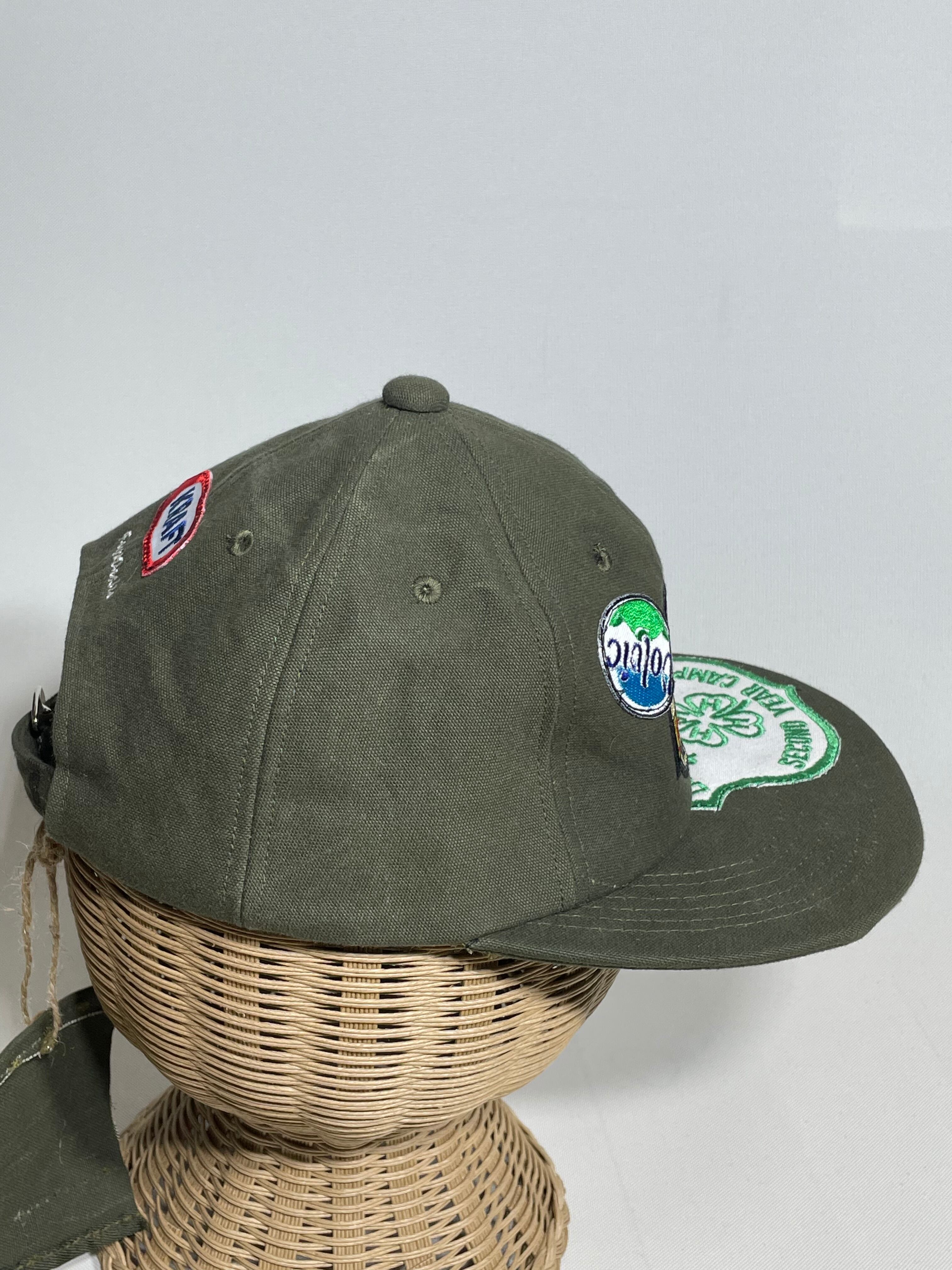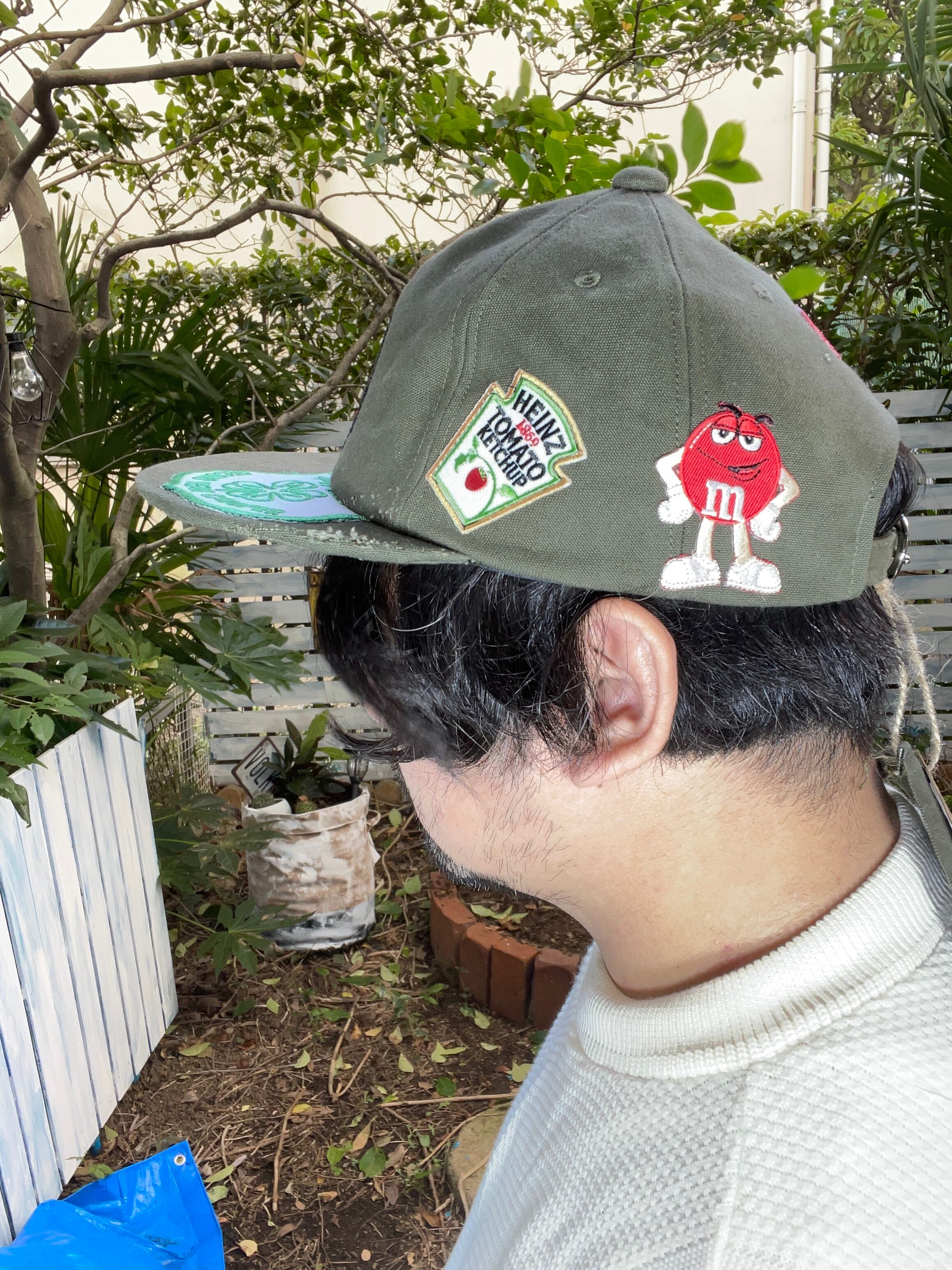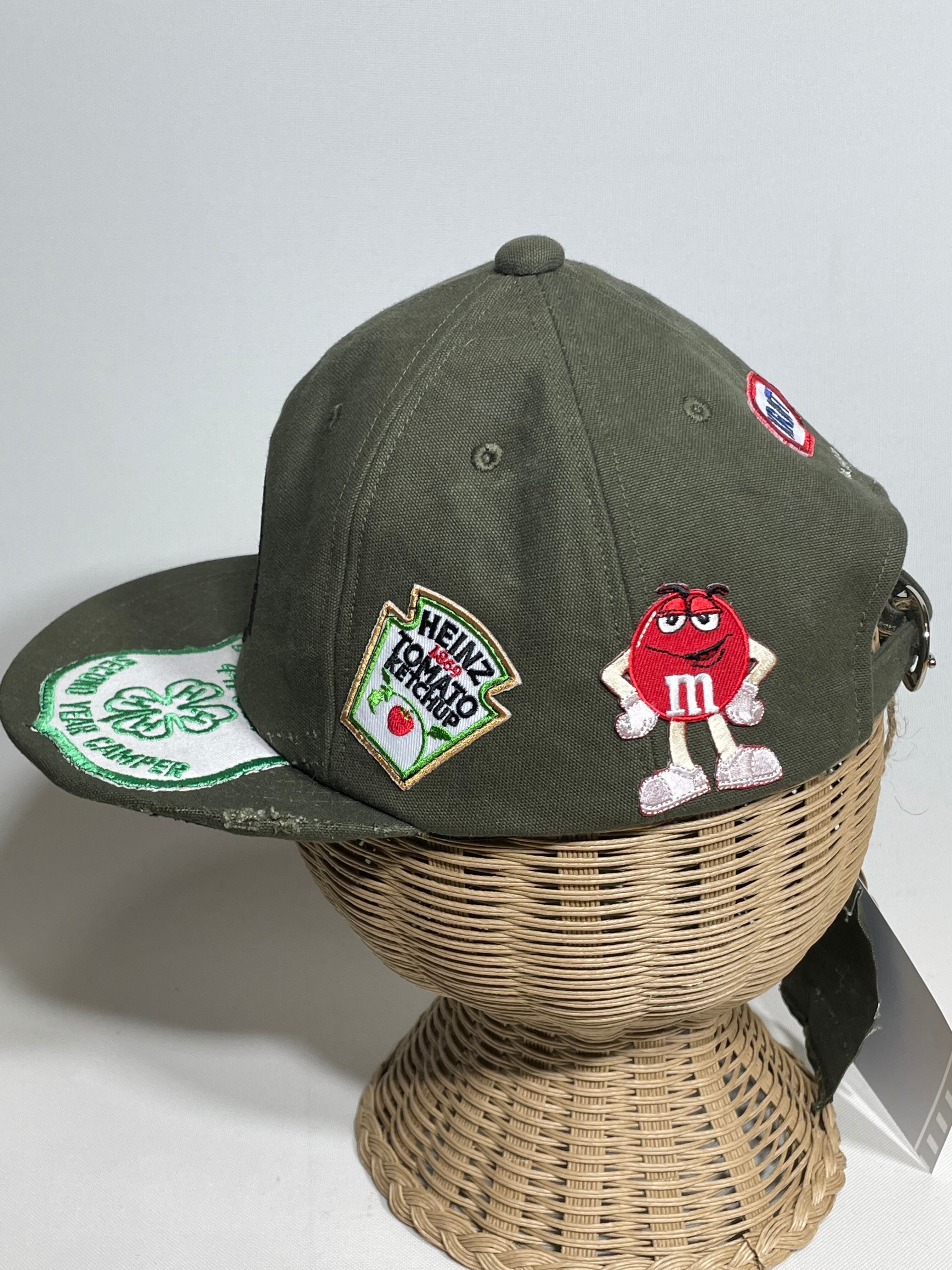 大戦時のドイツ軍のミリタリーダッフルバッグを解体してニューエラ型の平ツバ6パネルキャップに仕立てました。